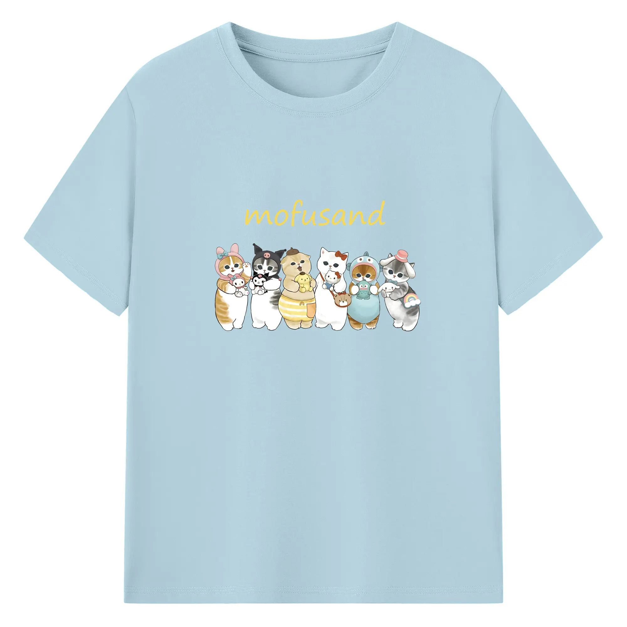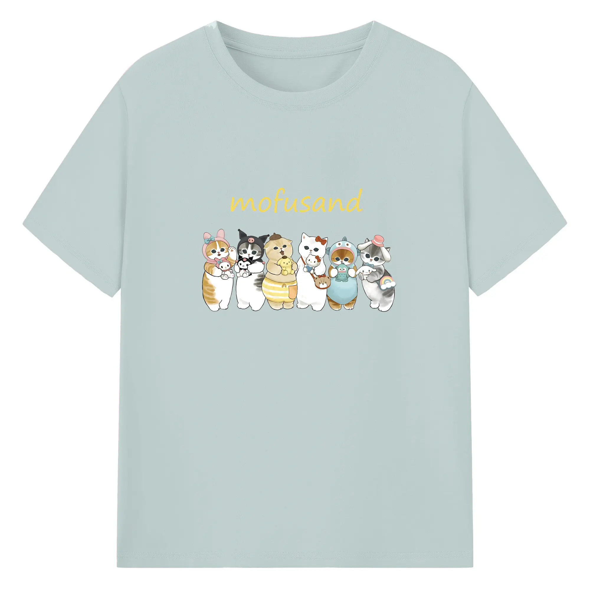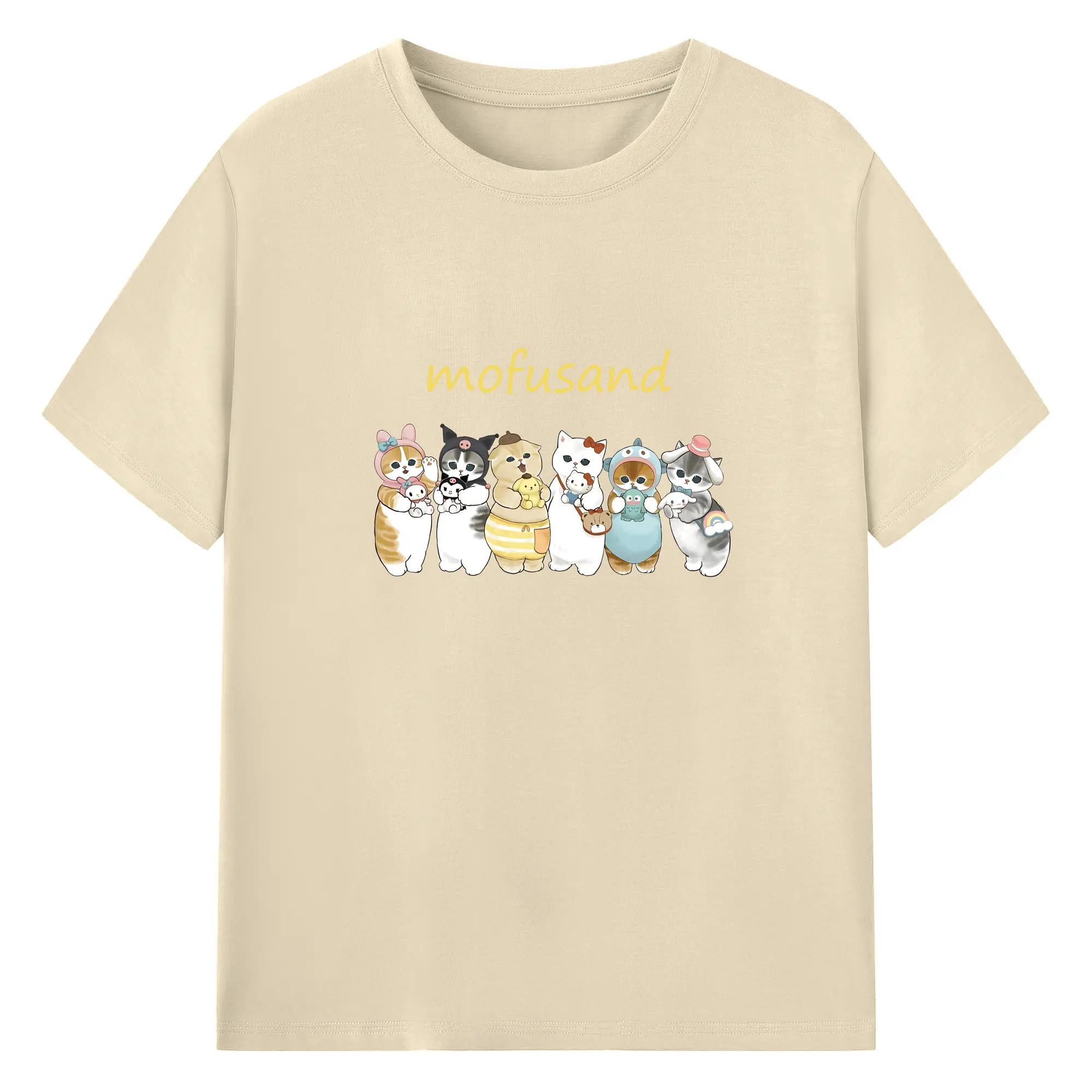 2025新作mofusand&マイメロディ - 綿100% 半袖Tシャツ ・ フロントプリント ・ 快適 通気性 ・ 日常使い 散歩 スポーツ用