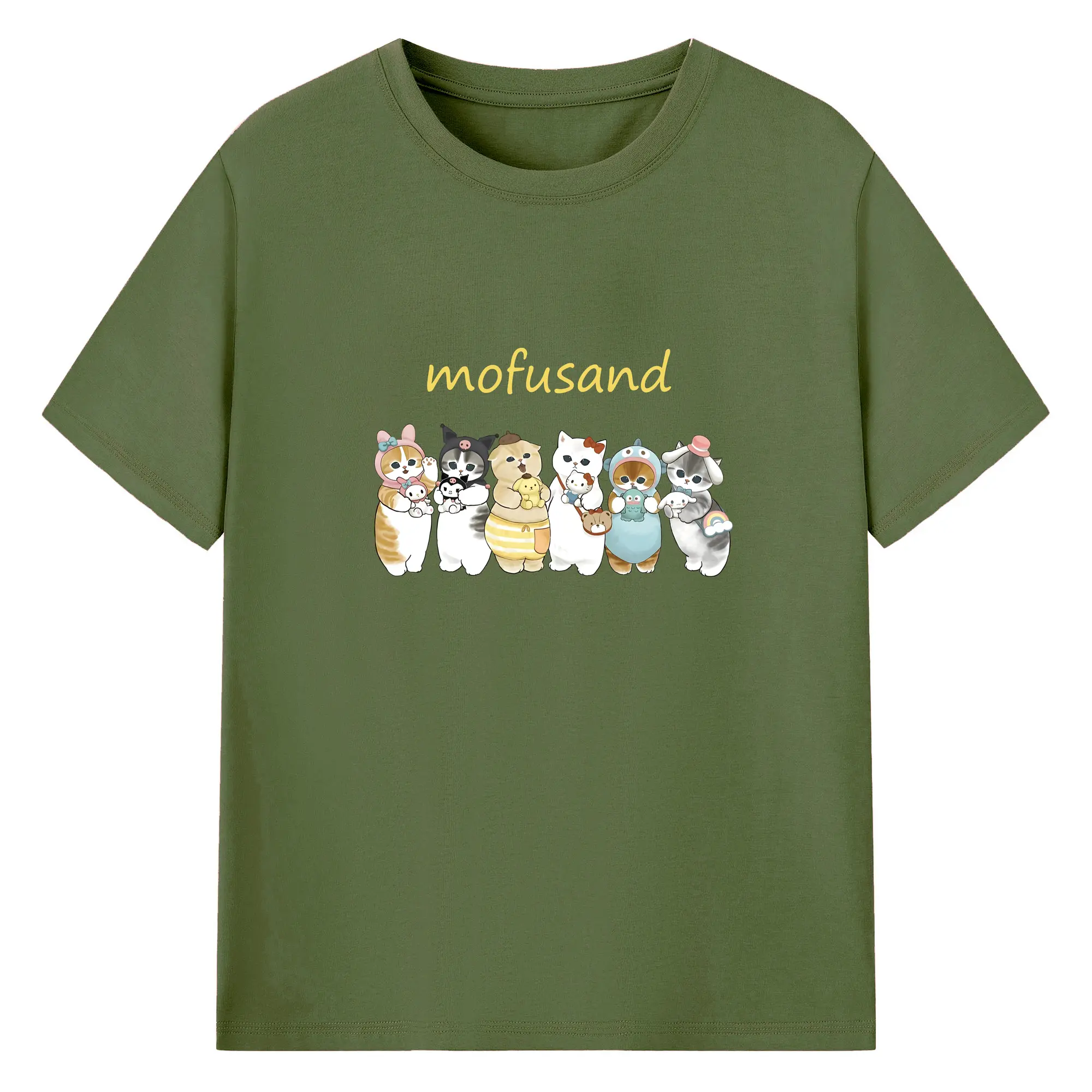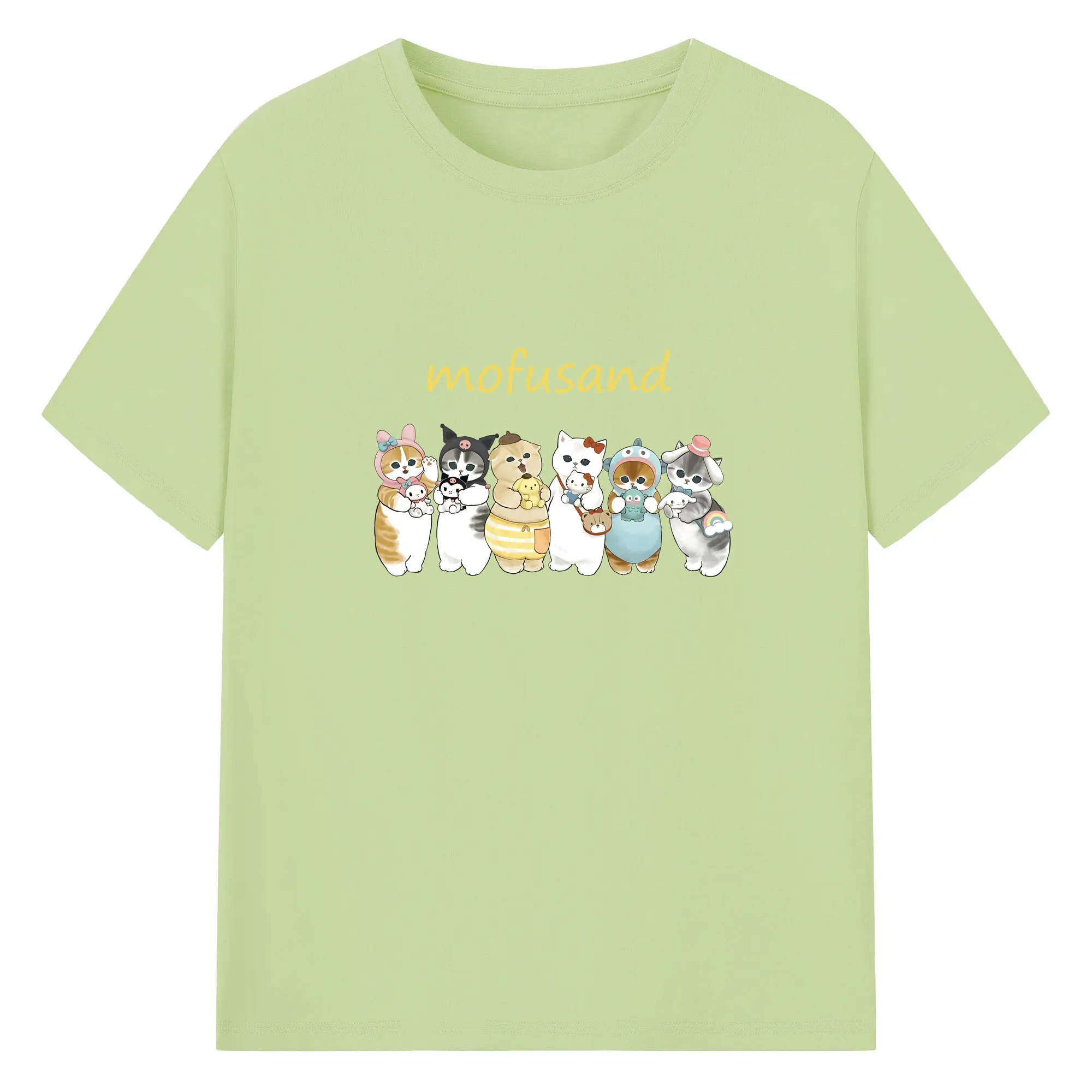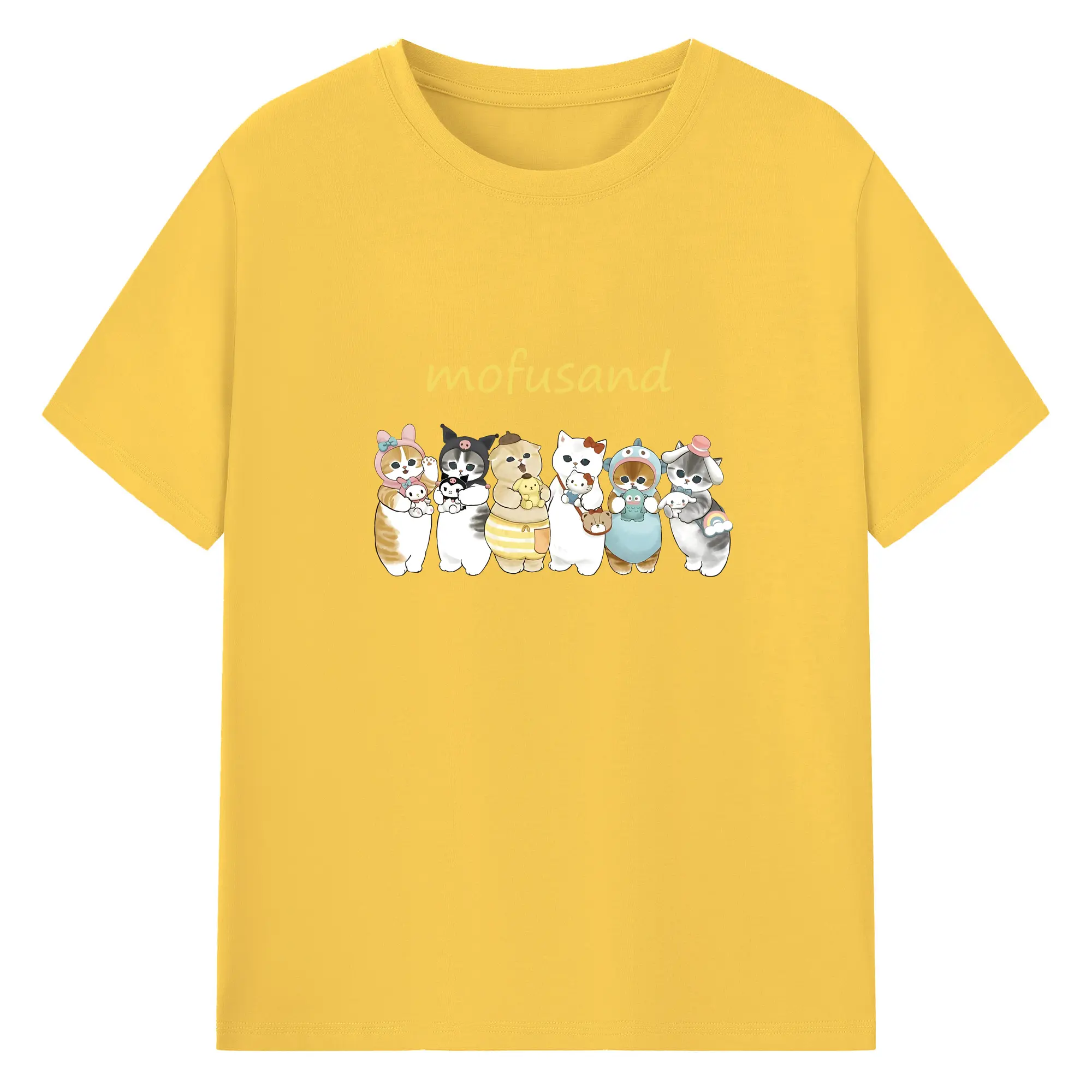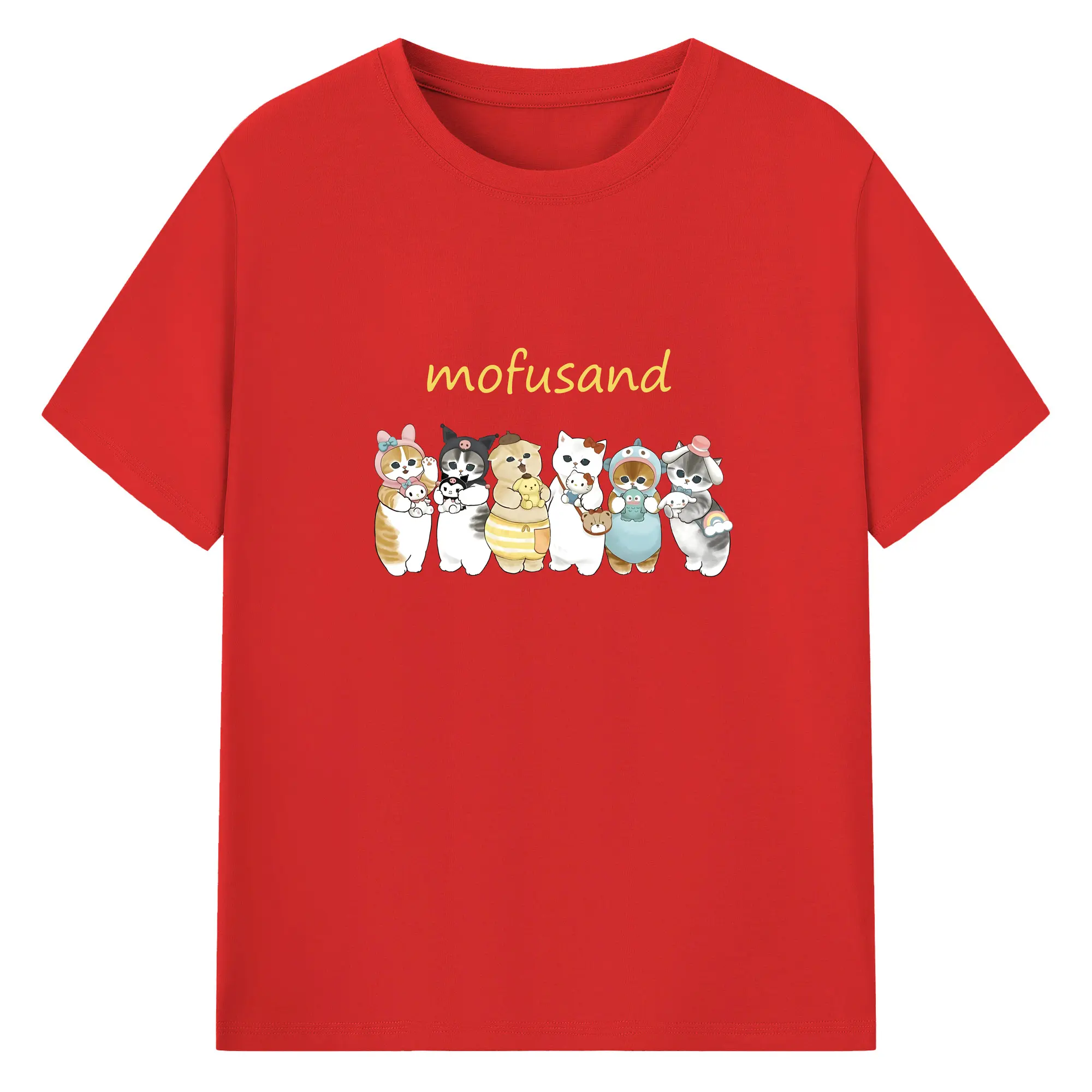 2025新作mofusand&マイメロディ - 綿100% 半袖Tシャツ ・ フロントプリント ・ 快適 通気性 ・ 日常使い 散歩 スポーツ用