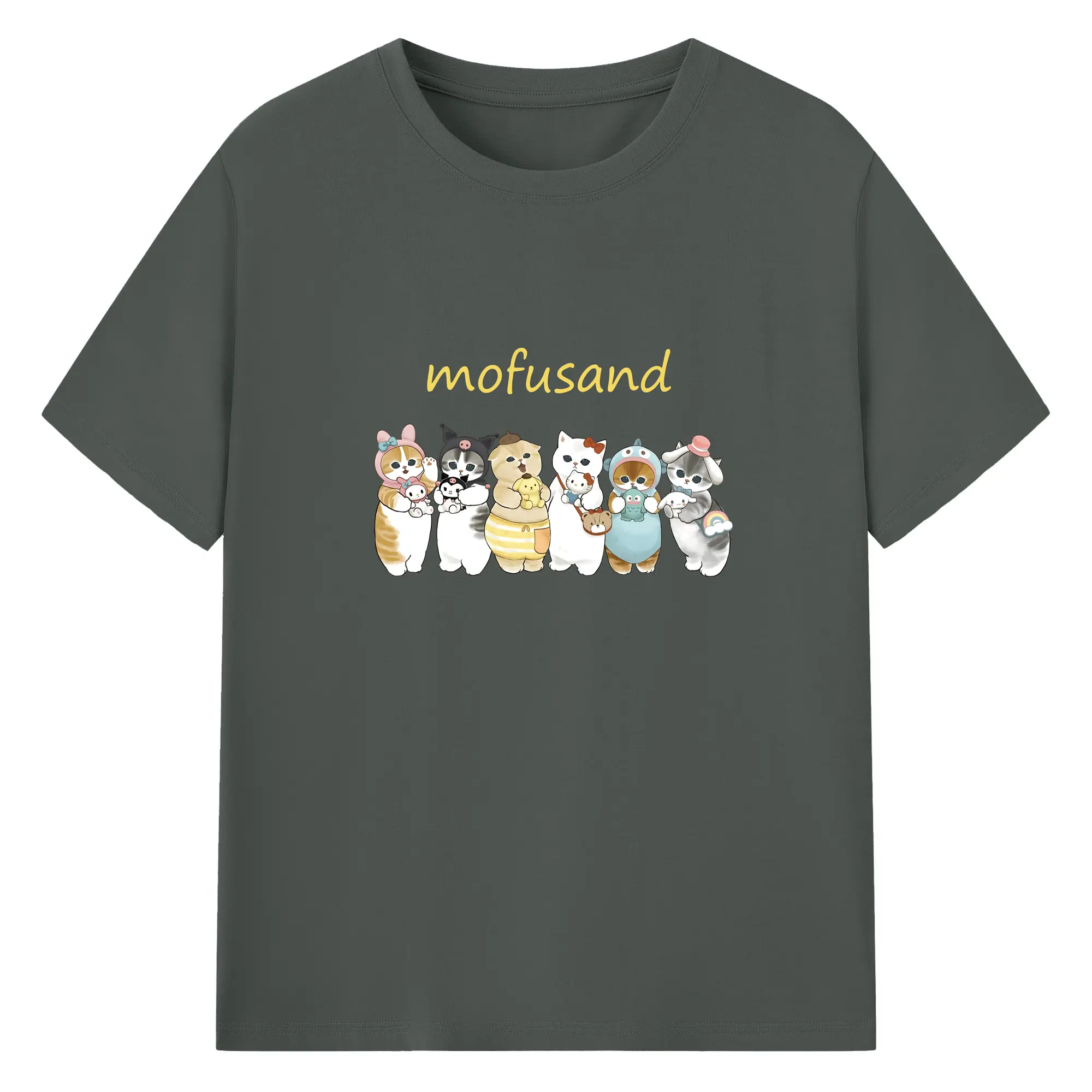 2025人気のmofusand&サンリオ - 綿100% ヴィンテージ風 半袖Tシャツ ・ フロントプリント ・ 柔らか肌触り ・ 通気性 快適 ・ スポーツ カジュアル 外出用