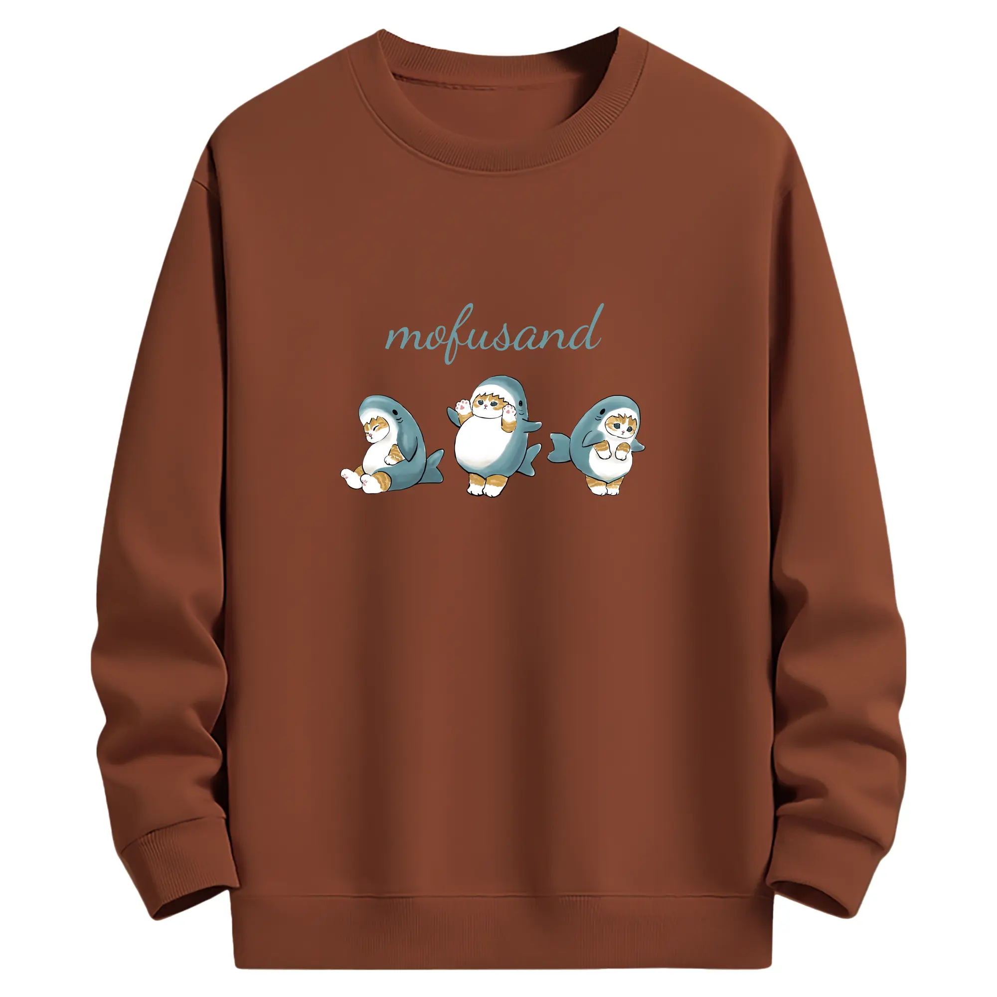 2025大人気mofusandサメ図鑑 - 綿100% ヴィンテージ風 半袖Tシャツ ・ フロントプリント ・ 柔らか肌触り ・ 通気性 快適 ・ スポーツ カジュアル 外出用