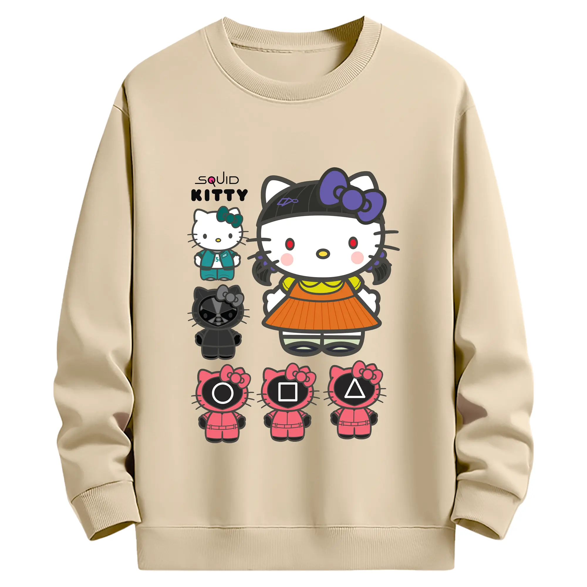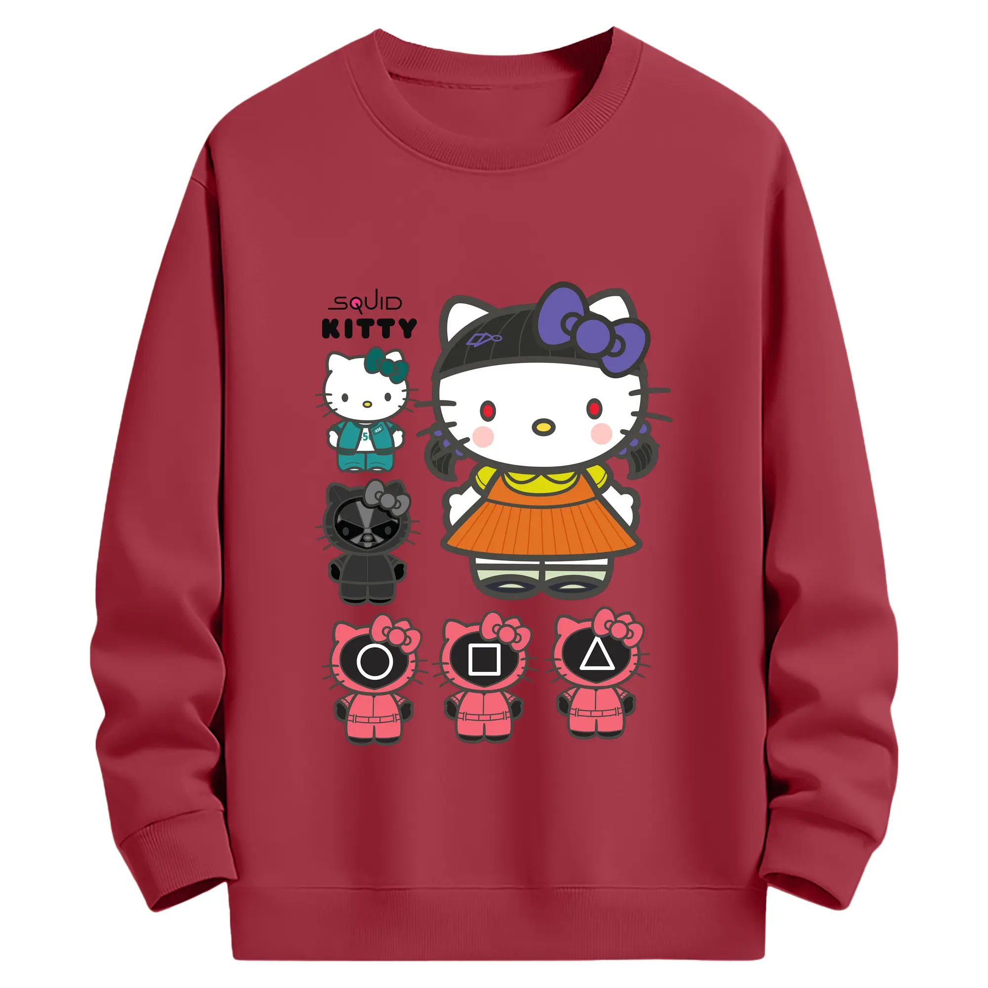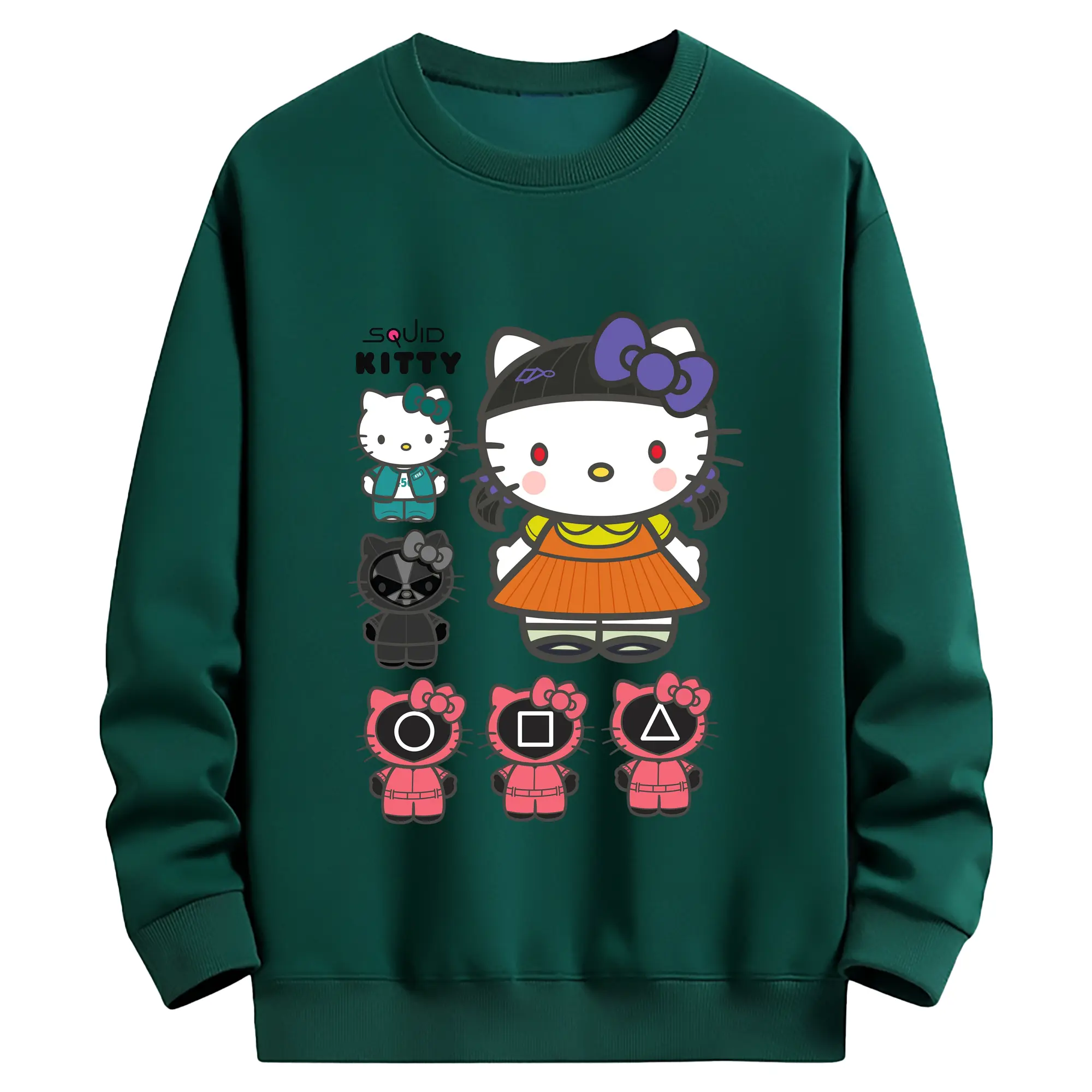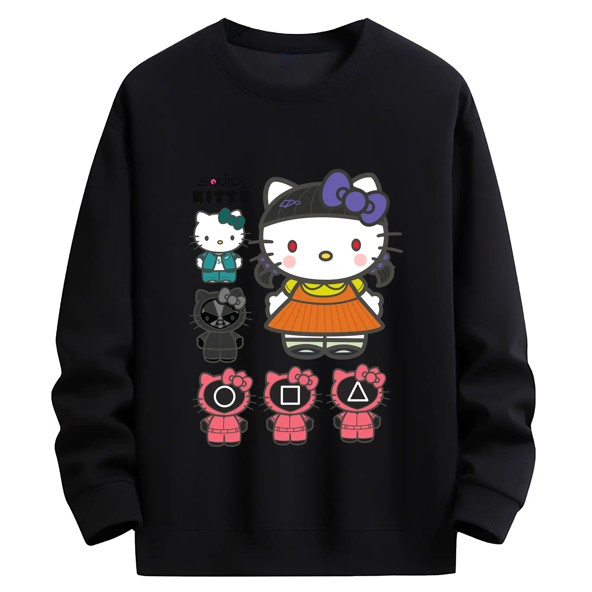 2025年新作 サンリオ イカゲームコラボ - 高品質 クルーネック スウェット ・ コットン59% ポリエステル41% ・ ユニセックス 長袖 トレーナー ・ カジュアル デイリー スポーツ 散歩用
