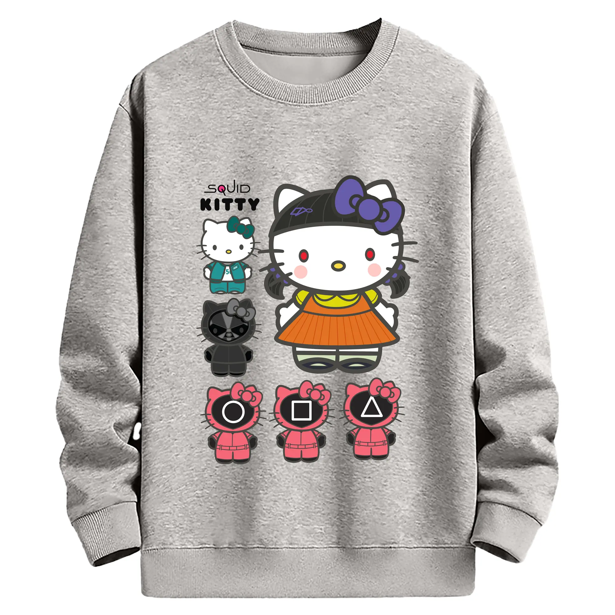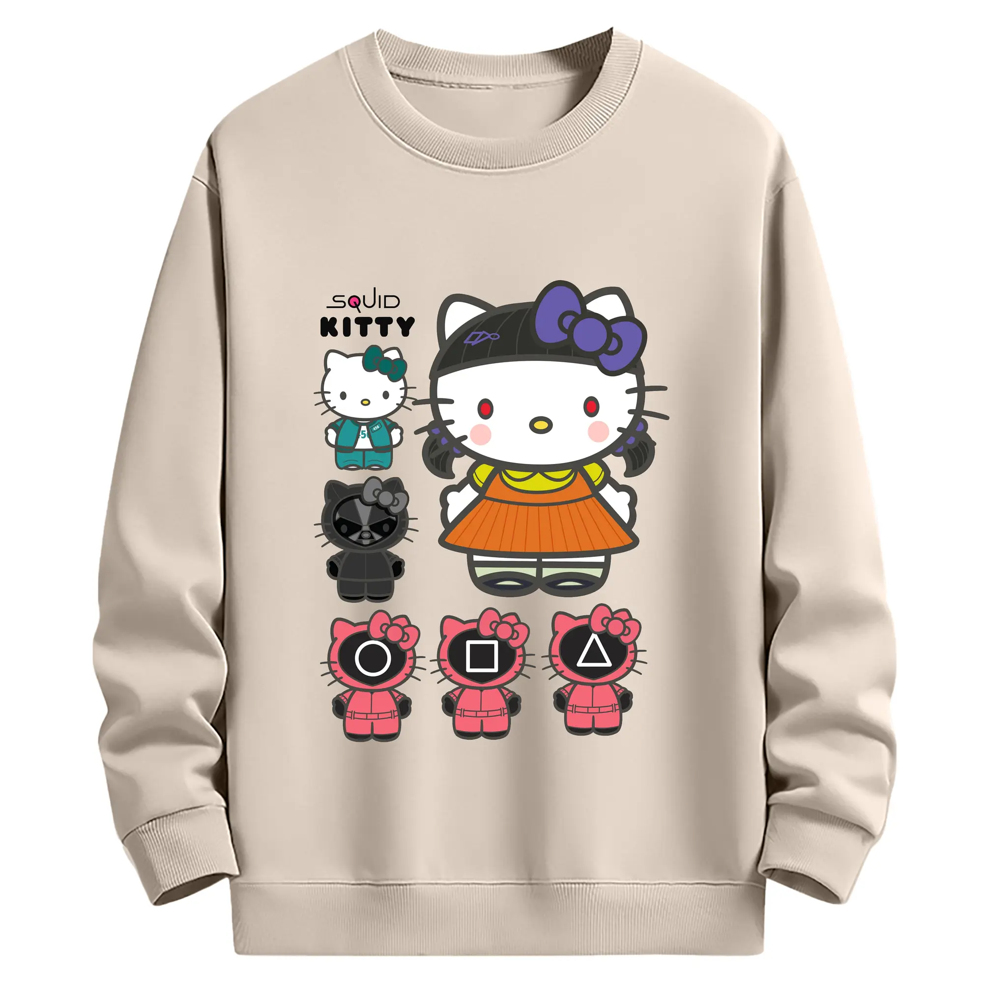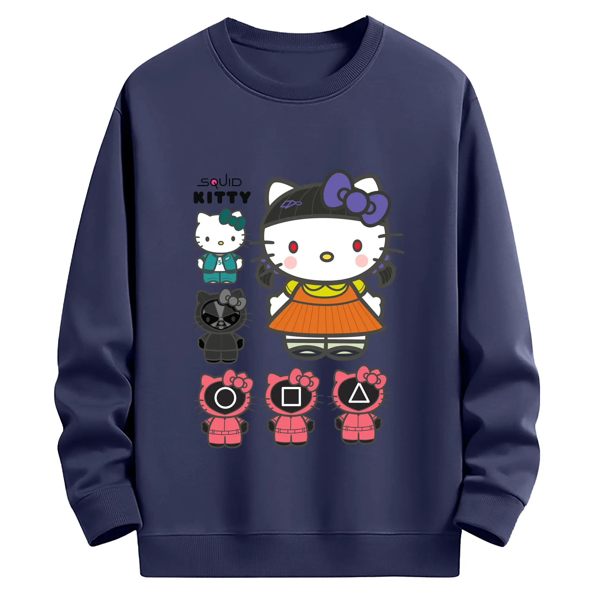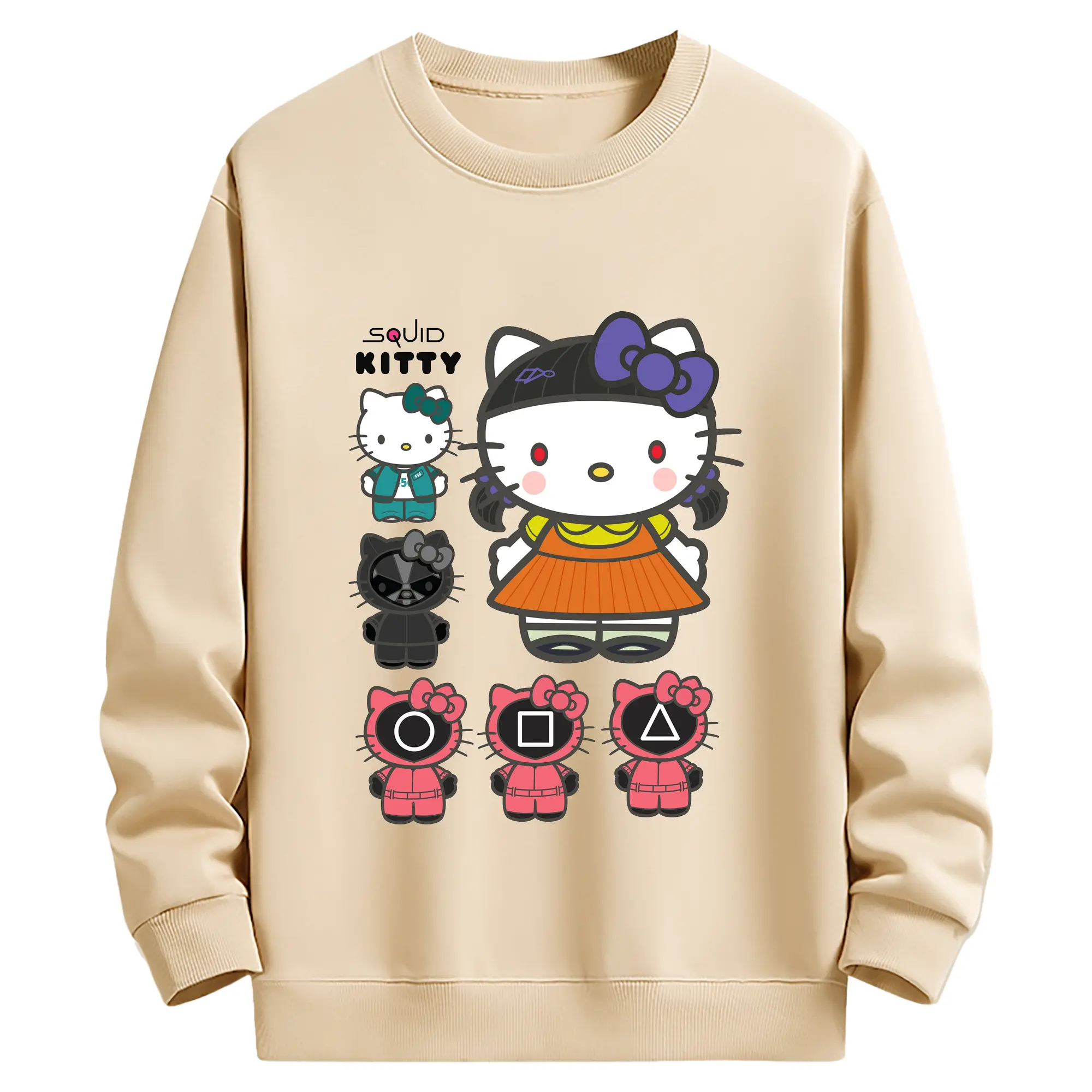 2025年新作 サンリオ イカゲームコラボ - 高品質 クルーネック スウェット ・ コットン59% ポリエステル41% ・ ユニセックス 長袖 トレーナー ・ カジュアル デイリー スポーツ 散歩用