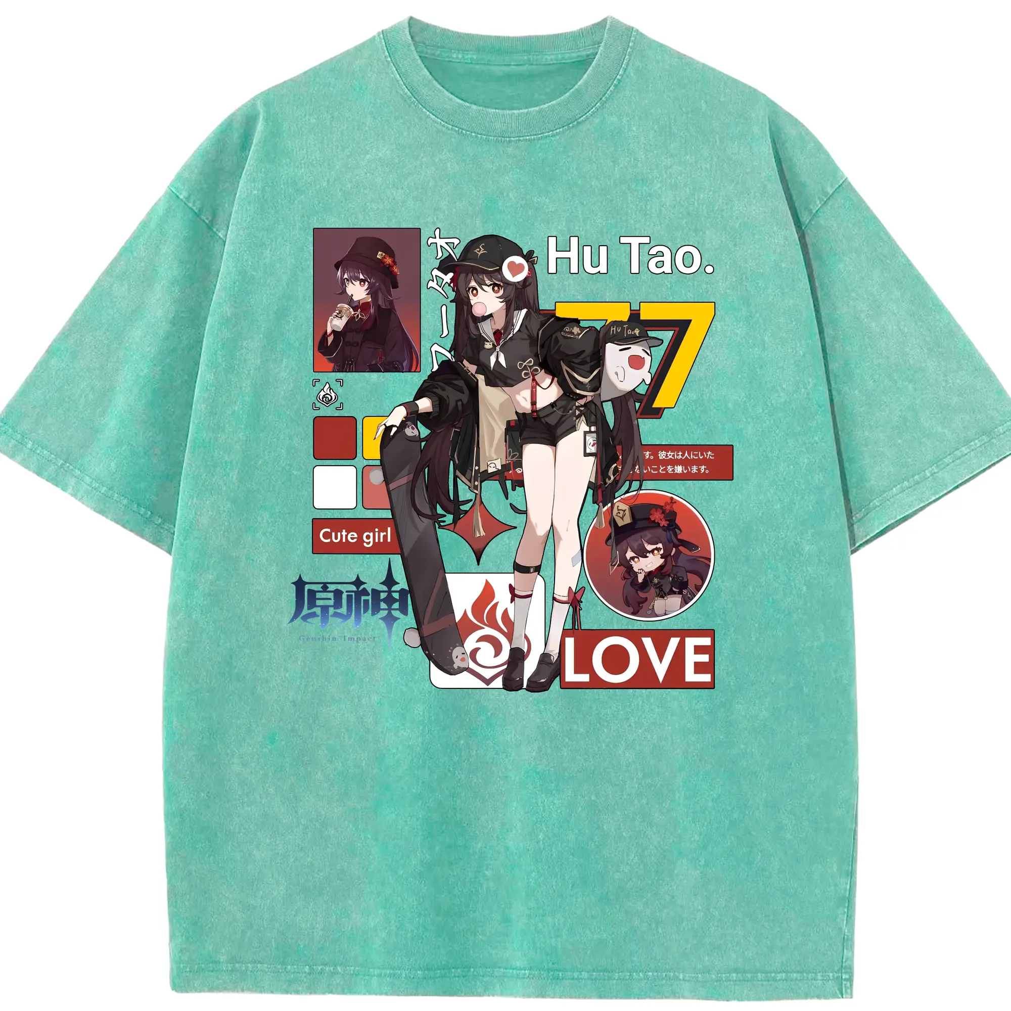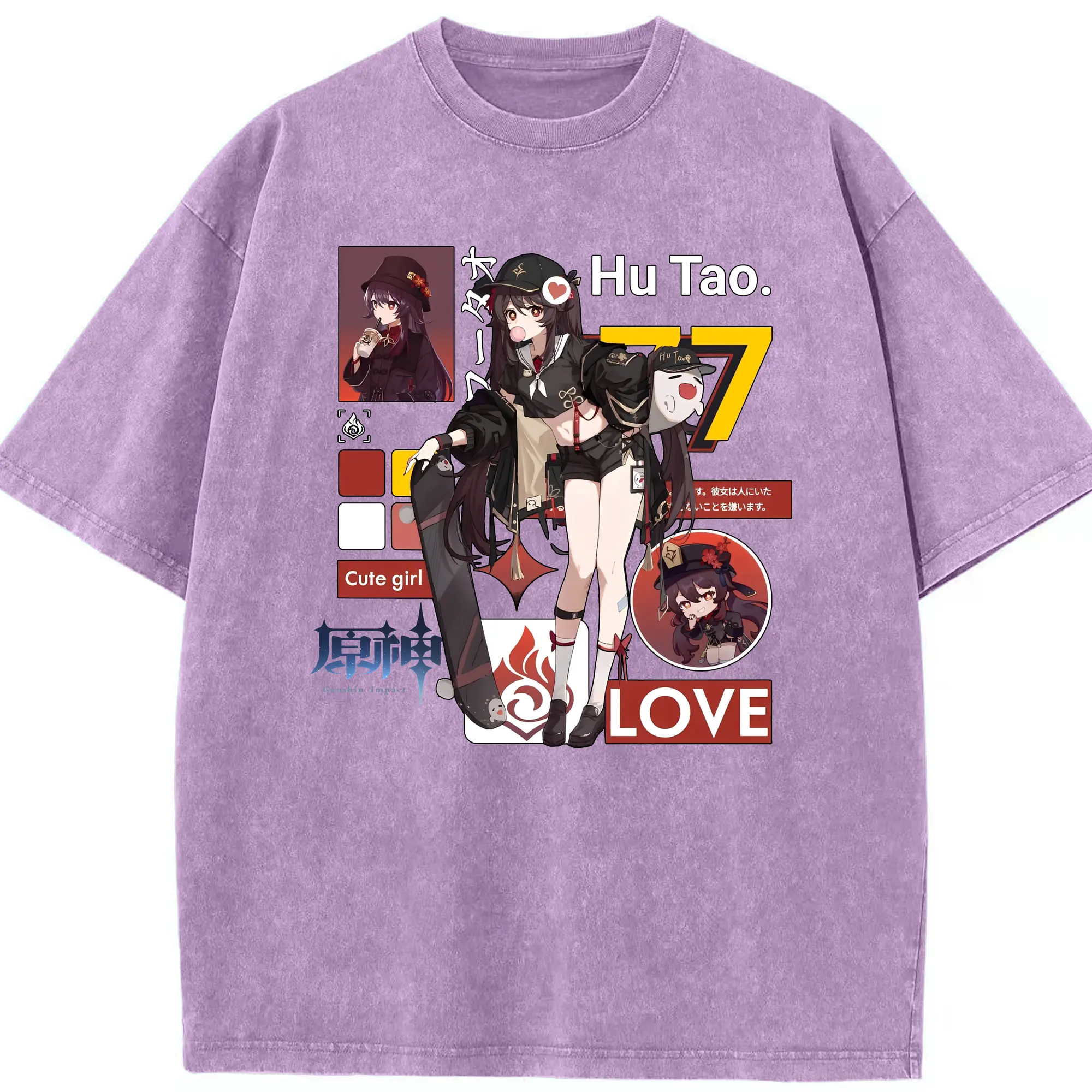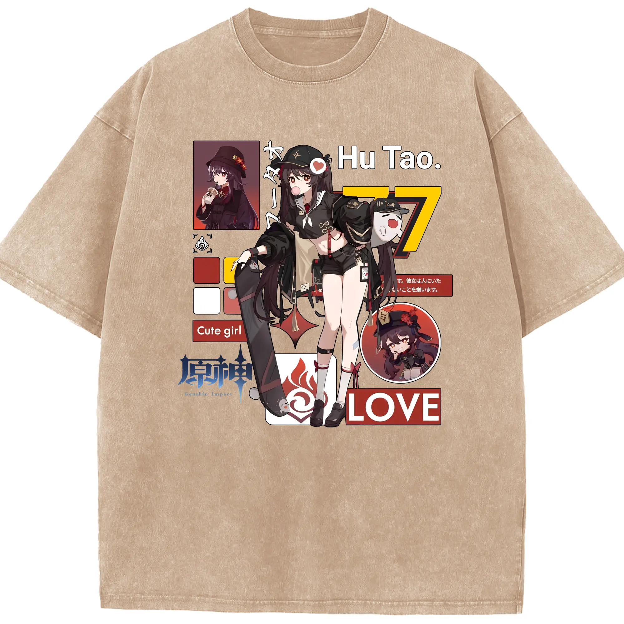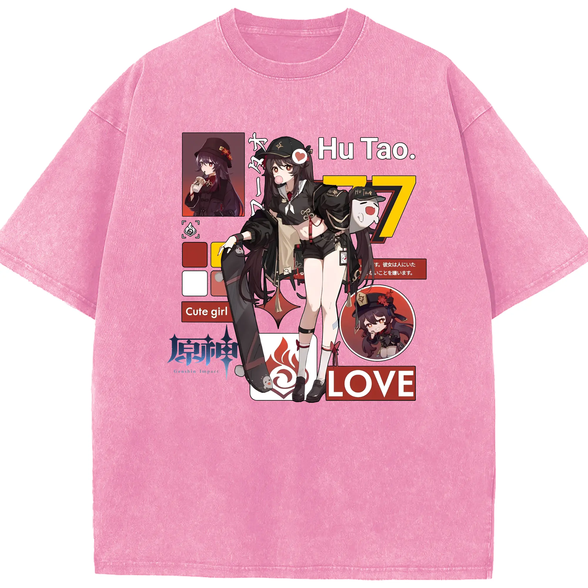 2025年最新 胡桃 キャラクター - 綿100% 半袖Tシャツ ・ フロントプリント ・ 快適 通気性 ・ 日常使い 散歩 スポーツ用