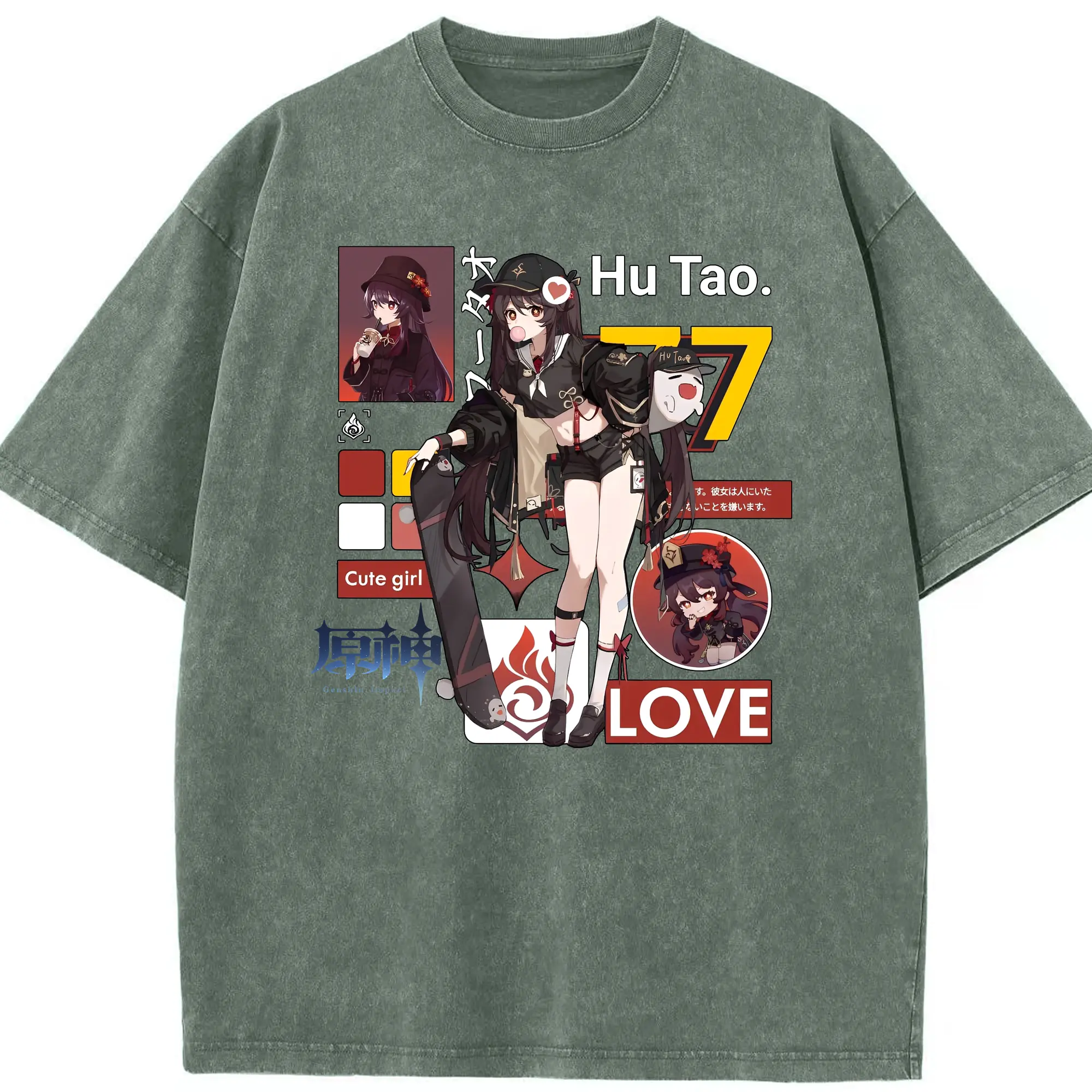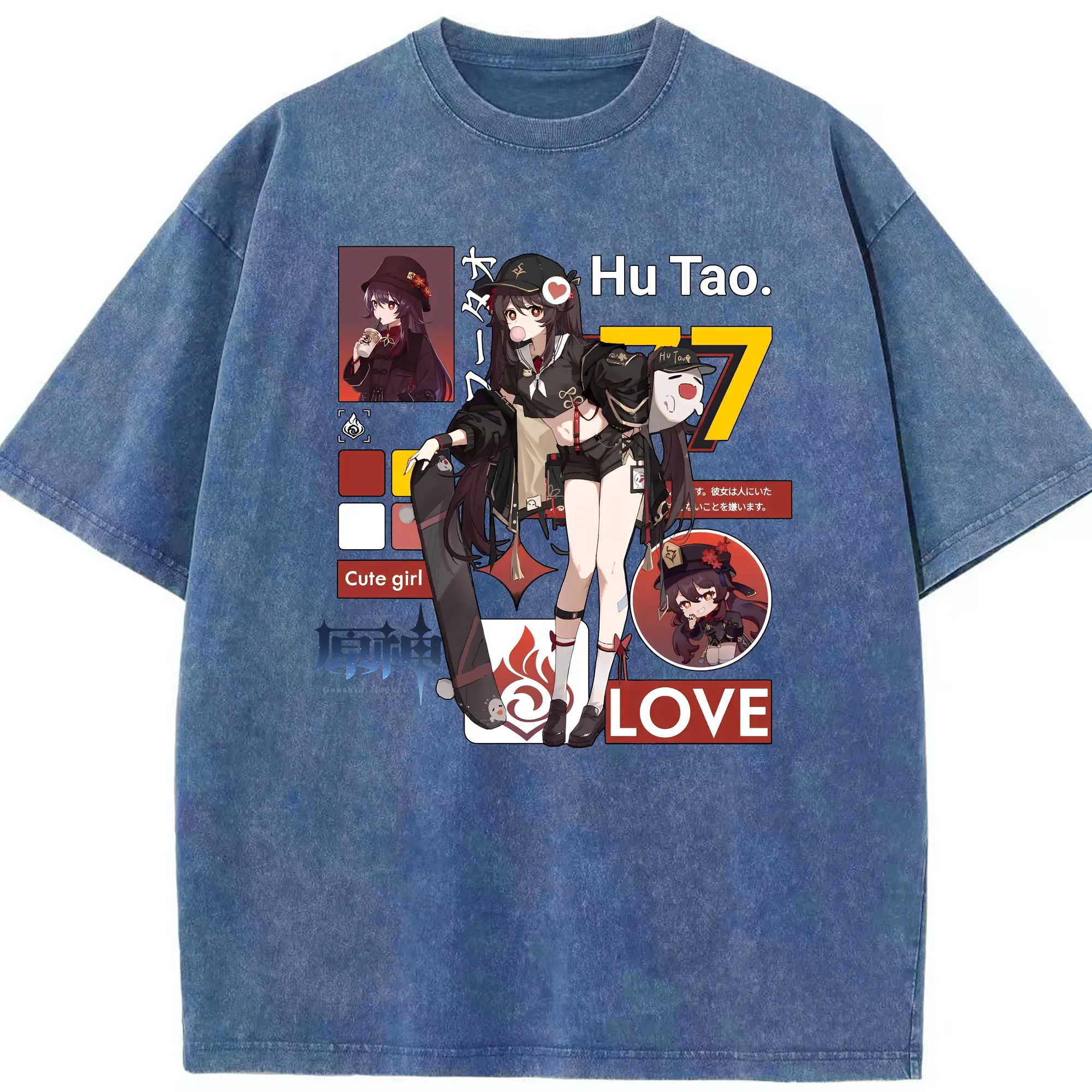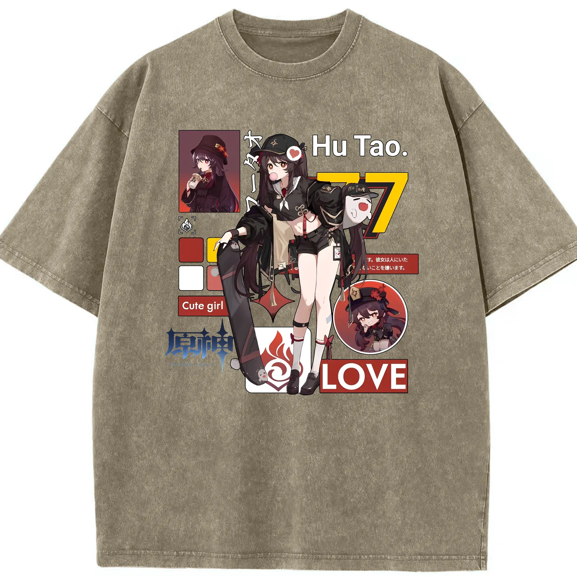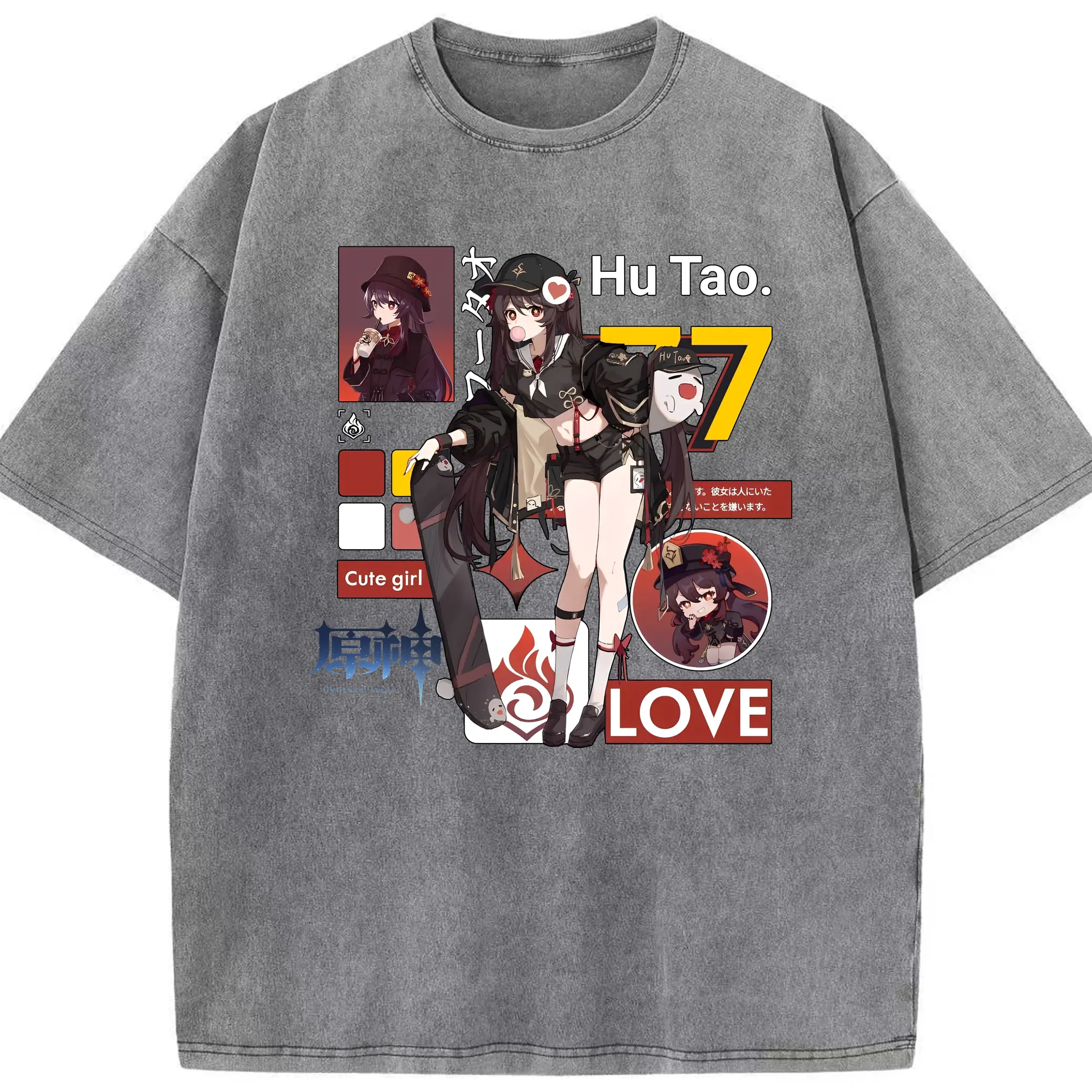 2025年最新 胡桃 キャラクター - 綿100% 半袖Tシャツ ・ フロントプリント ・ 快適 通気性 ・ 日常使い 散歩 スポーツ用