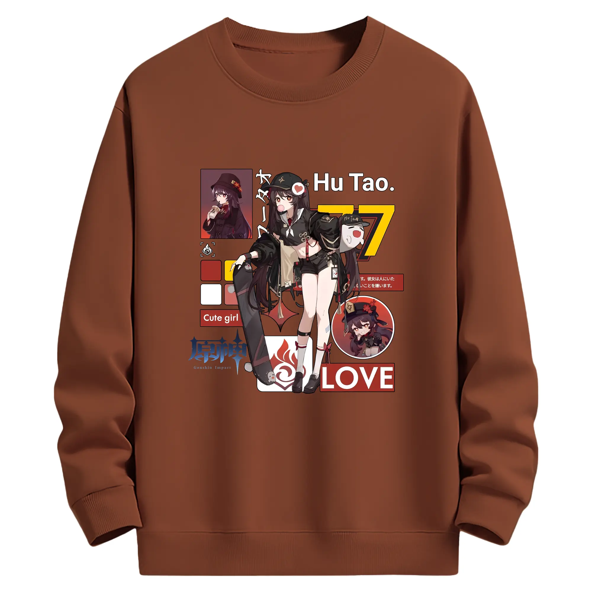 2025年最新 胡桃 キャラクター - 綿100% 半袖Tシャツ ・ フロントプリント ・ 快適 通気性 ・ 日常使い 散歩 スポーツ用