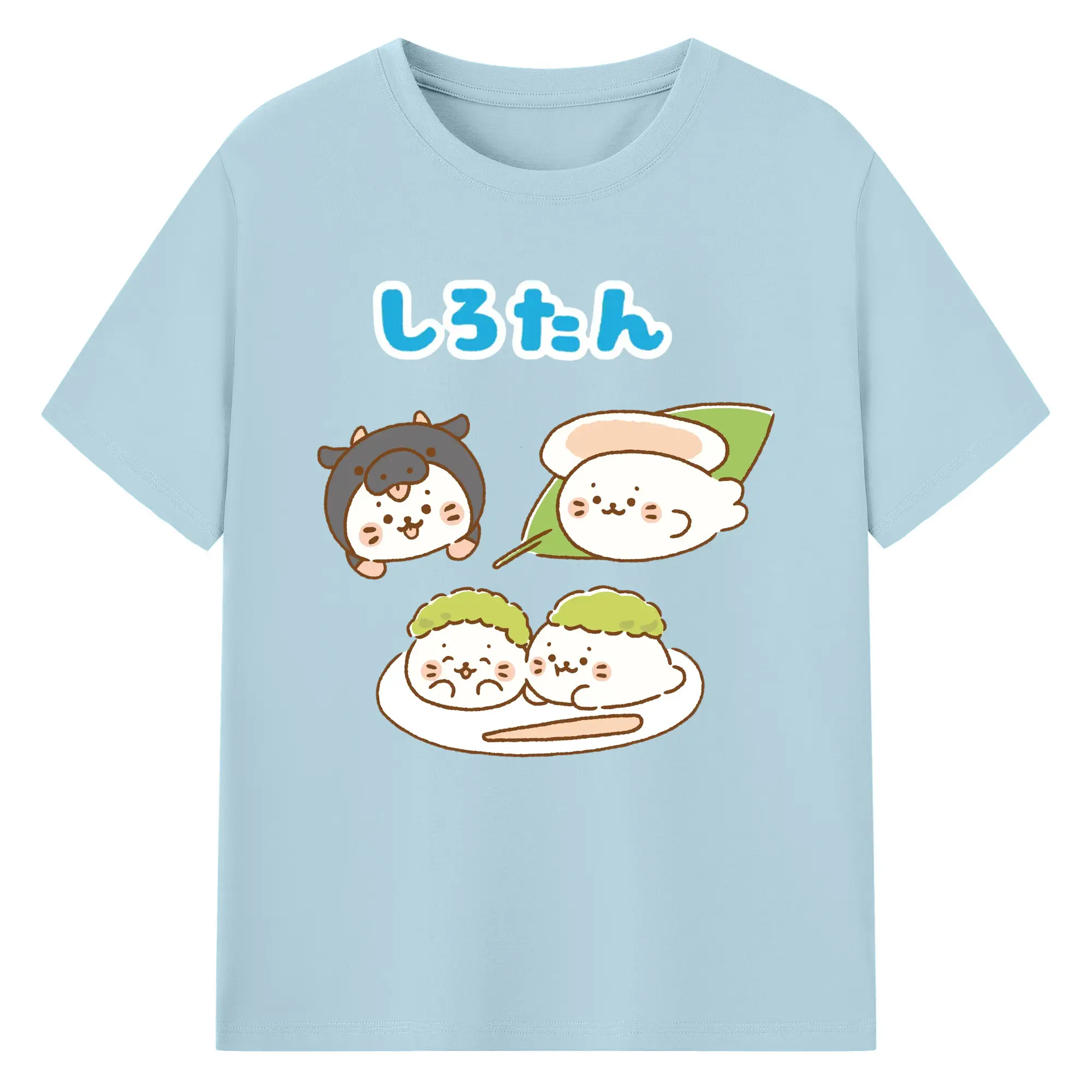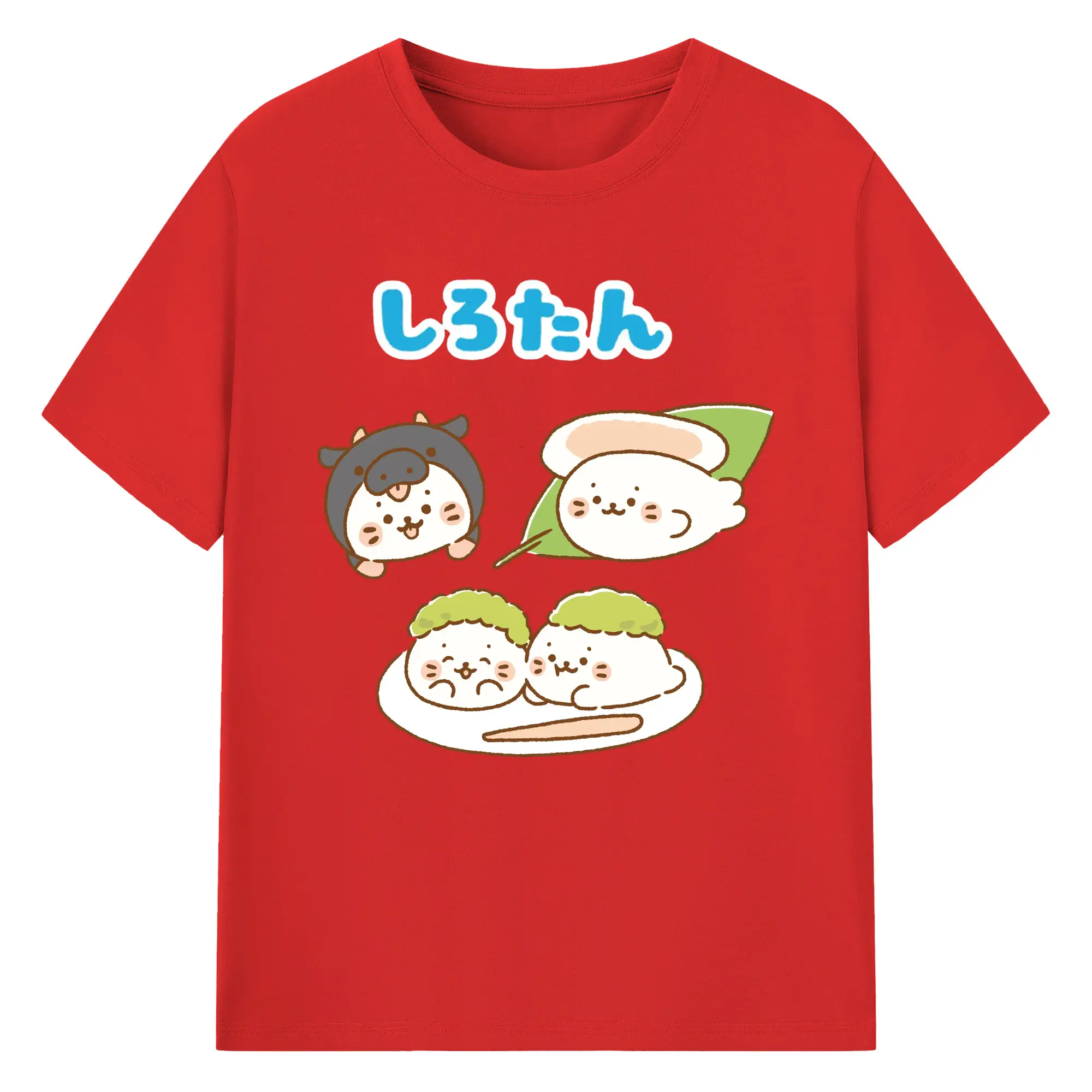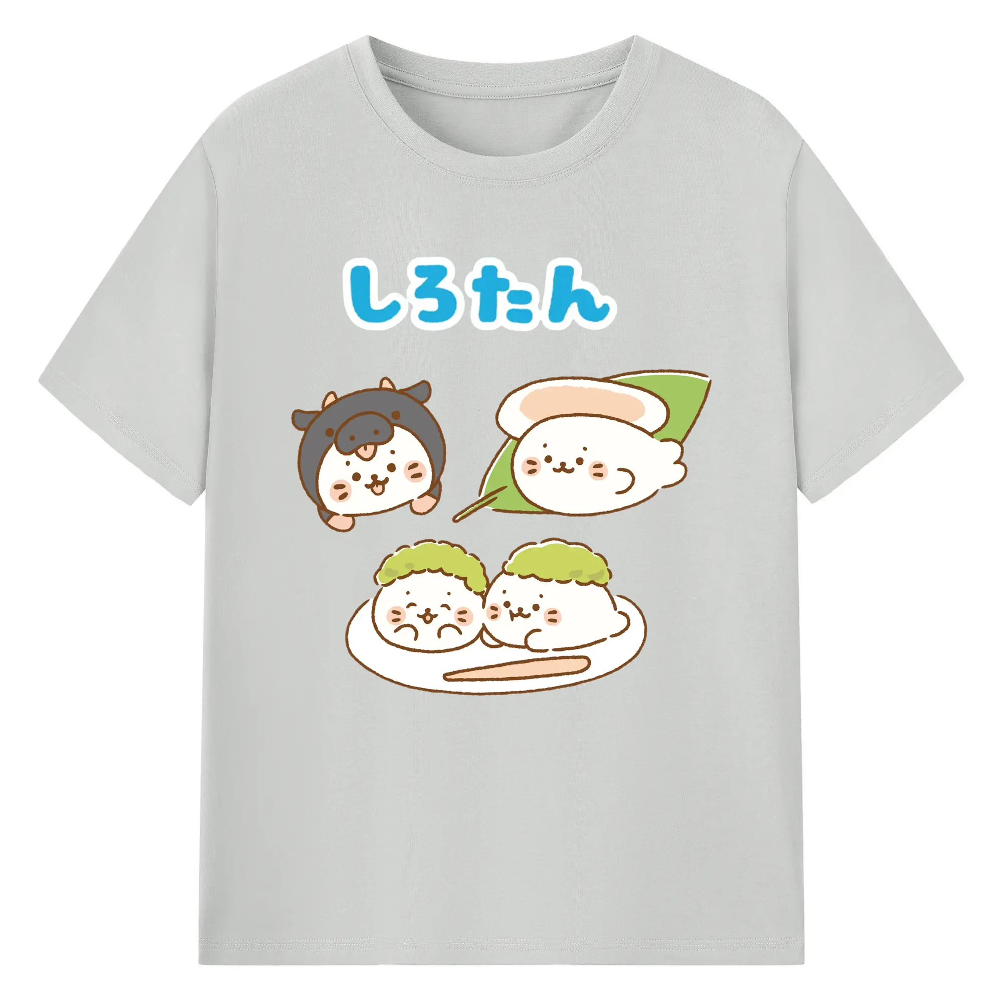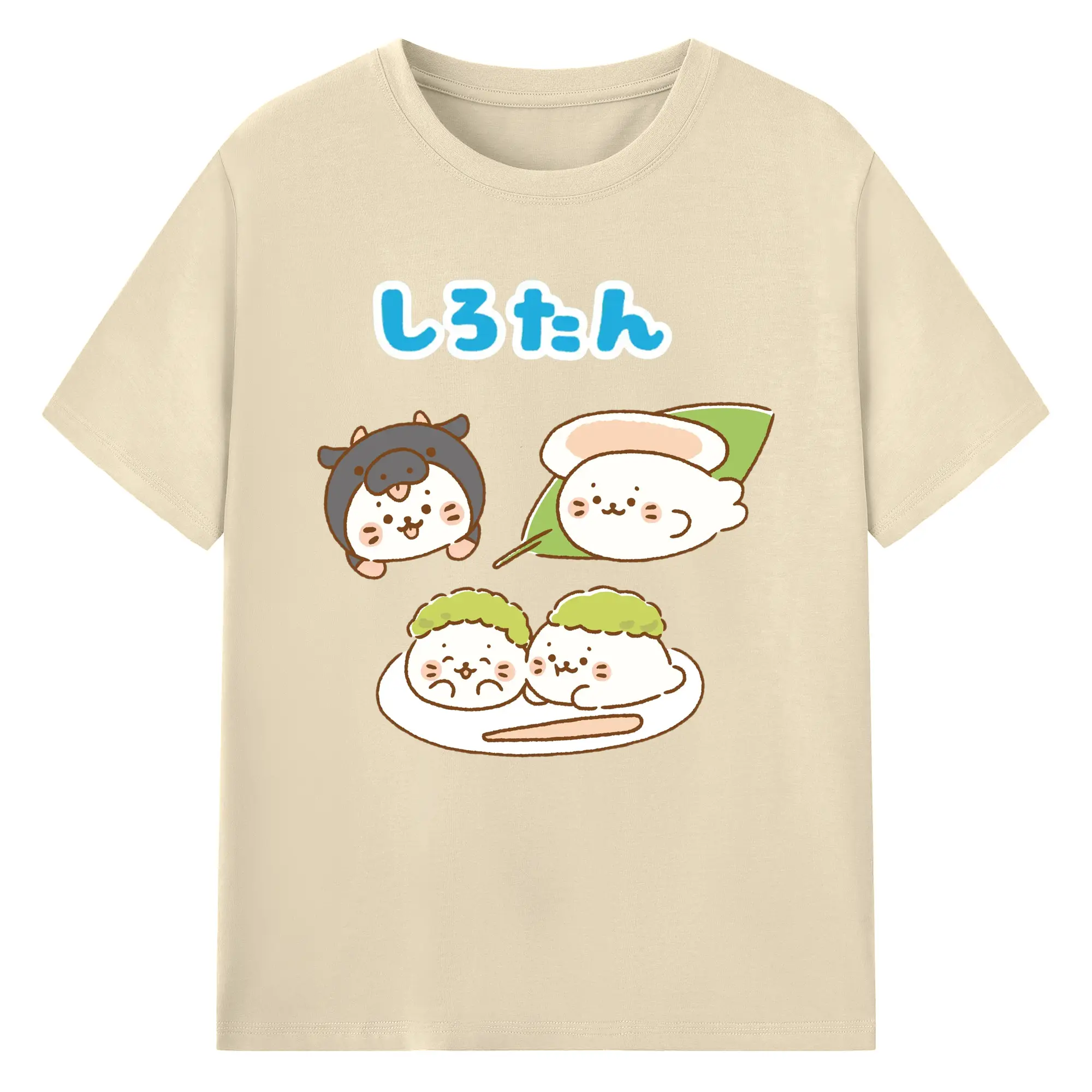 2025新作しろたんふんわり - 綿100% ヴィンテージ風 半袖Tシャツ ・ フロントプリント ・ 柔らか肌触り ・ 通気性 快適 ・ スポーツ カジュアル 外出用