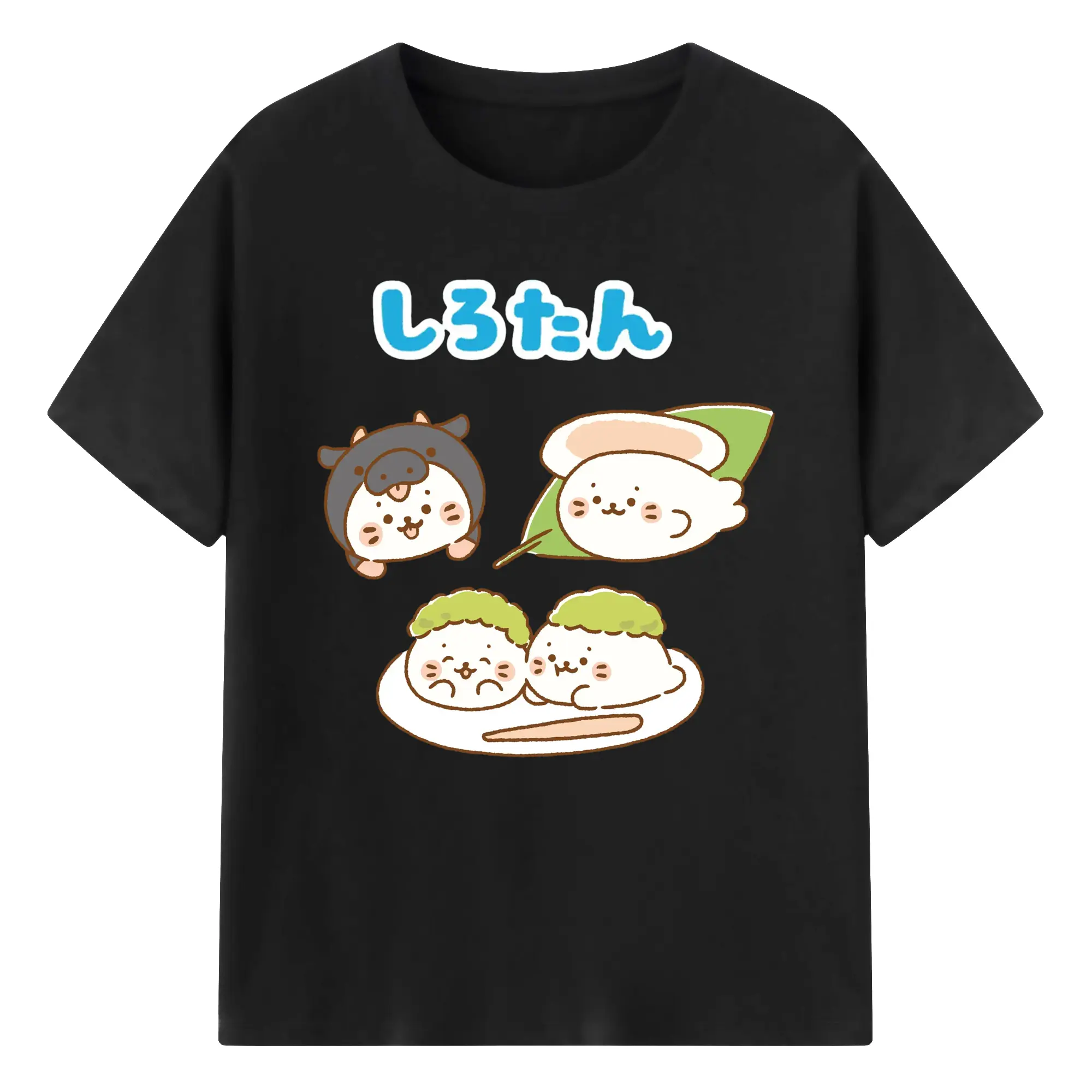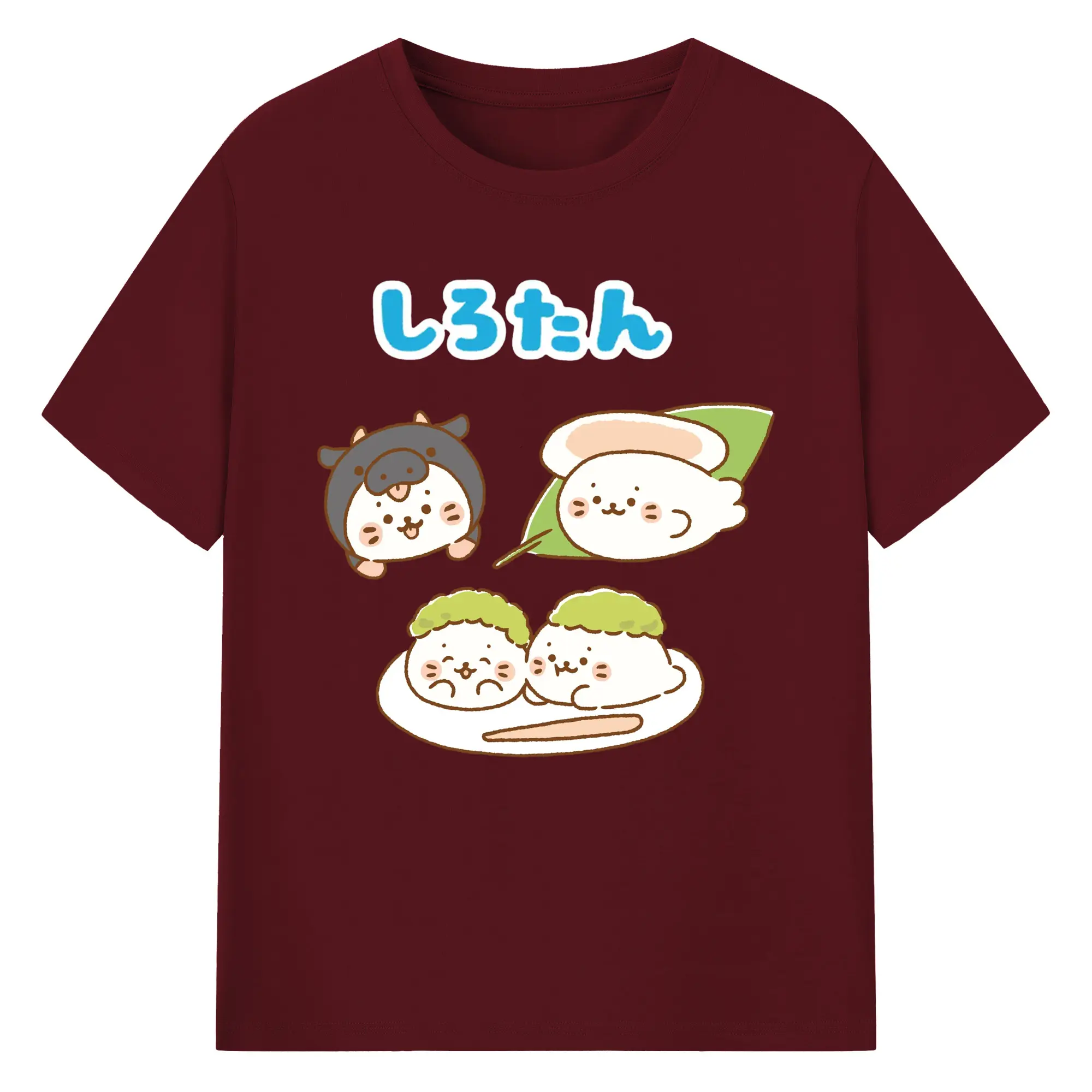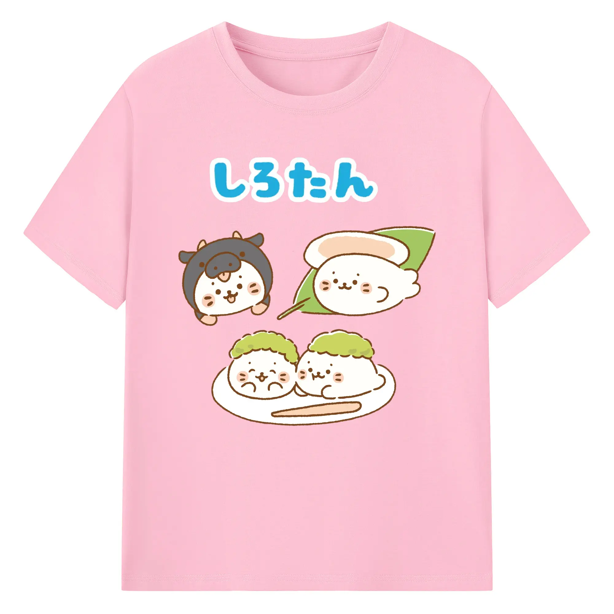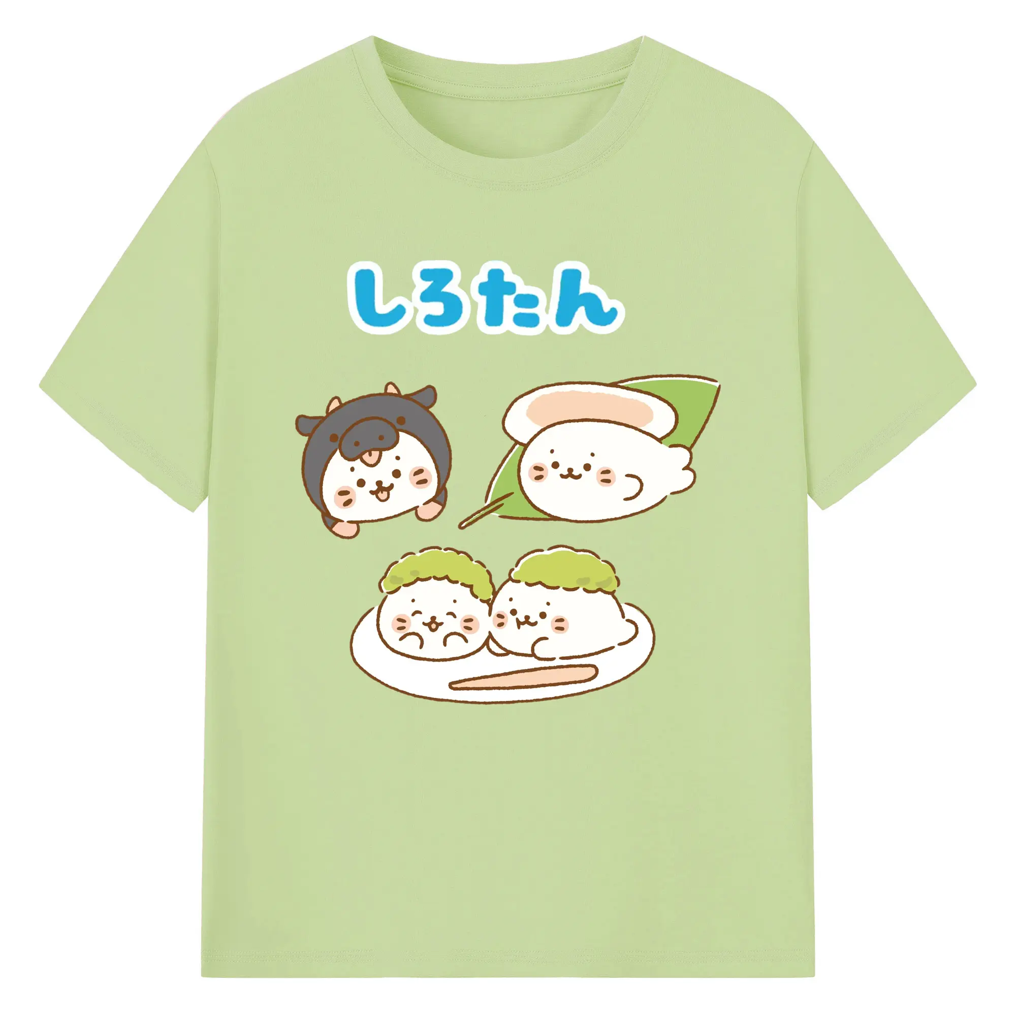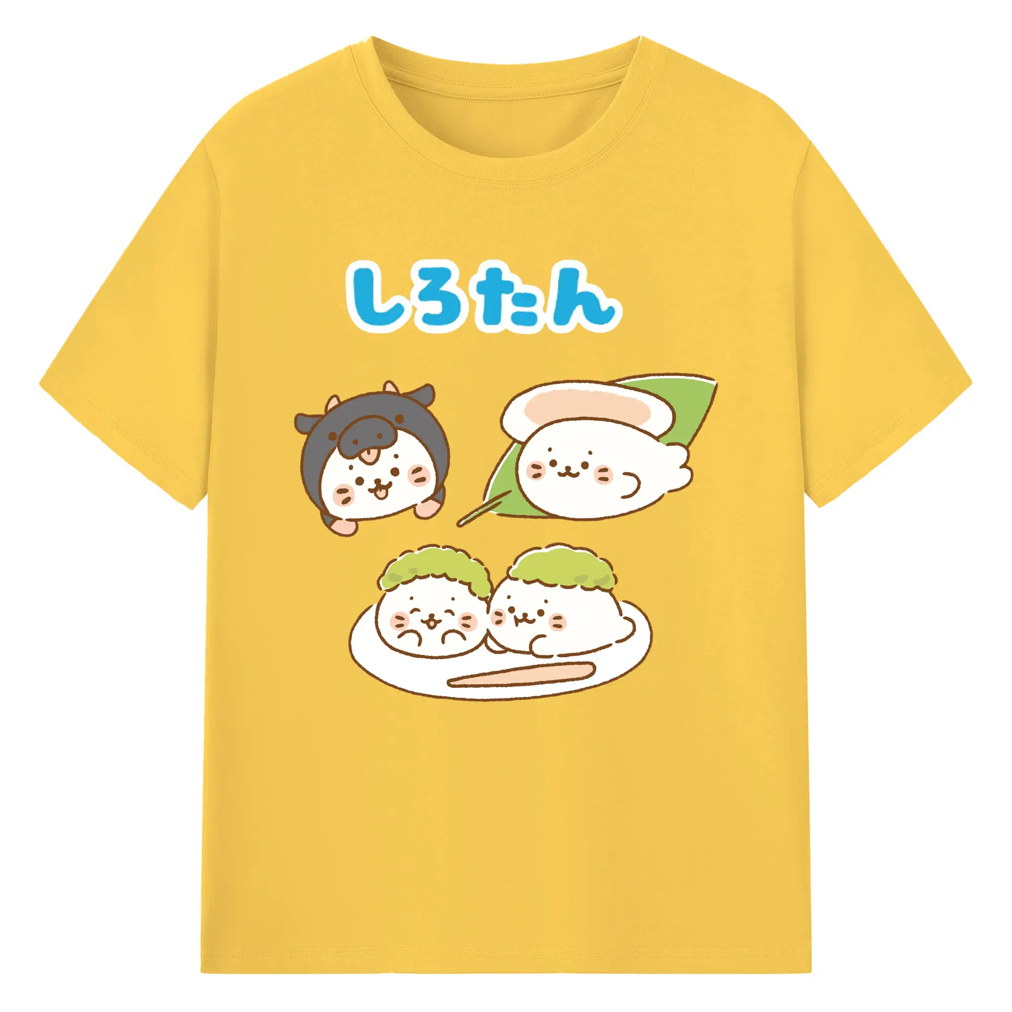 2025新作しろたんふんわり - 綿100% ヴィンテージ風 半袖Tシャツ ・ フロントプリント ・ 柔らか肌触り ・ 通気性 快適 ・ スポーツ カジュアル 外出用