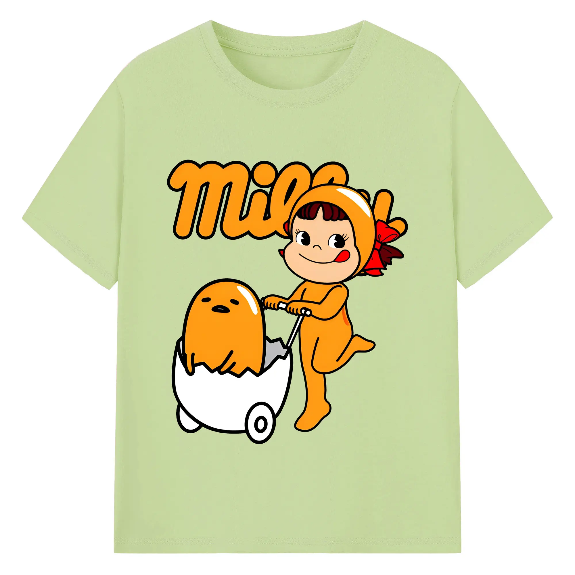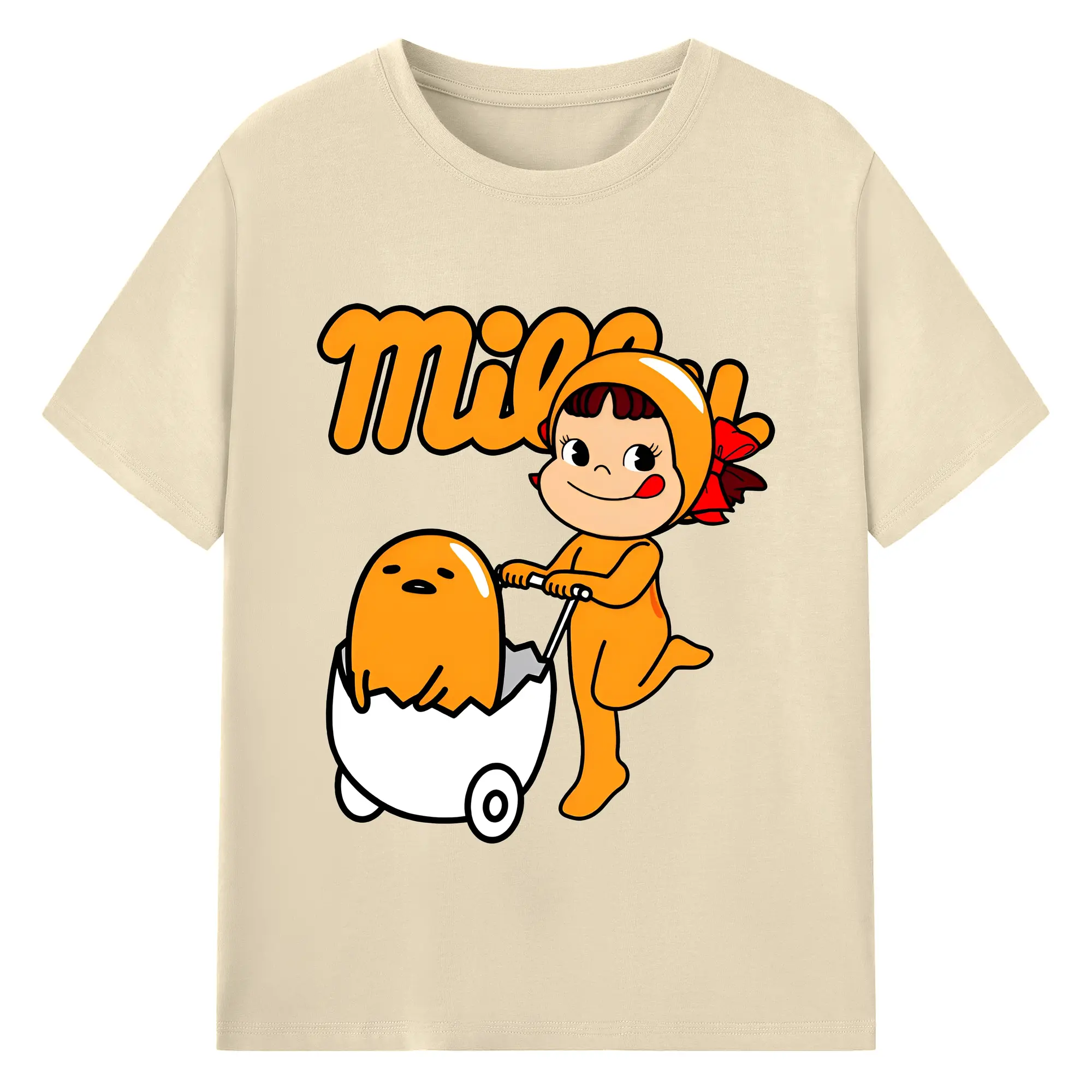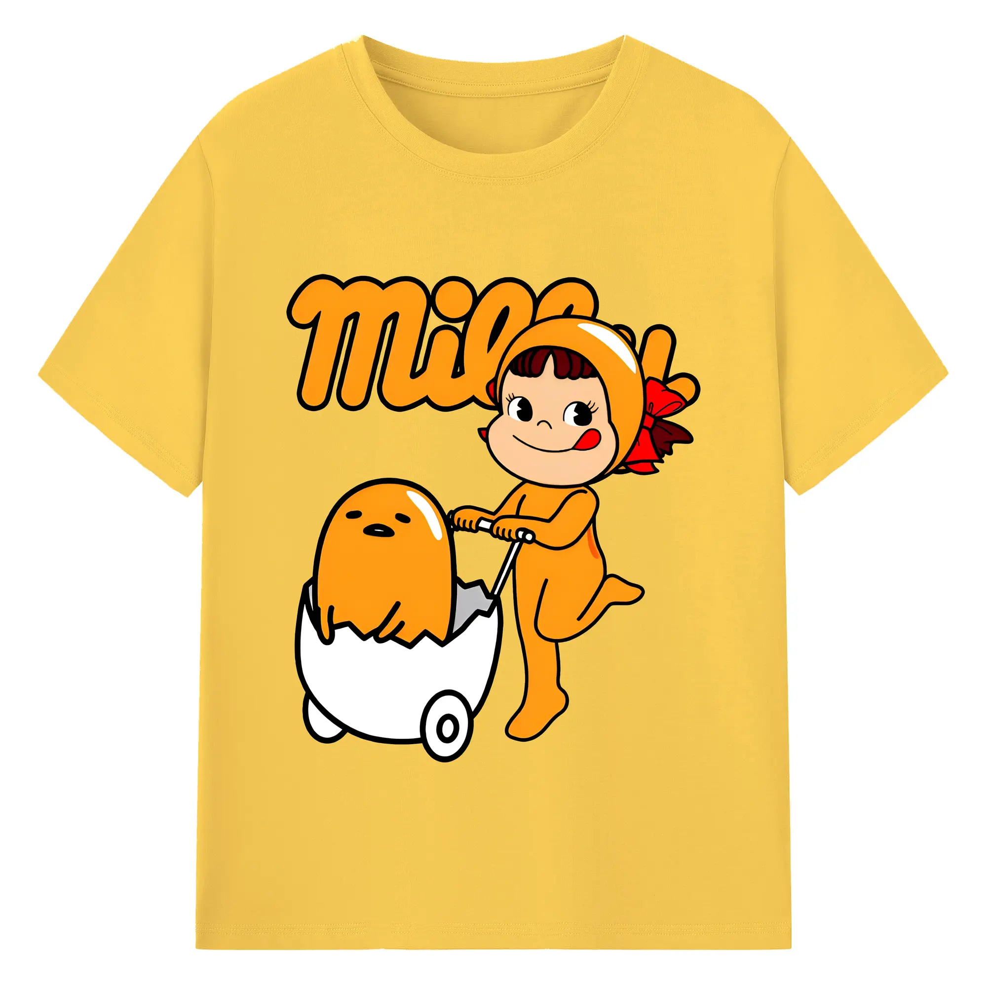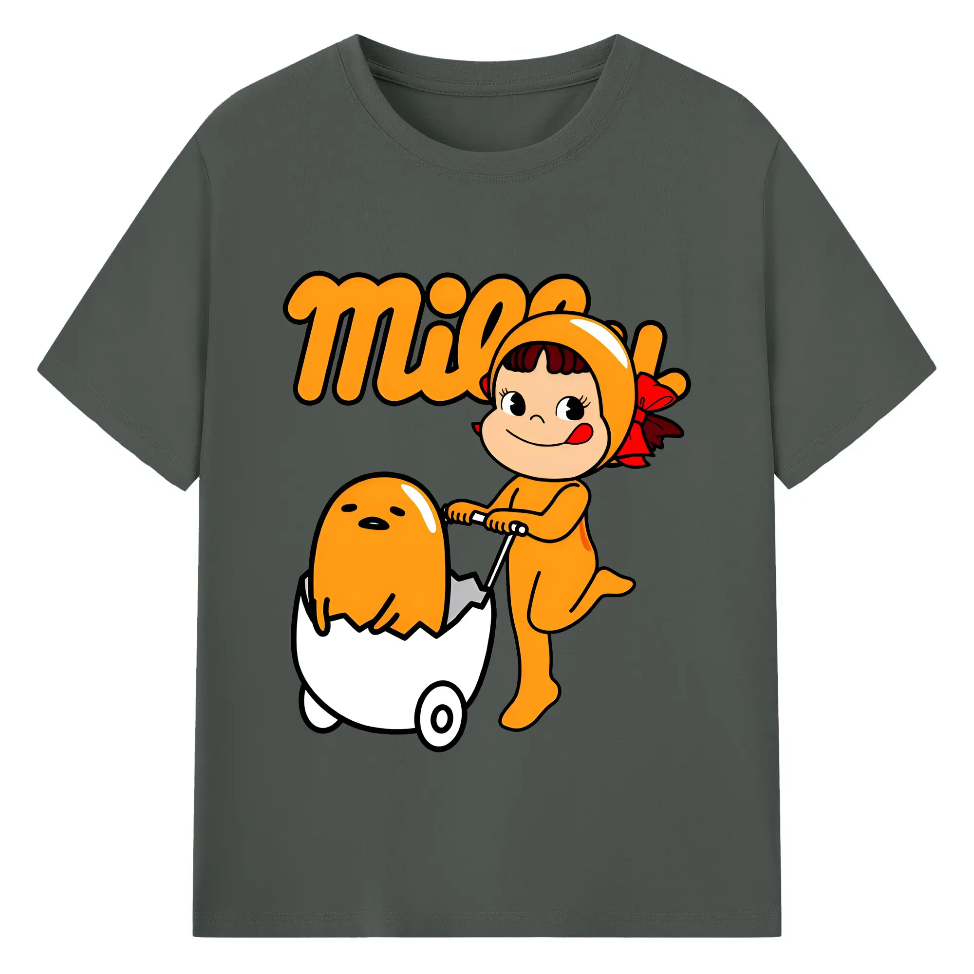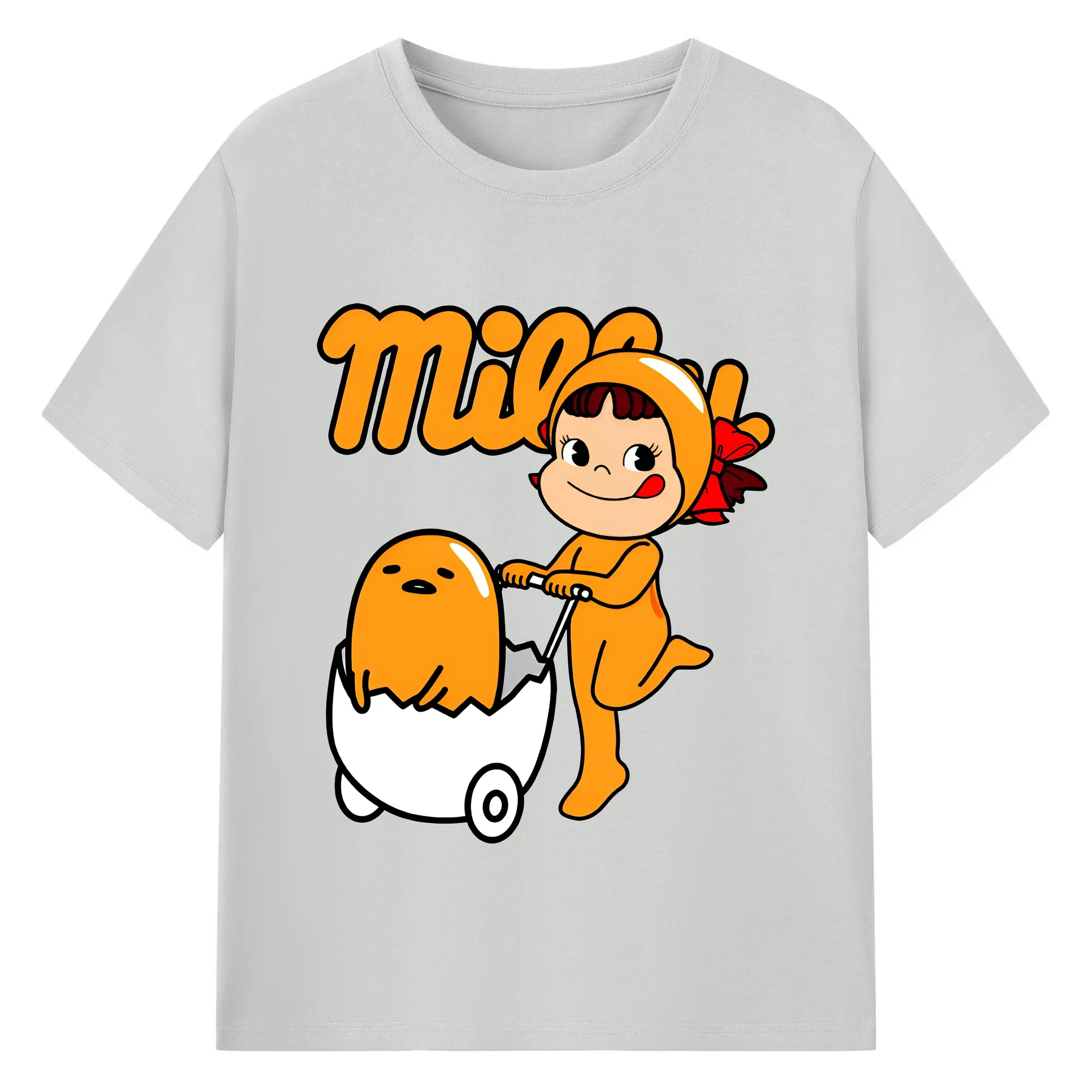 2025新作ペコちゃん&ぐでたま - 綿100% ヴィンテージ風 半袖Tシャツ ・ フロントプリント ・ 柔らか肌触り ・ 通気性 快適 ・ スポーツ カジュアル 外出用