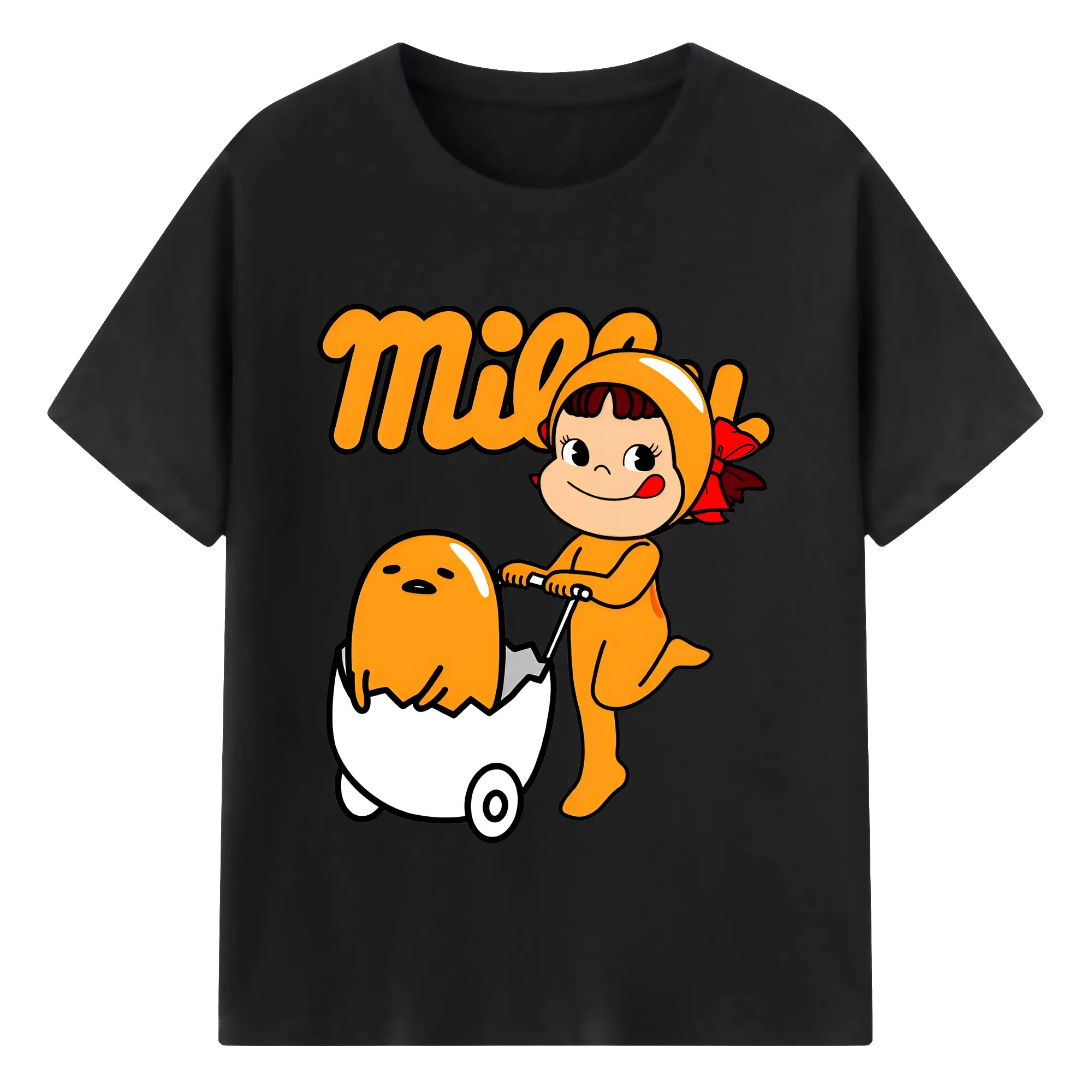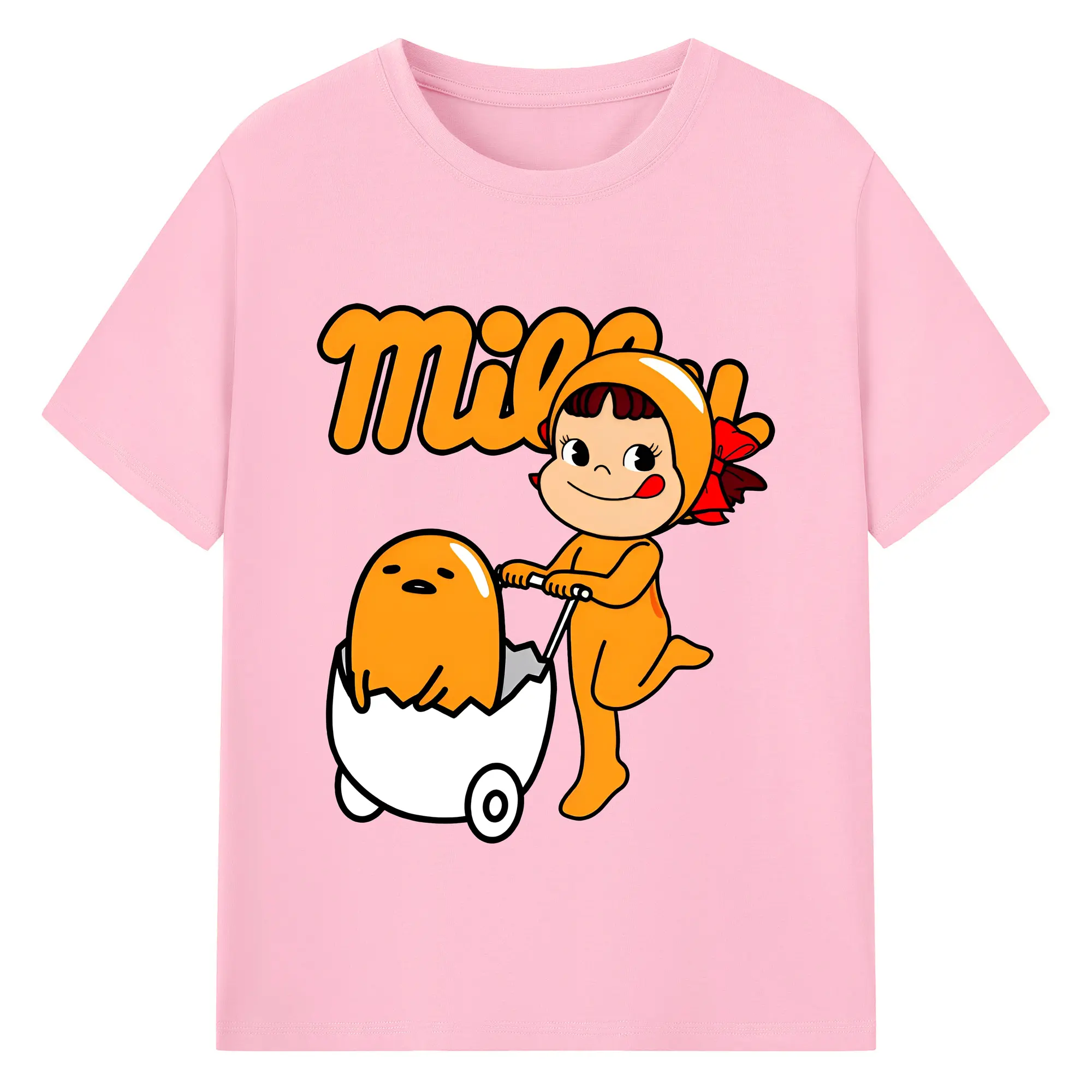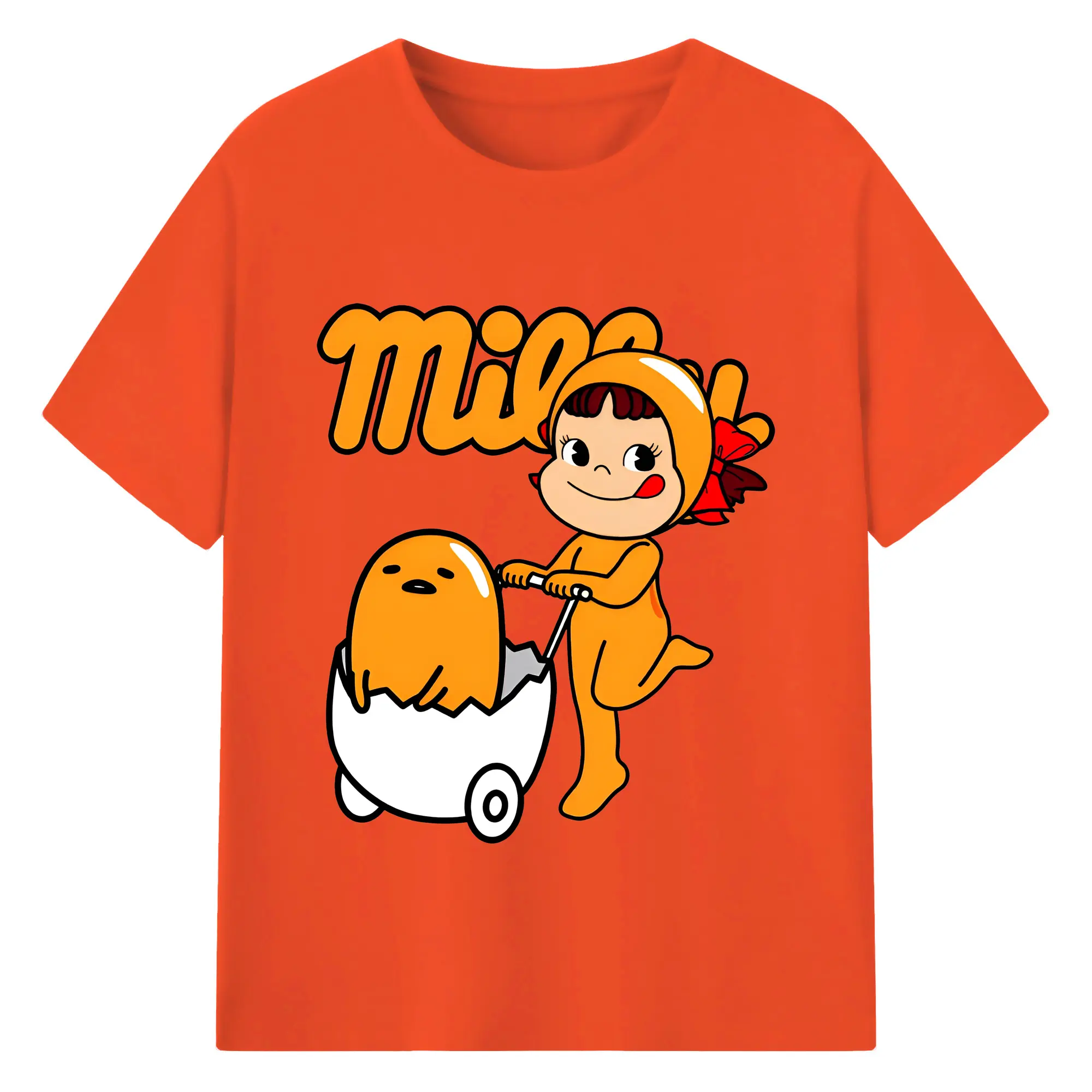不二家 ペコちゃん スイーツ ミルク味 お菓子 - 綿100% 半袖Tシャツ ・ フロントプリント ・ 快適 通気性 ・ 日常使い 散歩 スポーツ用