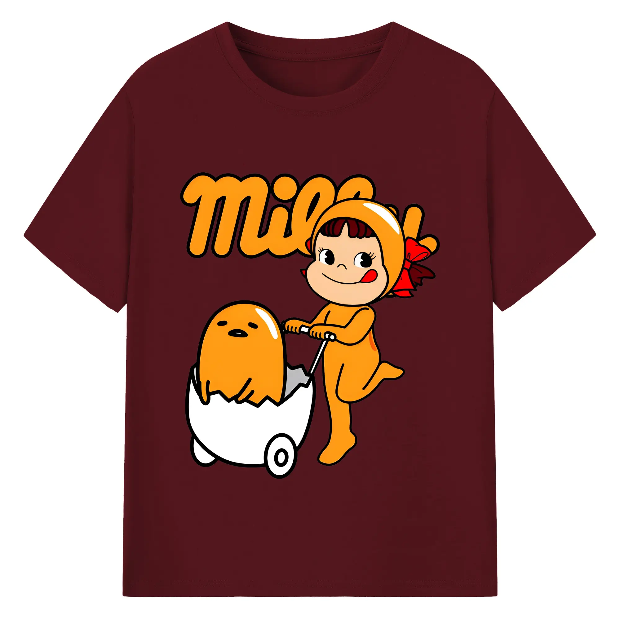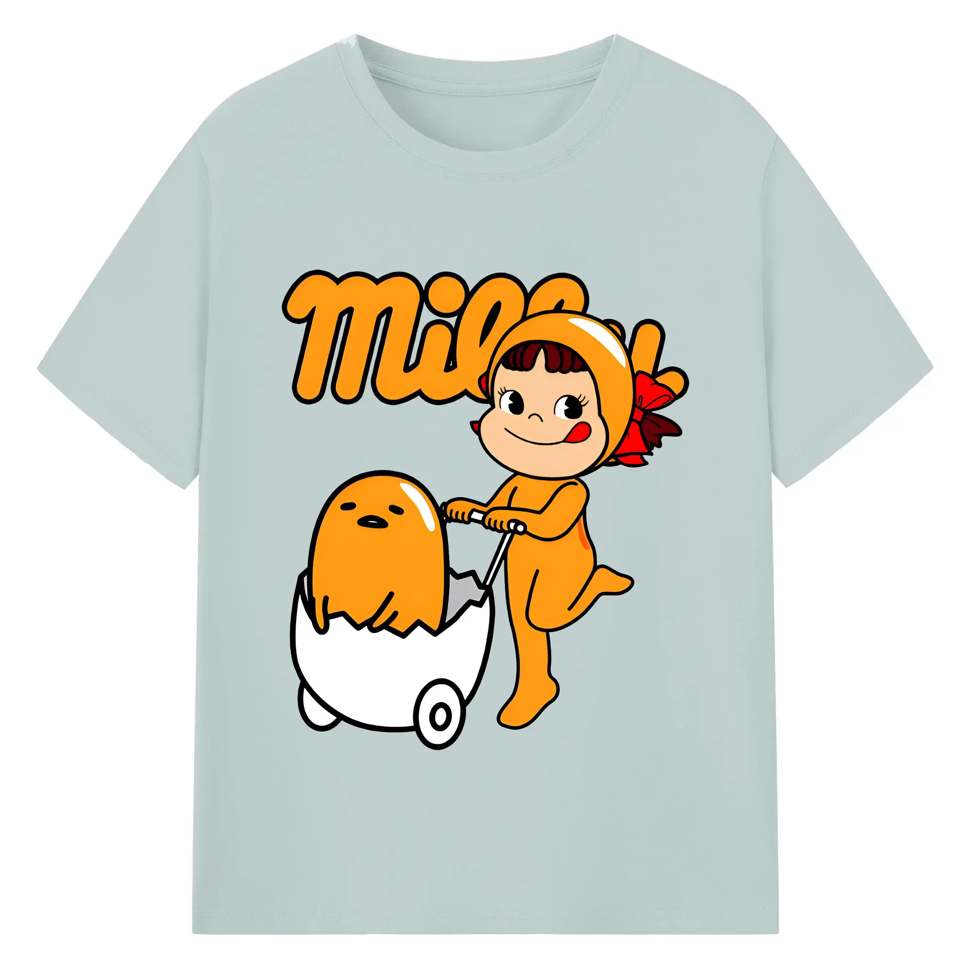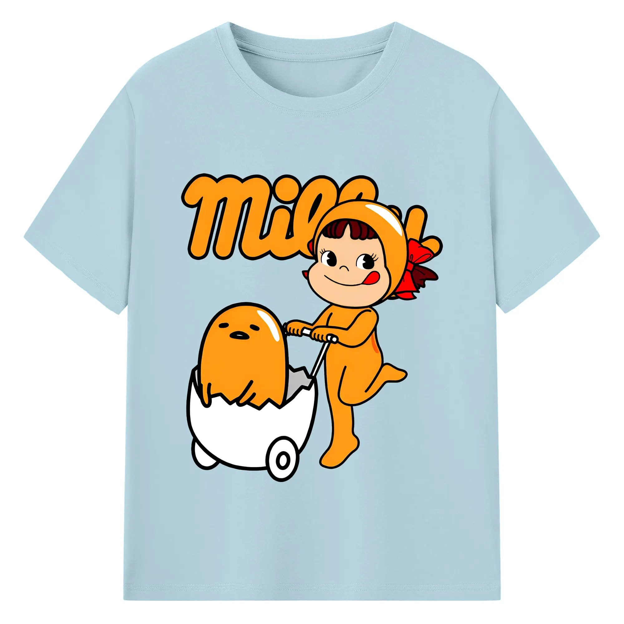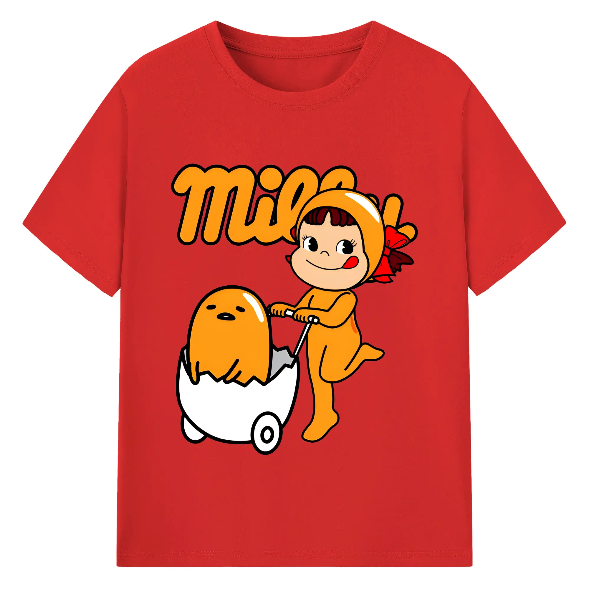 不二家 ペコちゃん スイーツ ミルク味 お菓子 - 綿100% 半袖Tシャツ ・ フロントプリント ・ 快適 通気性 ・ 日常使い 散歩 スポーツ用