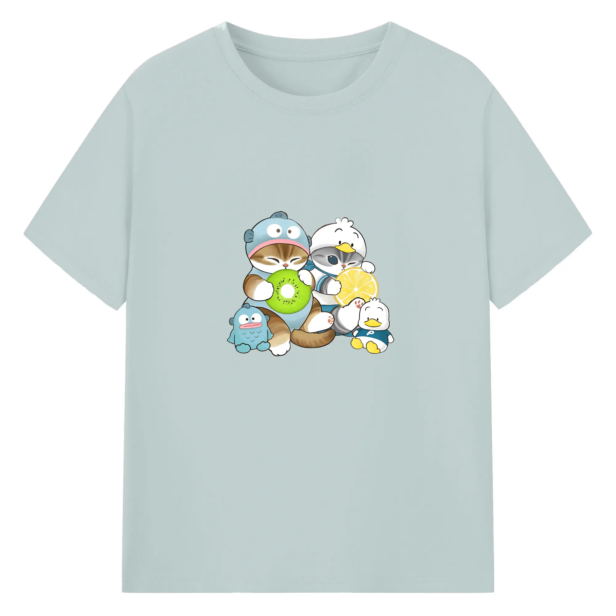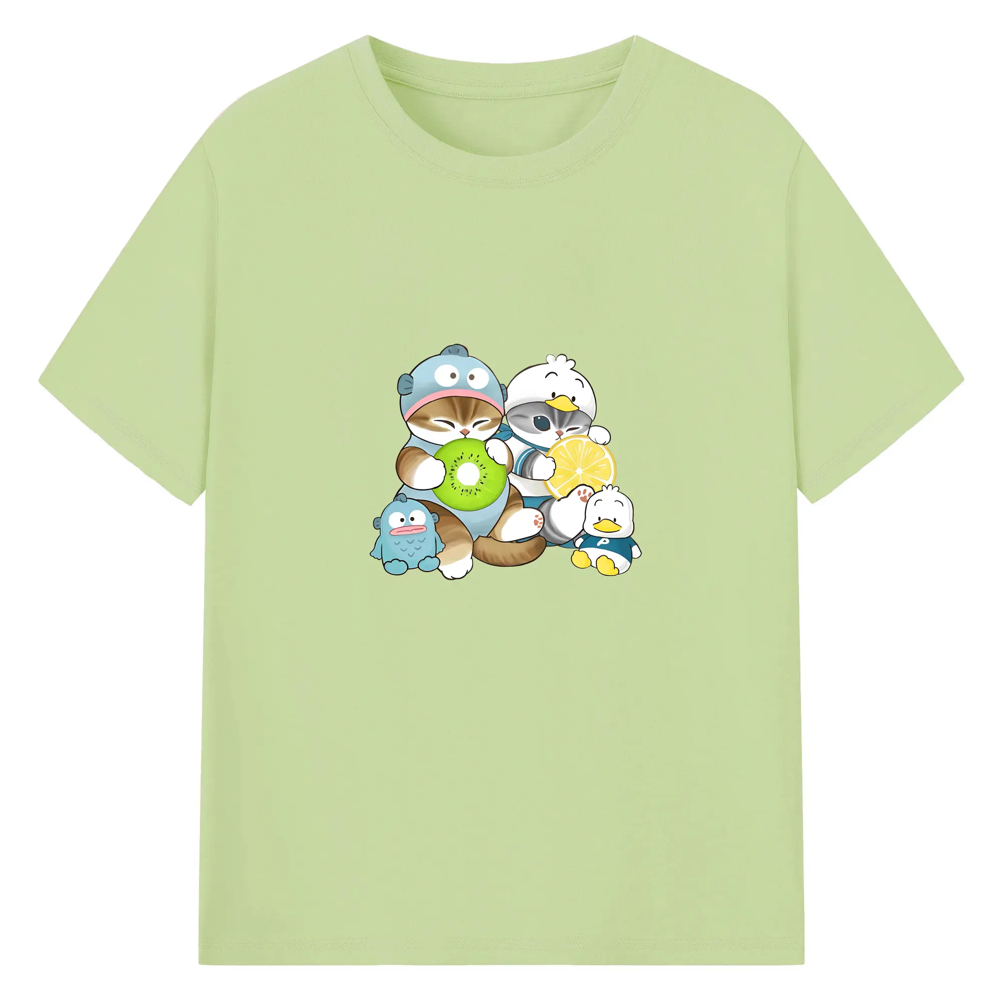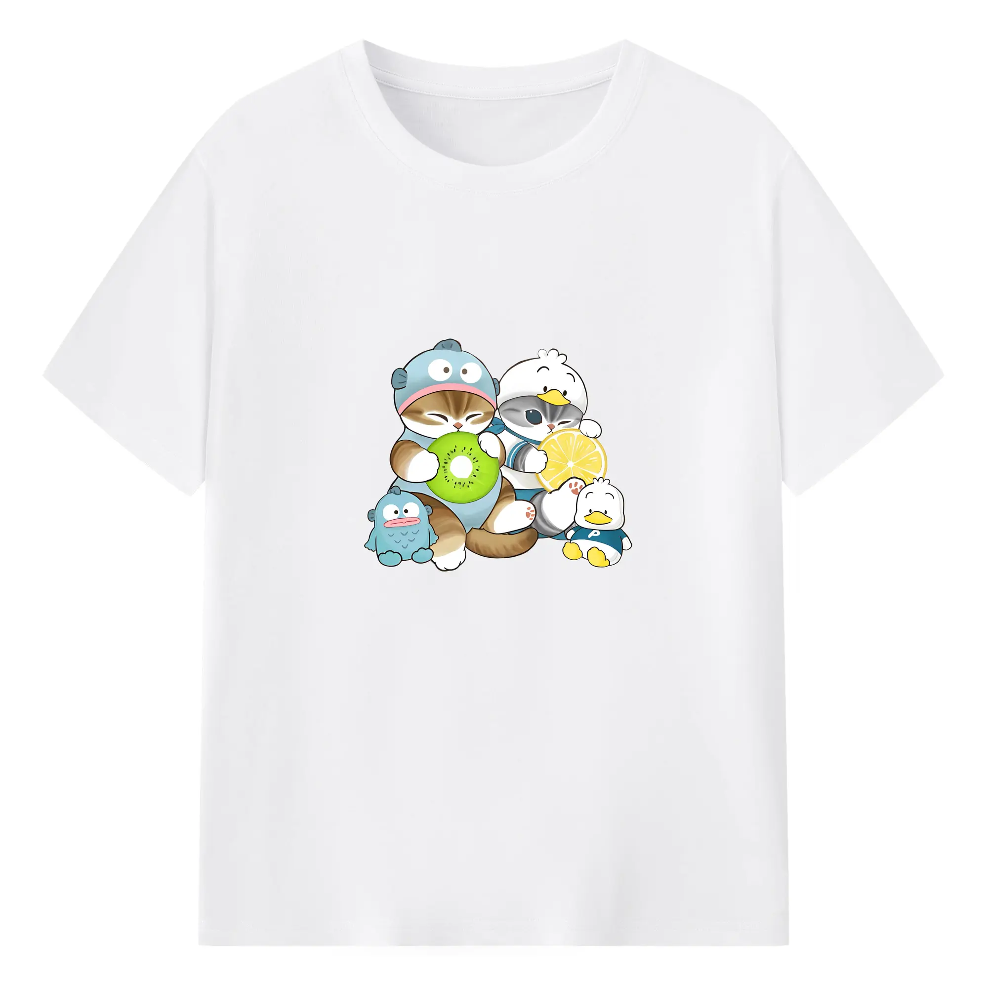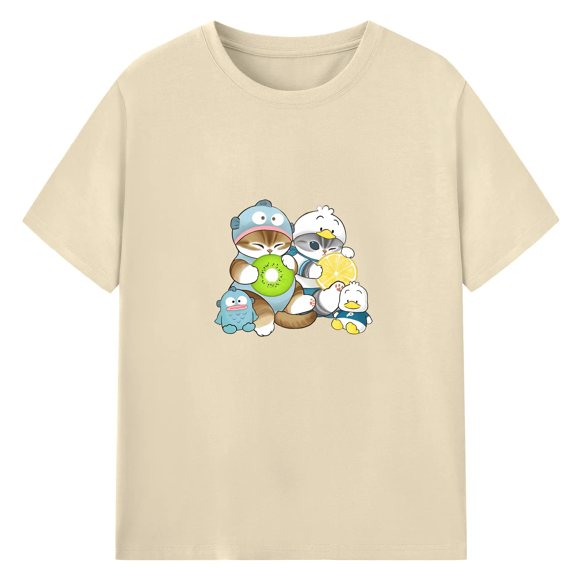 2025新作mofusand&サンリオ - 綿100% ヴィンテージ風 半袖Tシャツ ・ フロントプリント ・ 柔らか肌触り ・ 通気性 快適 ・ スポーツ カジュアル 外出用