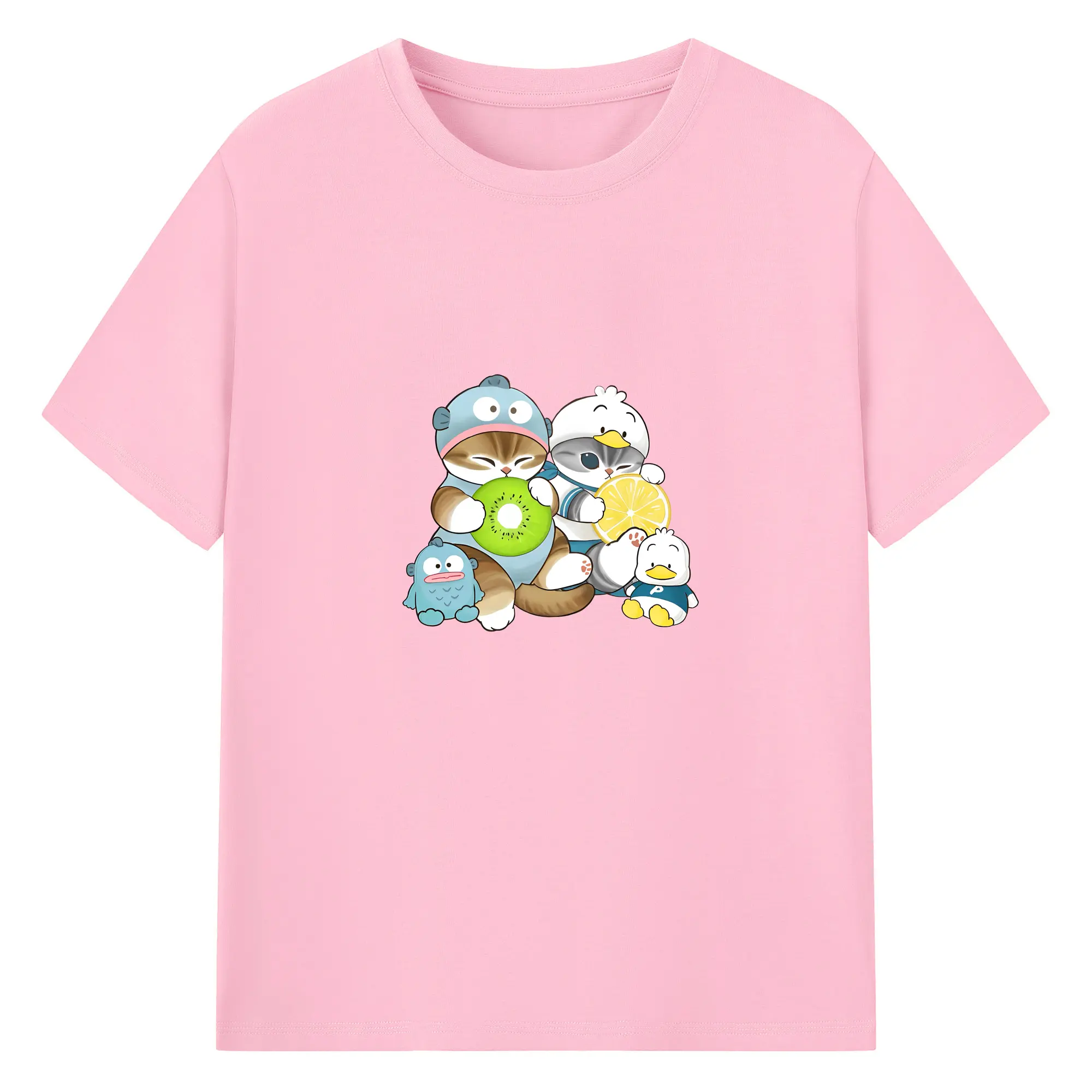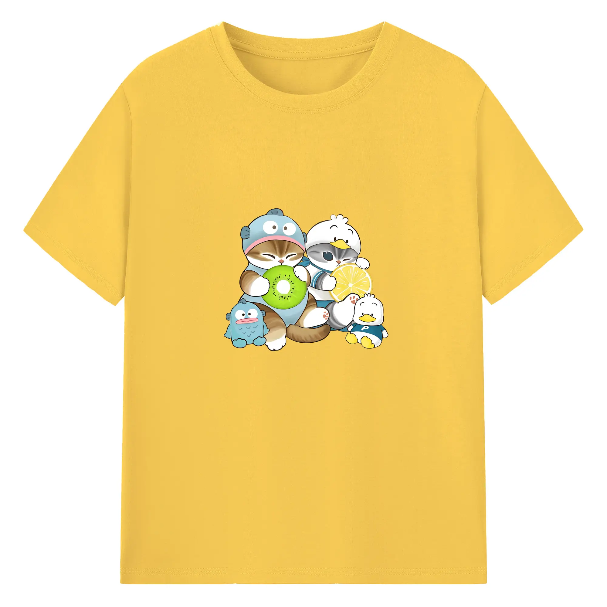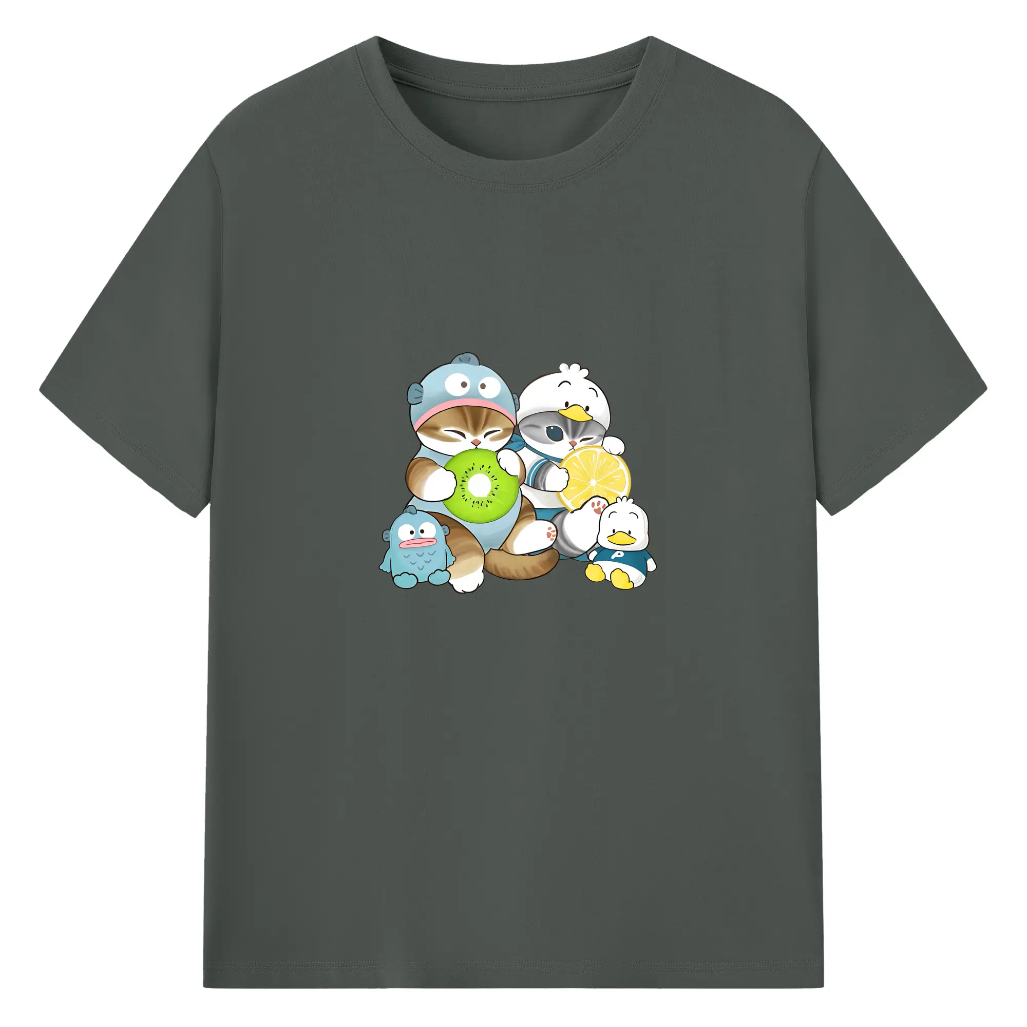 2025新作mofusand&サンリオ - 綿100% ヴィンテージ風 半袖Tシャツ ・ フロントプリント ・ 柔らか肌触り ・ 通気性 快適 ・ スポーツ カジュアル 外出用