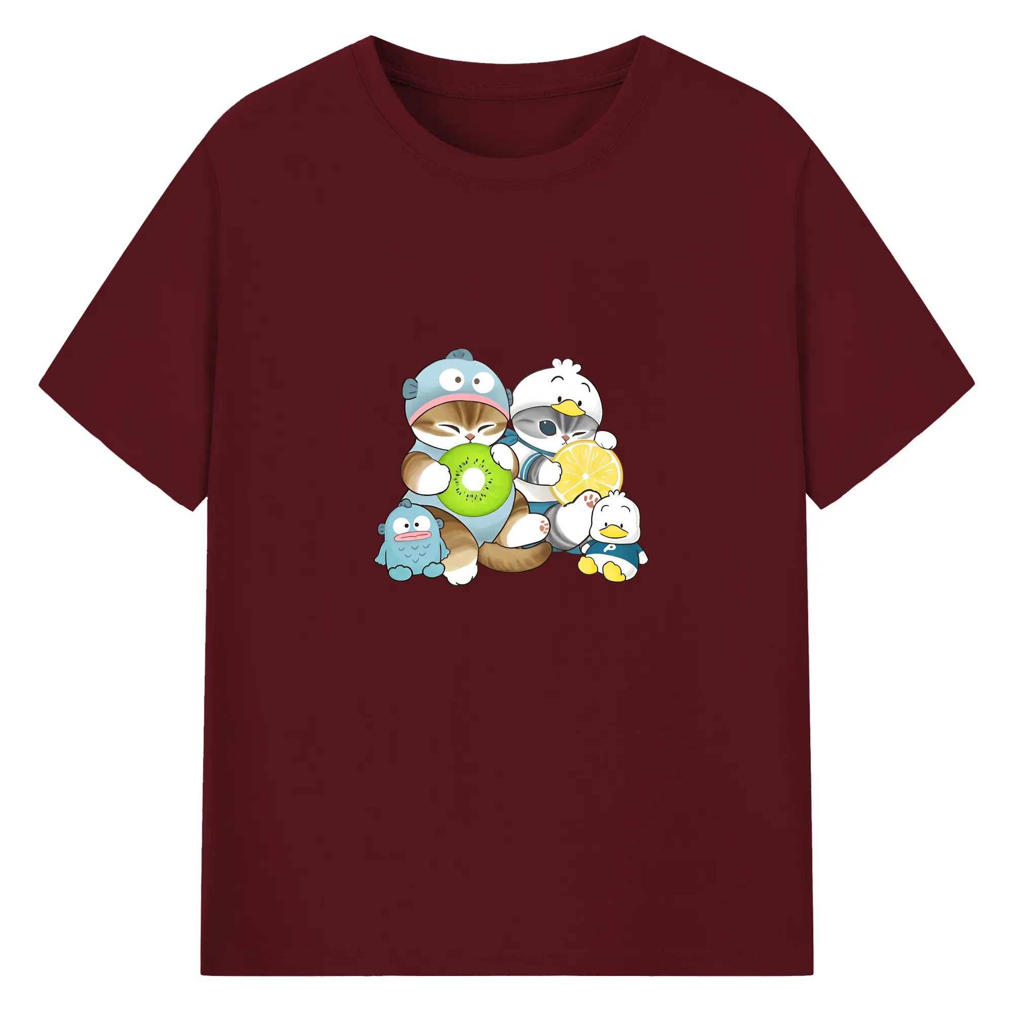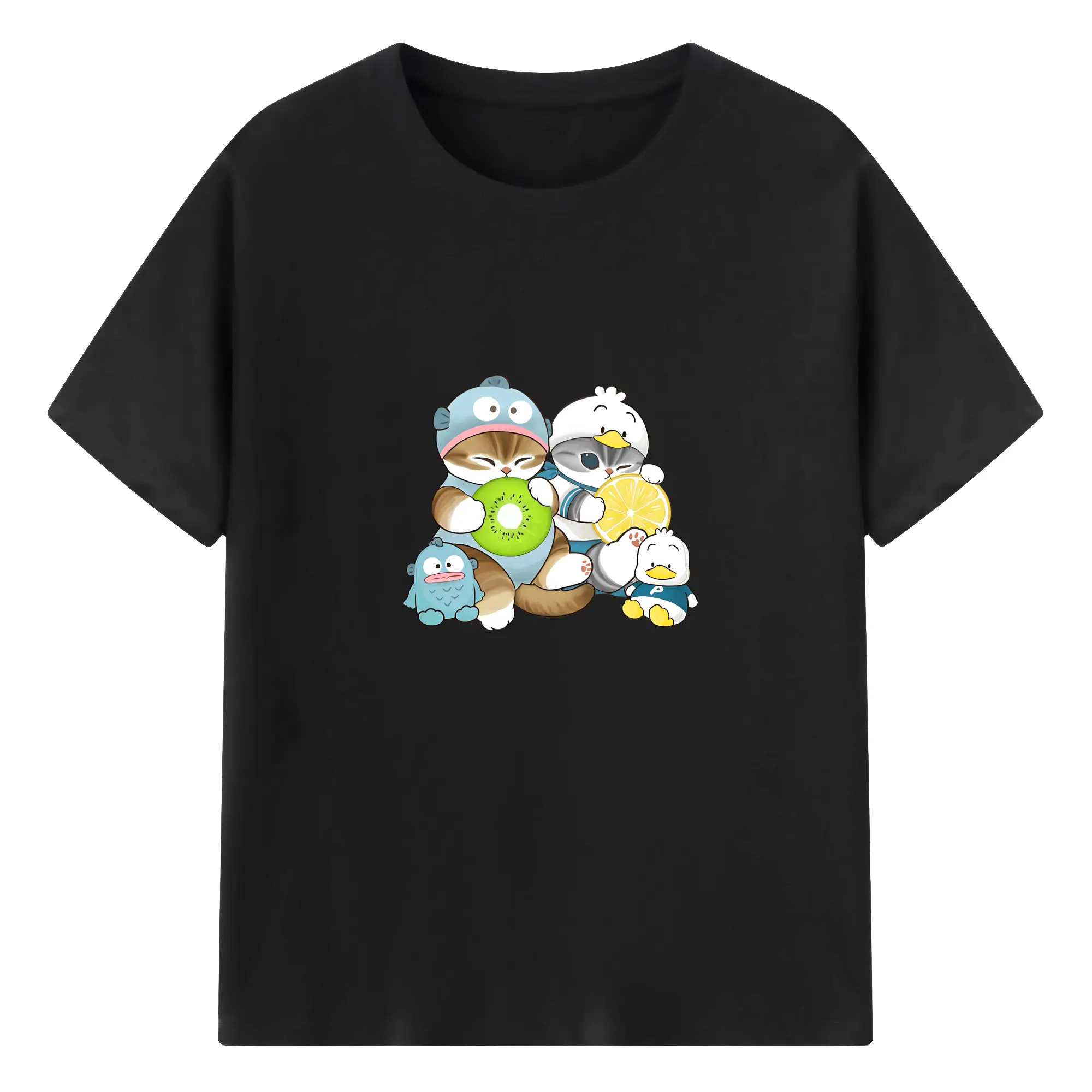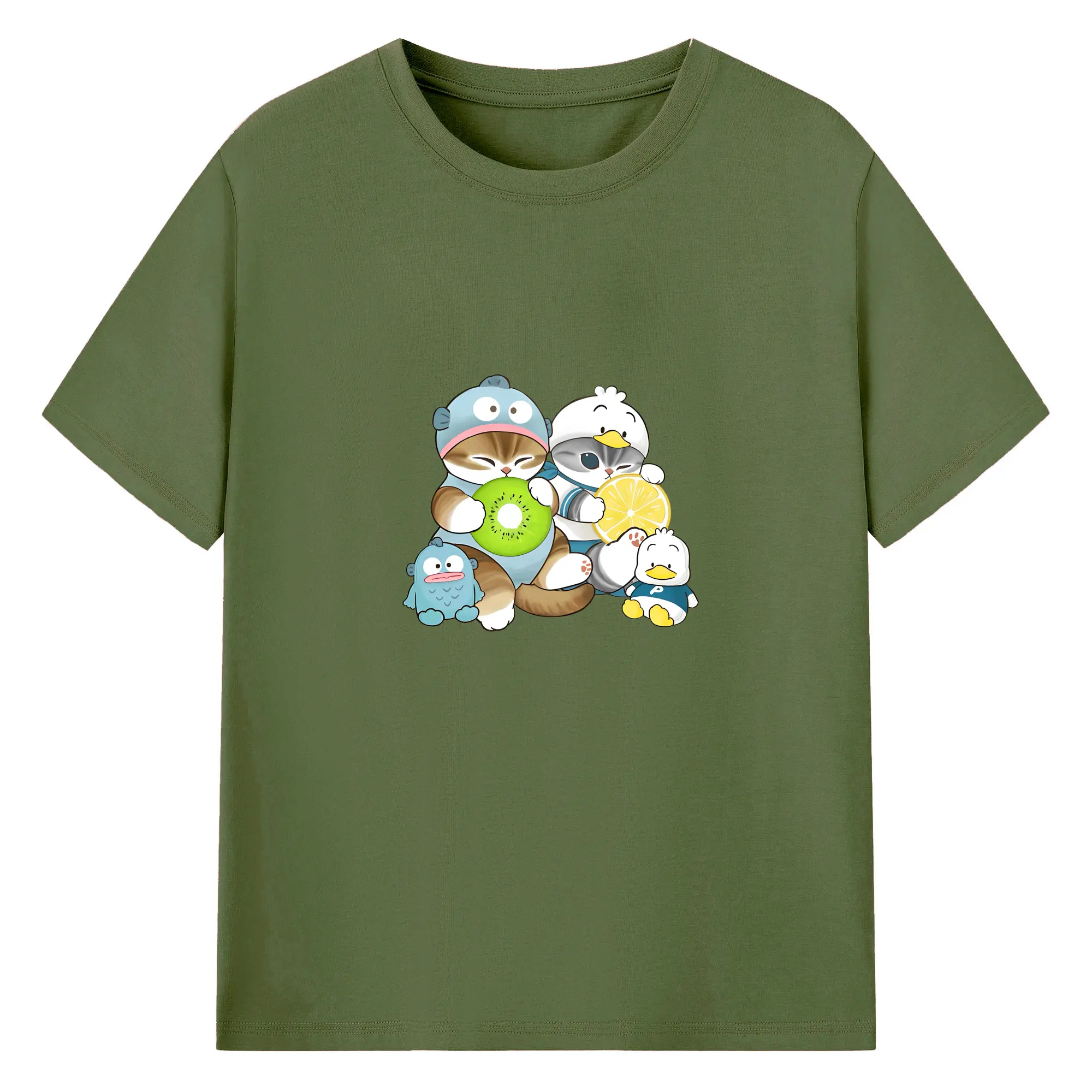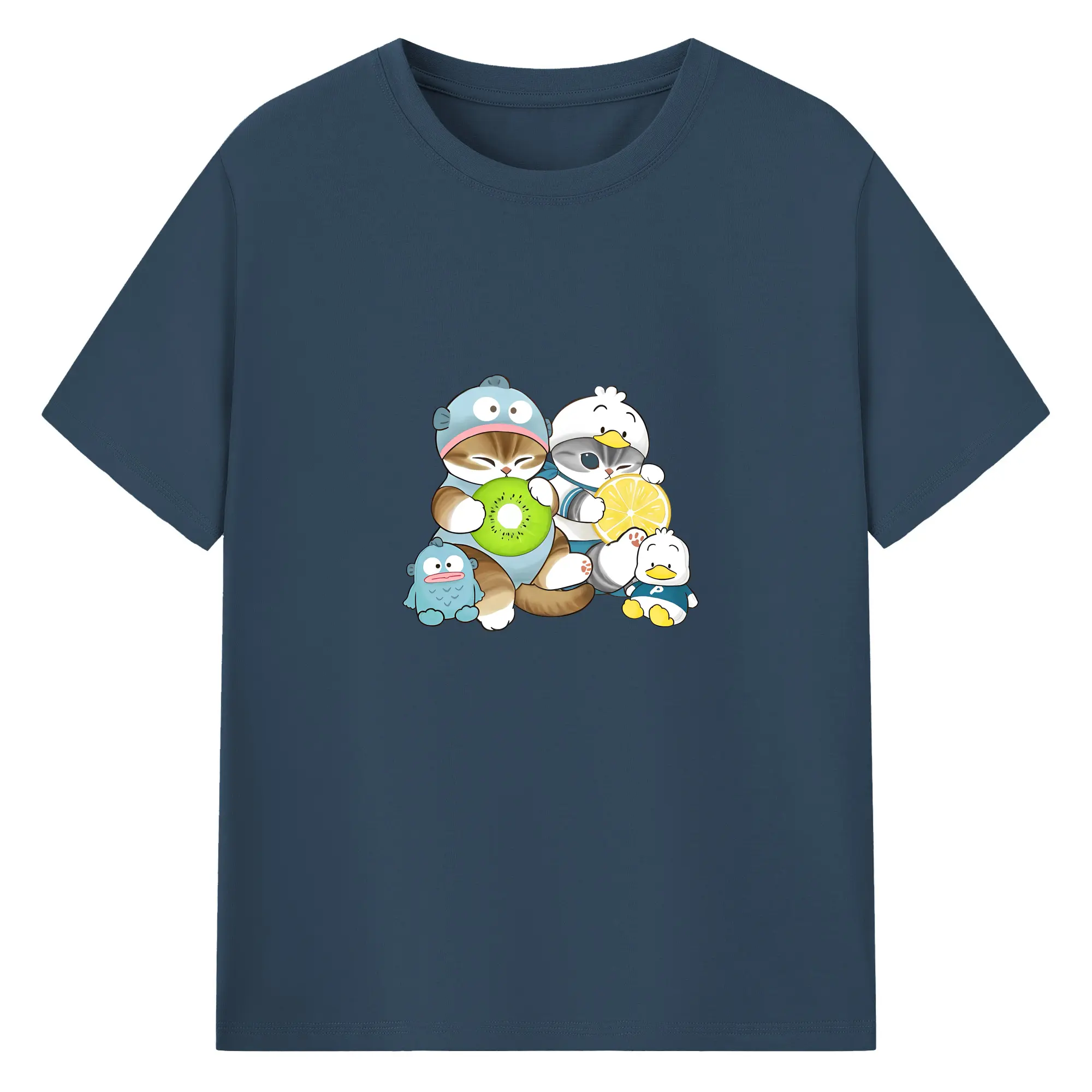 2025新作mofusand&サンリオ - 綿100% ヴィンテージ風 半袖Tシャツ ・ フロントプリント ・ 柔らか肌触り ・ 通気性 快適 ・ スポーツ カジュアル 外出用