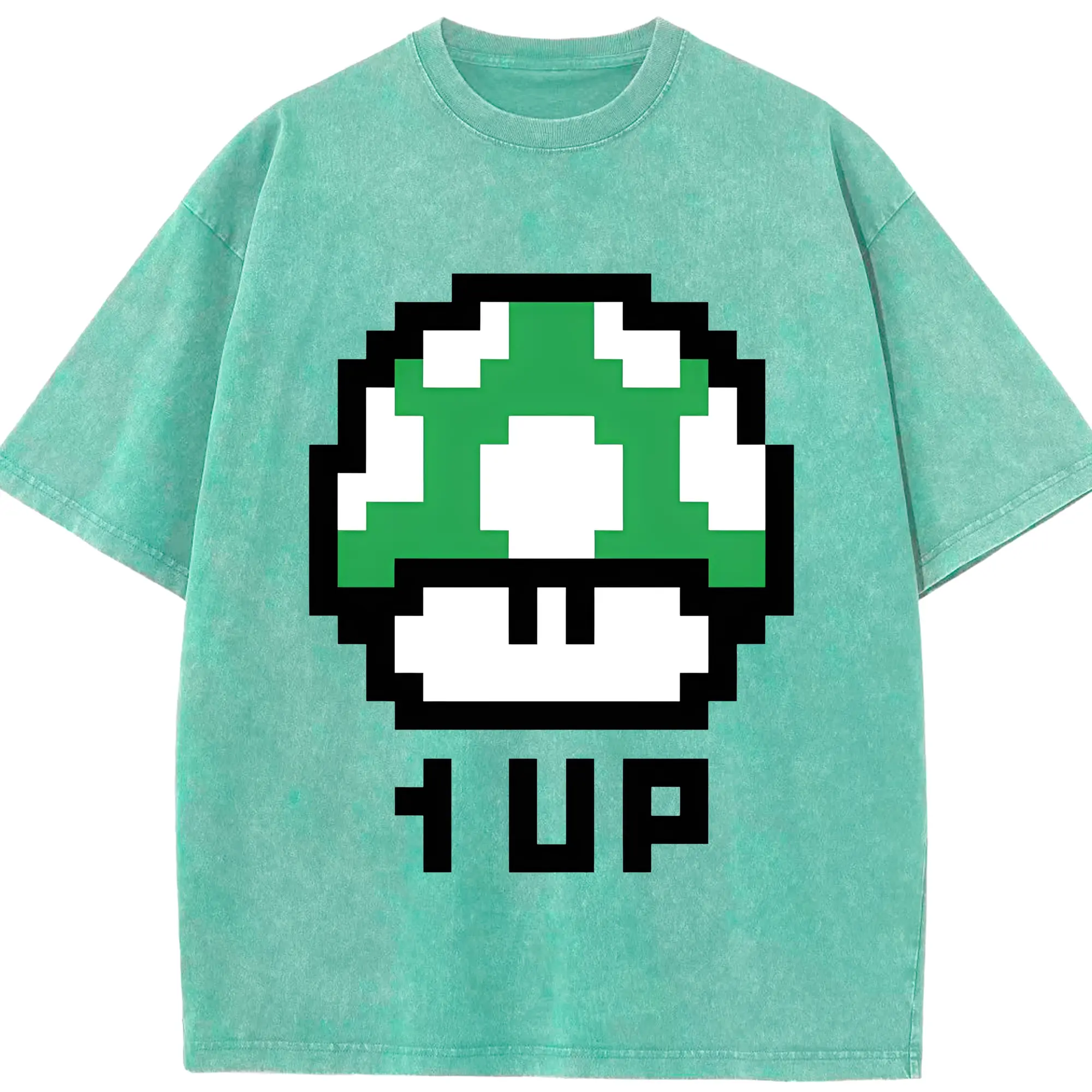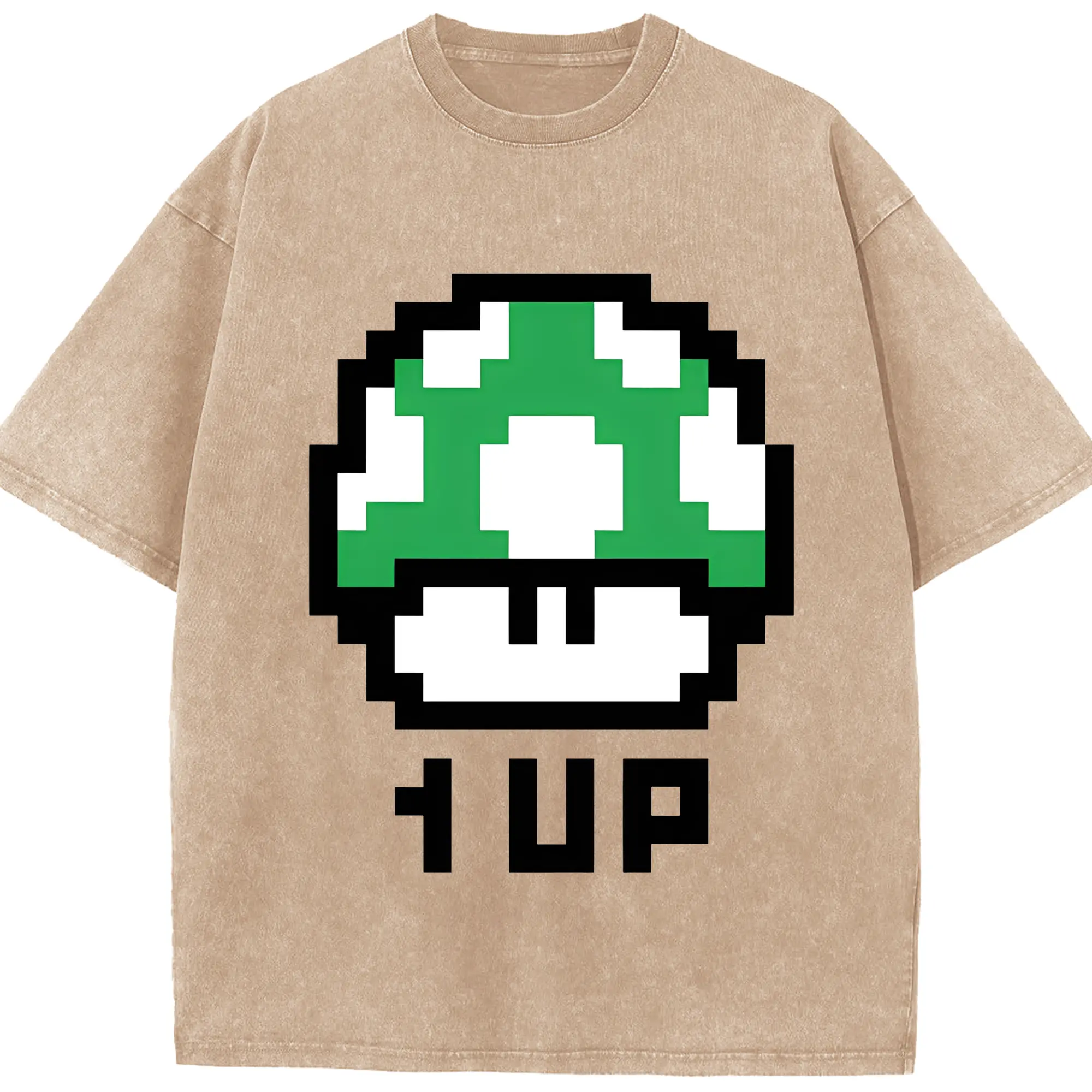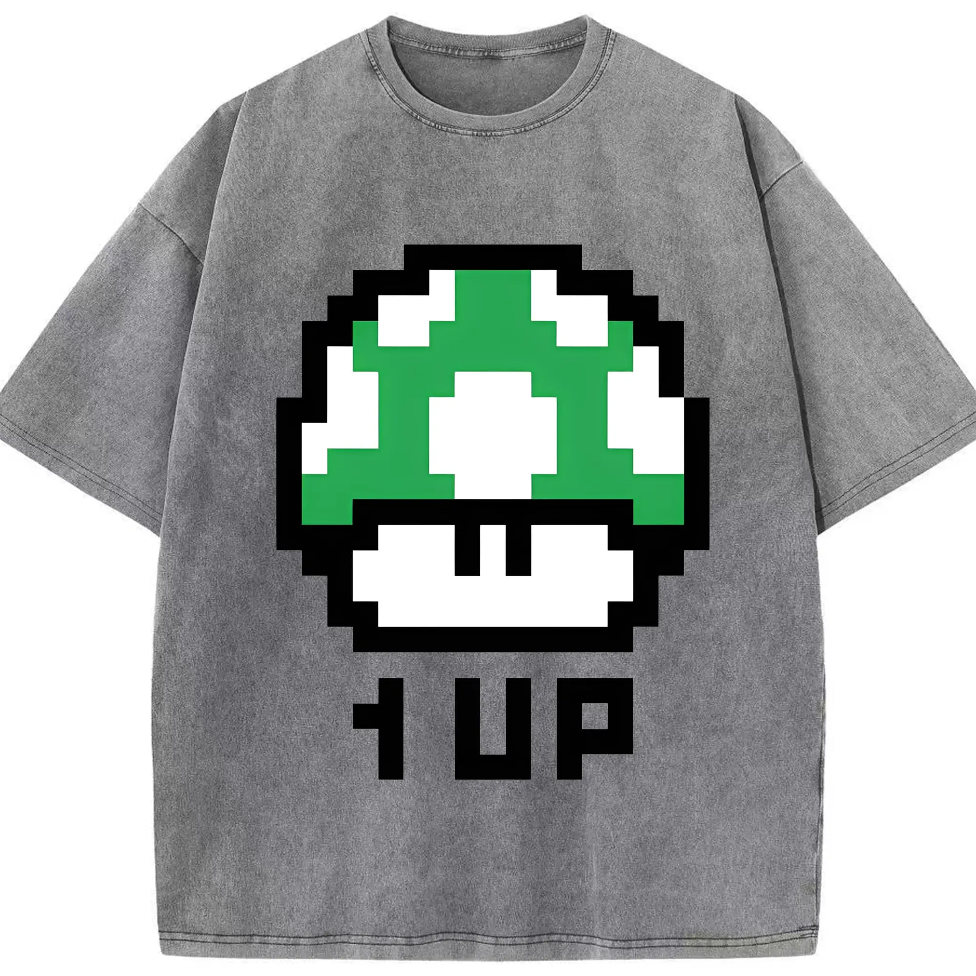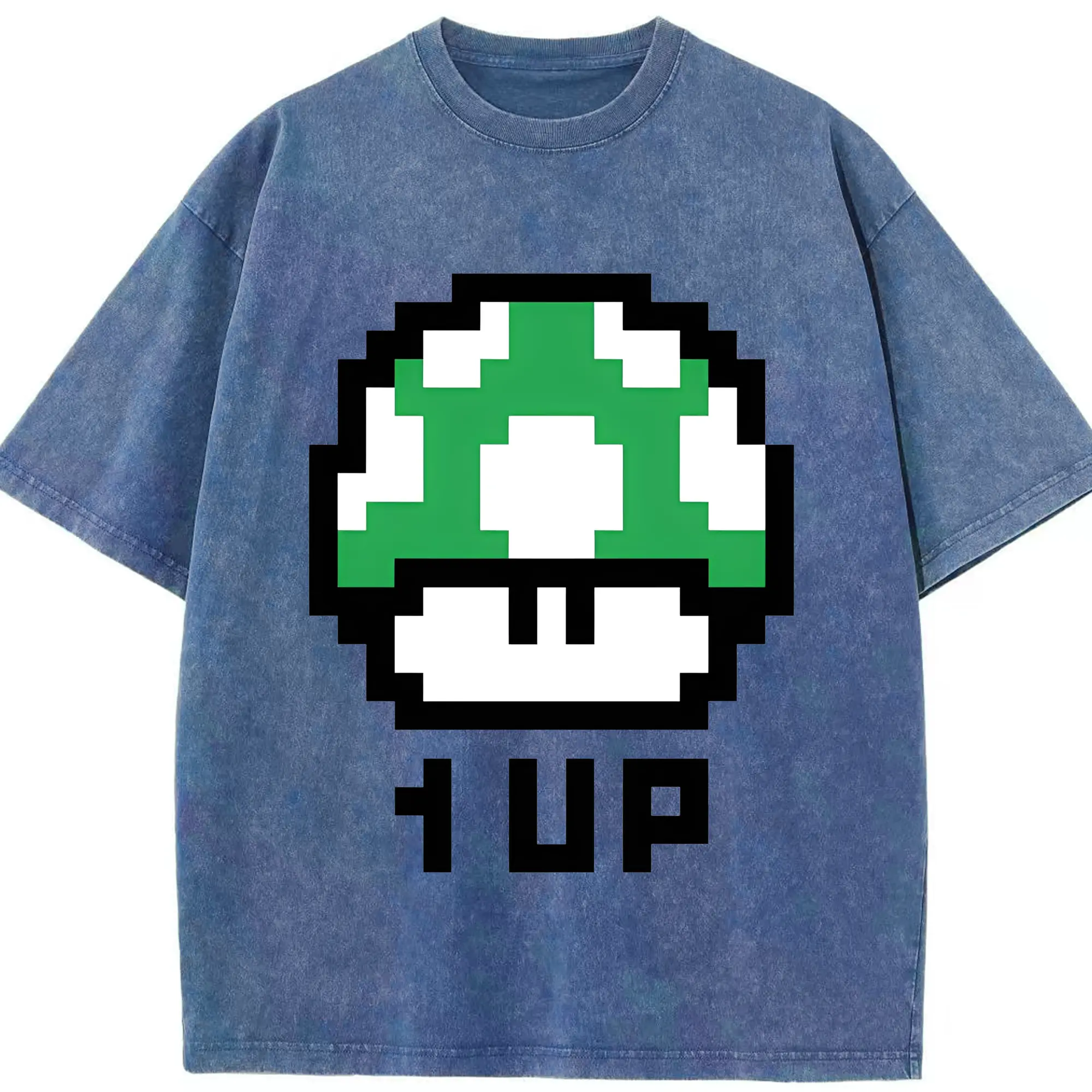 8ビットキノピオ&1UPキノコ レトロゲーム風 - 綿100% 半袖Tシャツ ・ フロントプリント ・ 快適 通気性 ・ 日常使い 散歩 スポーツ用