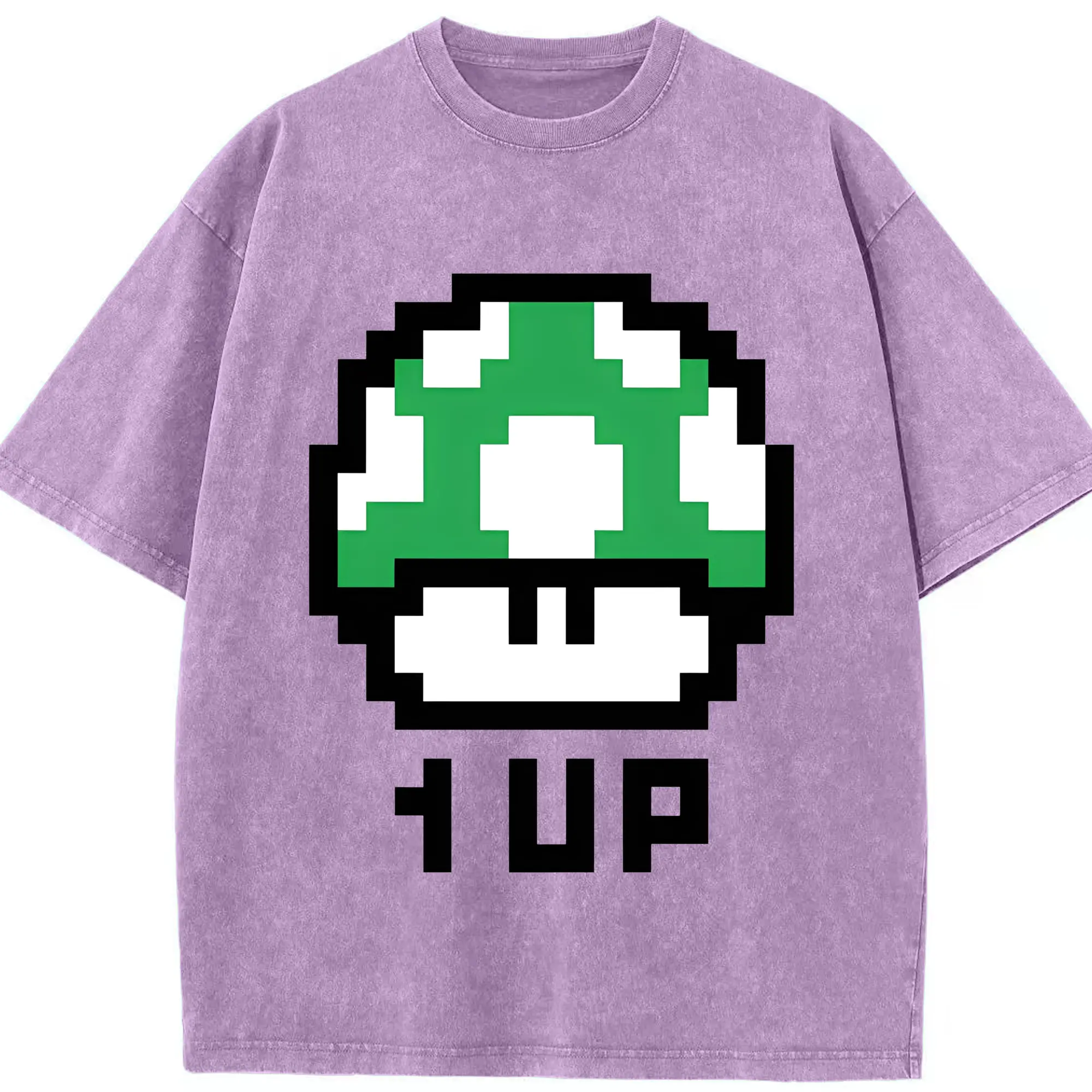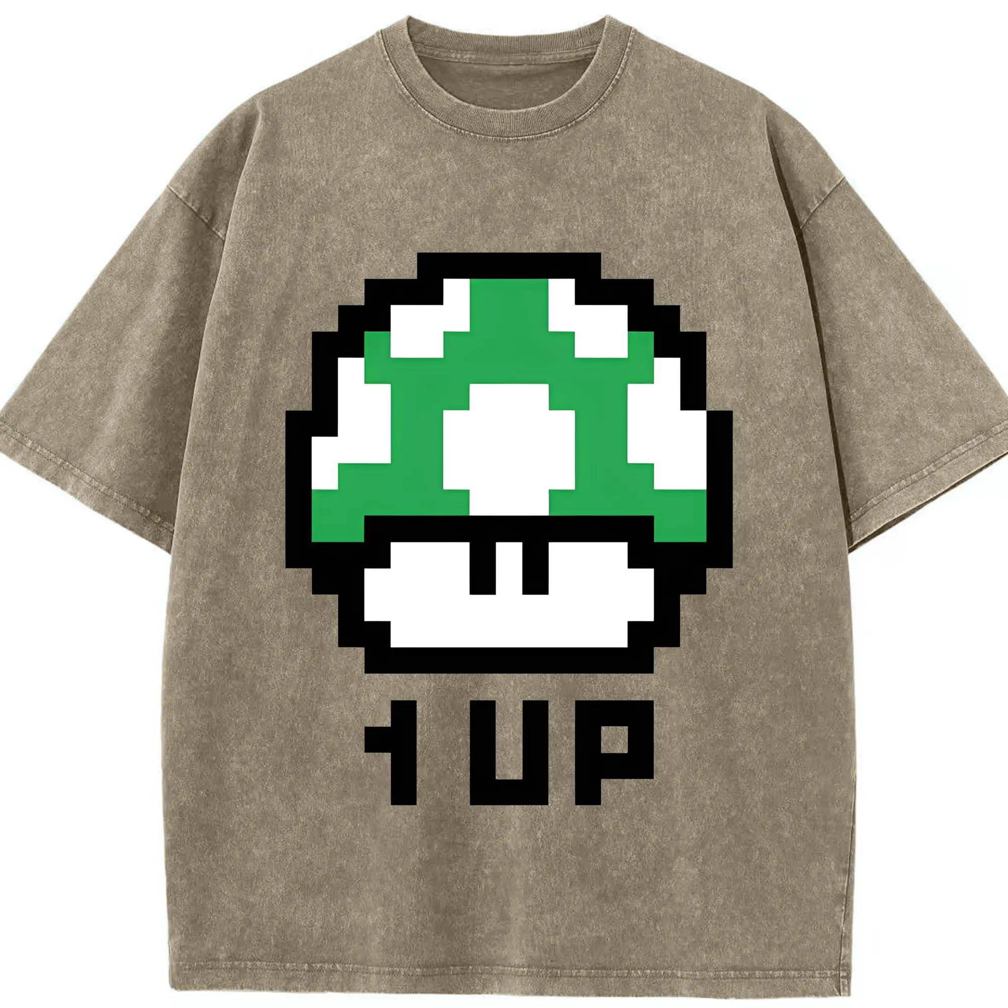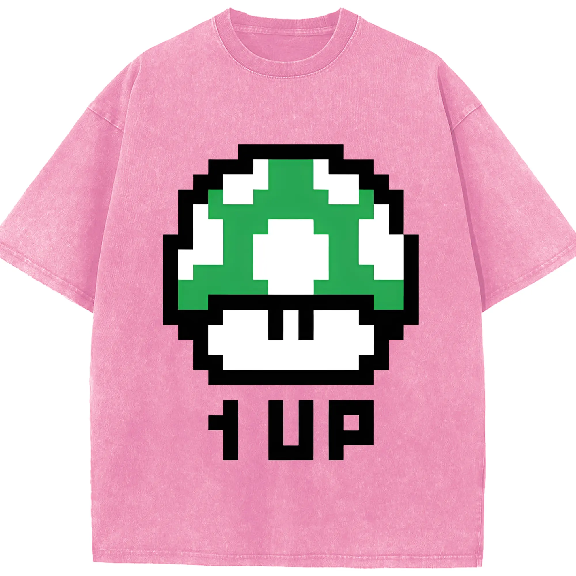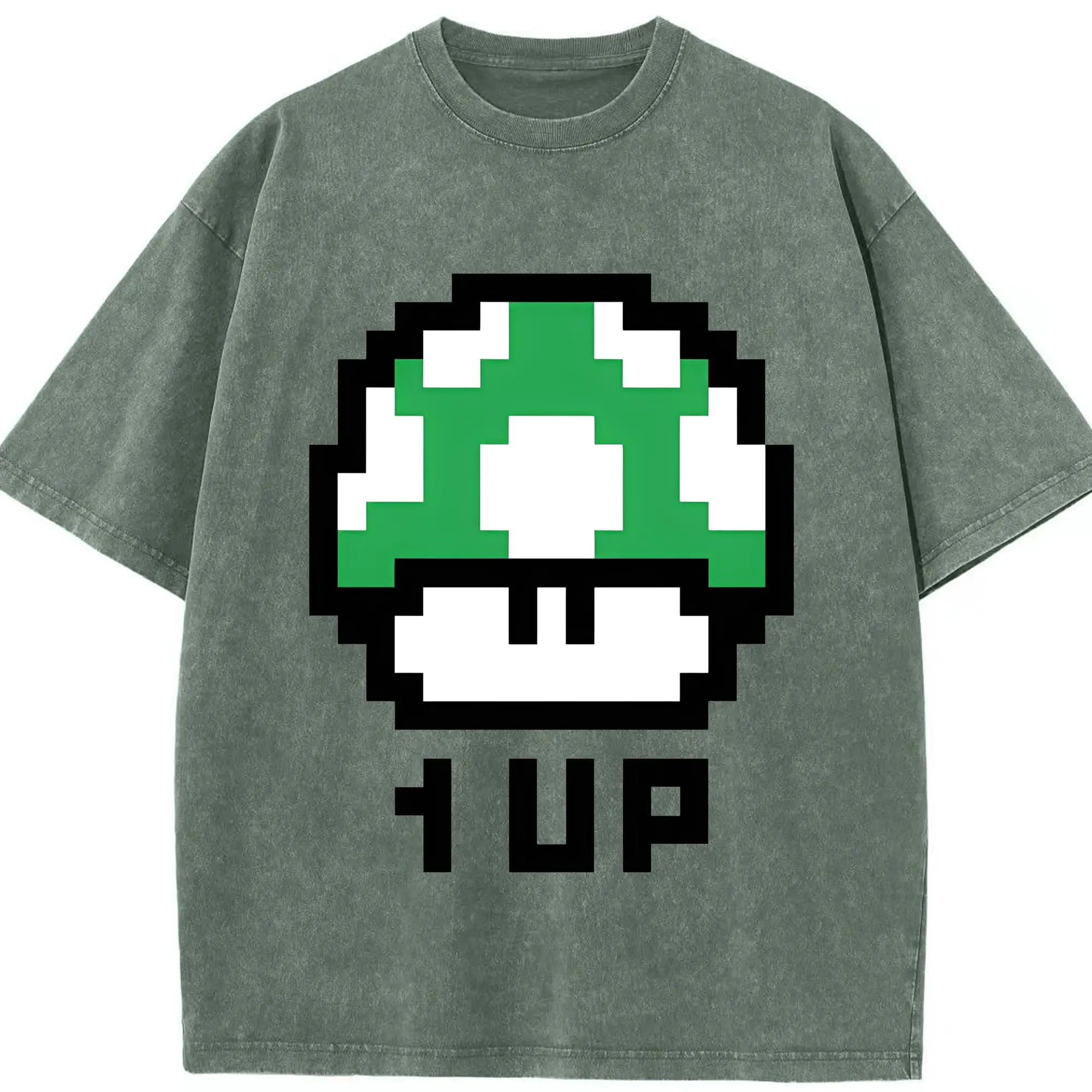 8ビットキノピオ&1UPキノコ レトロゲーム風 - 綿100% 半袖Tシャツ ・ フロントプリント ・ 快適 通気性 ・ 日常使い 散歩 スポーツ用