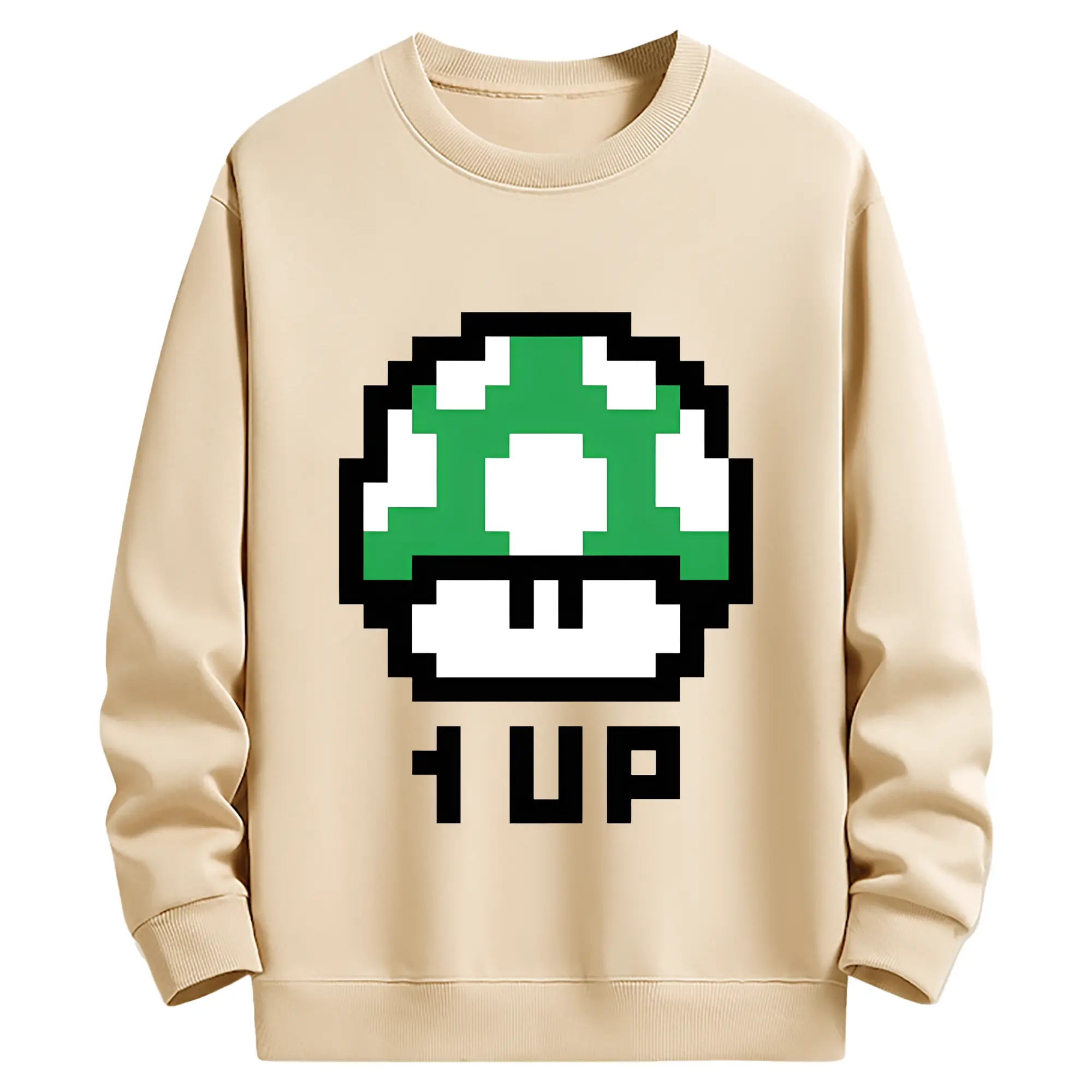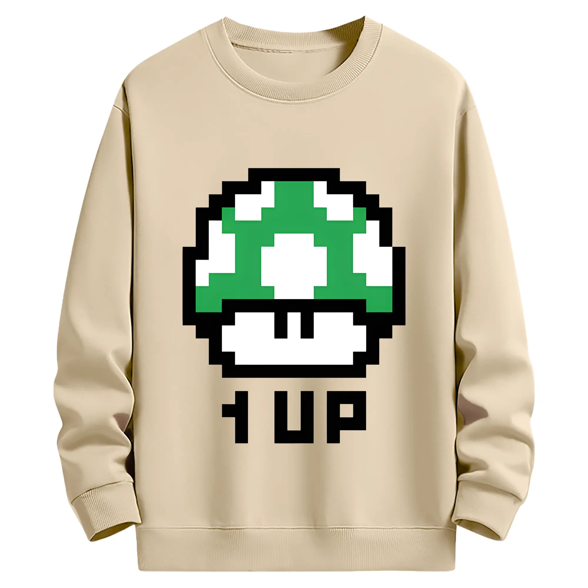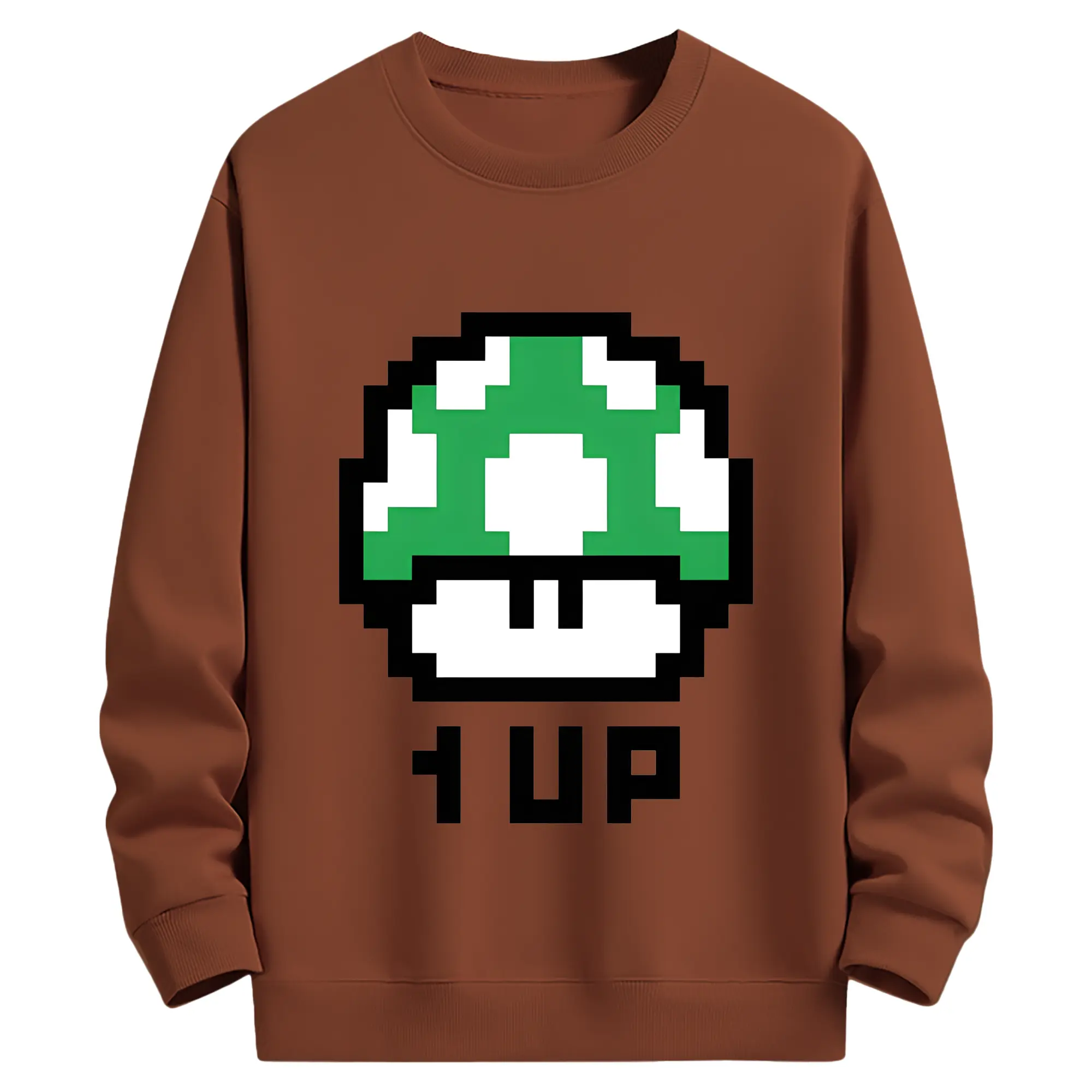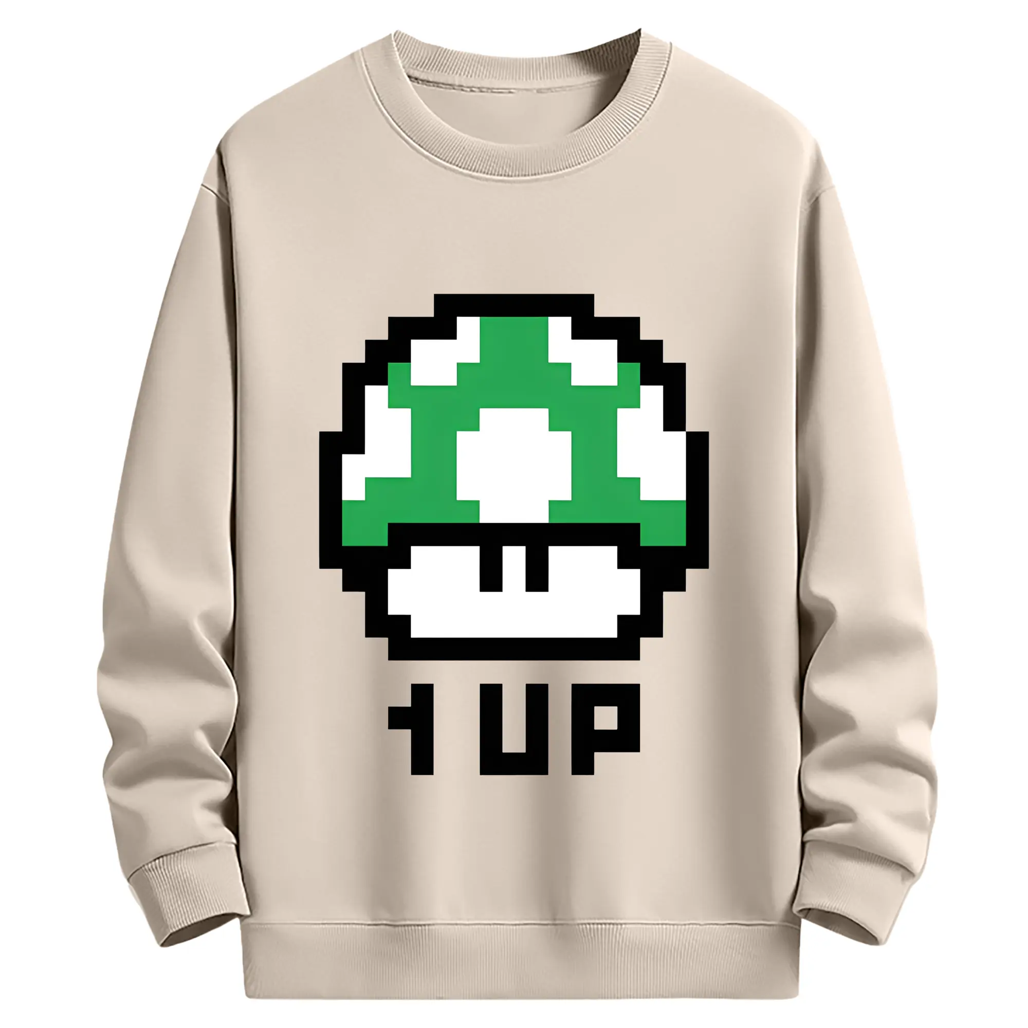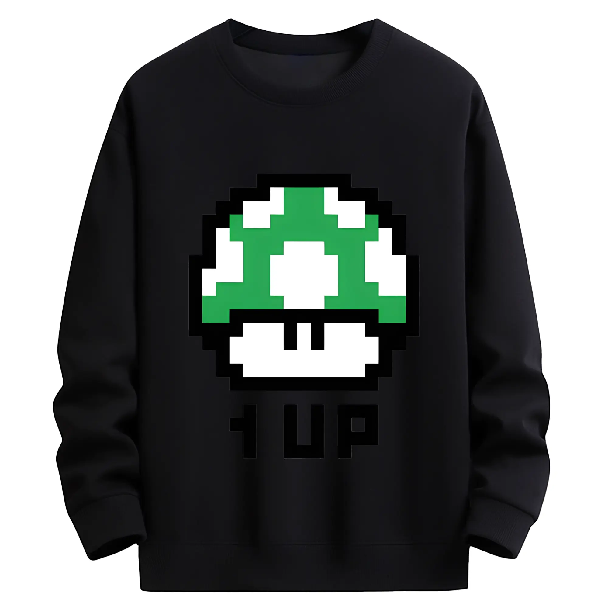 8ビットキノピオ&1UPキノコ レトロゲーム風 - 綿100% 半袖Tシャツ ・ フロントプリント ・ 快適 通気性 ・ 日常使い 散歩 スポーツ用