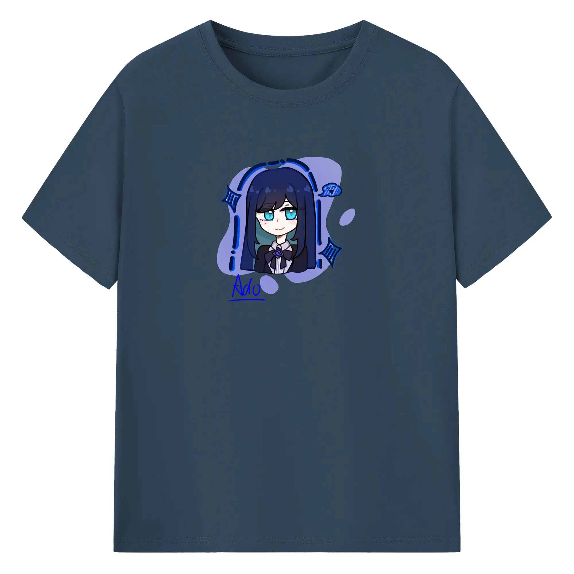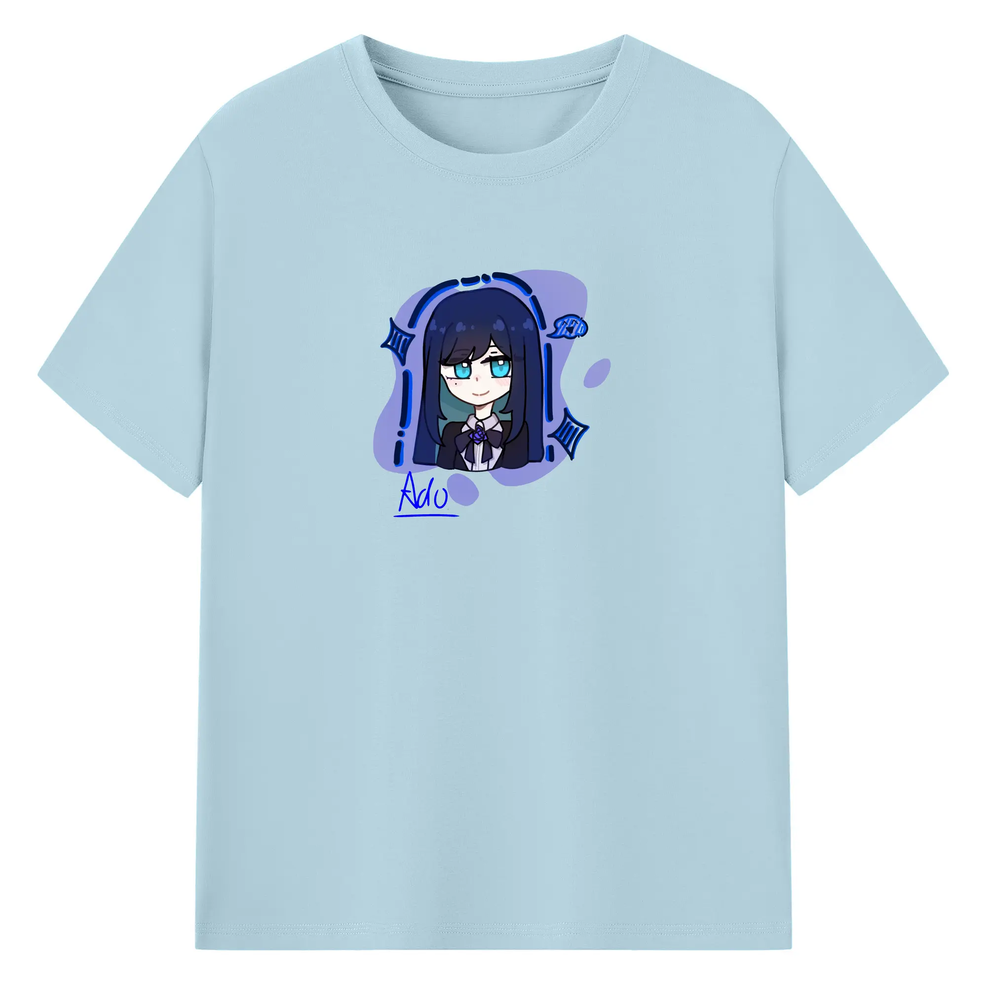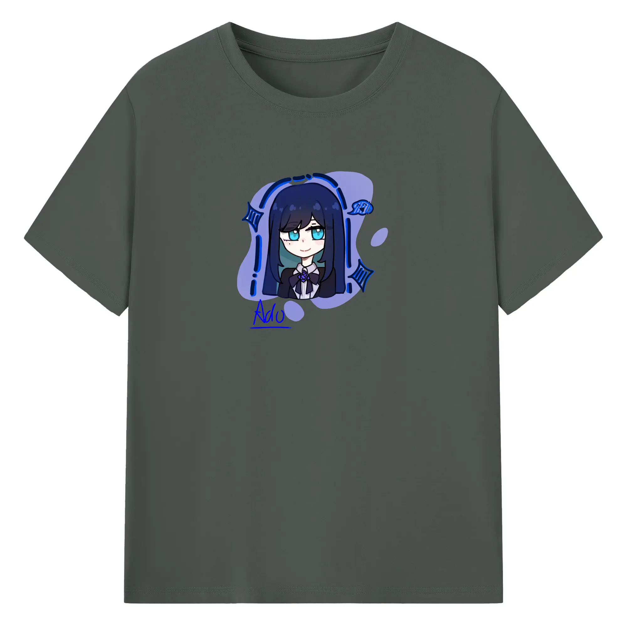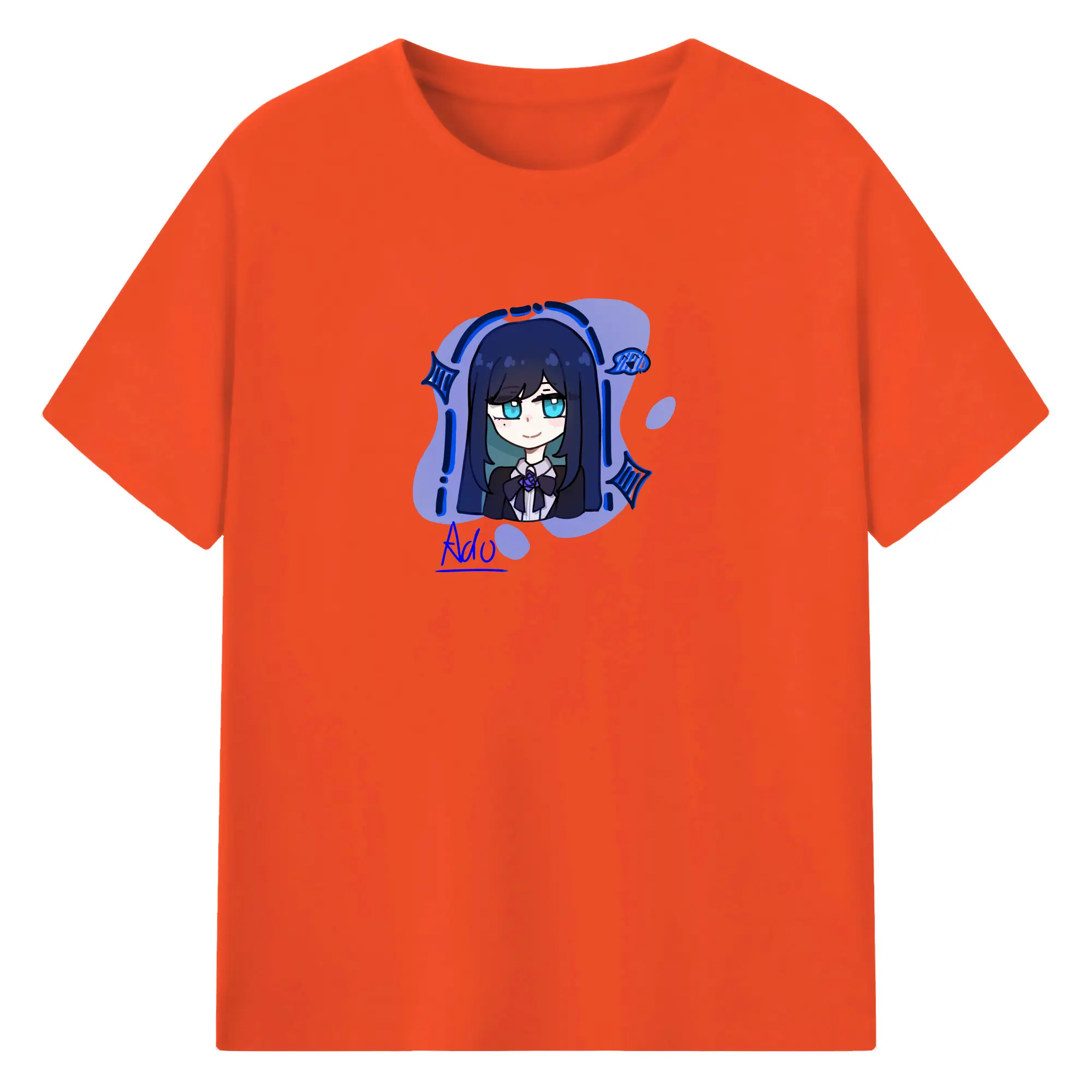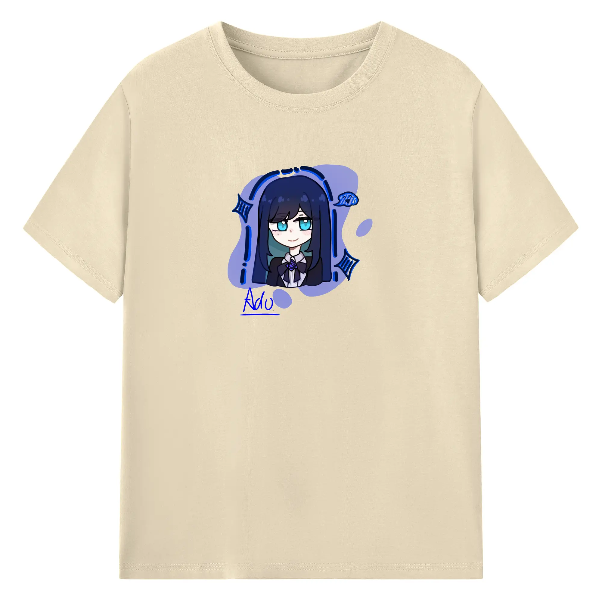 Adoアドアニメ風美少女デザイン - 綿100% ヴィンテージ風 半袖Tシャツ ・ フロントプリント ・ 柔らか肌触り ・ 通気性 快適 ・ スポーツ カジュアル 外出用