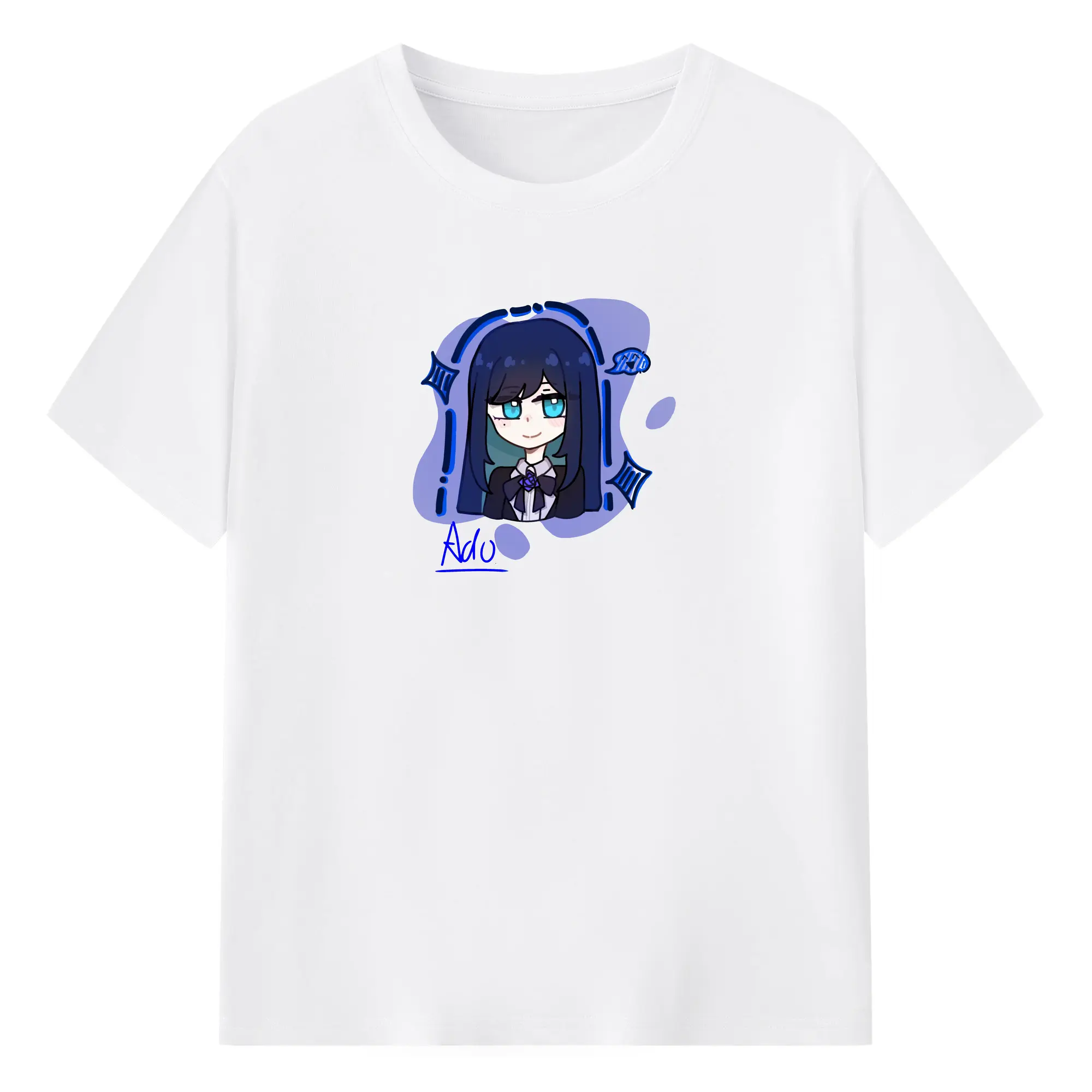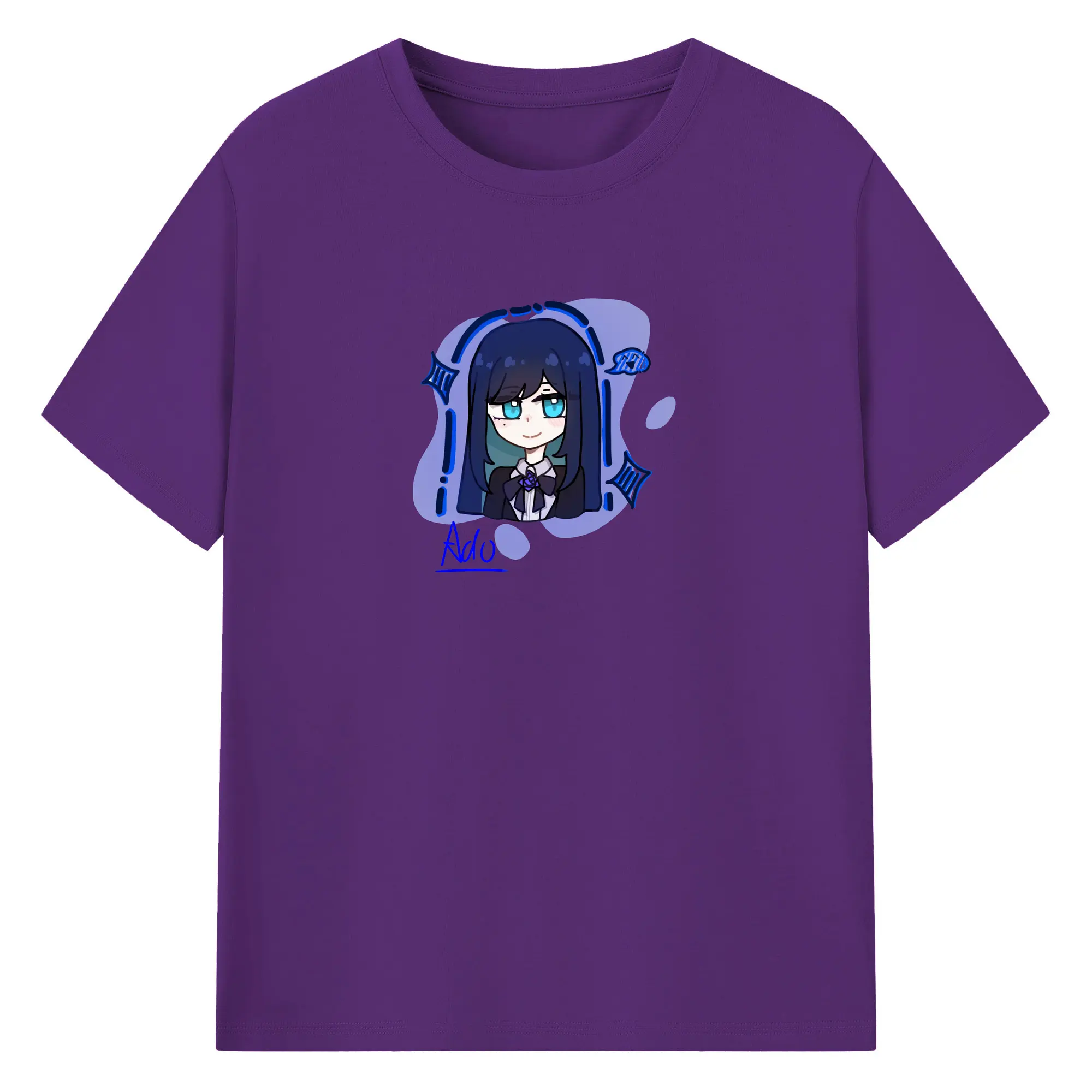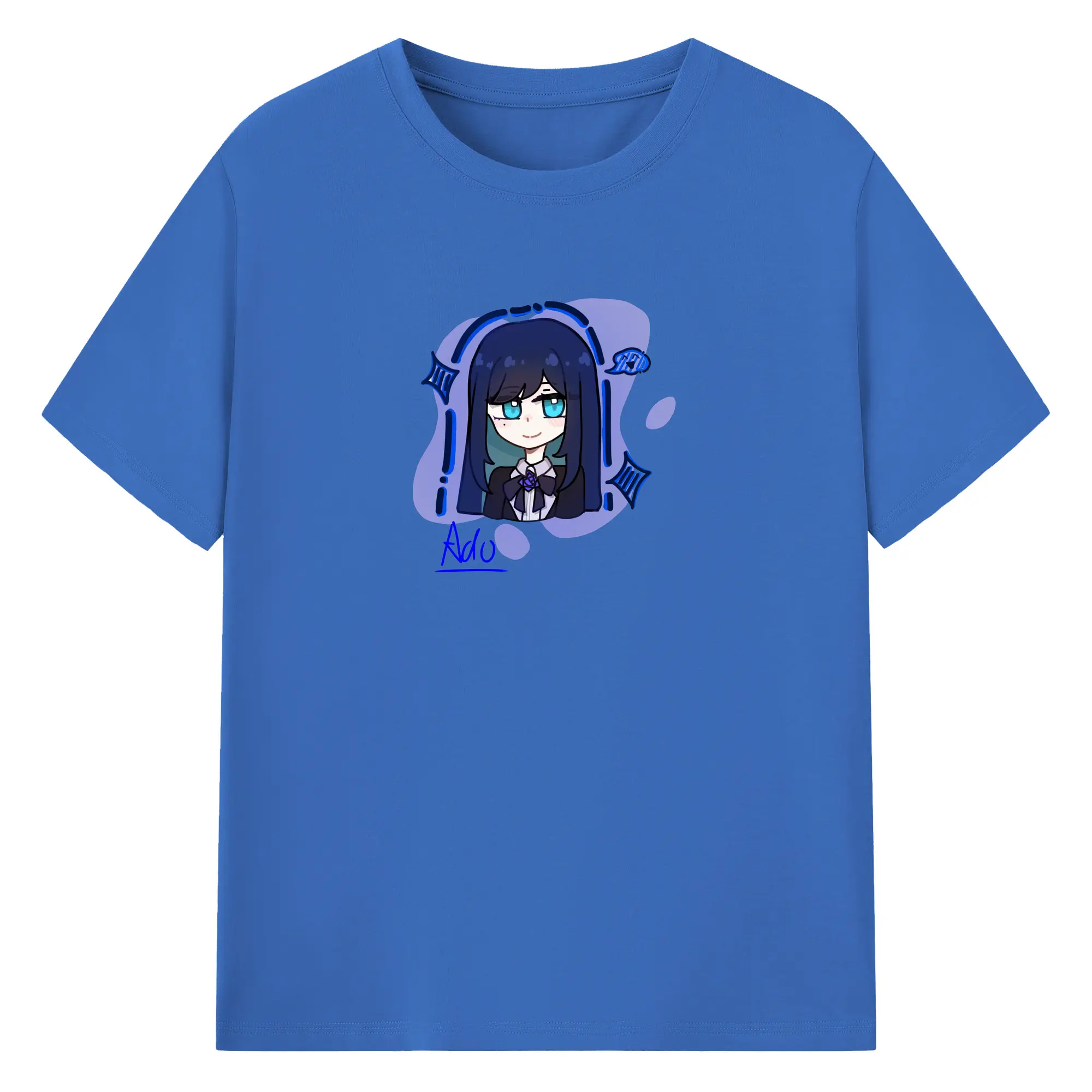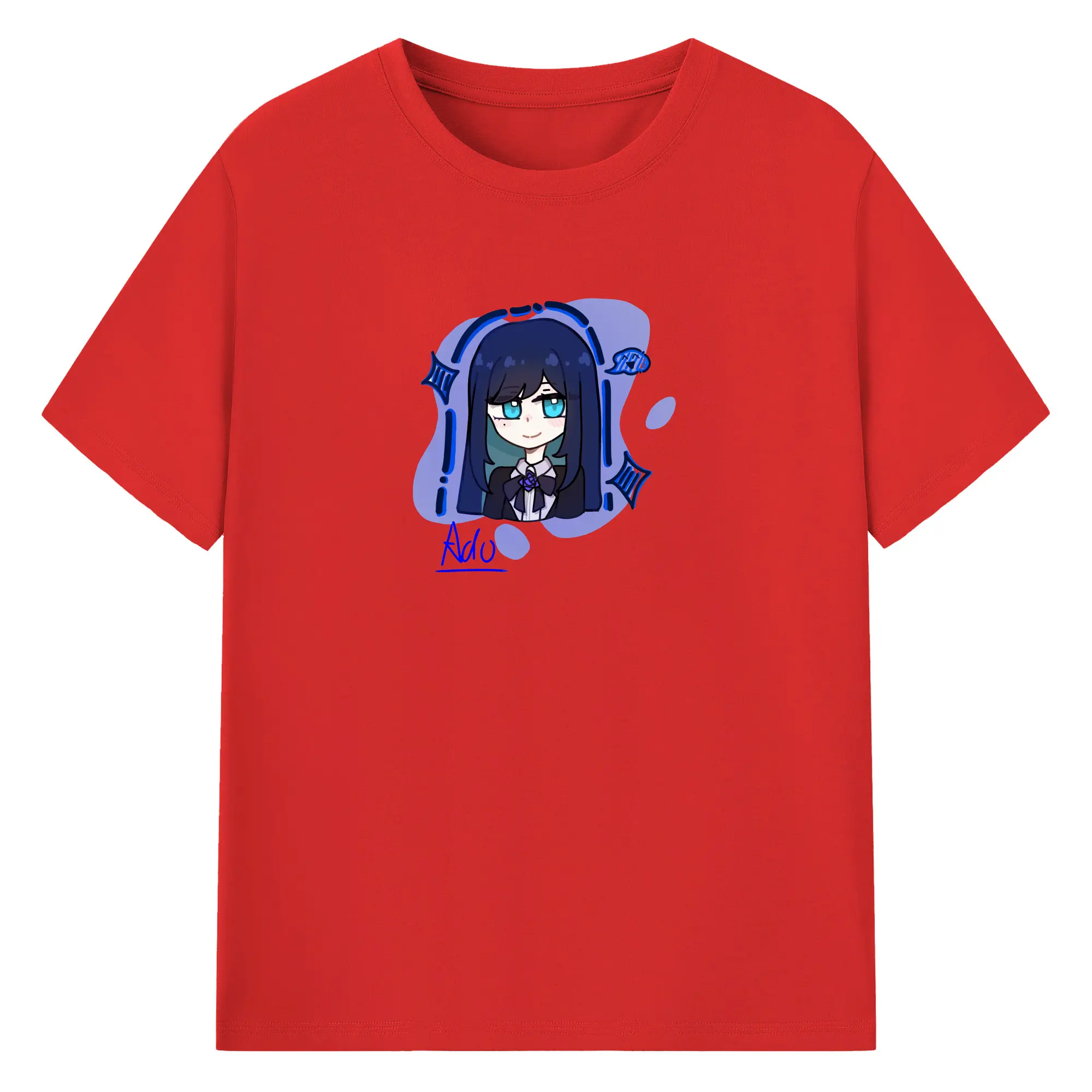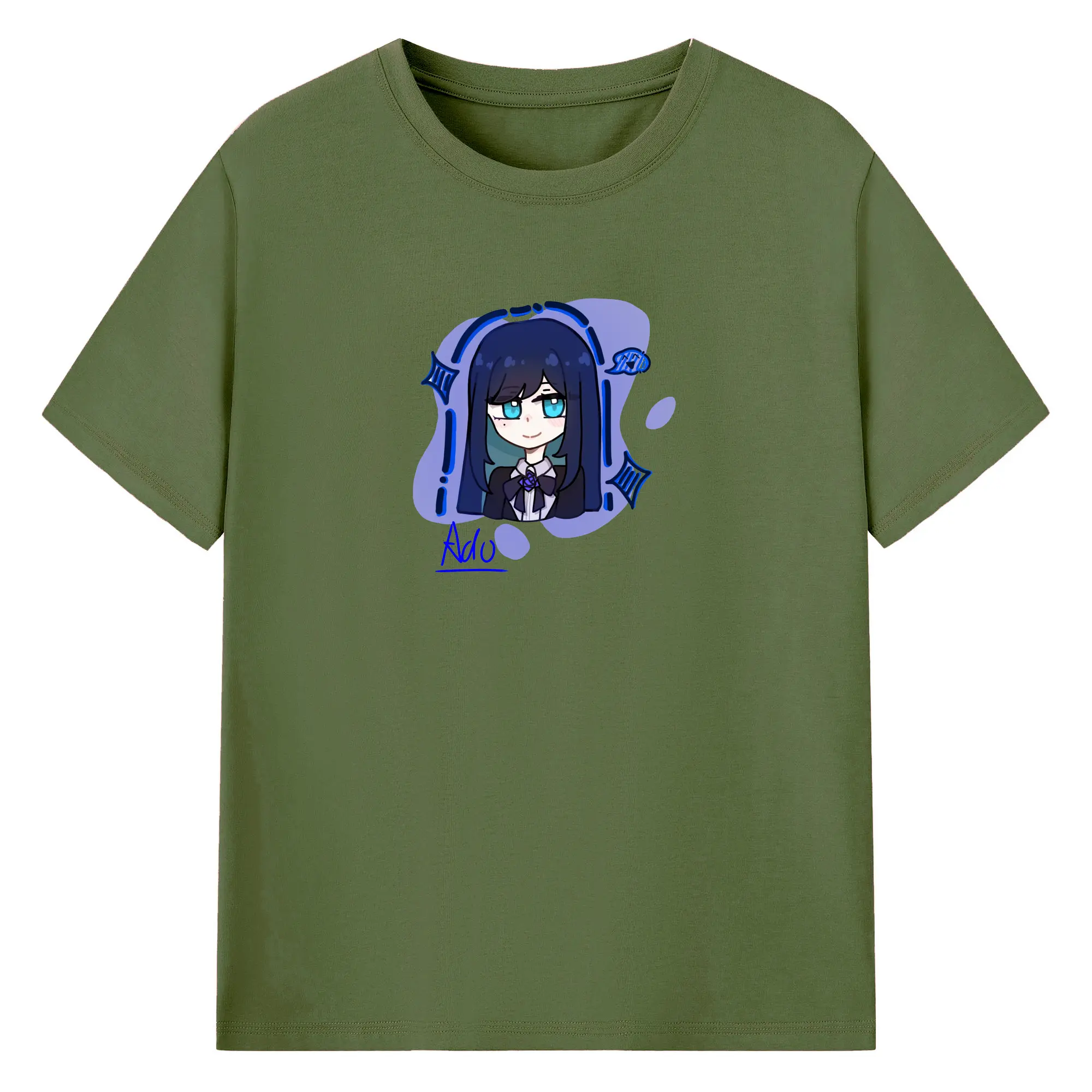 Adoアドアニメ風美少女デザイン - 綿100% ヴィンテージ風 半袖Tシャツ ・ フロントプリント ・ 柔らか肌触り ・ 通気性 快適 ・ スポーツ カジュアル 外出用