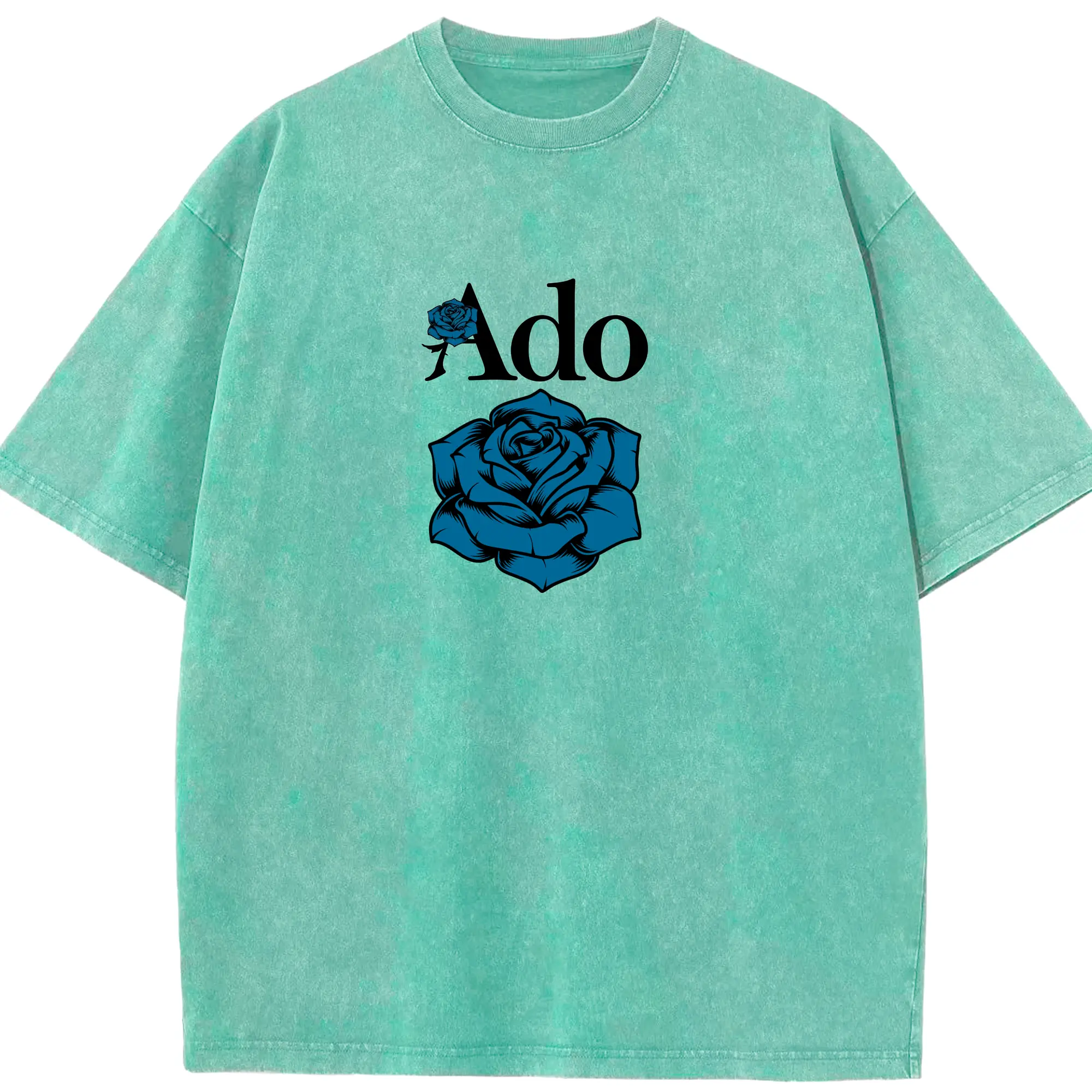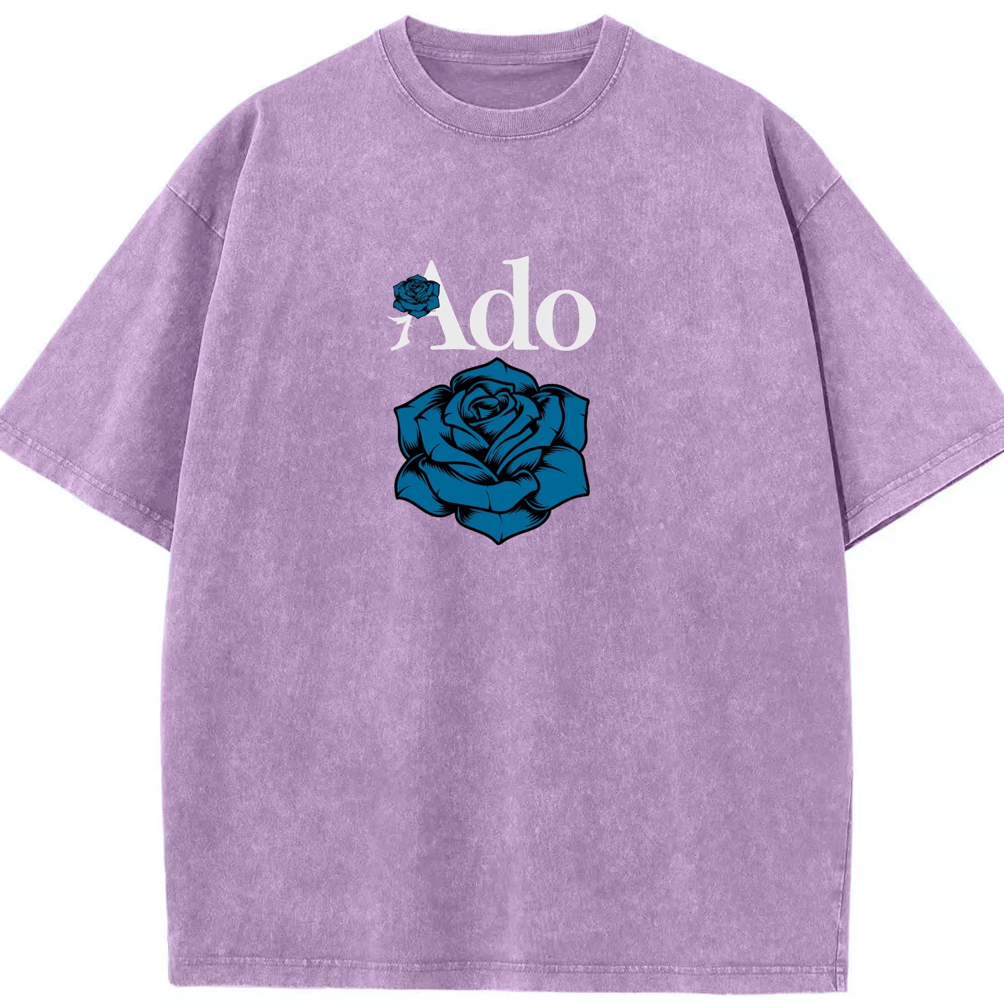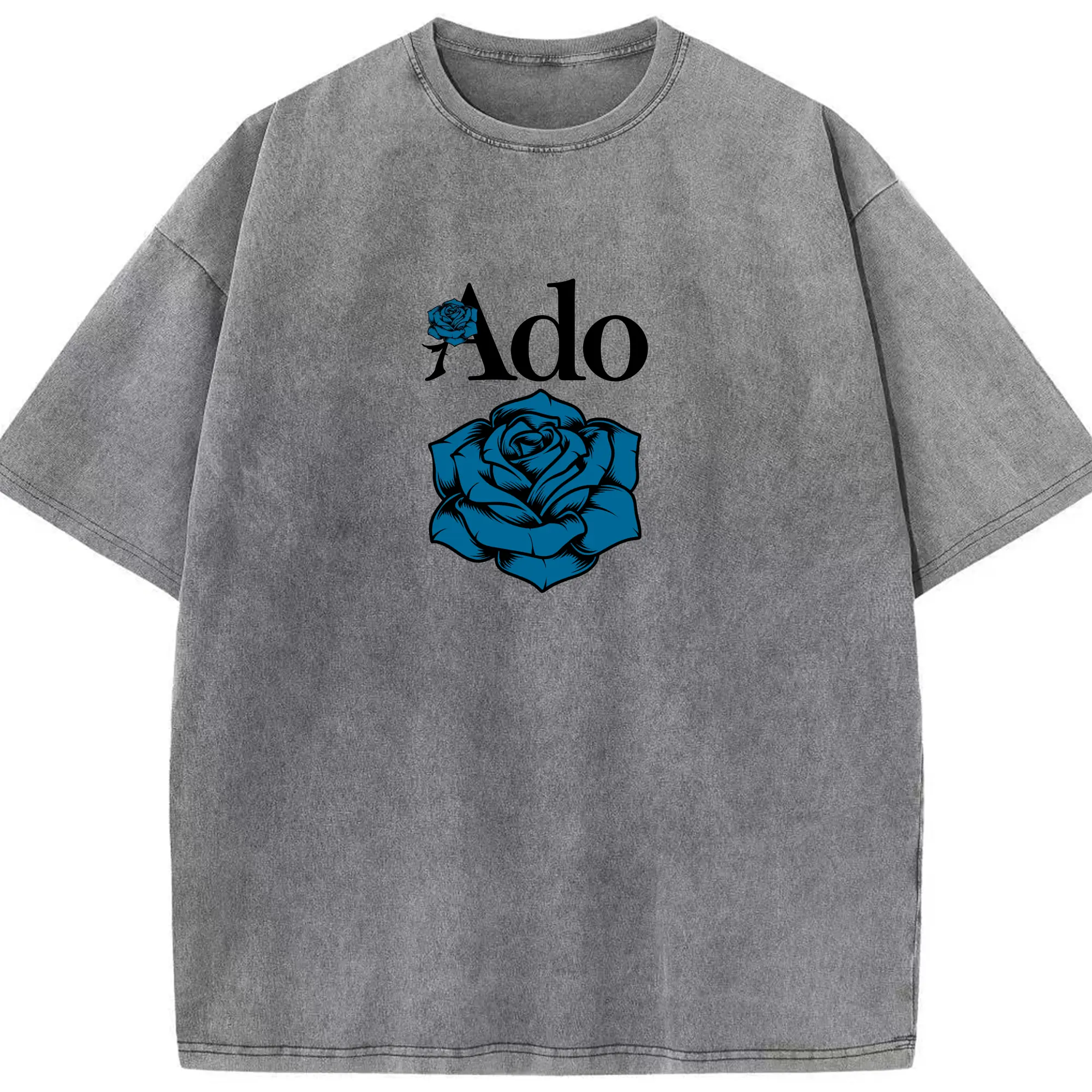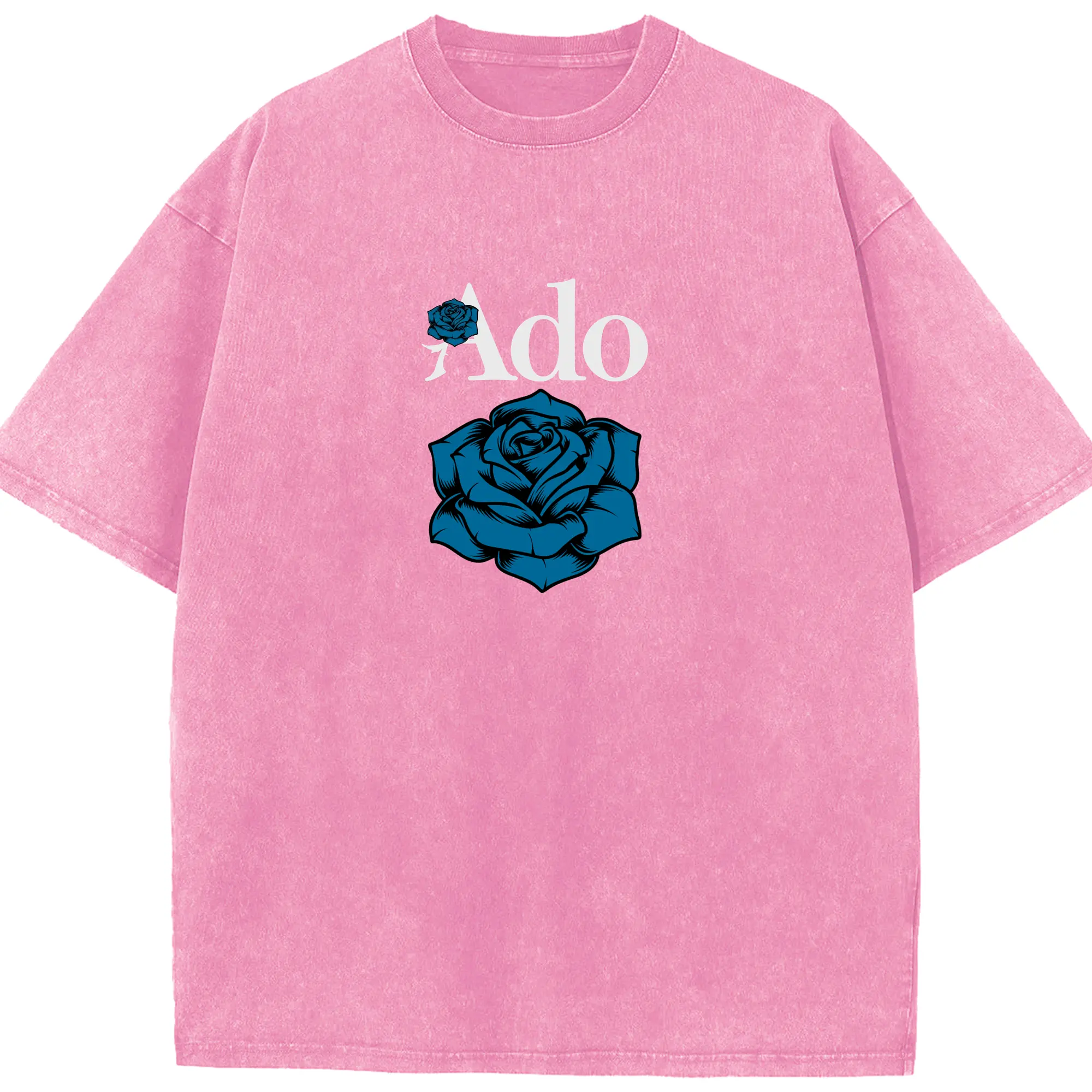 AdoアドAdo の ハート デザインわたしの かのじょ Ado が だいすき - 綿100% ヴィンテージ風 半袖Tシャツ ・ フロントプリント ・ 柔らか肌触り ・ 通気性 快適 ・ スポーツ カジュアル 外出用