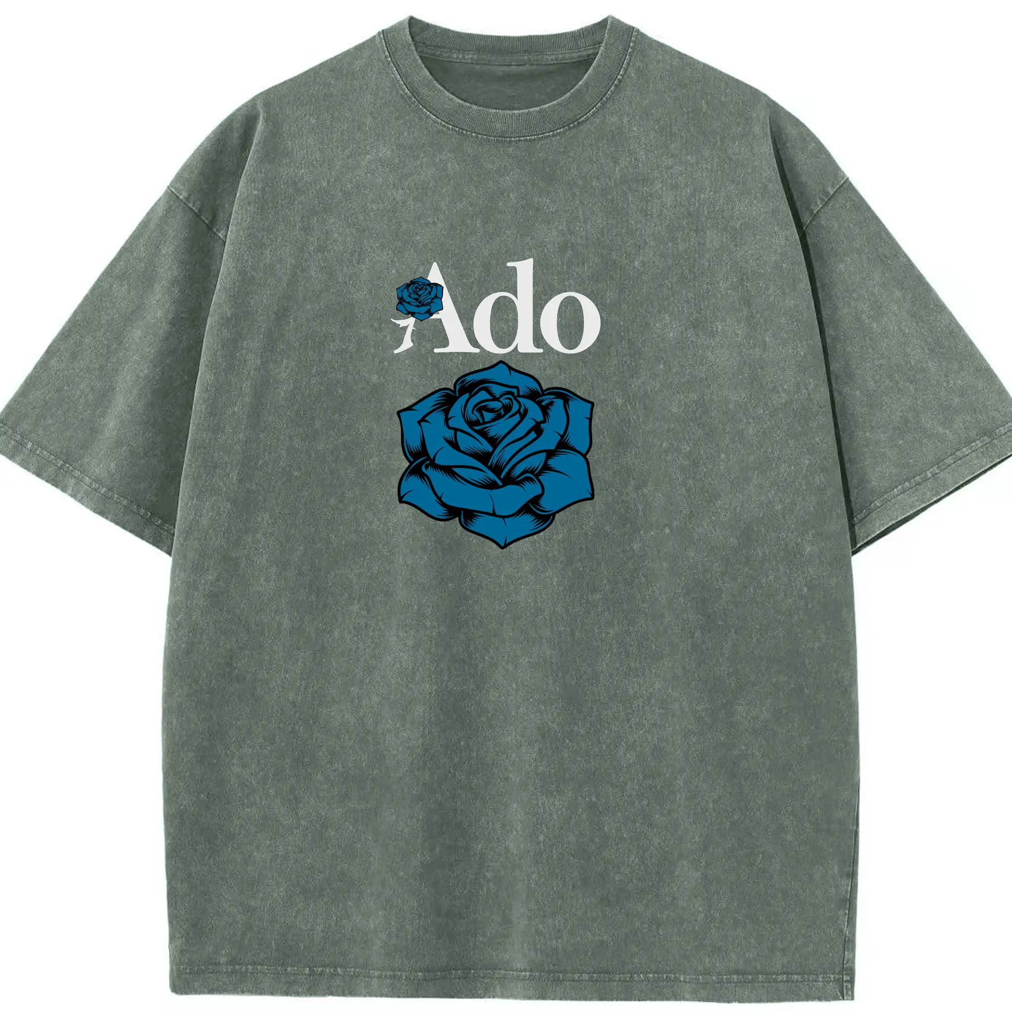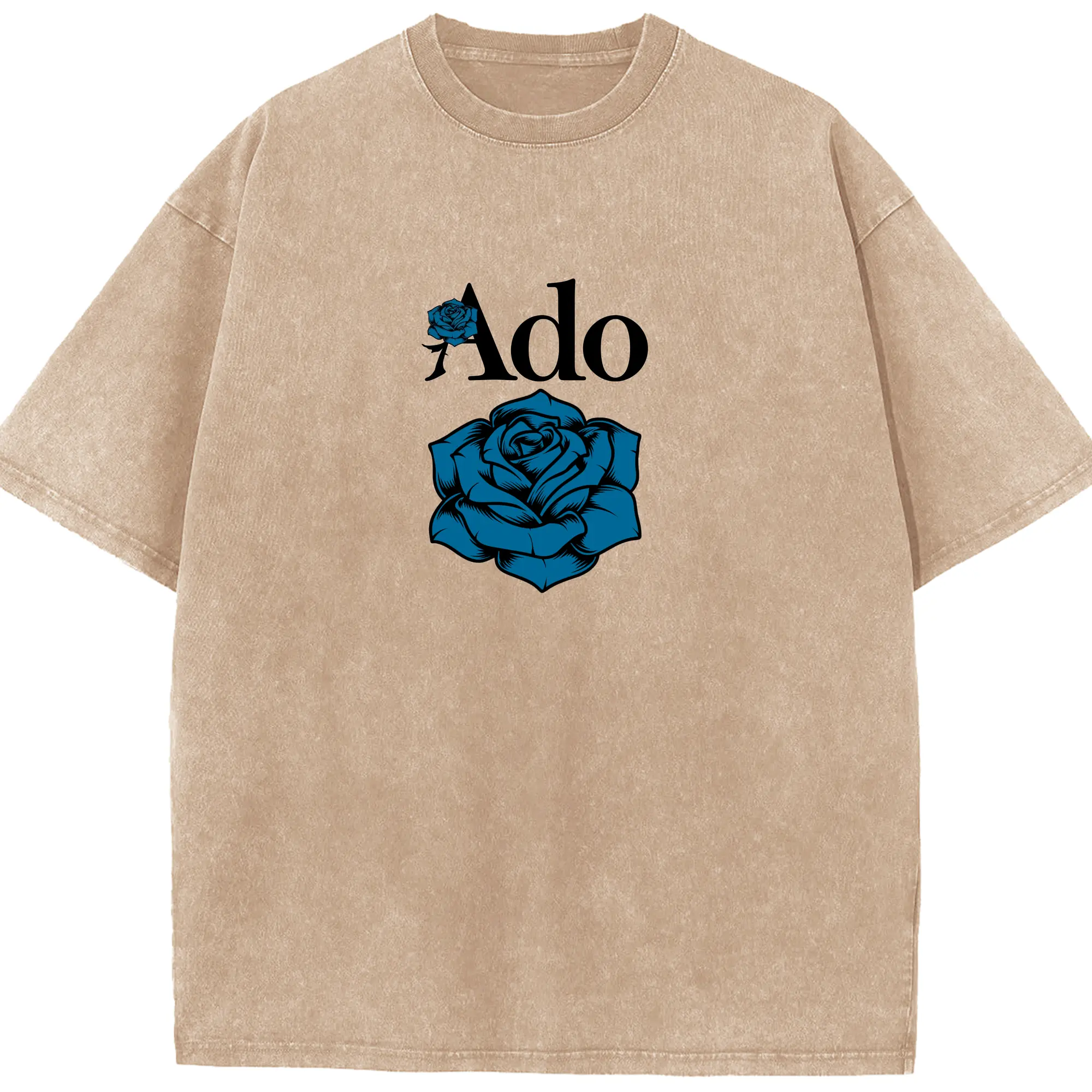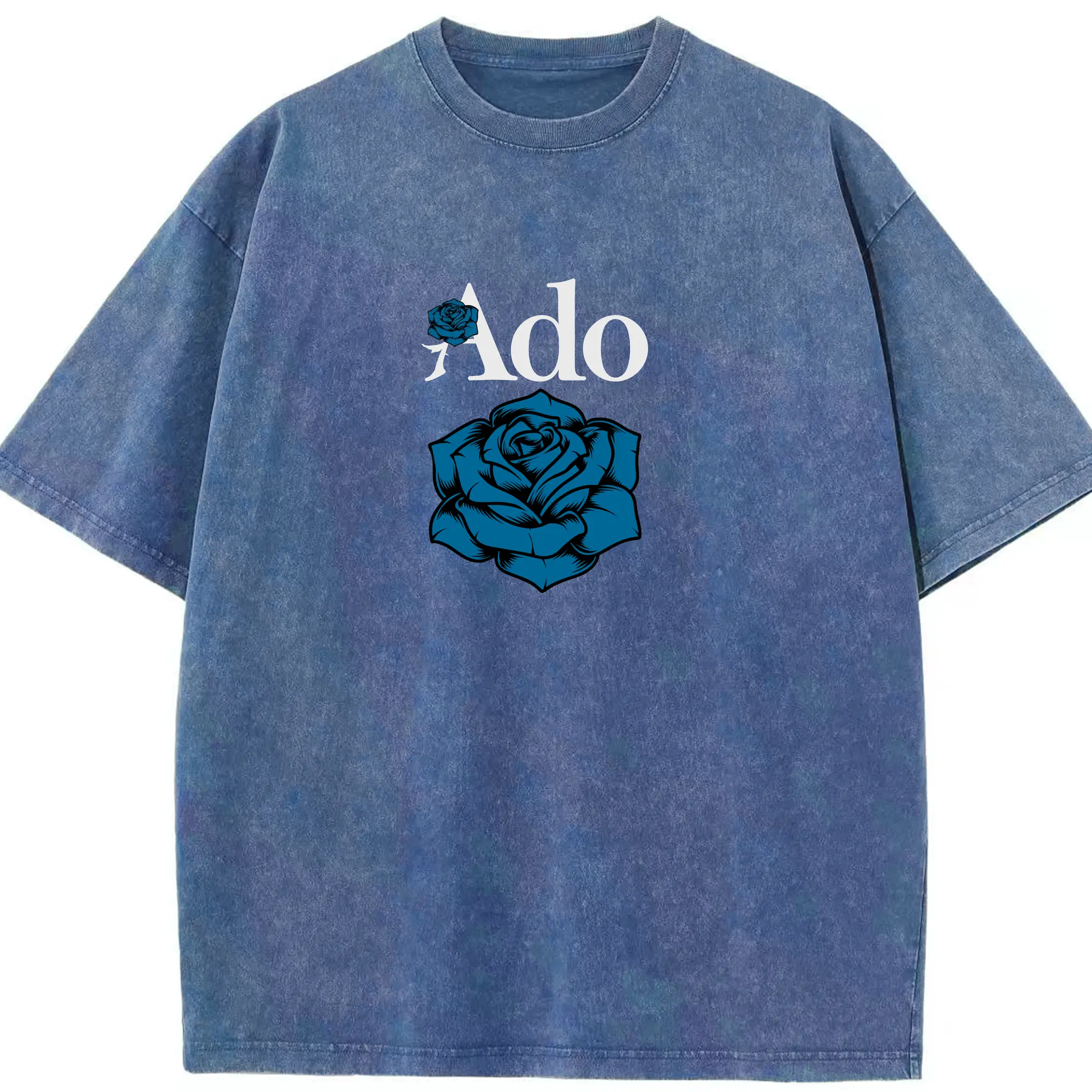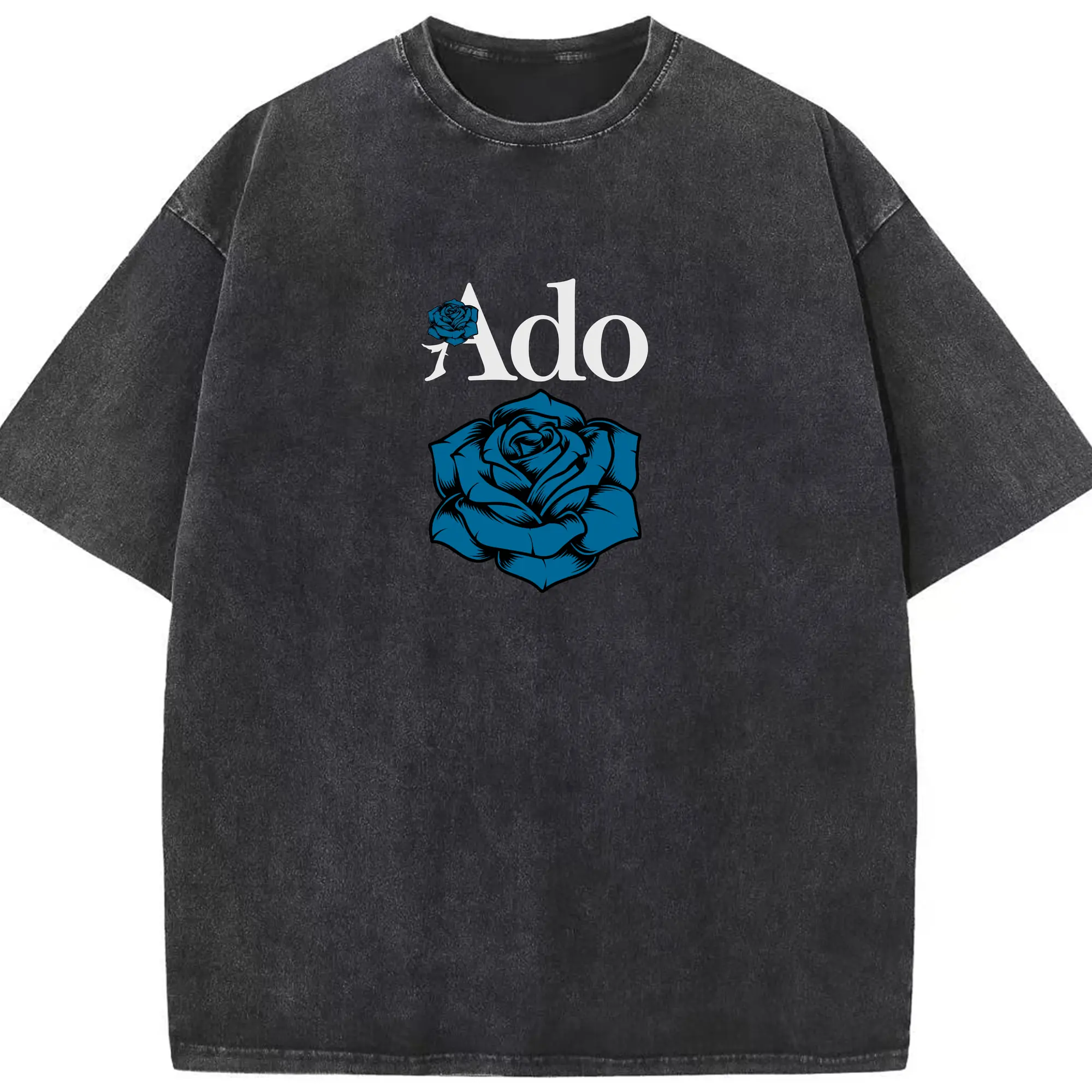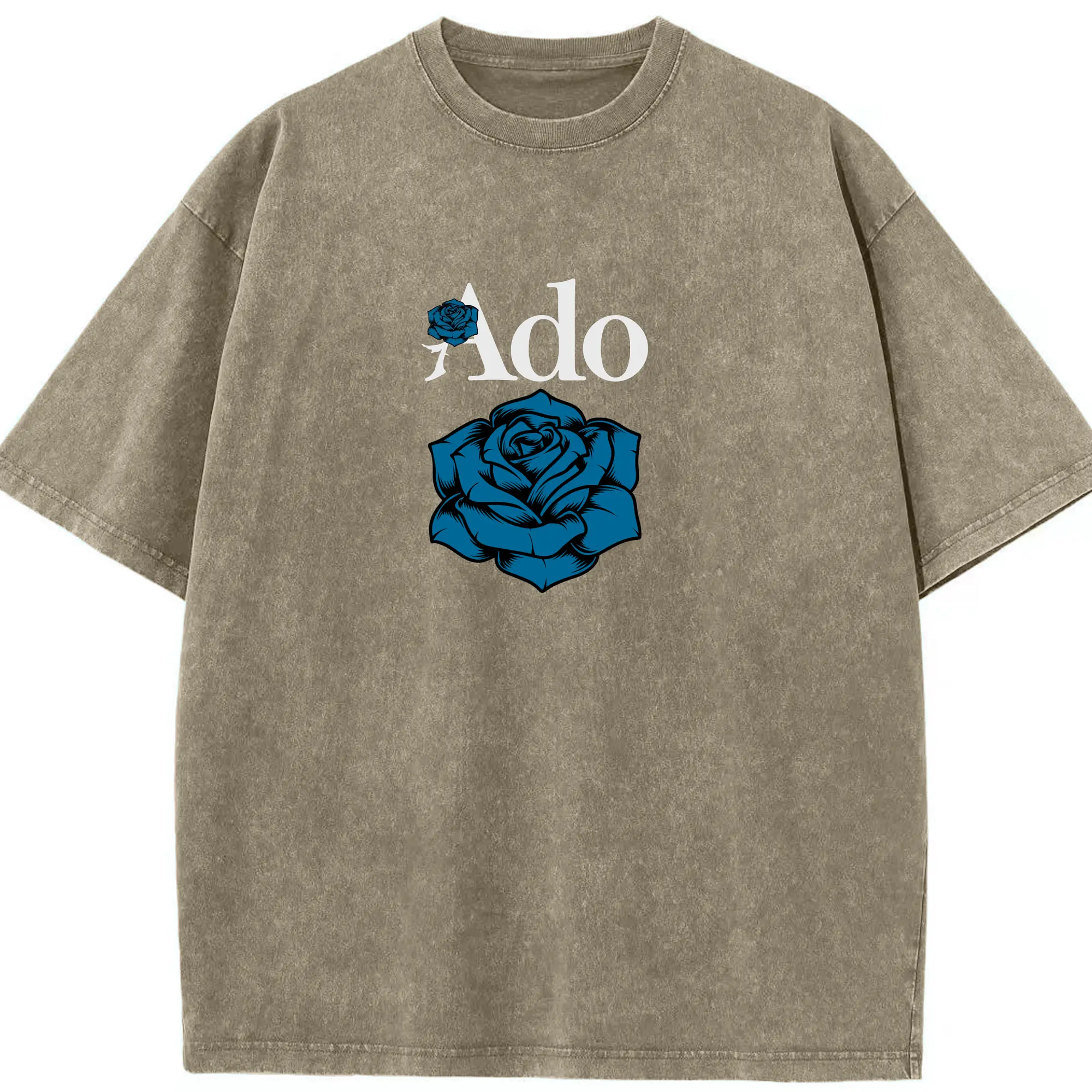 AdoアドAdo の ハート デザインわたしの かのじょ Ado が だいすき - 綿100% ヴィンテージ風 半袖Tシャツ ・ フロントプリント ・ 柔らか肌触り ・ 通気性 快適 ・ スポーツ カジュアル 外出用