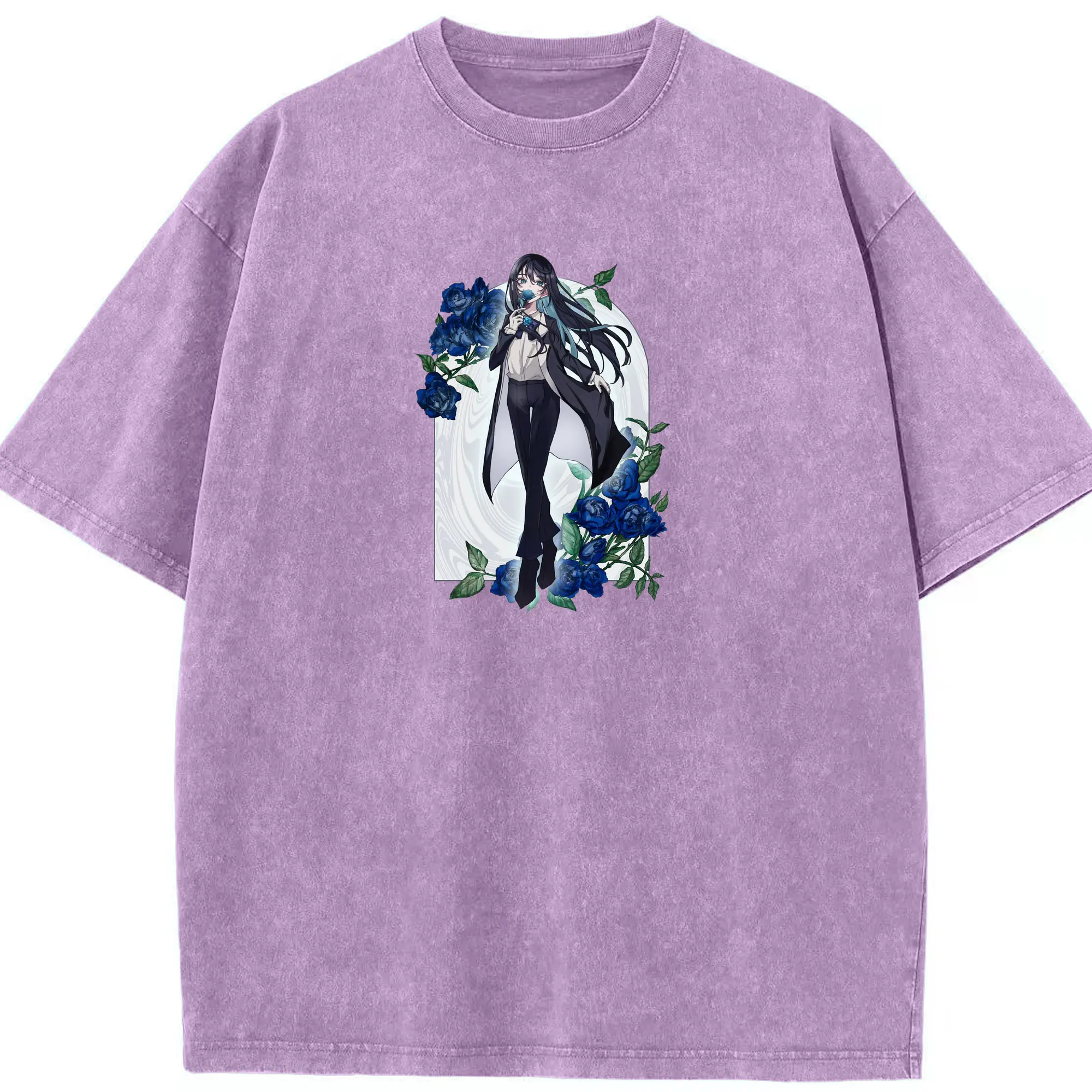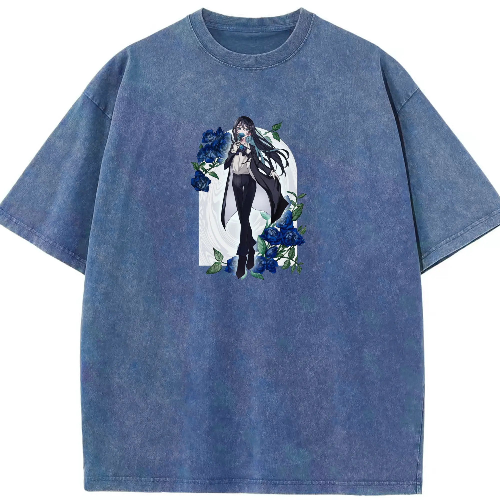 Adoアド咲き誇る青いバラ - 綿100% 半袖Tシャツ ・ フロントプリント ・ 快適 通気性 ・ 日常使い 散歩 スポーツ用