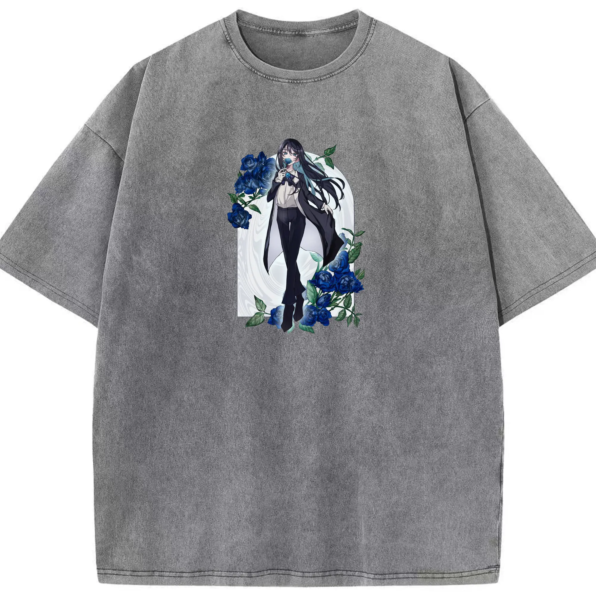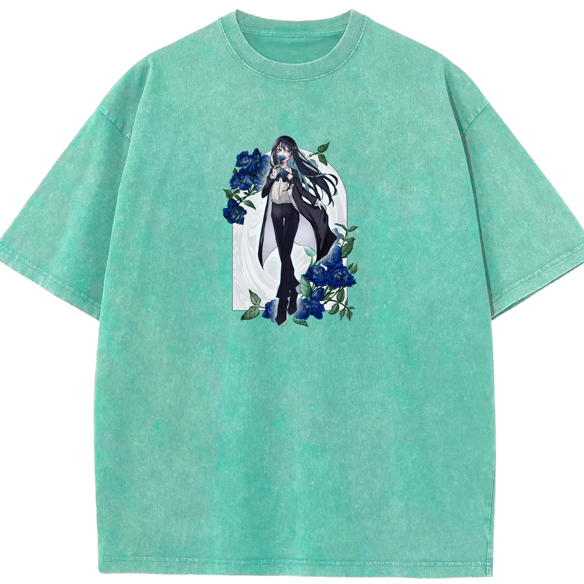 原神 Neuvillette 限定デザイン キャラクター - 綿100% ヴィンテージ風 半袖Tシャツ ・ フロントプリント ・ 柔らか肌触り ・ 通気性 快適 ・ スポーツ カジュアル 外出用