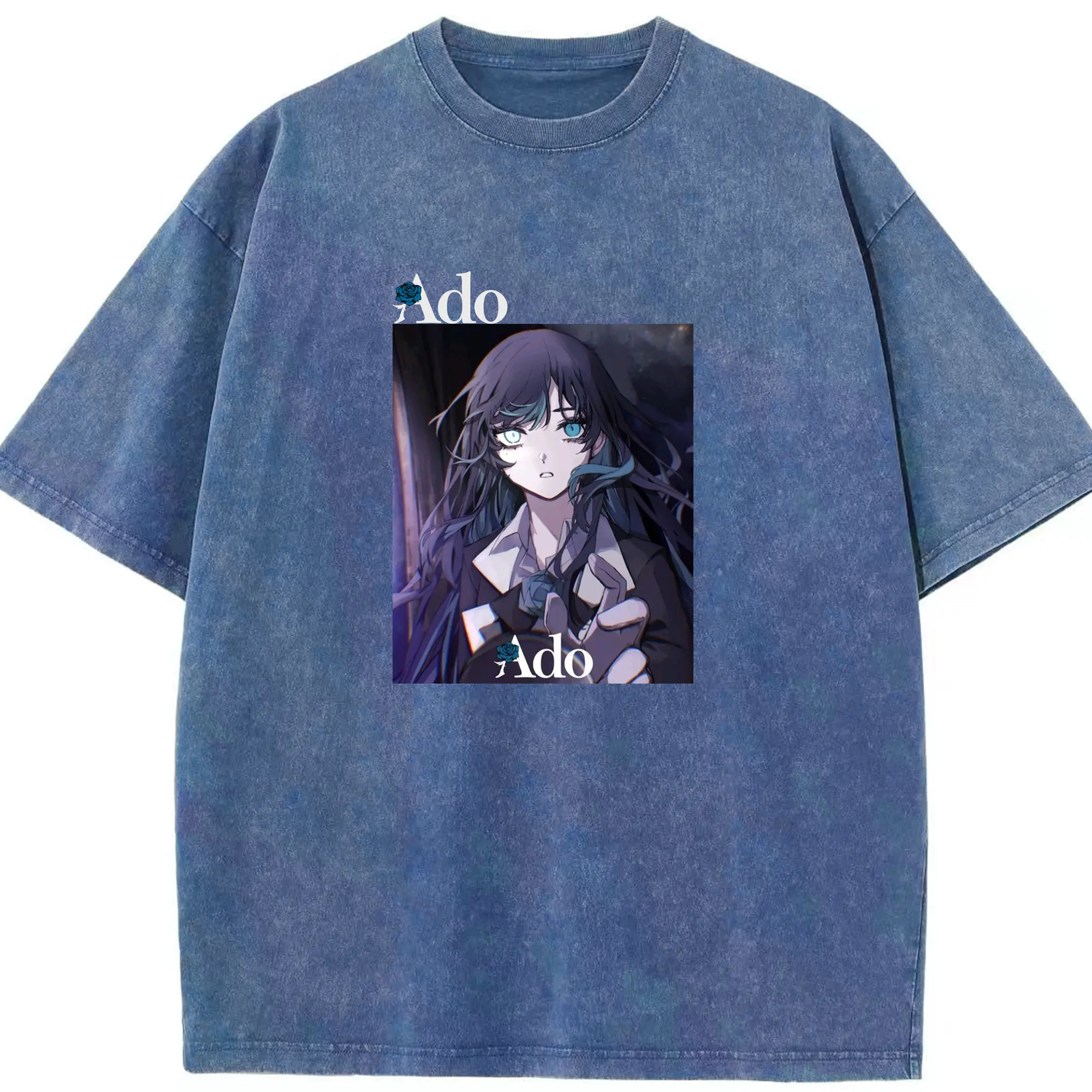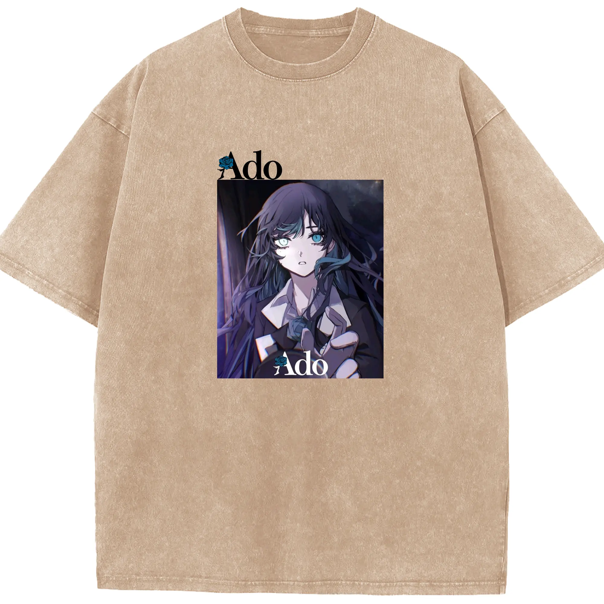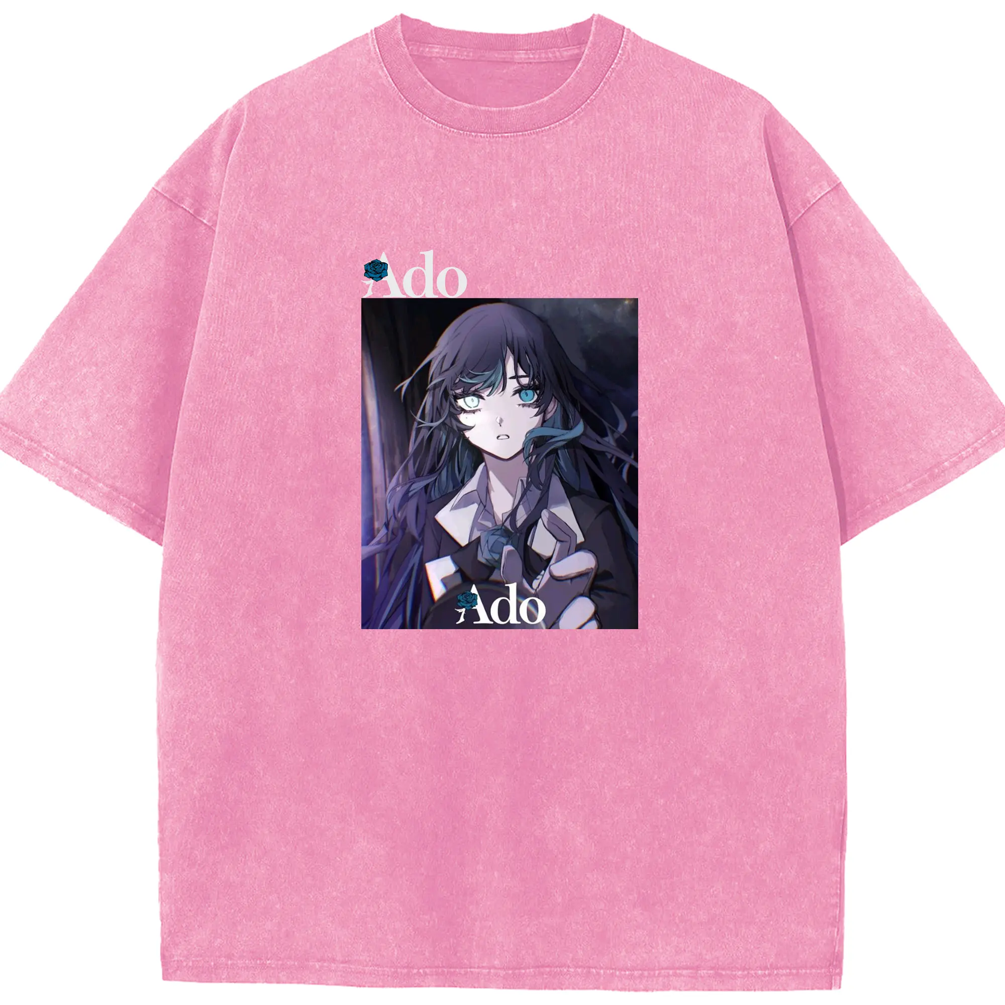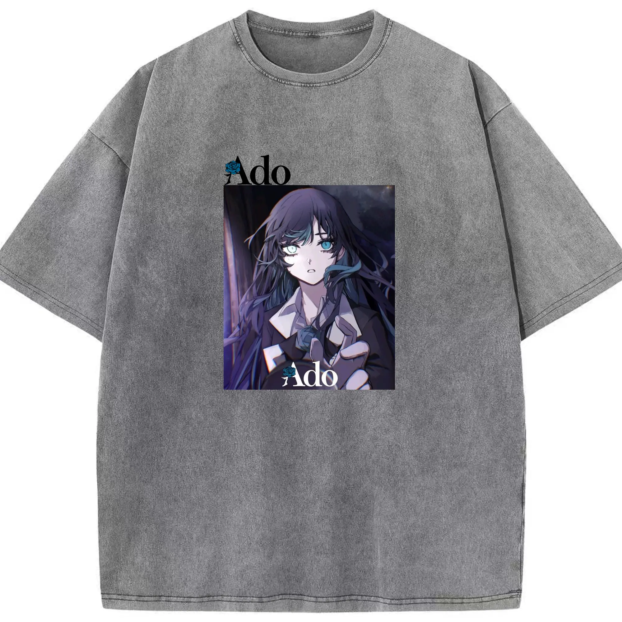 Ado(アド)話題のAdo「狂言」Ado×ワンピース - 綿100% ヴィンテージ風 半袖Tシャツ ・ フロントプリント ・ 柔らか肌触り ・ 通気性 快適 ・ スポーツ カジュアル 外出用