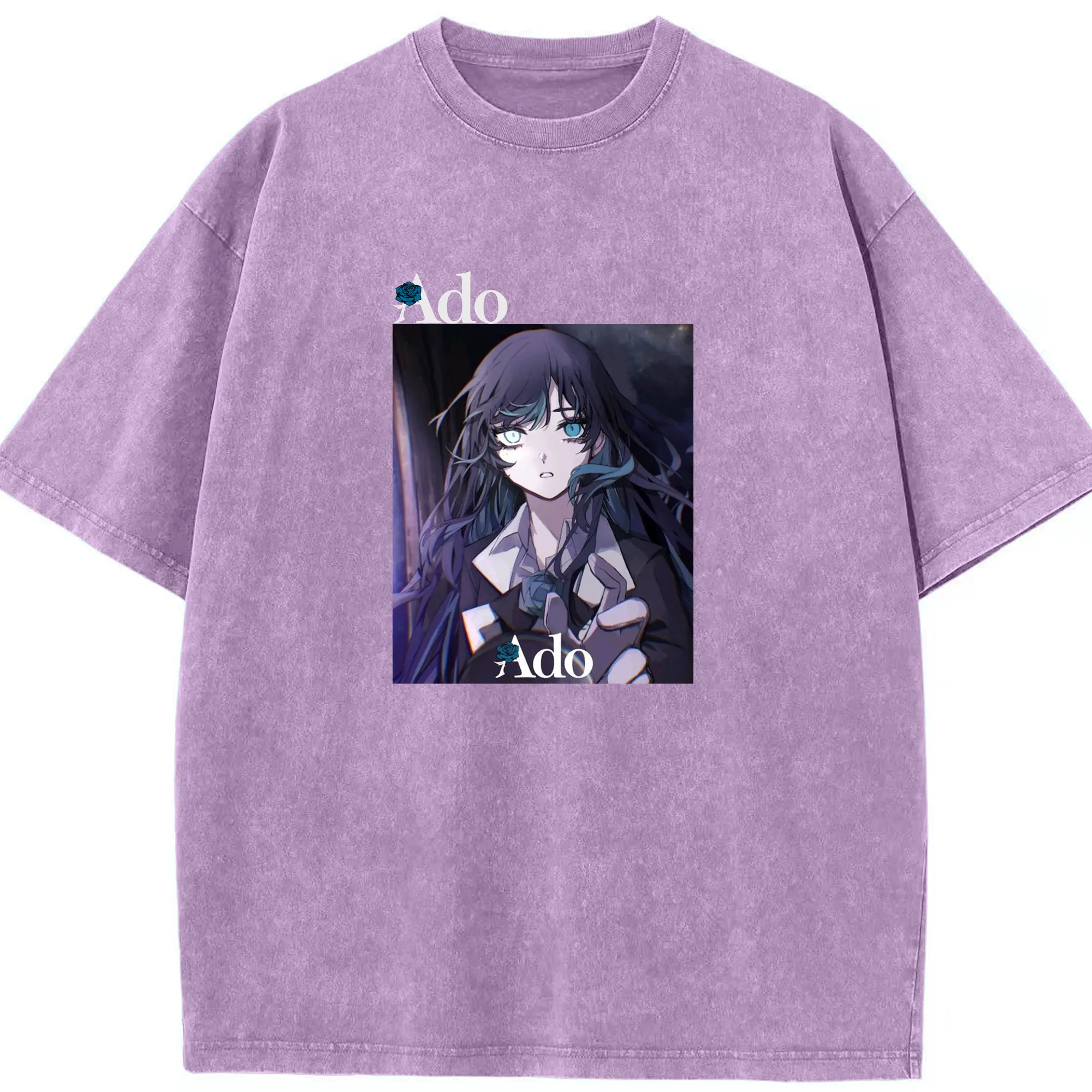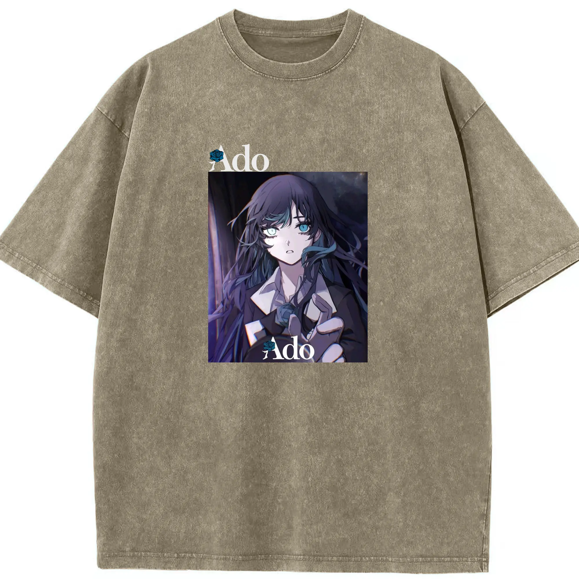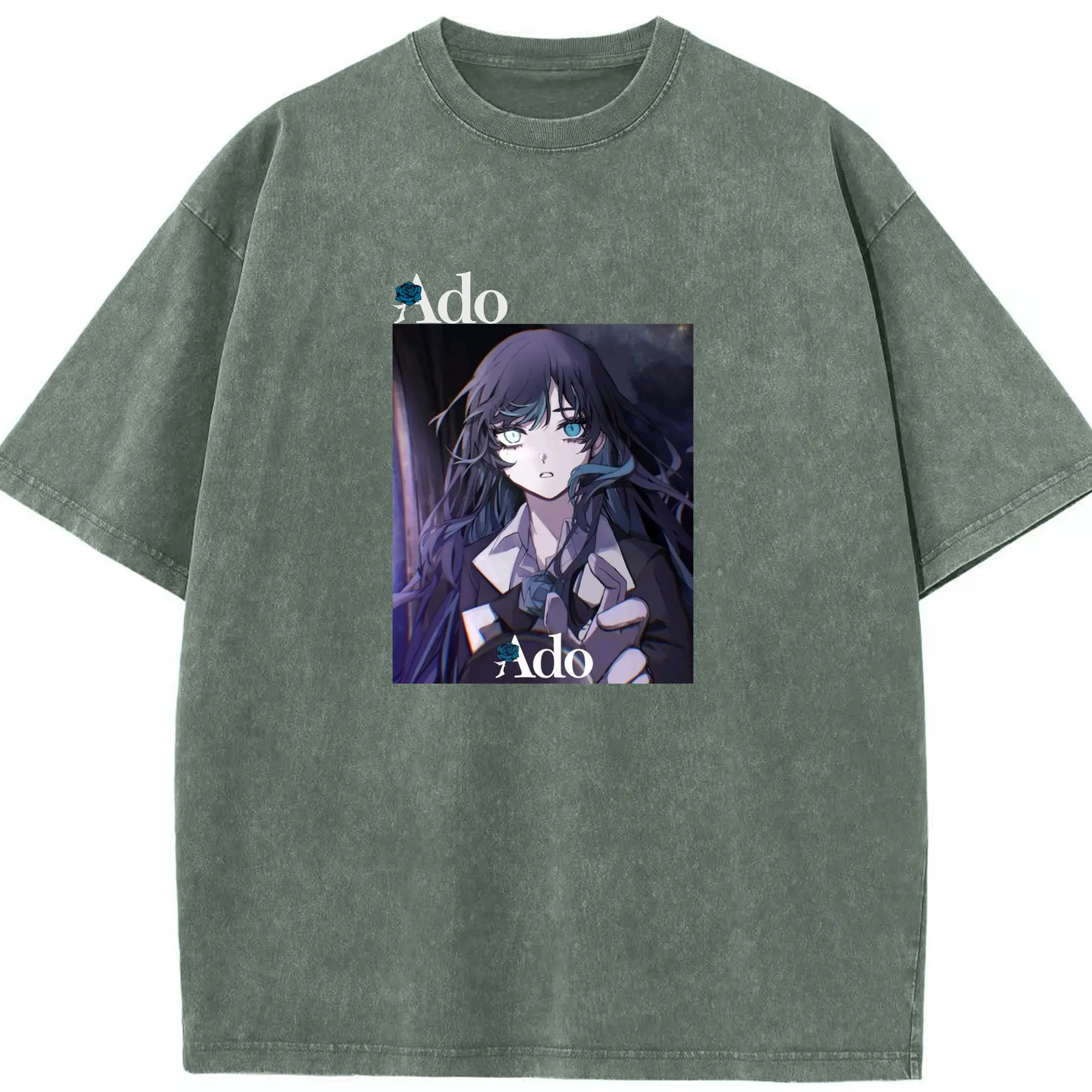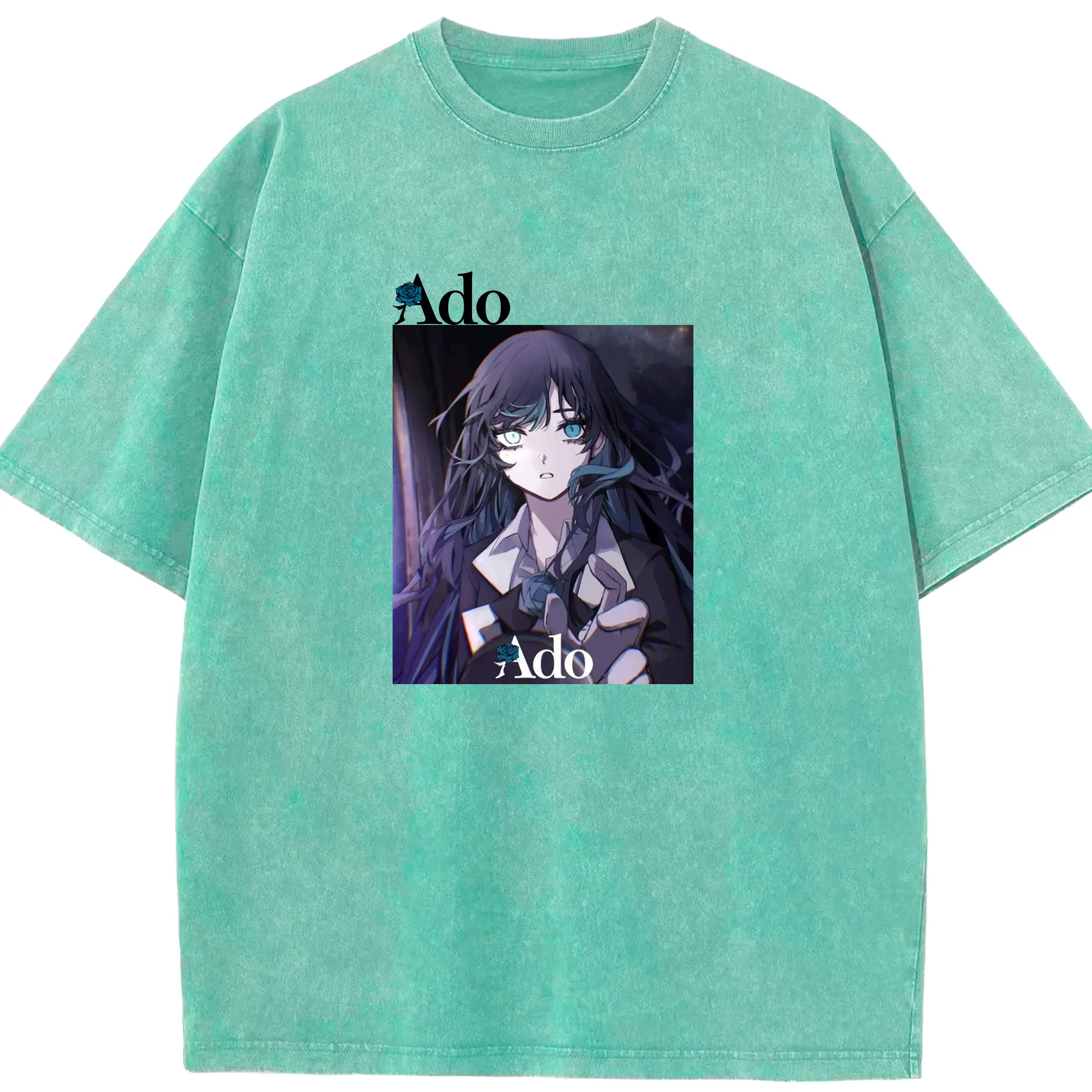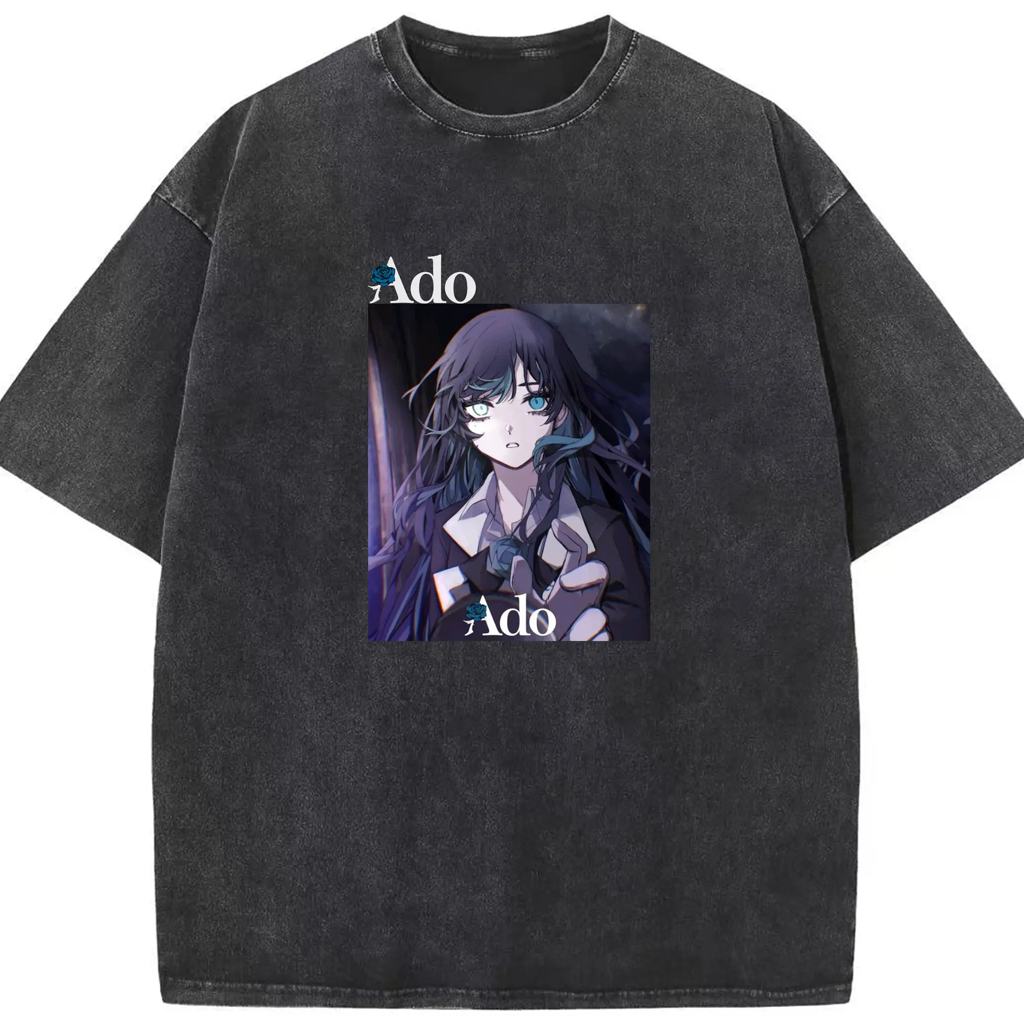 Ado(アド)話題のAdo「狂言」Ado×ワンピース - 綿100% ヴィンテージ風 半袖Tシャツ ・ フロントプリント ・ 柔らか肌触り ・ 通気性 快適 ・ スポーツ カジュアル 外出用