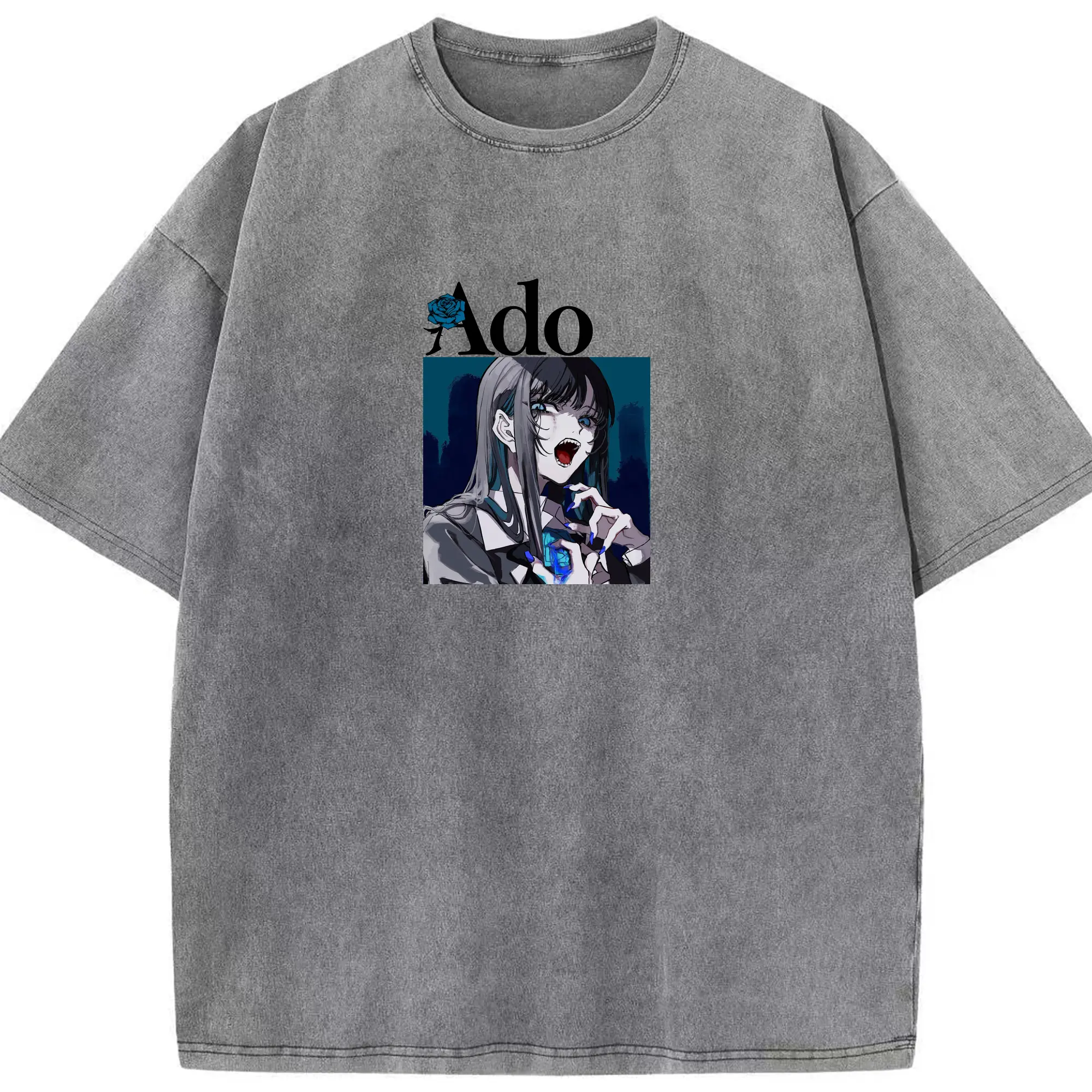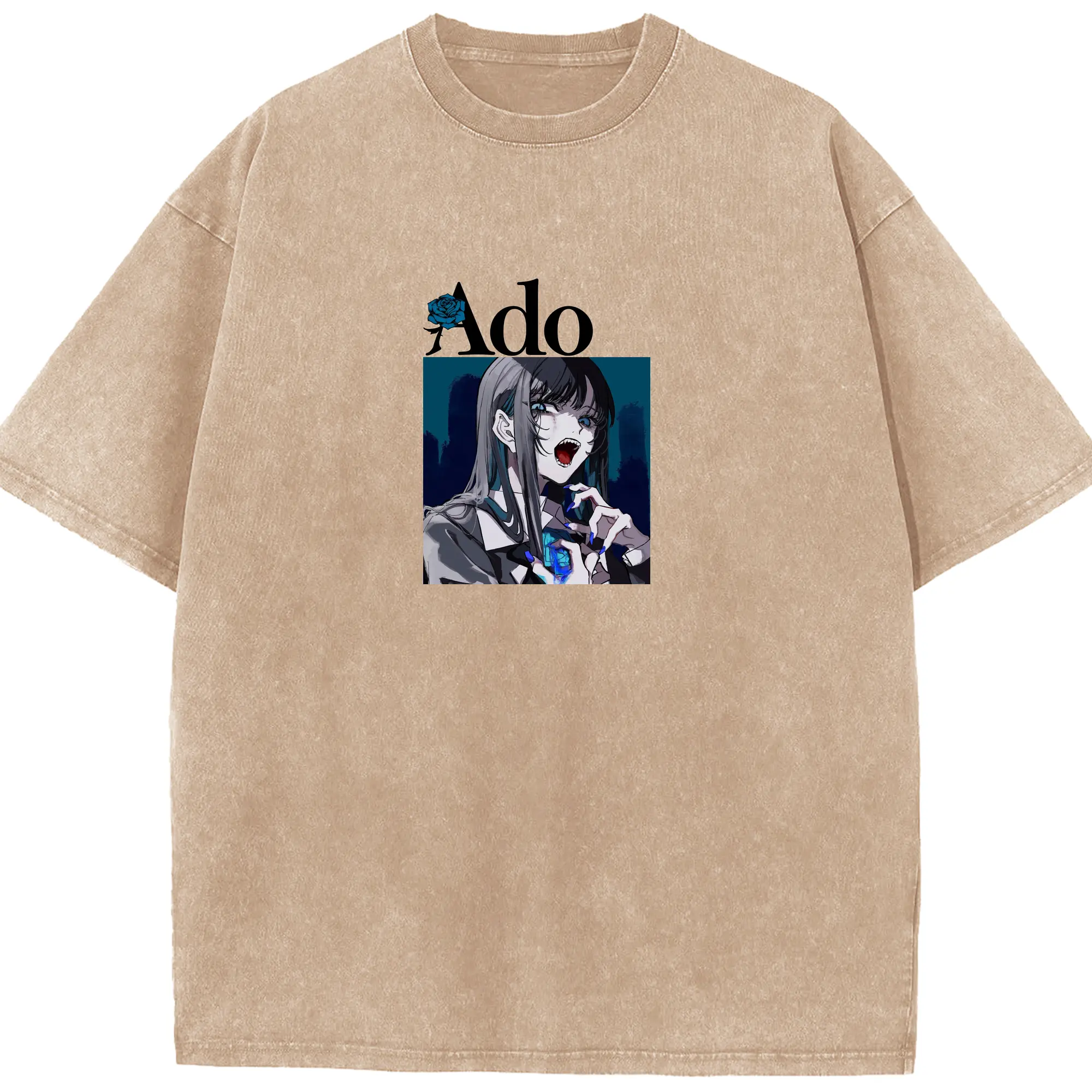 Adoアド暗黒系デザイン - 綿100% 半袖Tシャツ ・ フロントプリント ・ 快適 通気性 ・ 日常使い 散歩 スポーツ用