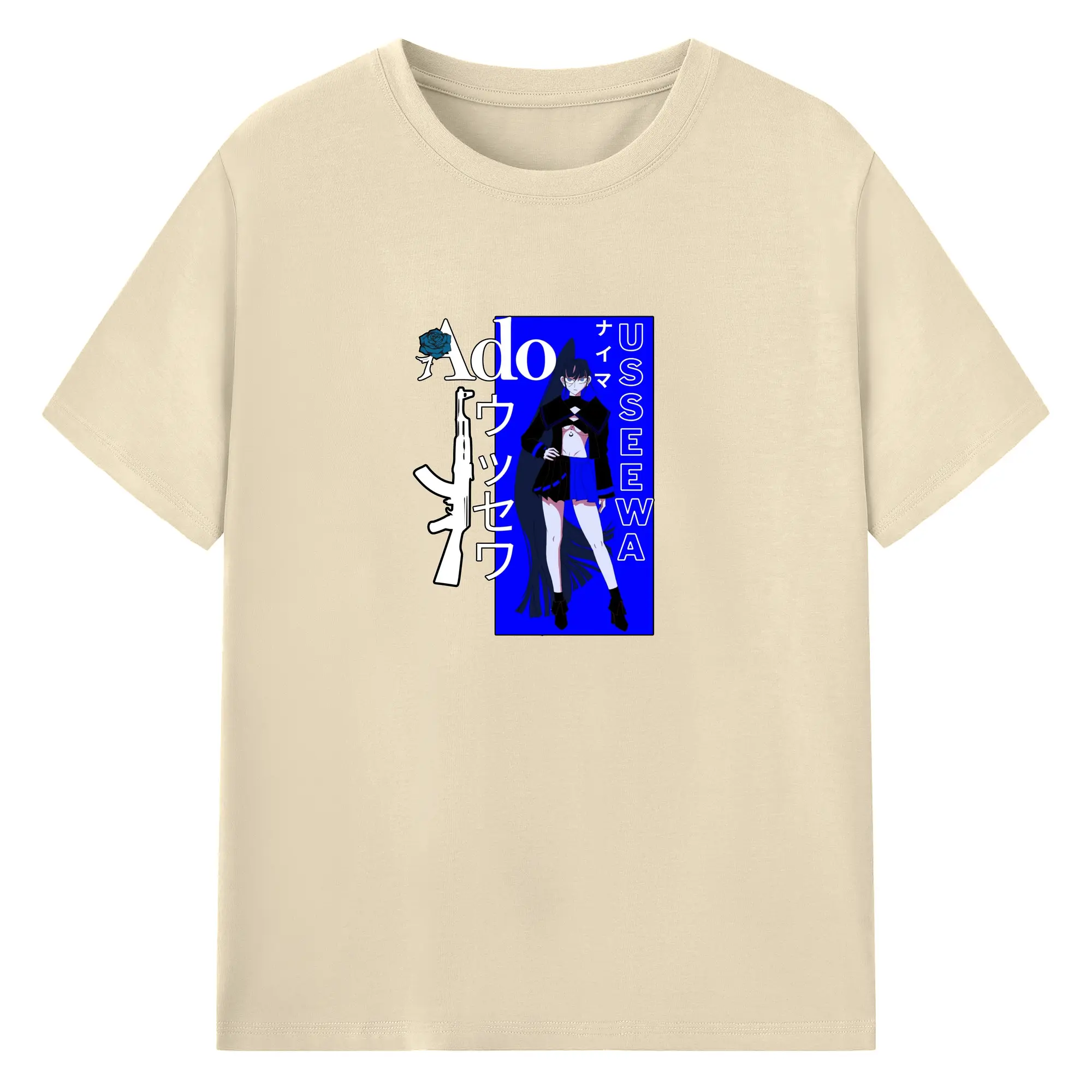 Adoアド暗黒系デザイン - 綿100% ヴィンテージ風 半袖Tシャツ ・ フロントプリント ・ 柔らか肌触り ・ 通気性 快適 ・ スポーツ カジュアル 外出用