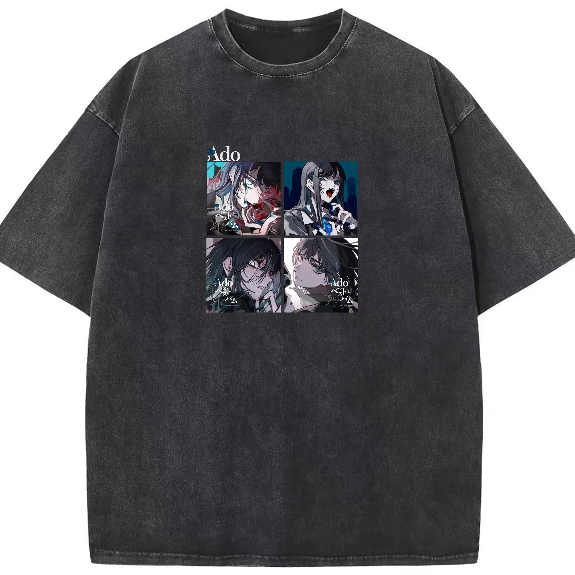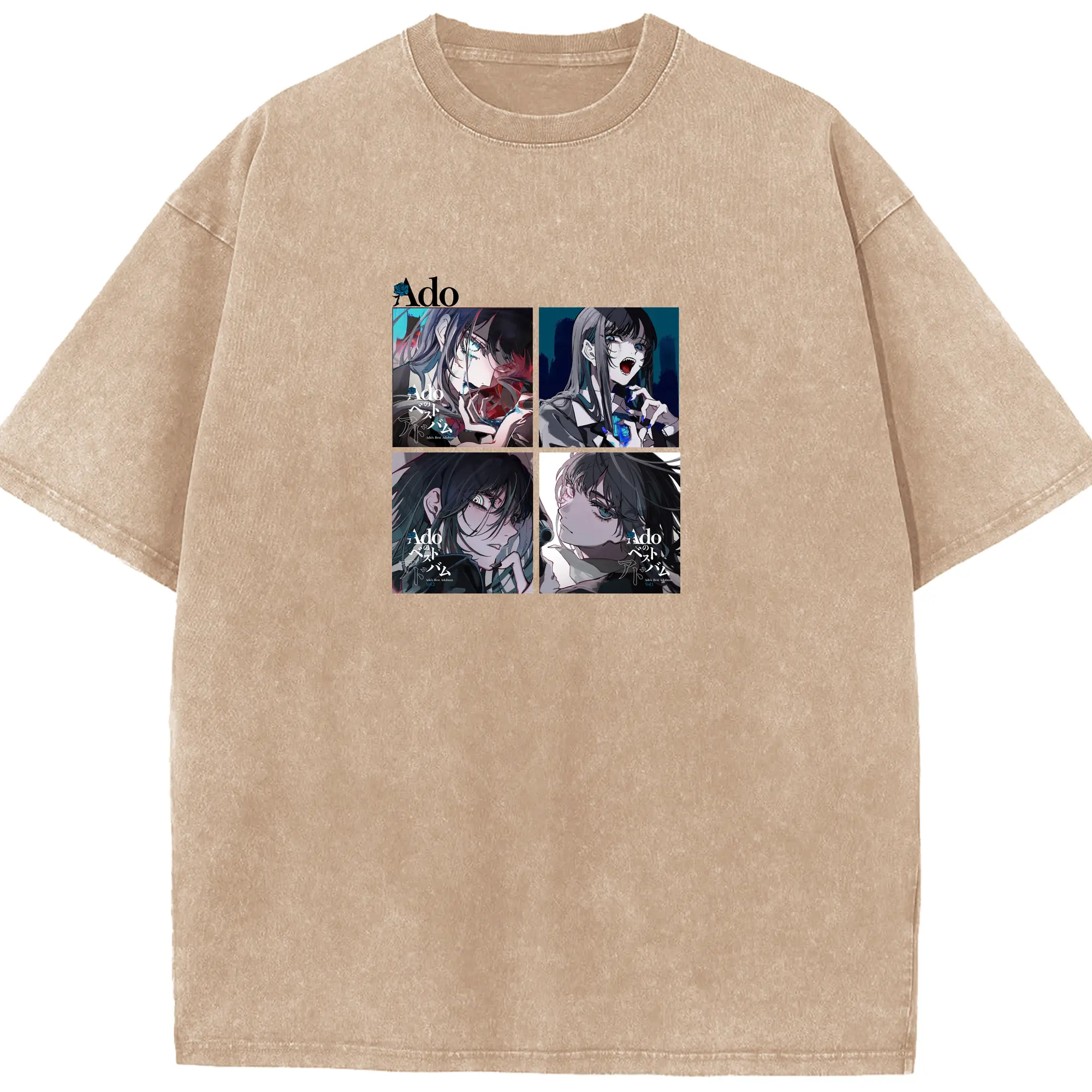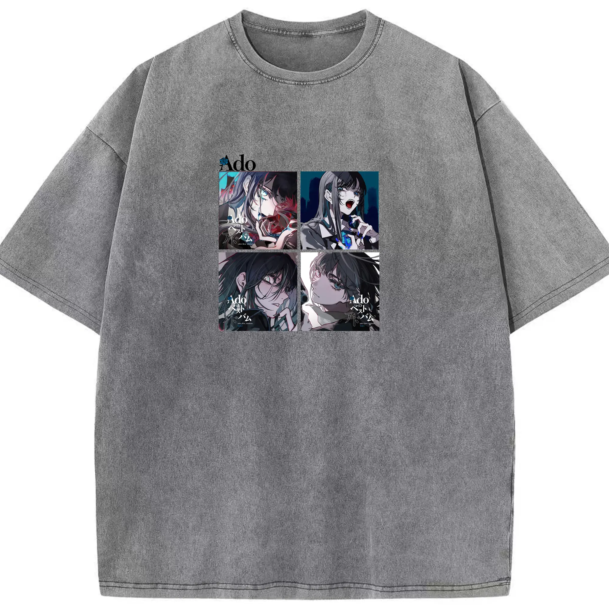 AdoアドAdoのコラージュデザイン - 綿100% 半袖Tシャツ ・ フロントプリント ・ 快適 通気性 ・ 日常使い 散歩 スポーツ用