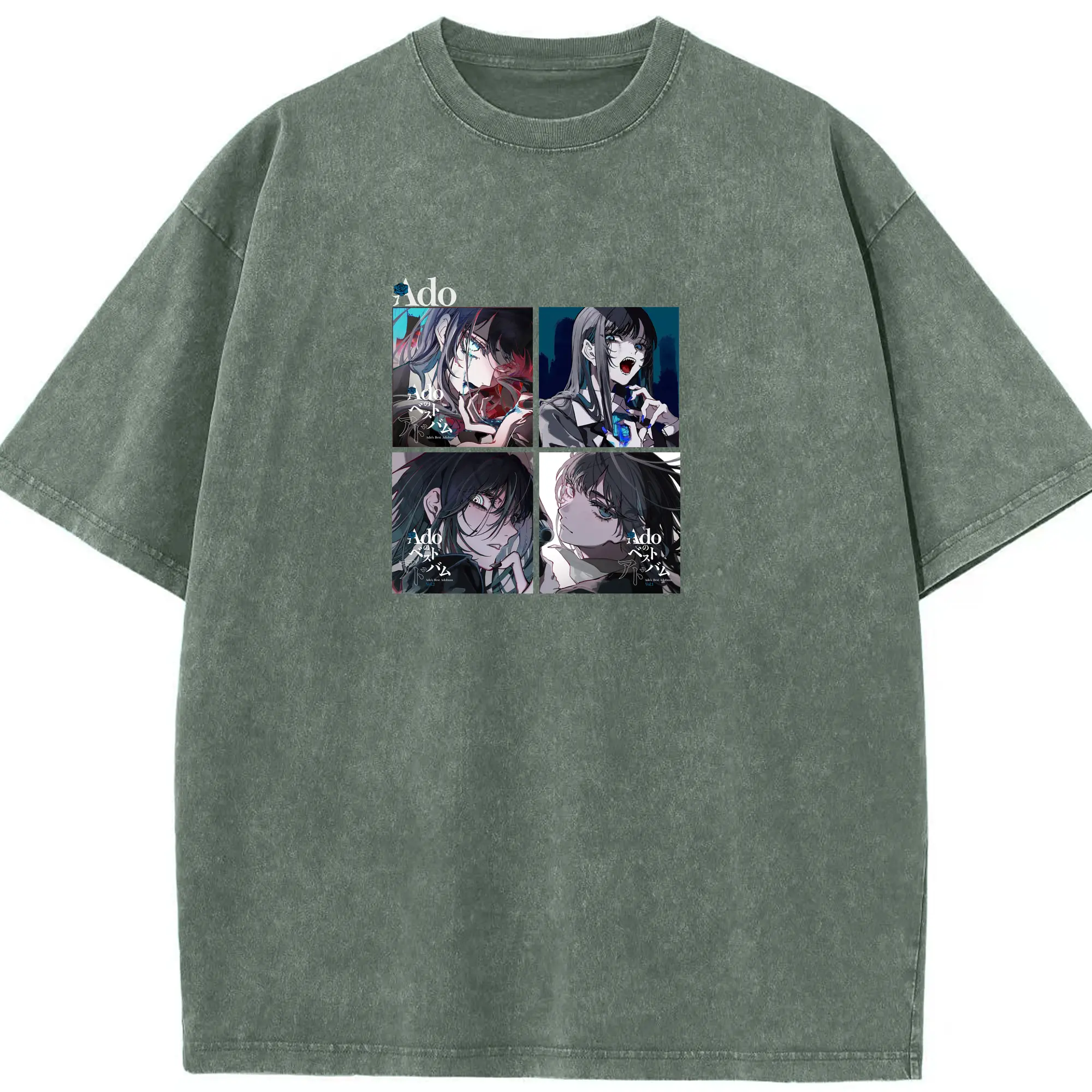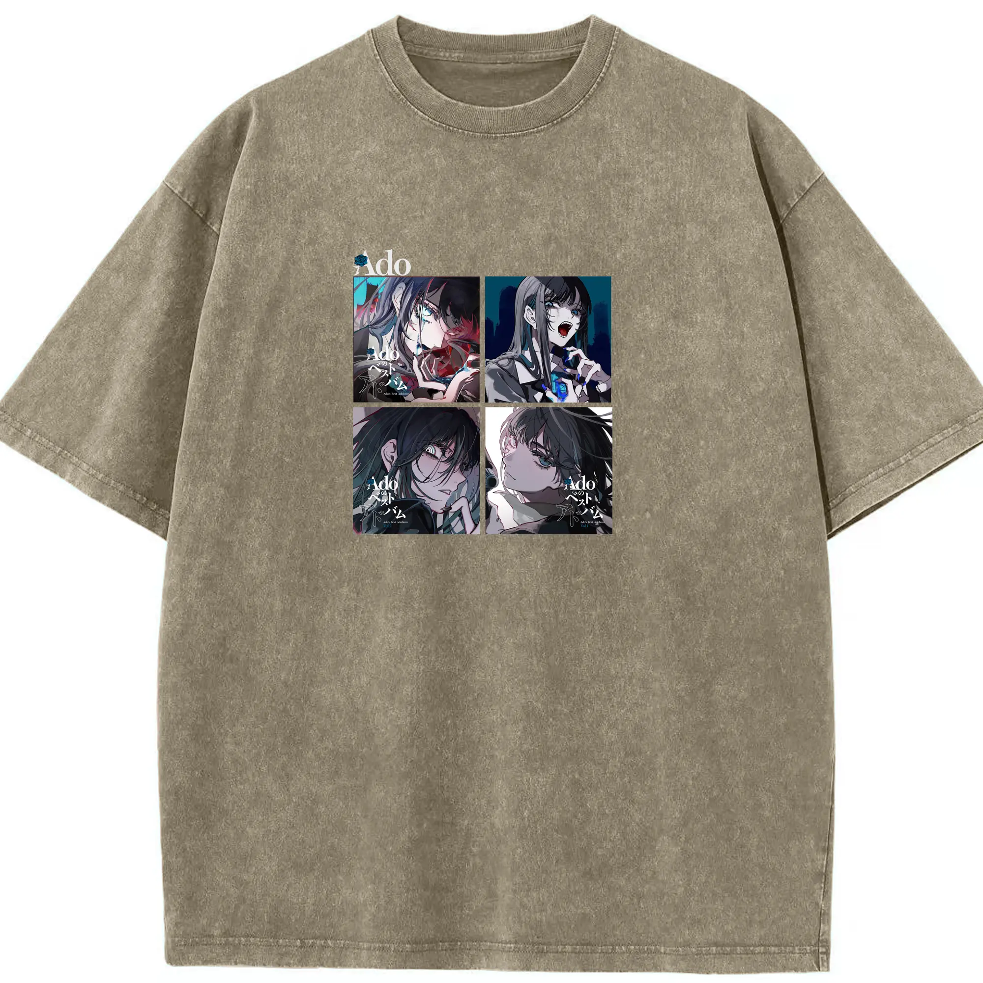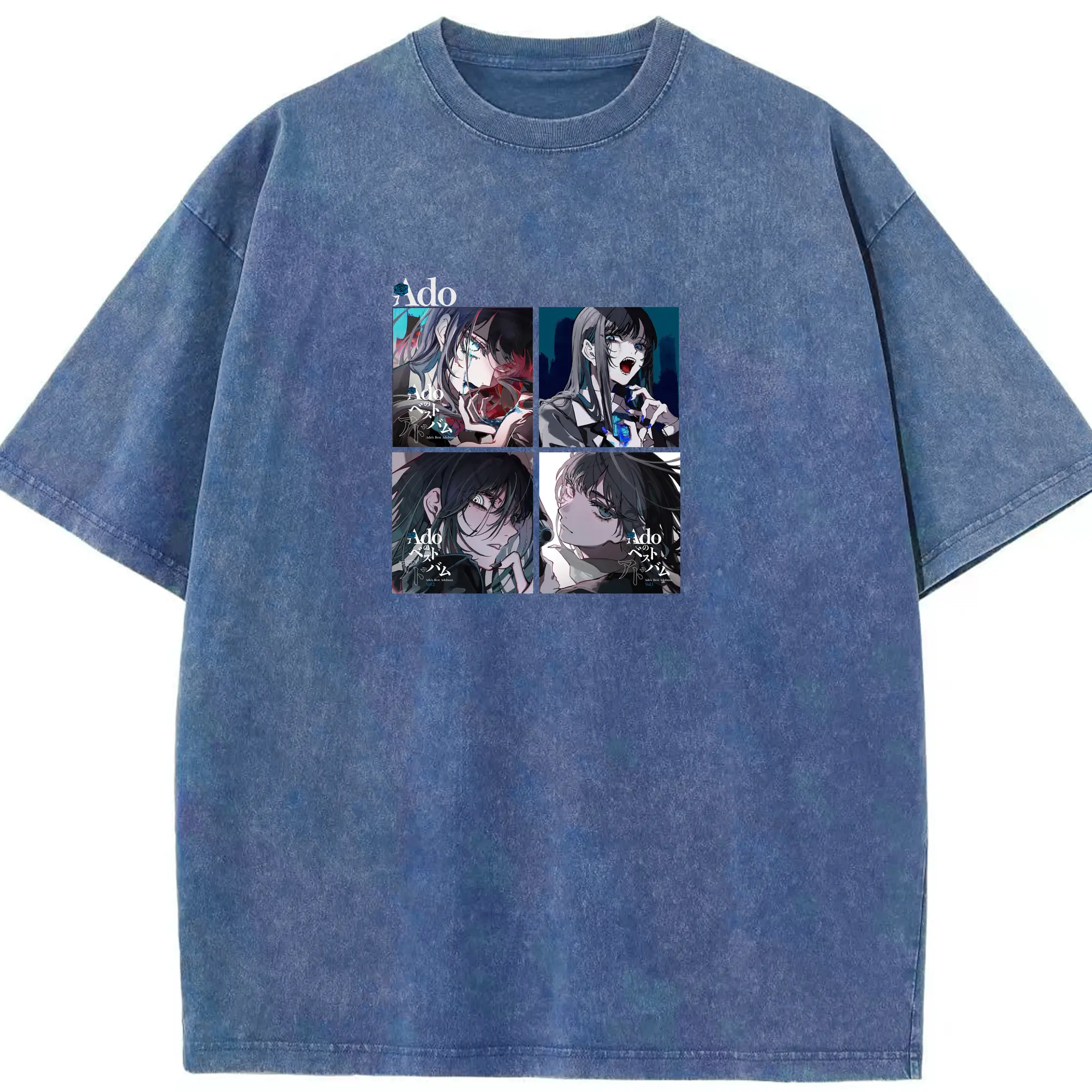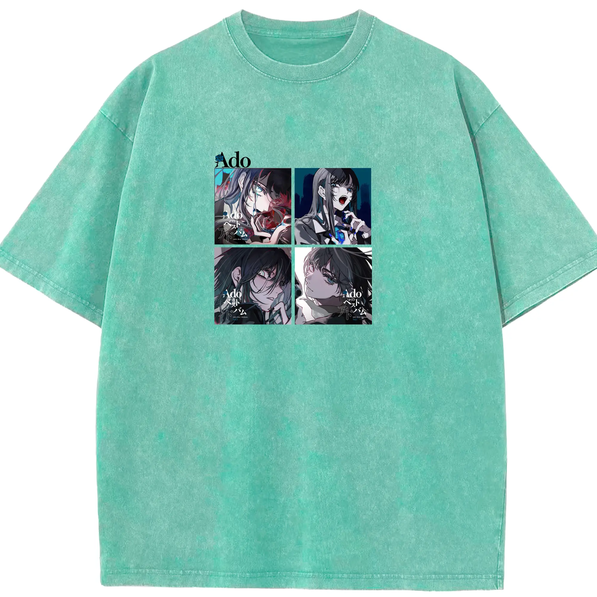 AdoアドAdoのコラージュデザイン - 綿100% 半袖Tシャツ ・ フロントプリント ・ 快適 通気性 ・ 日常使い 散歩 スポーツ用