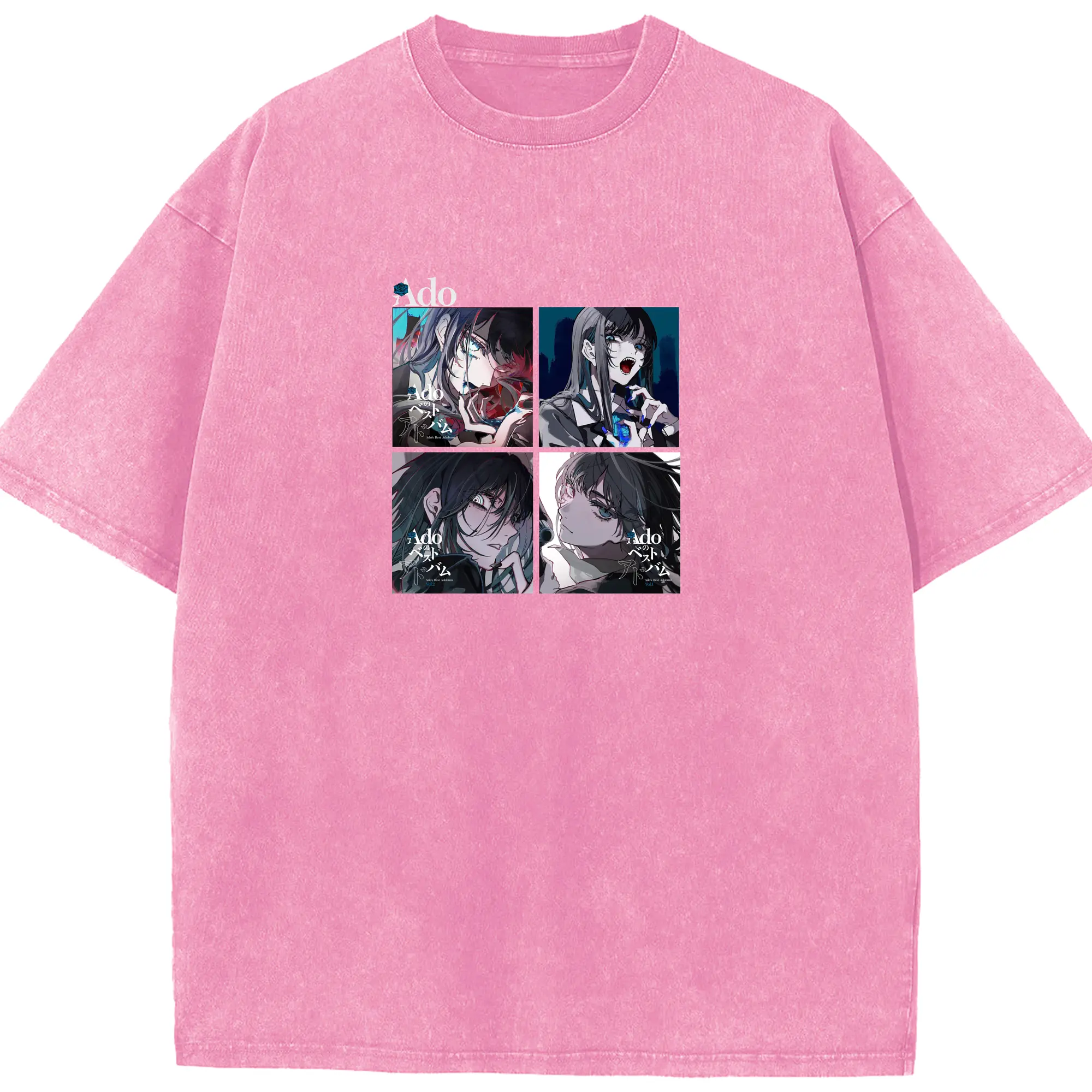 AdoアドAdo の ハート デザインわたしの かのじょ Ado が だいすき - 綿100% ヴィンテージ風 半袖Tシャツ ・ フロントプリント ・ 柔らか肌触り ・ 通気性 快適 ・ スポーツ カジュアル 外出用