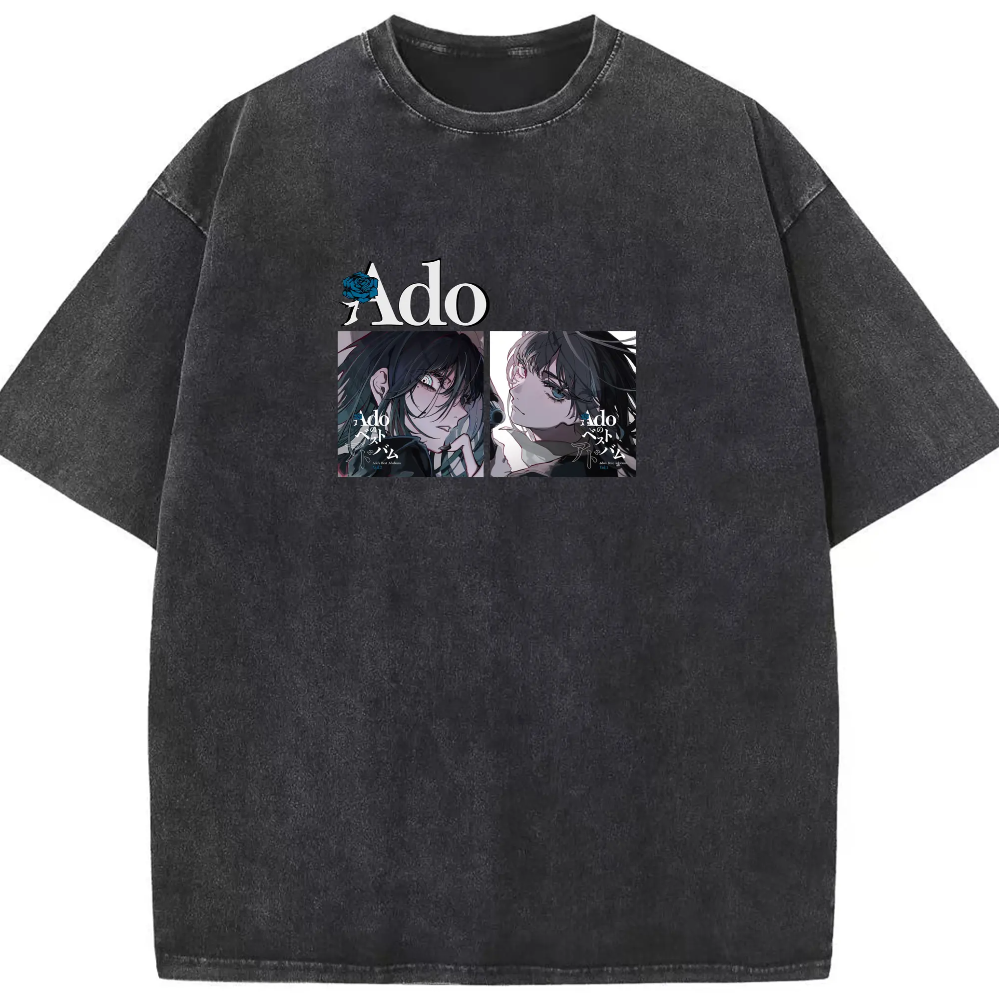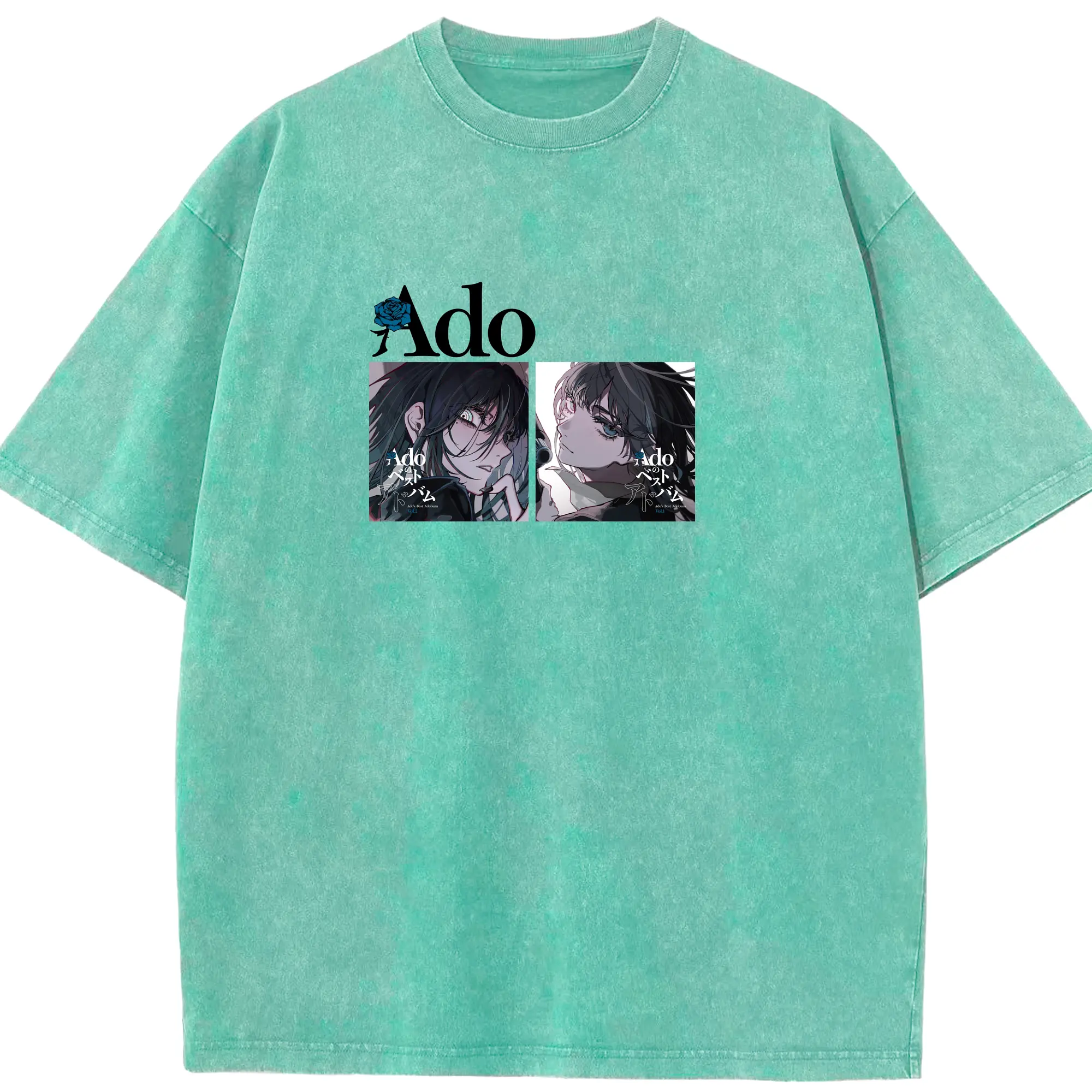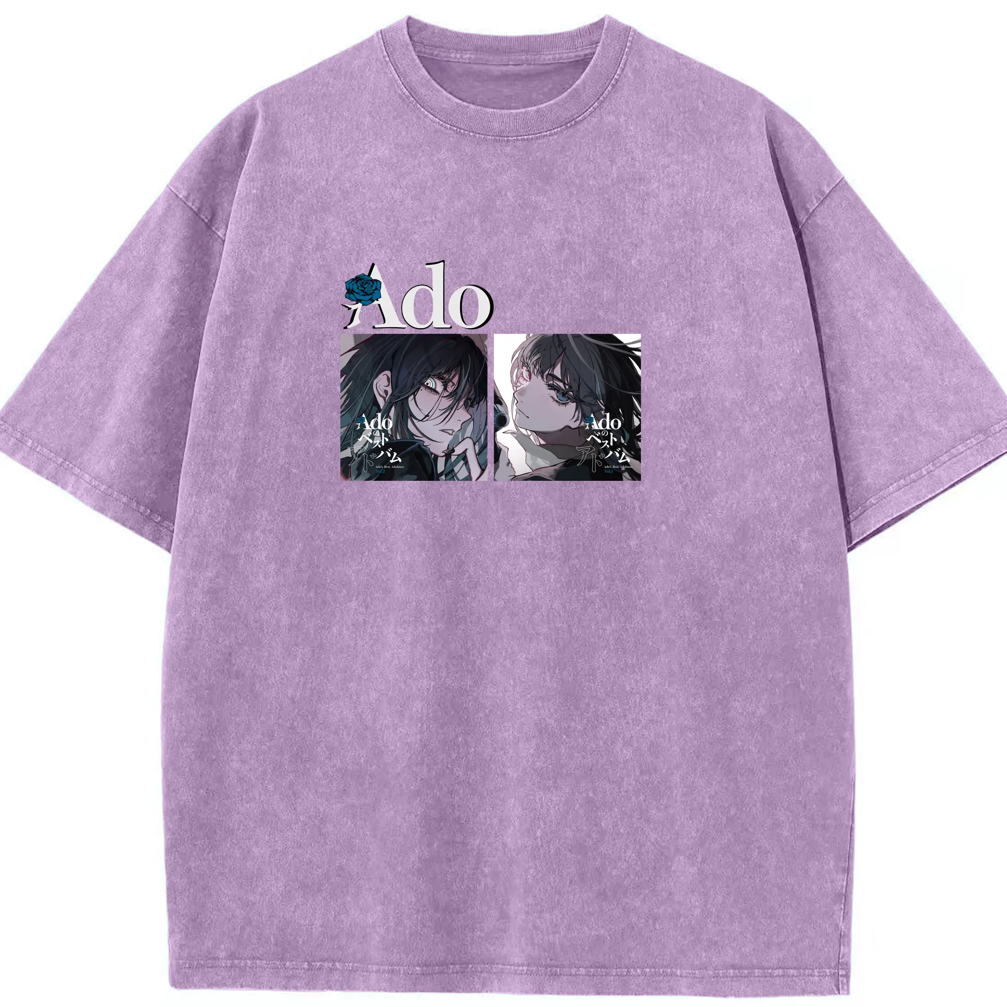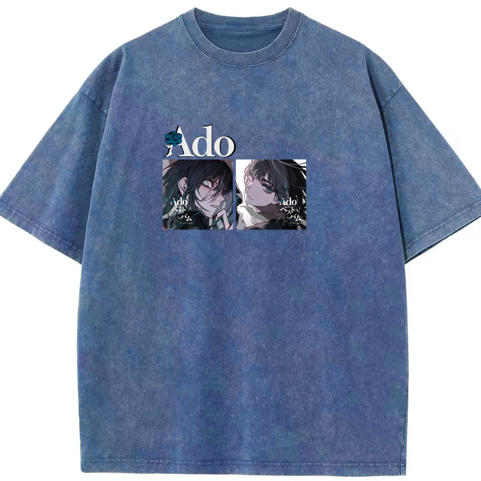 AdoアドAdoのコラージュデザイン - 綿100% 半袖Tシャツ ・ フロントプリント ・ 快適 通気性 ・ 日常使い 散歩 スポーツ用