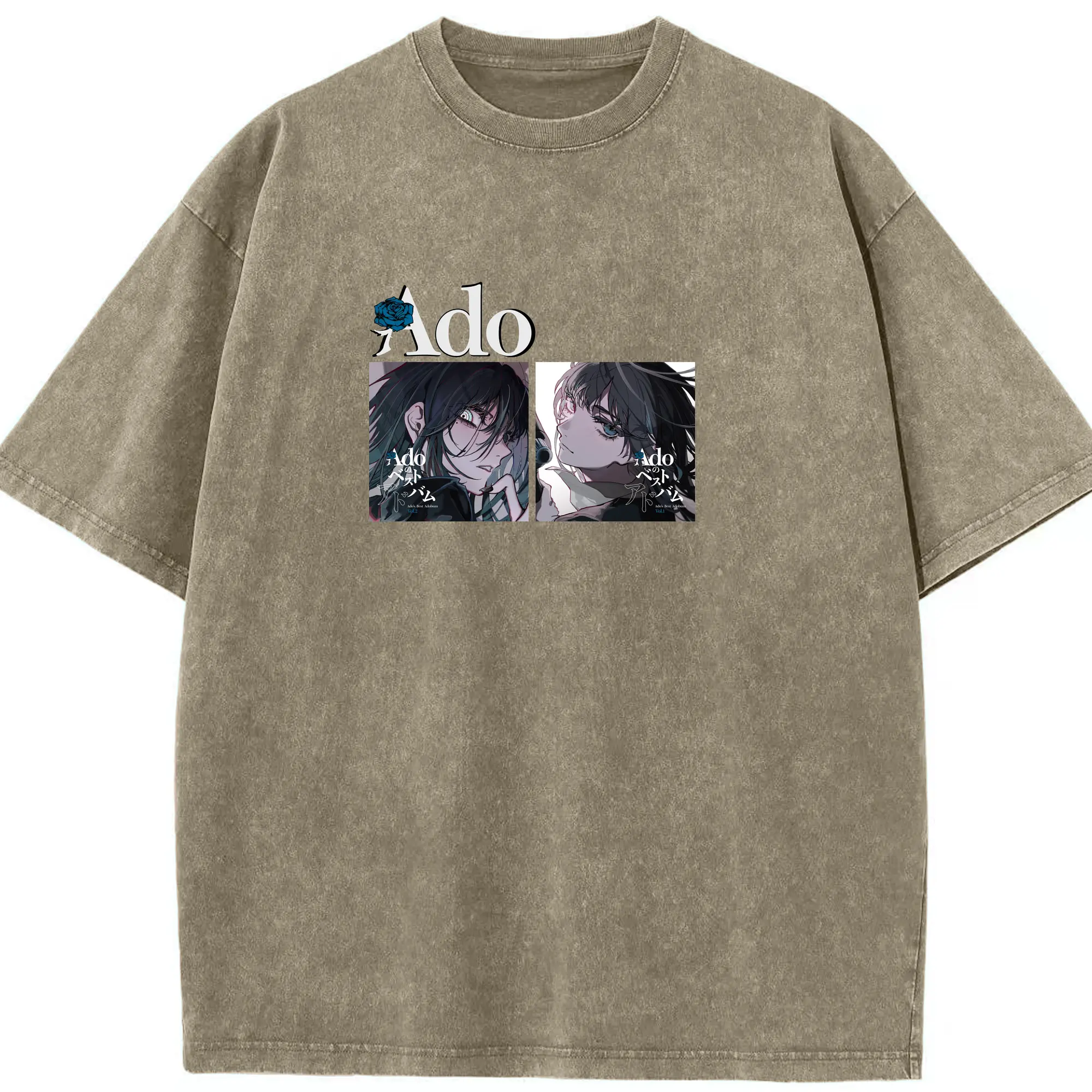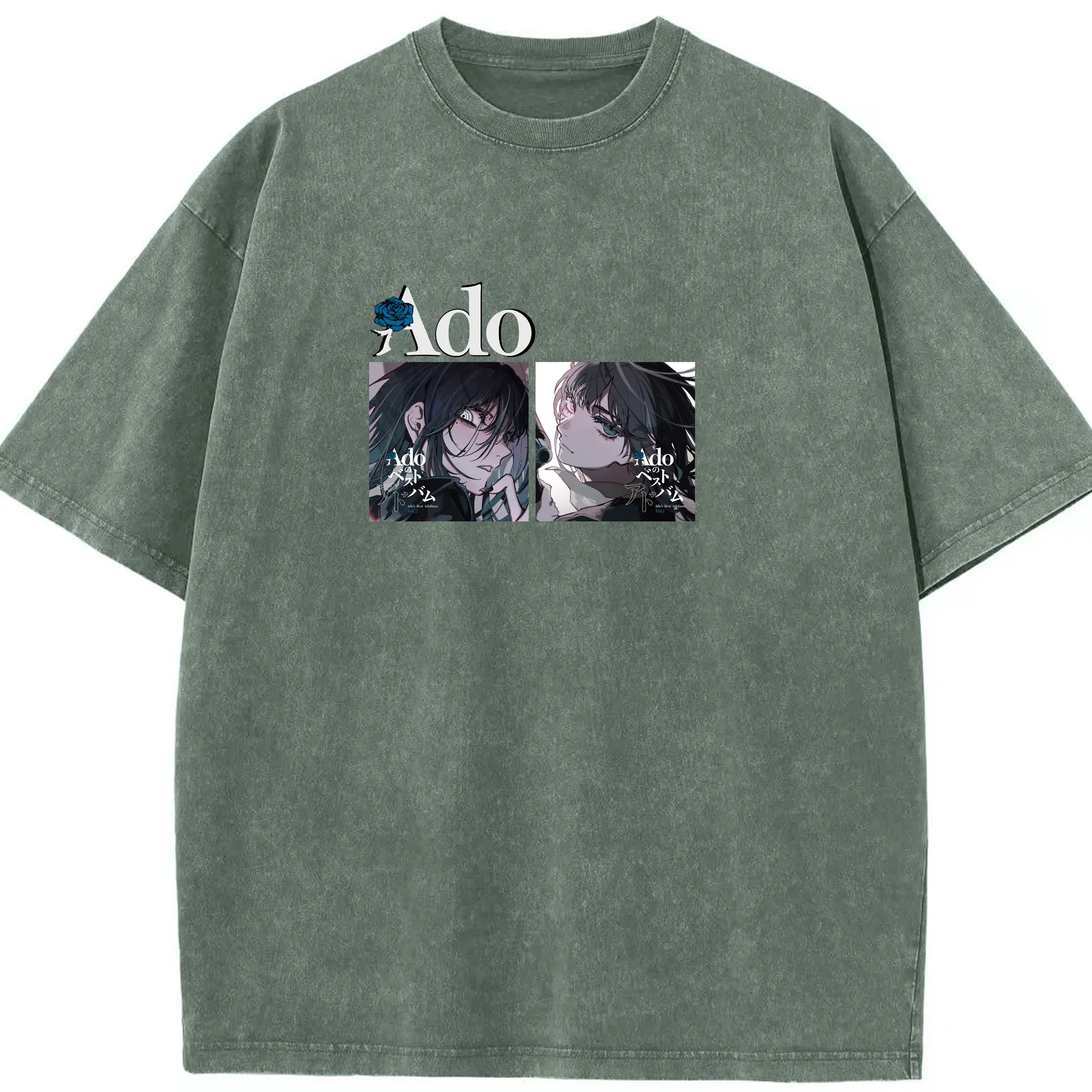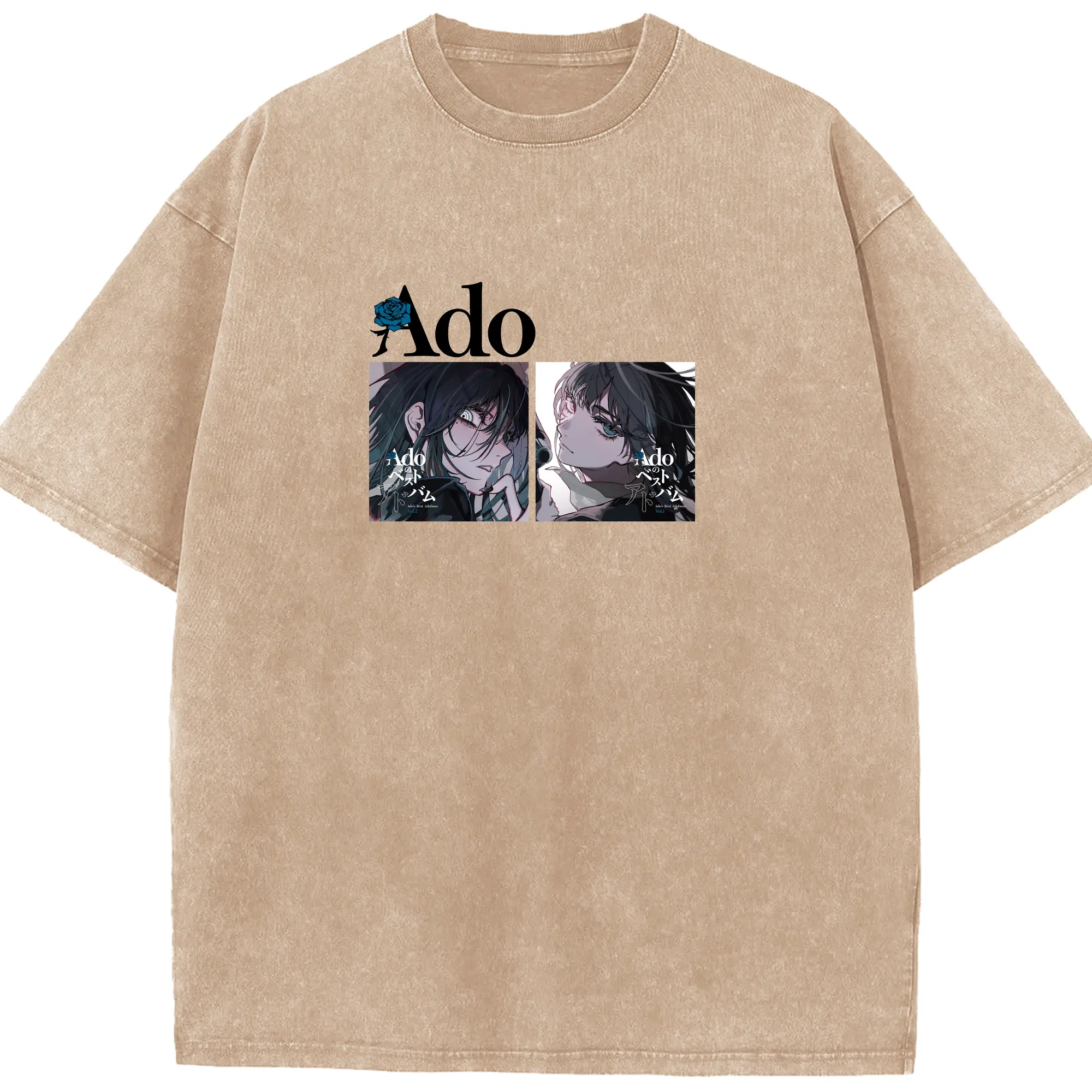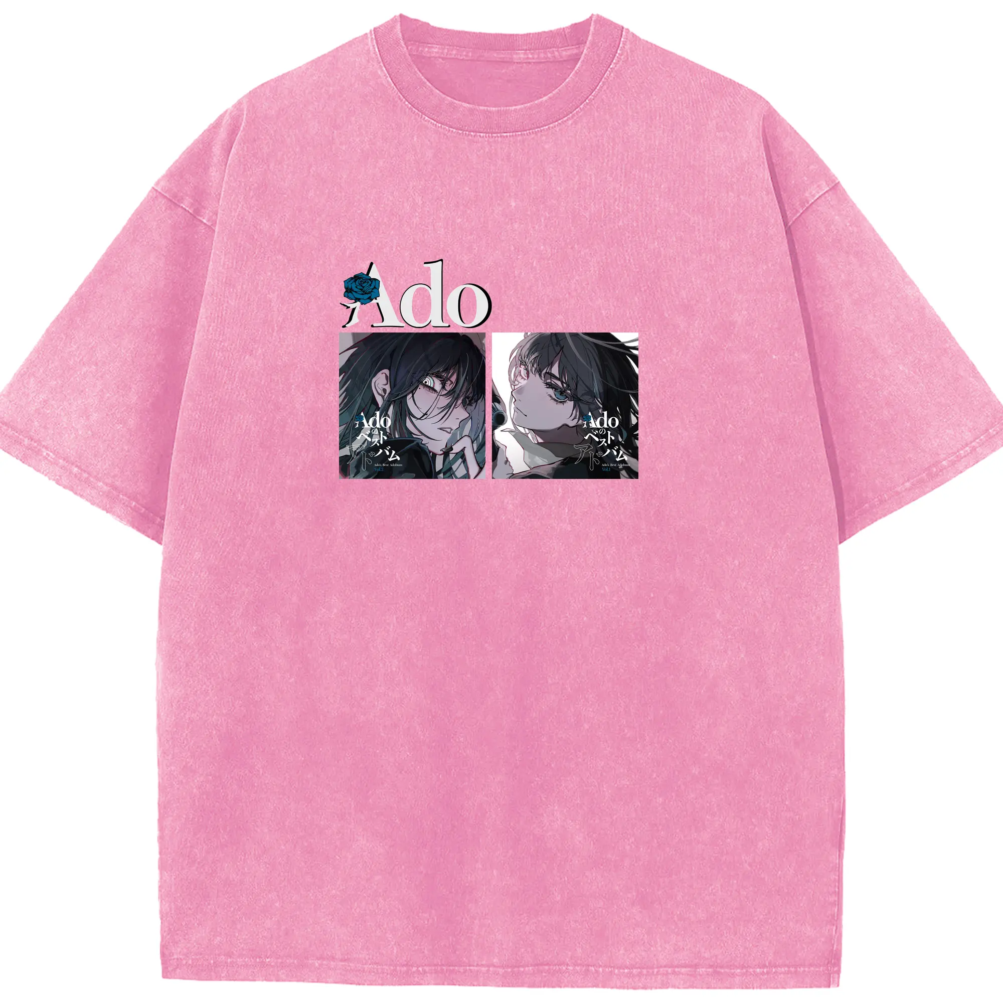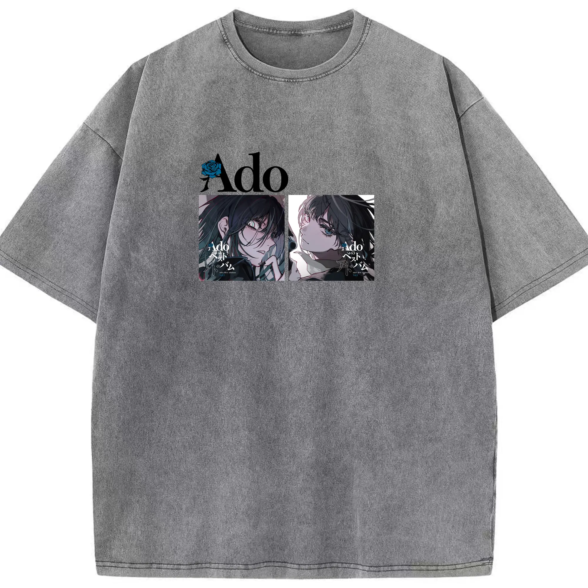 AdoアドAdoのコラージュデザイン - 綿100% 半袖Tシャツ ・ フロントプリント ・ 快適 通気性 ・ 日常使い 散歩 スポーツ用