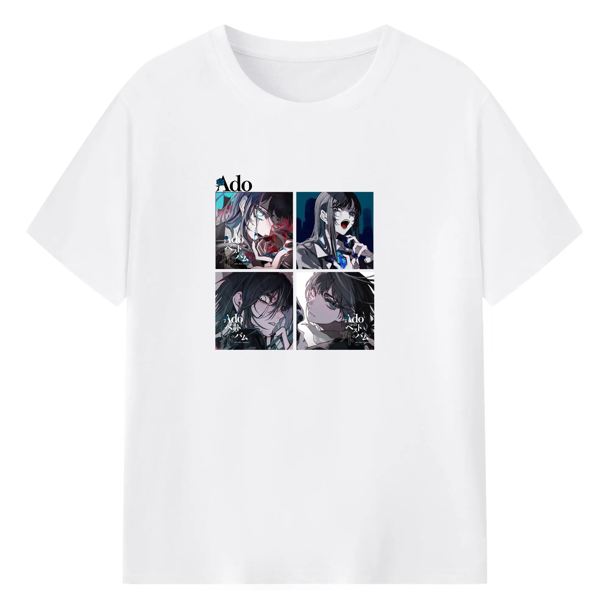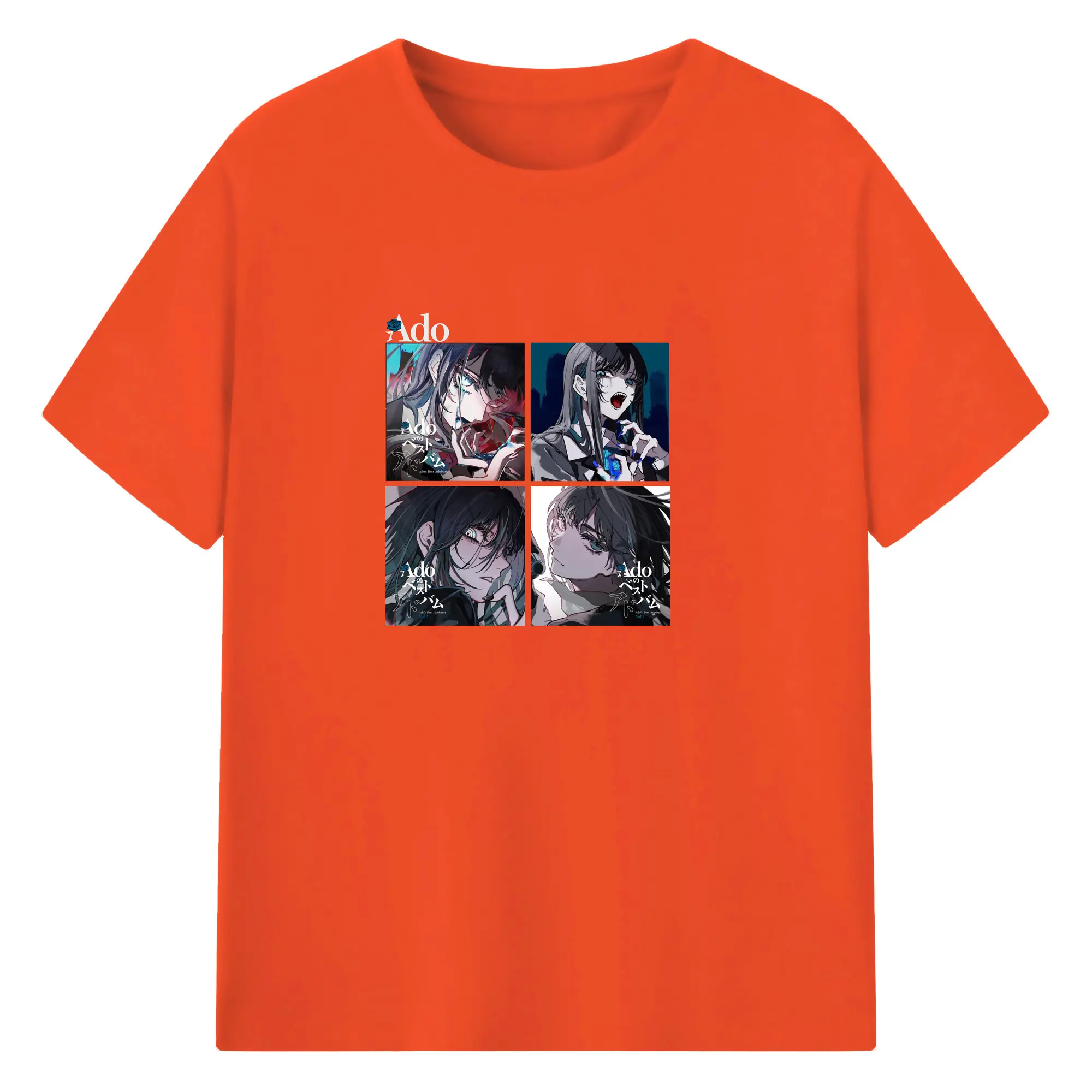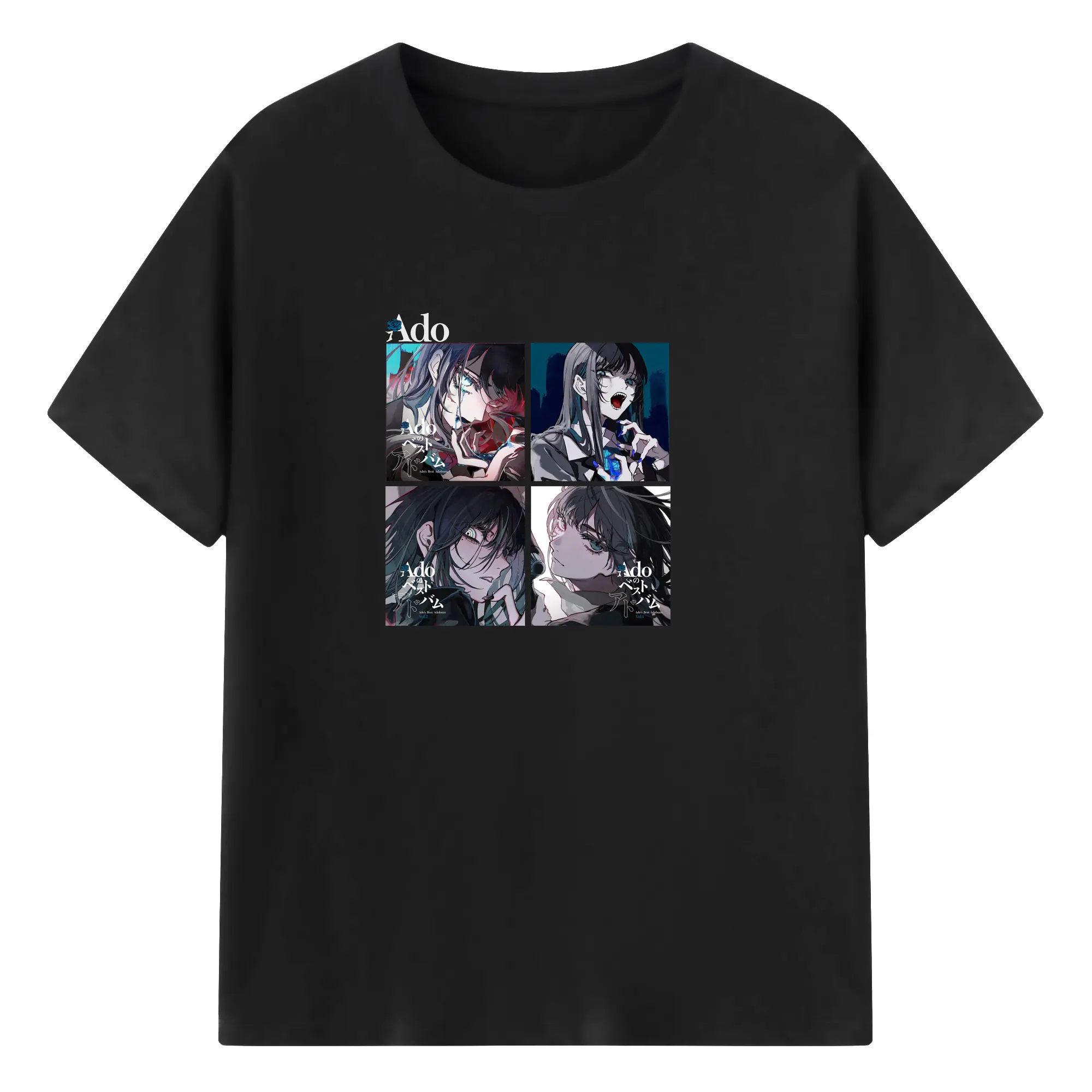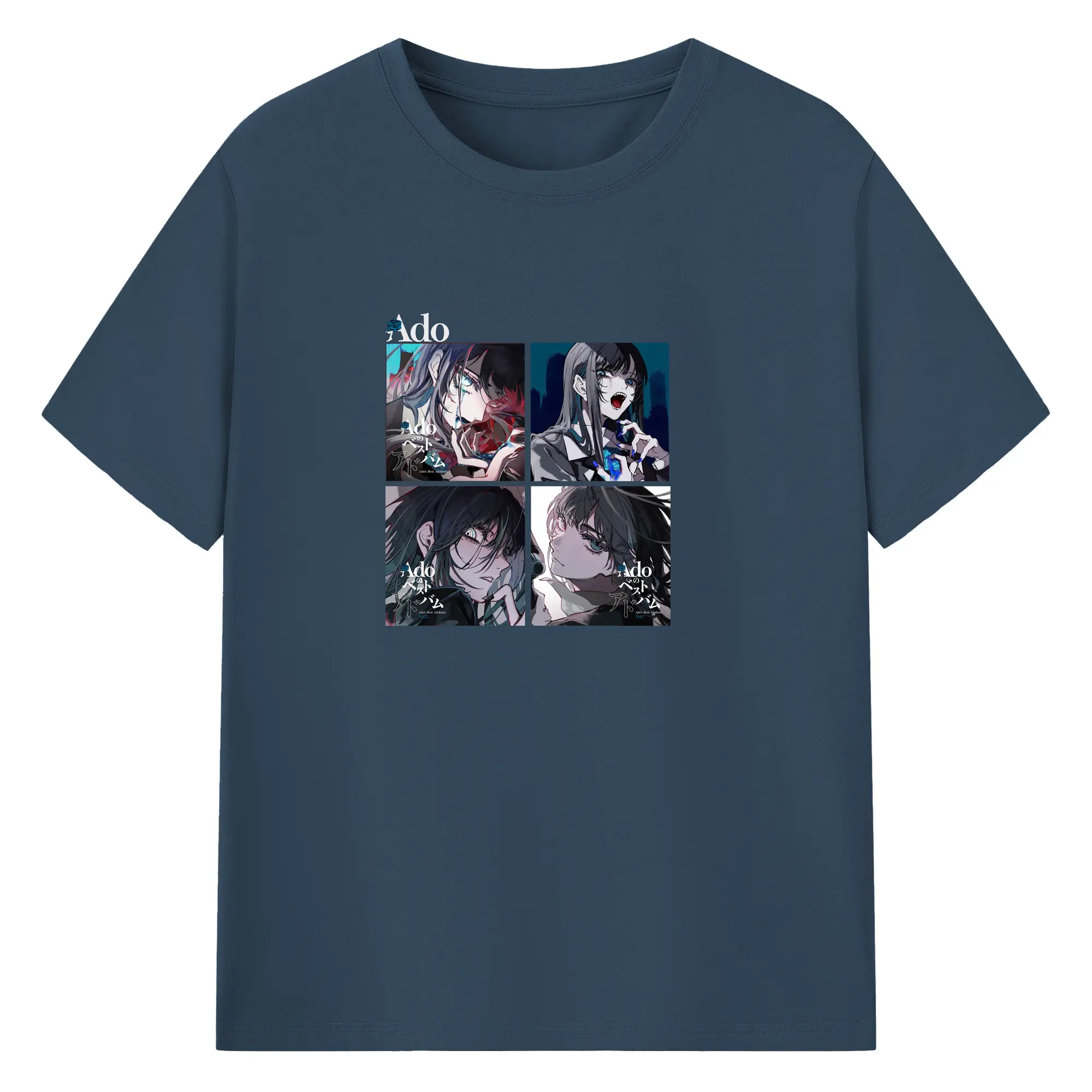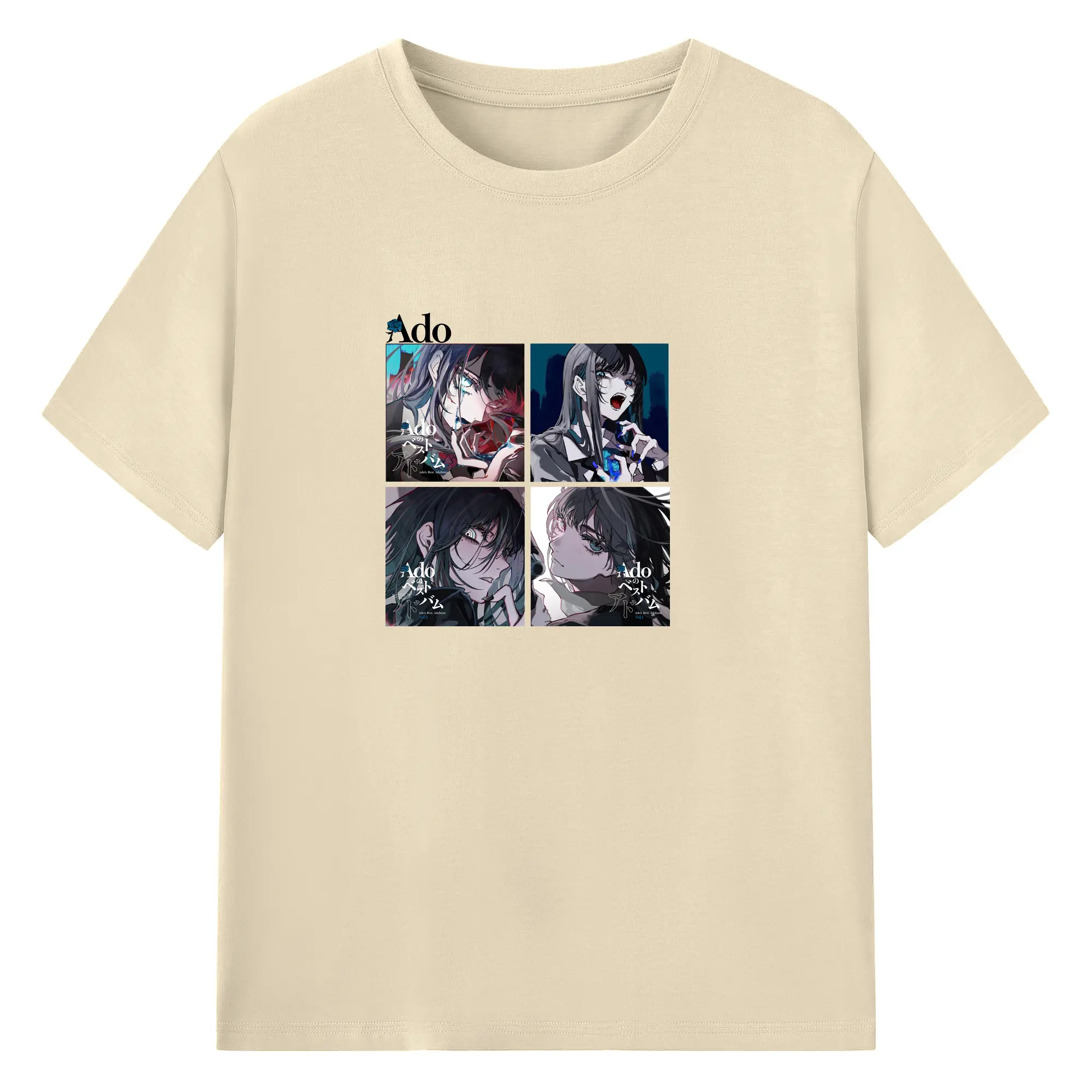 AdoアドAdoのコラージュデザイン - 綿100% ヴィンテージ風 半袖Tシャツ ・ フロントプリント ・ 柔らか肌触り ・ 通気性 快適 ・ スポーツ カジュアル 外出用
