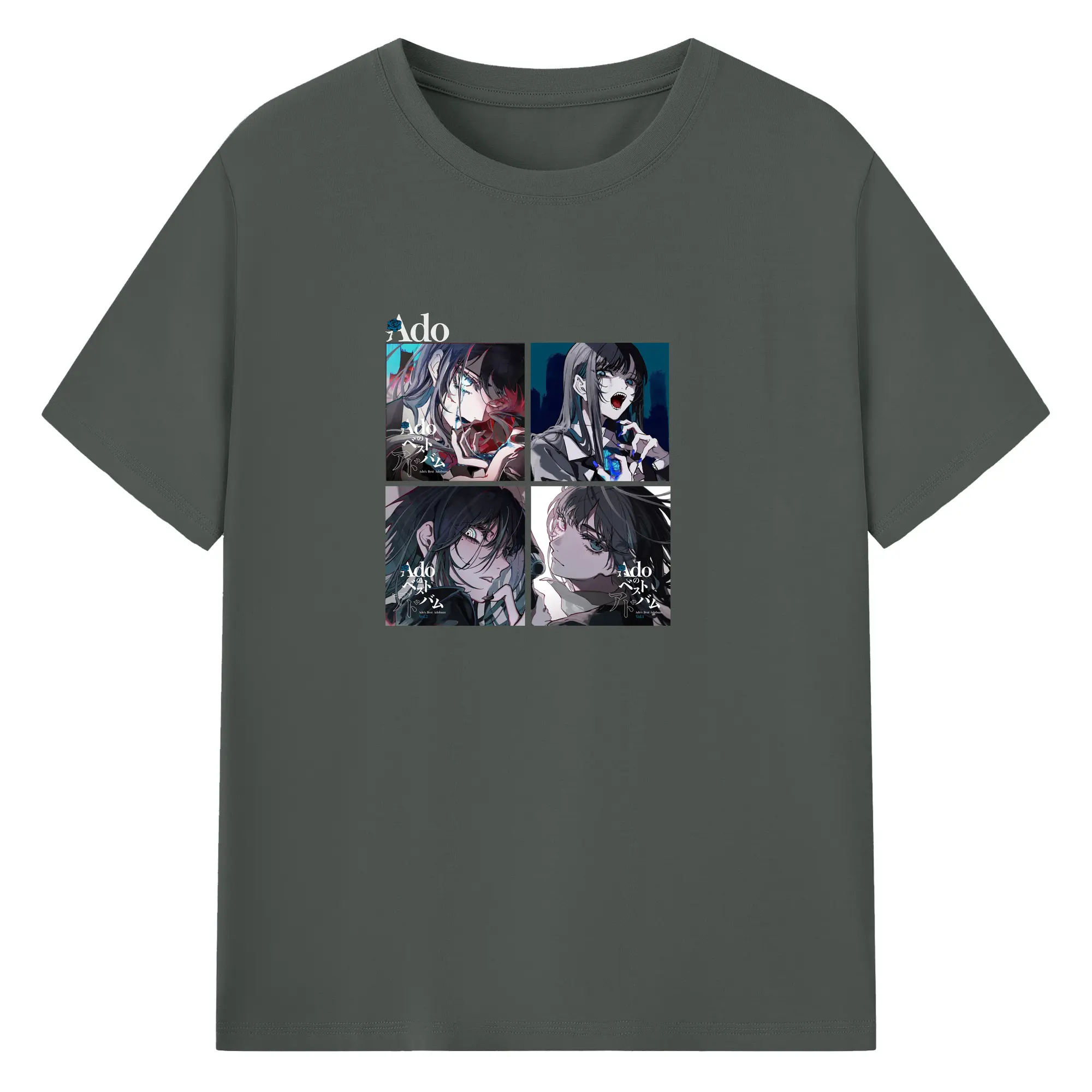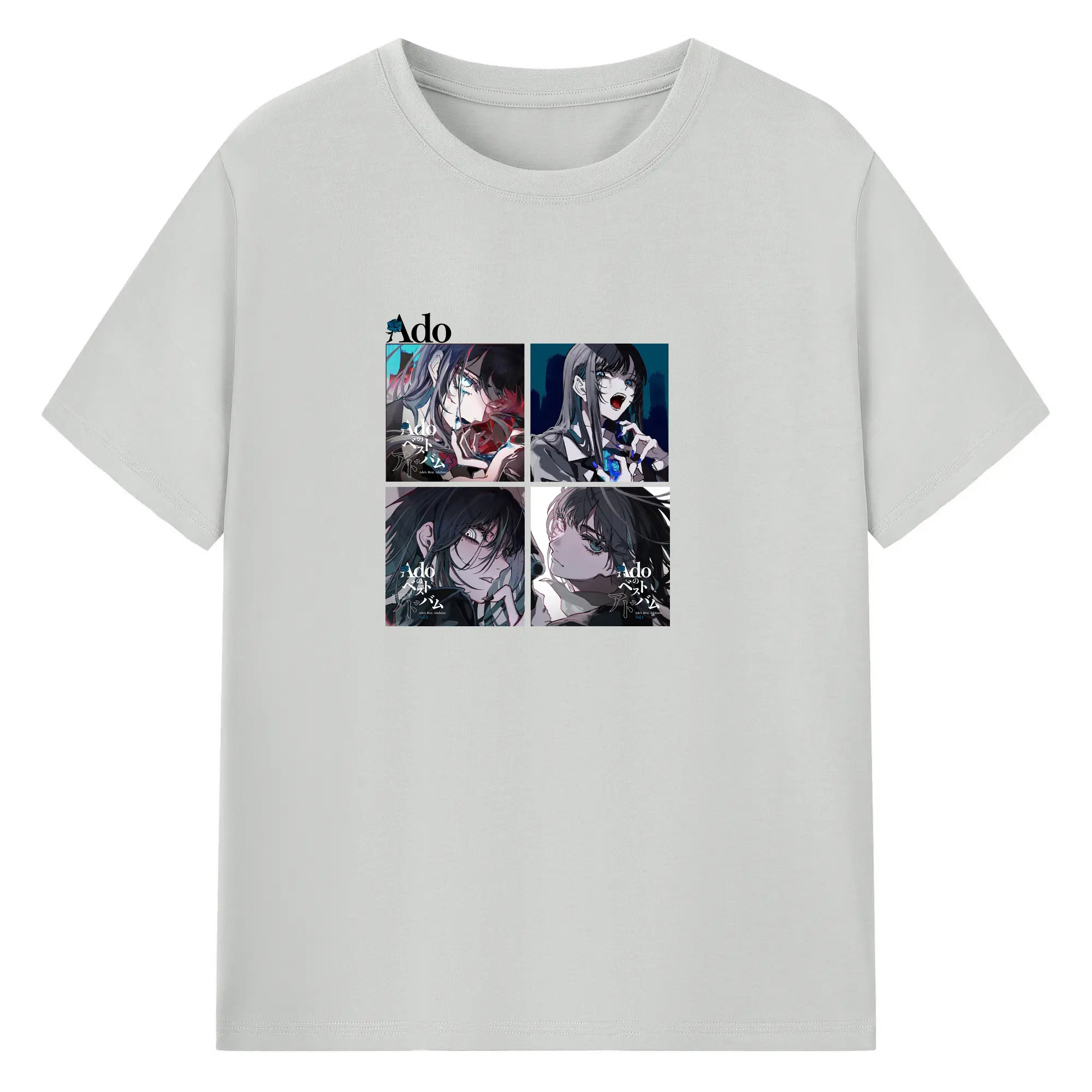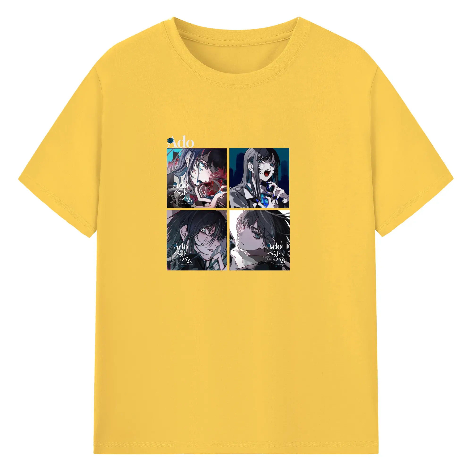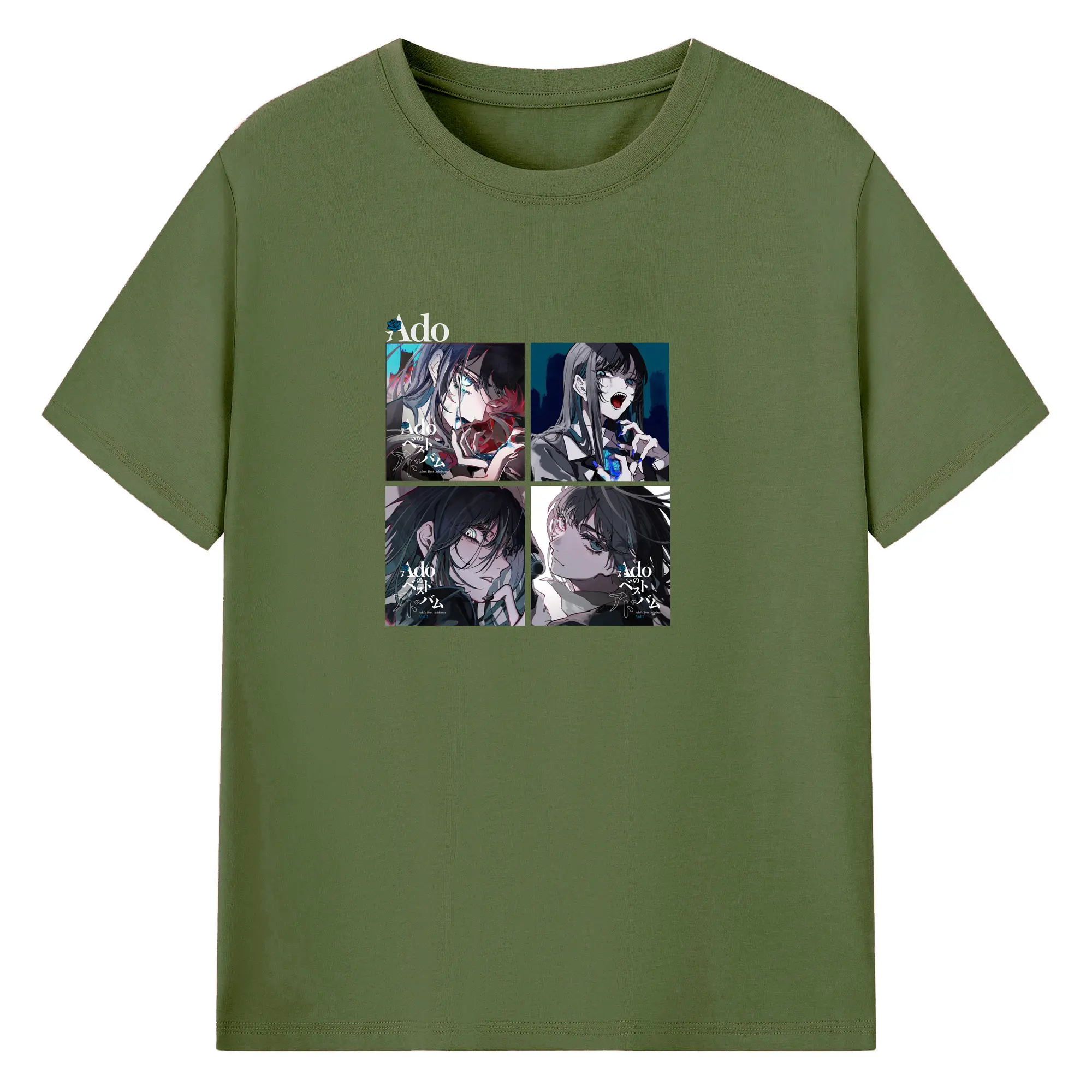 AdoアドAdoのコラージュデザイン - 綿100% ヴィンテージ風 半袖Tシャツ ・ フロントプリント ・ 柔らか肌触り ・ 通気性 快適 ・ スポーツ カジュアル 外出用