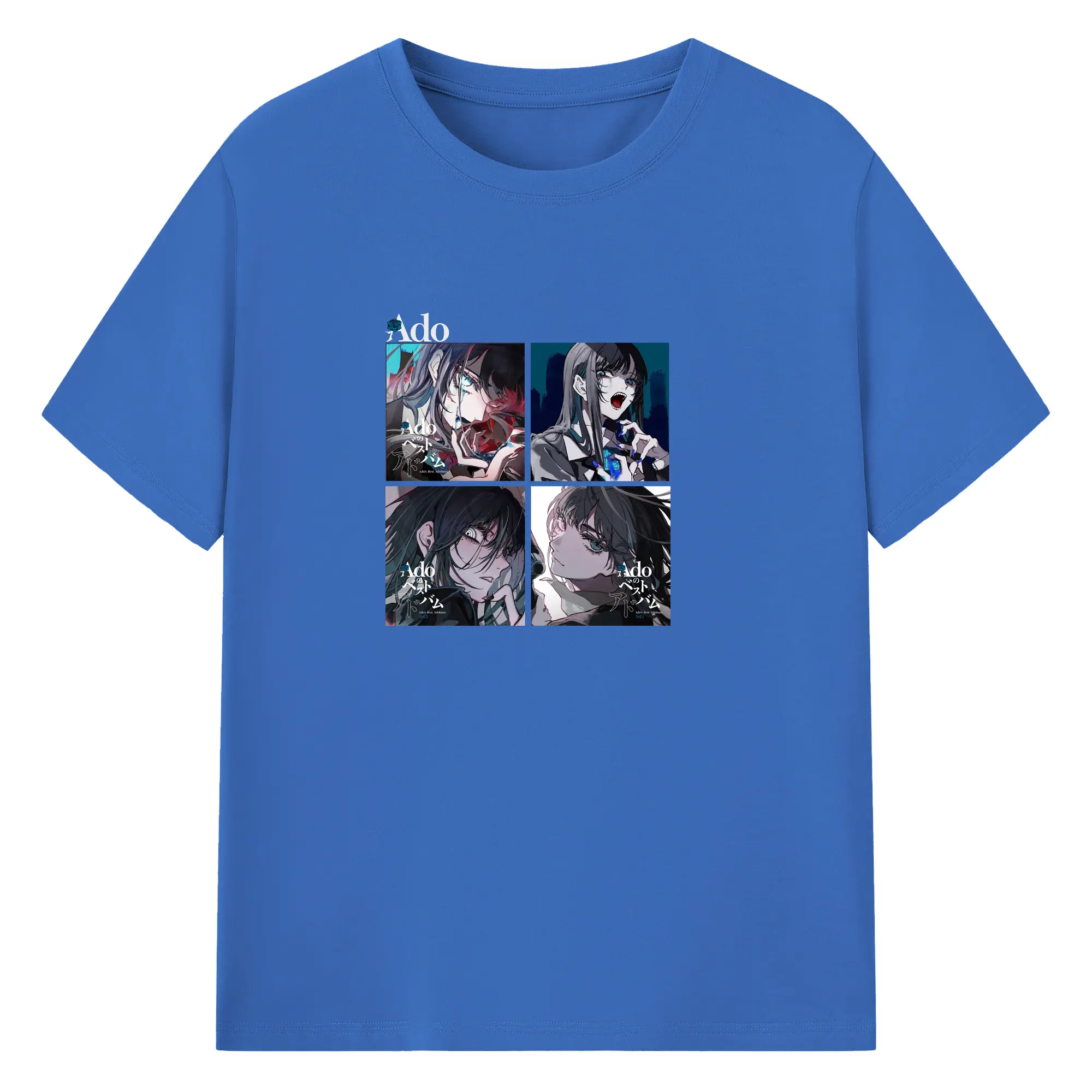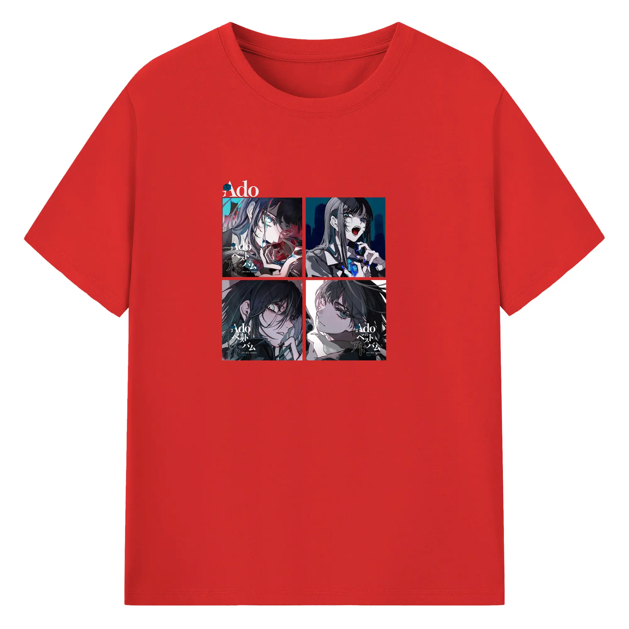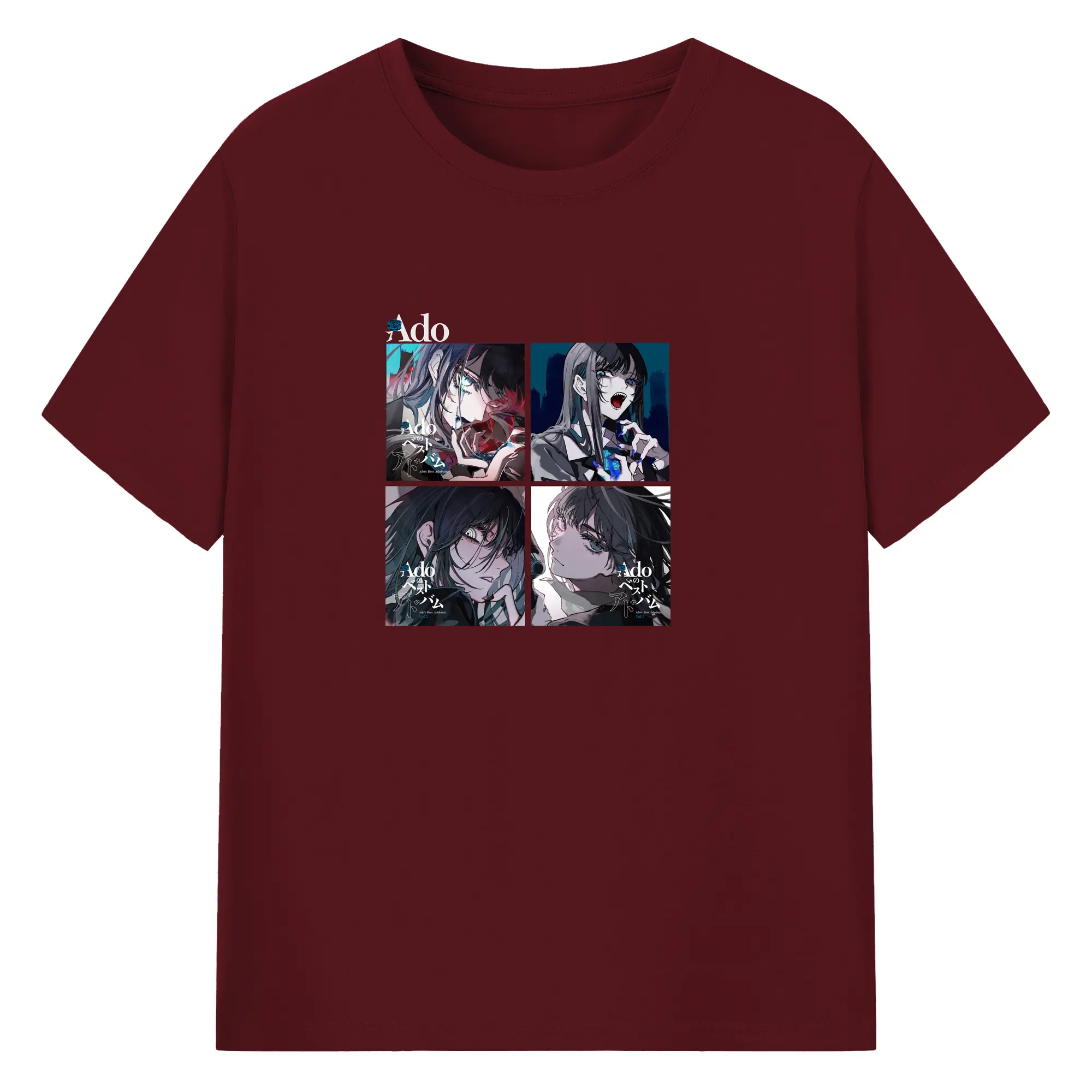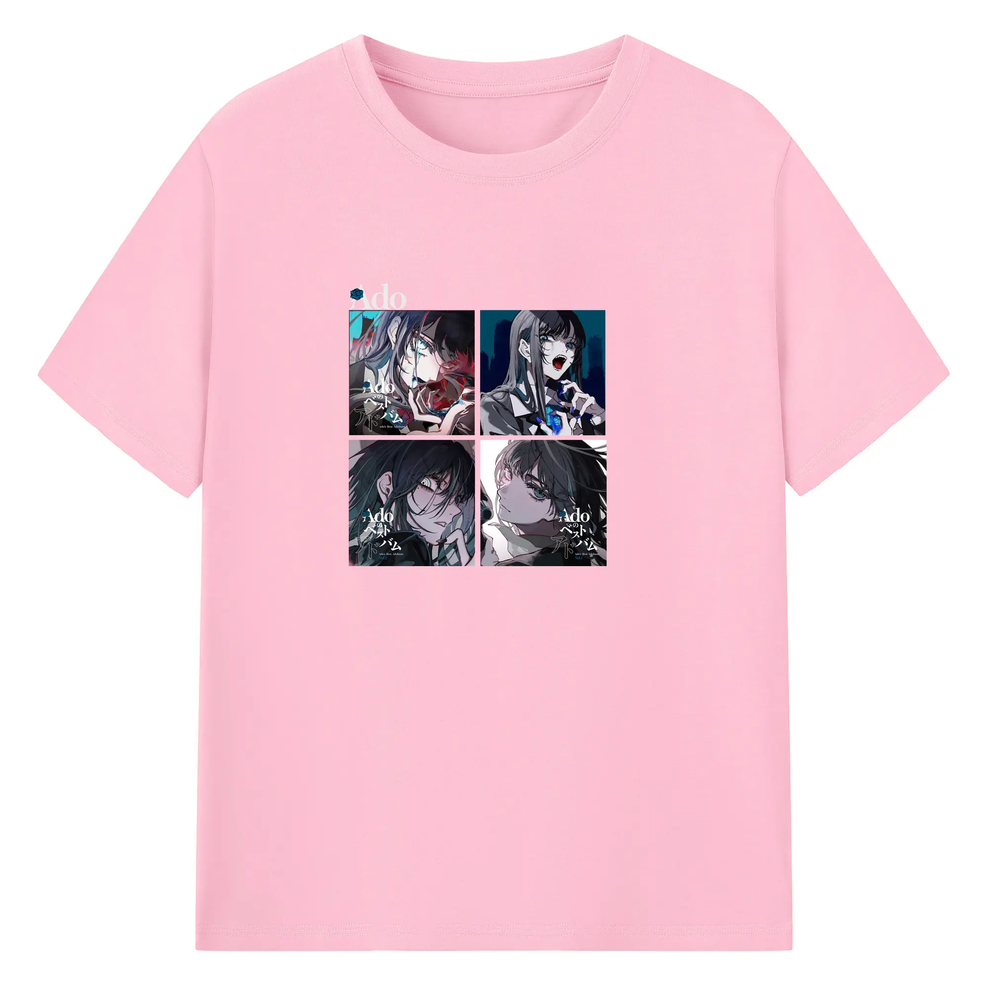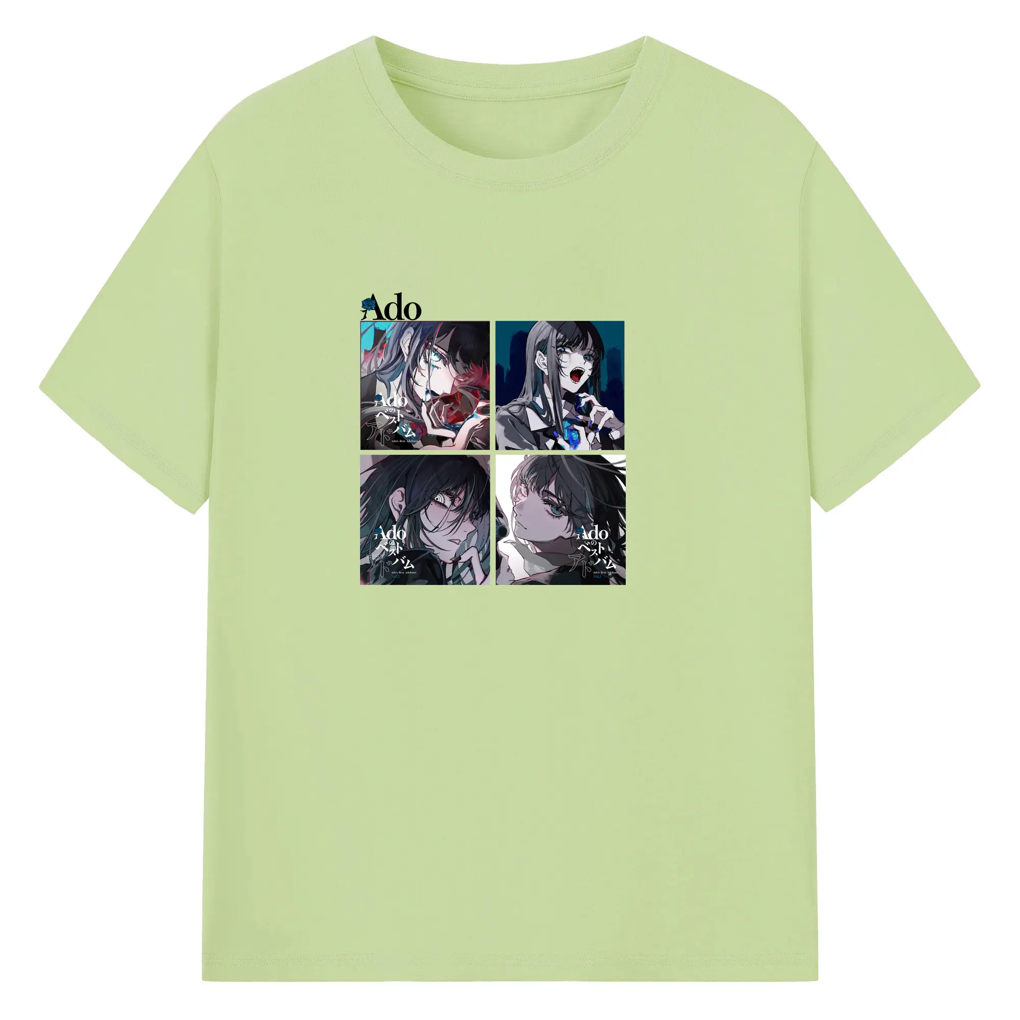 AdoアドAdoのコラージュデザイン - 綿100% ヴィンテージ風 半袖Tシャツ ・ フロントプリント ・ 柔らか肌触り ・ 通気性 快適 ・ スポーツ カジュアル 外出用