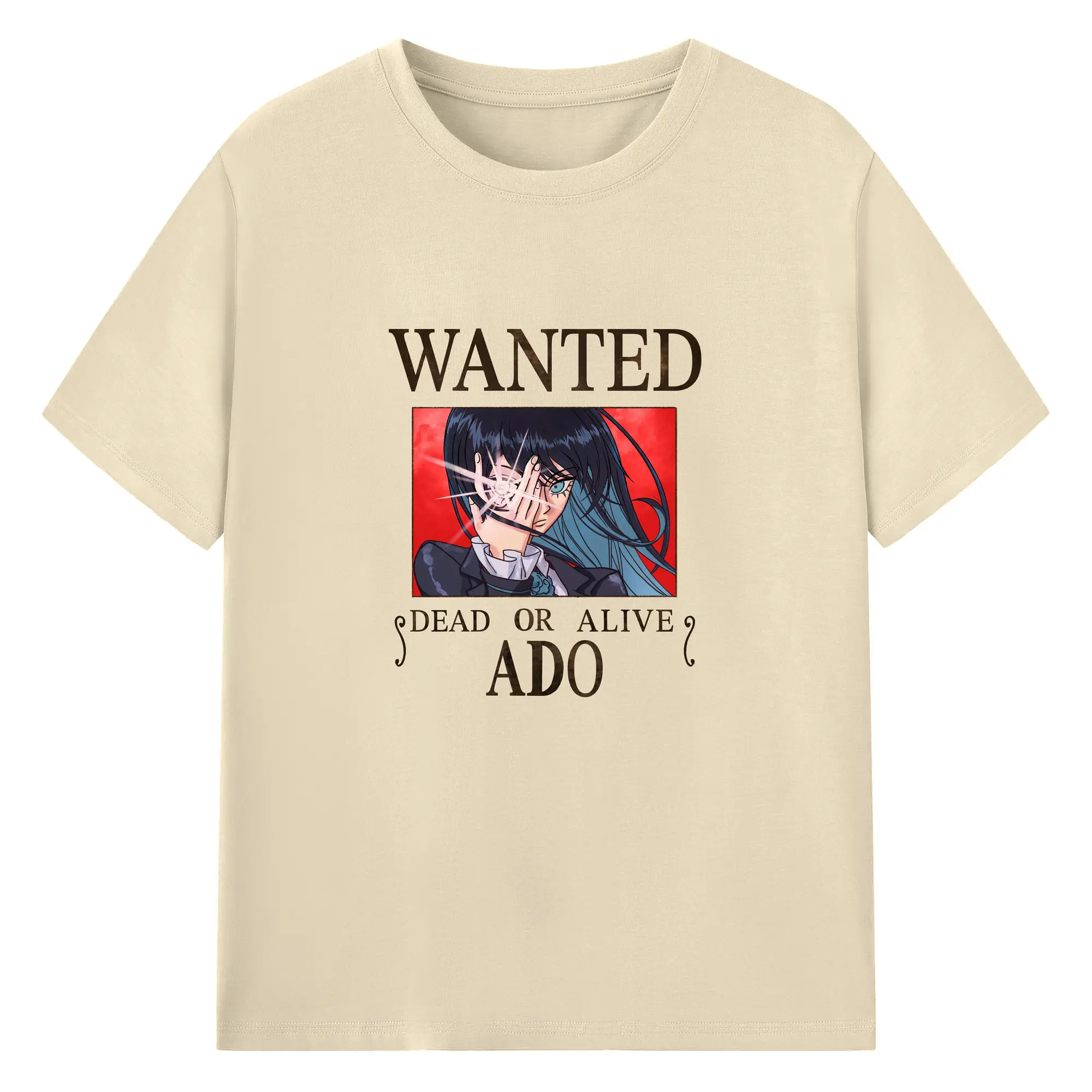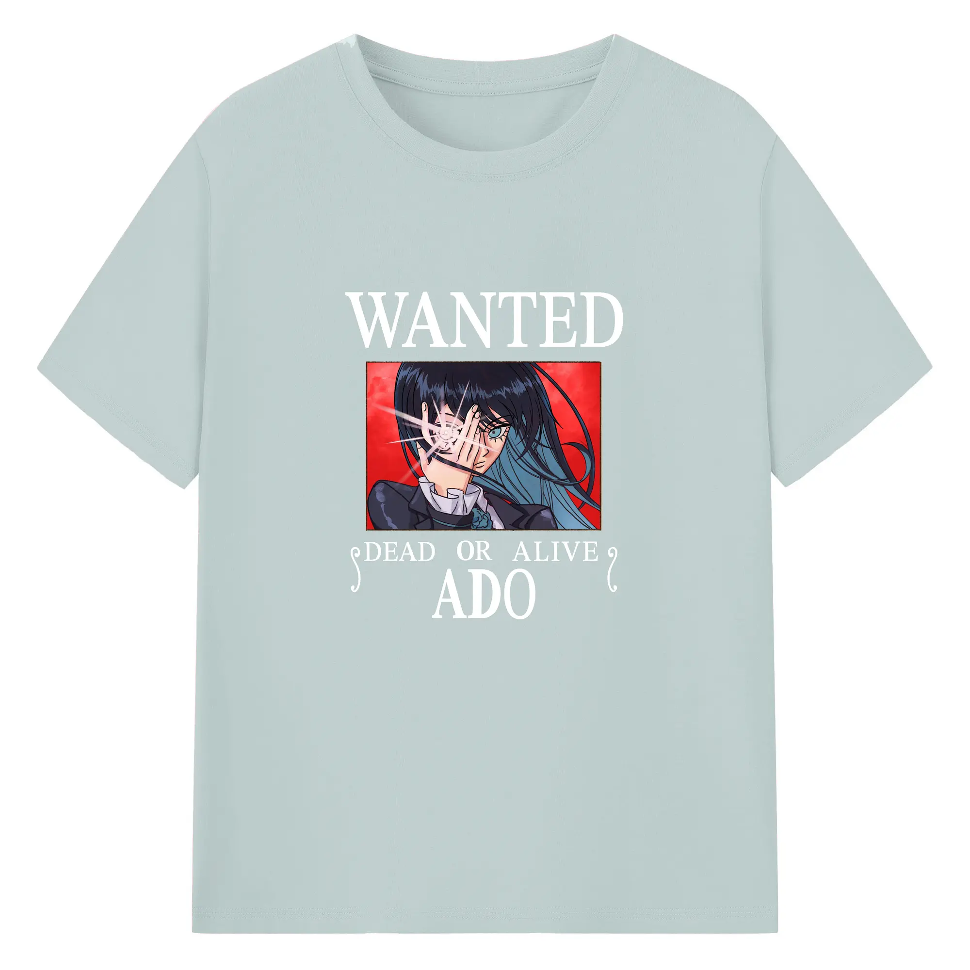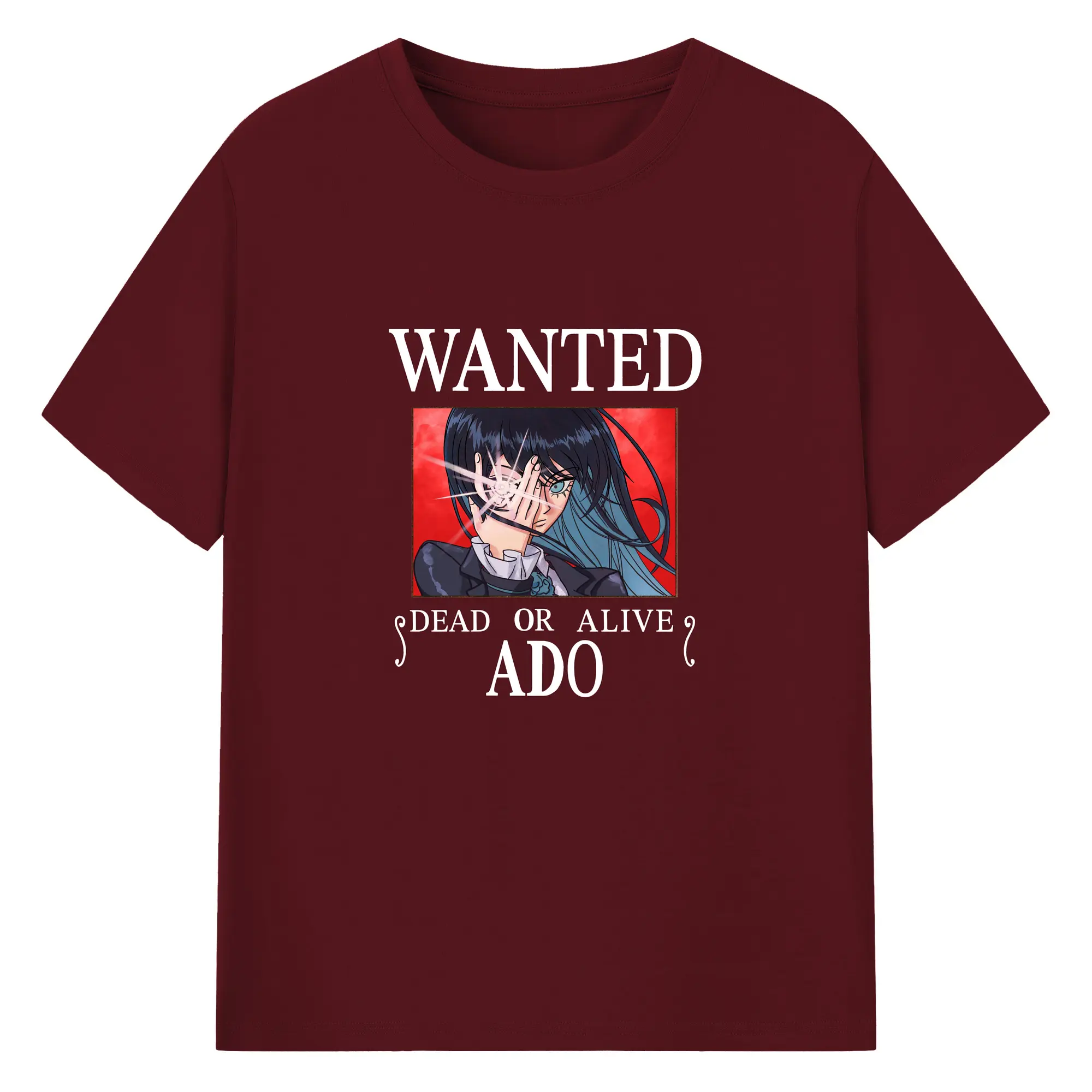 Ado×ワンピースAdoアド - 綿100% ヴィンテージ風 半袖Tシャツ ・ フロントプリント ・ 柔らか肌触り ・ 通気性 快適 ・ スポーツ カジュアル 外出用