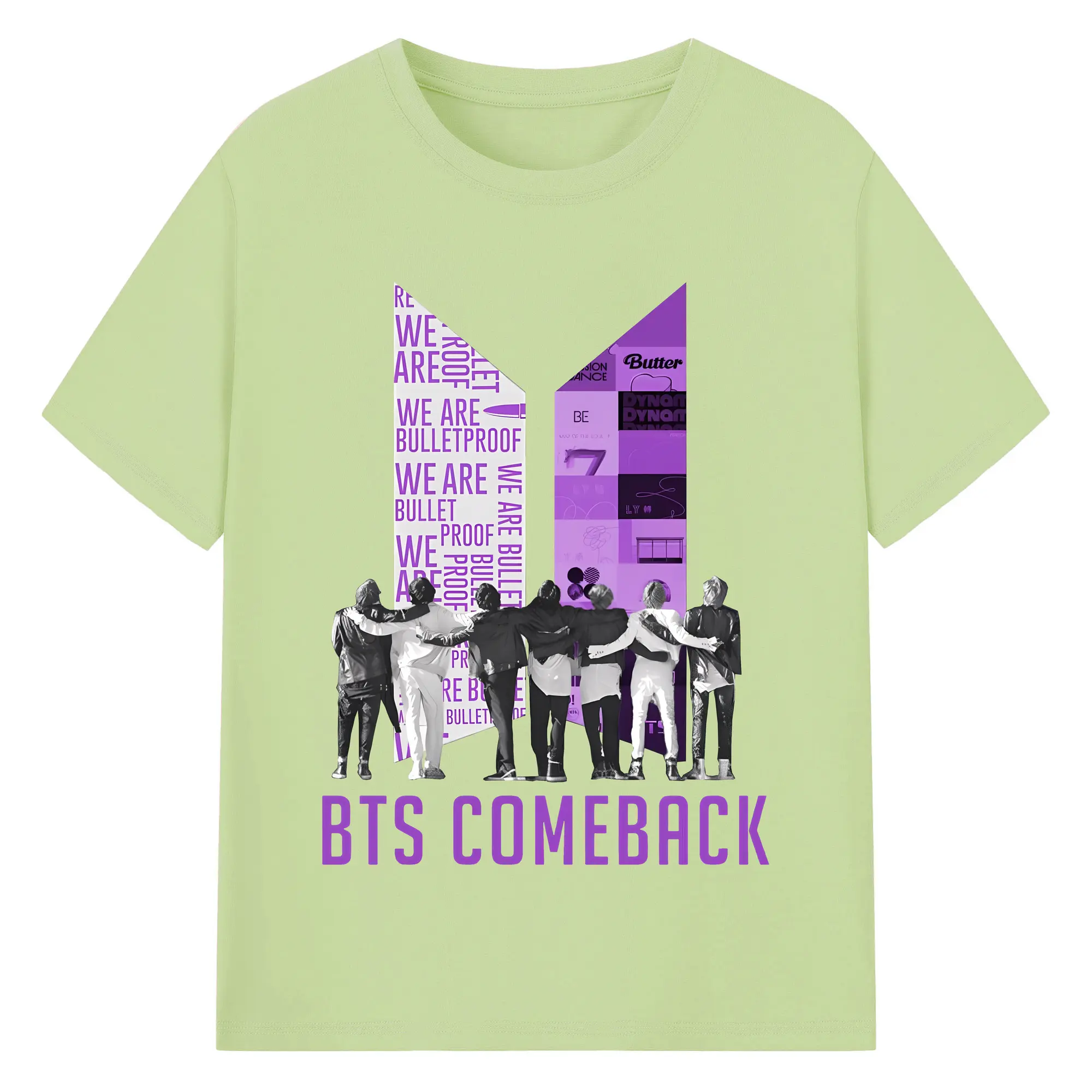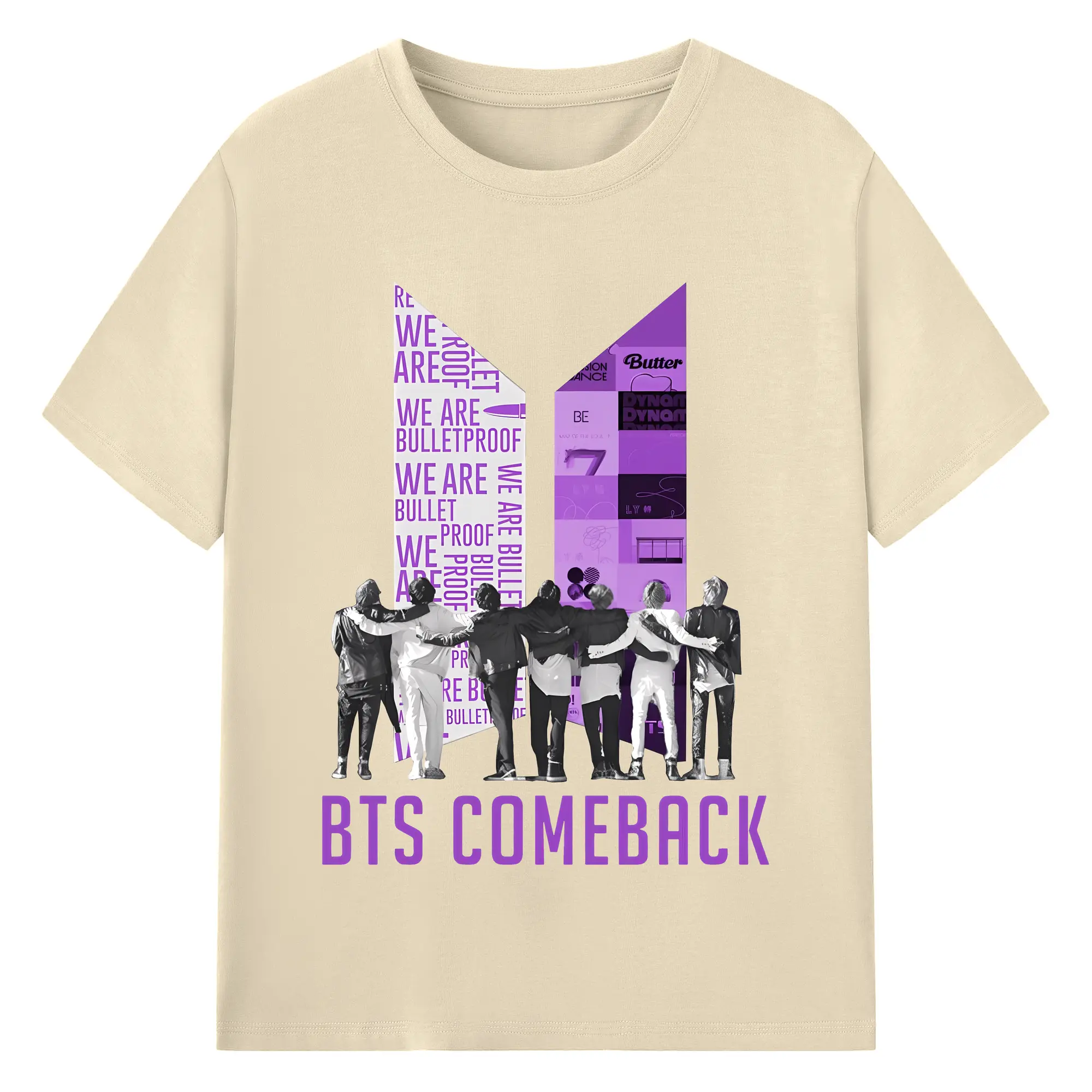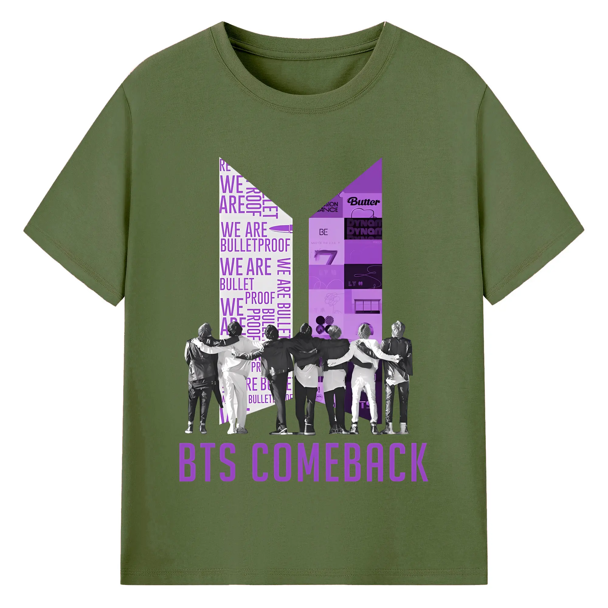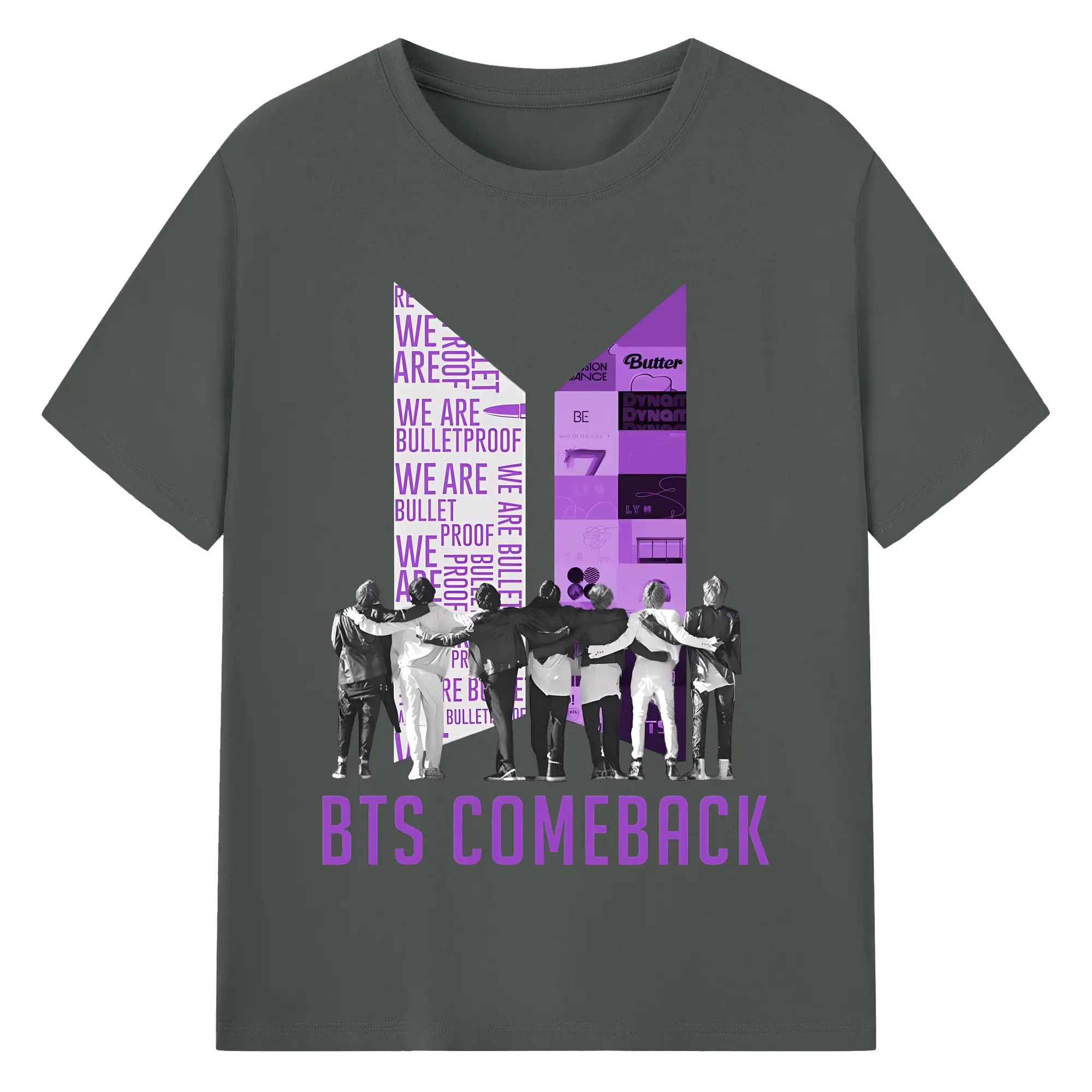 ARMY必須💜BTS 推し活グッズ - 綿100% ヴィンテージ風 半袖Tシャツ ・ フロントプリント ・ 柔らか肌触り ・ 通気性 快適 ・ スポーツ カジュアル 外出用