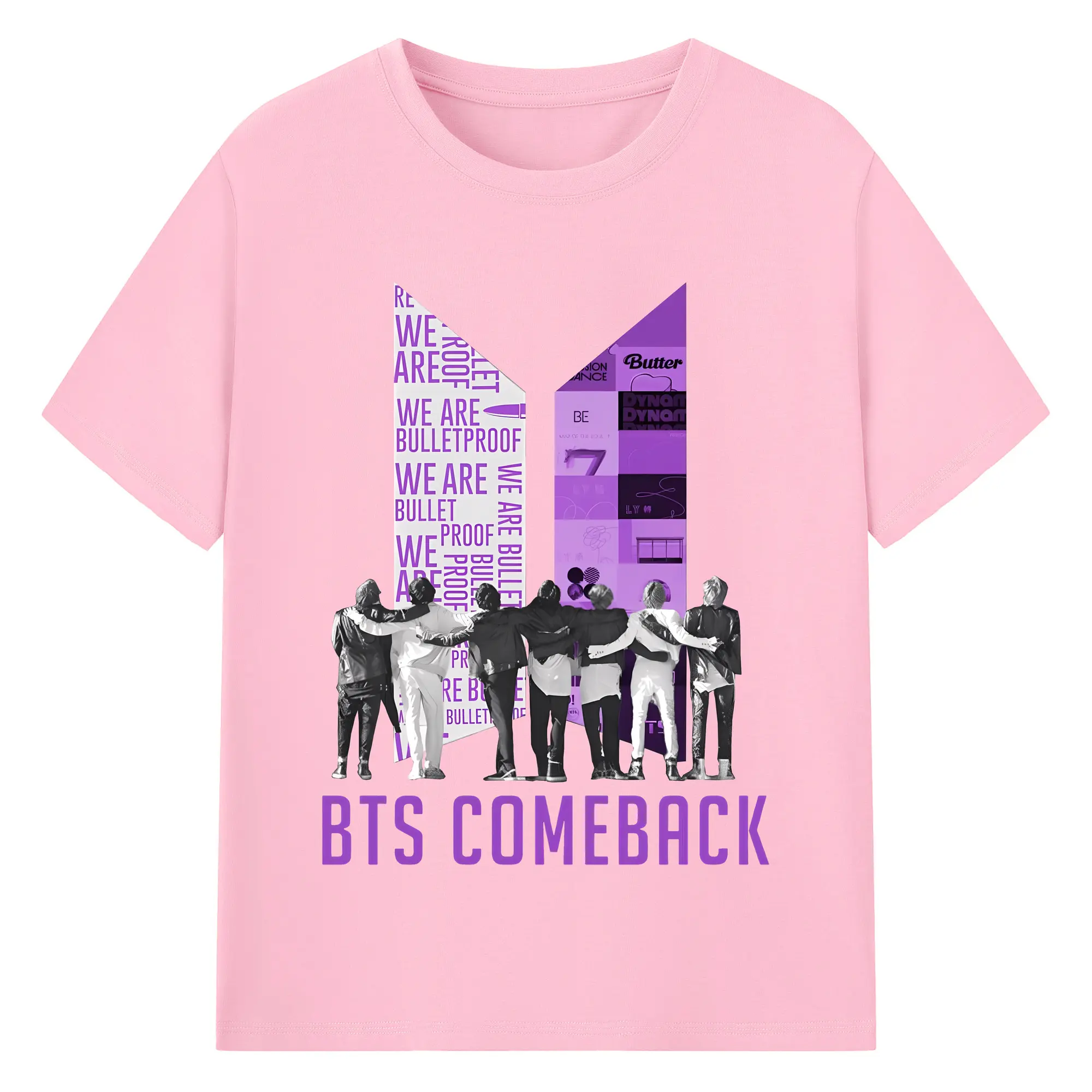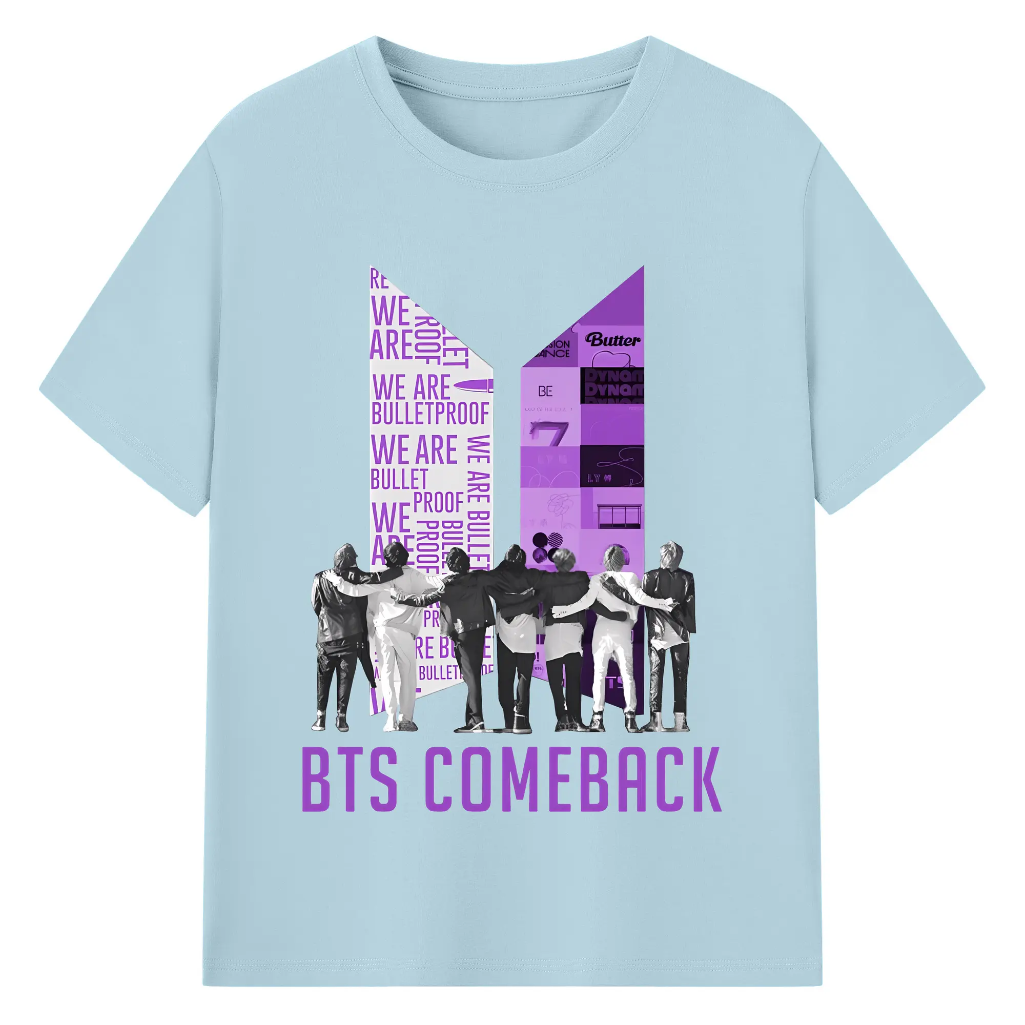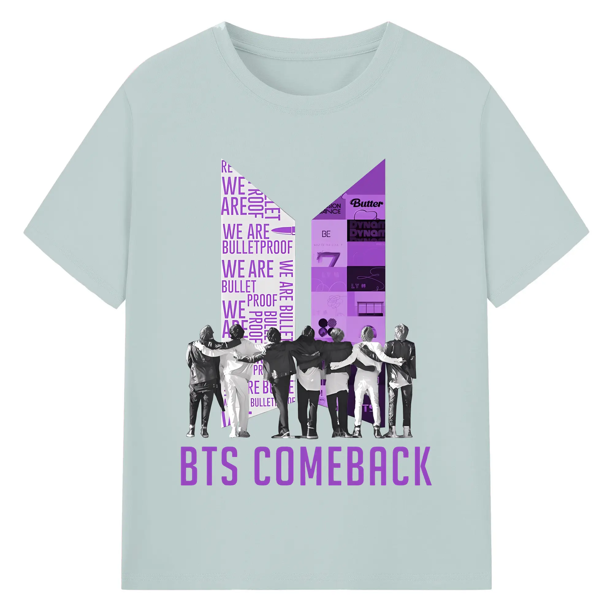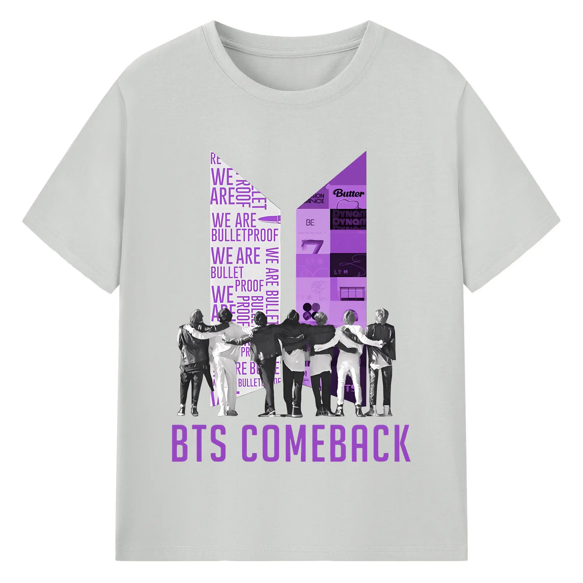ARMY必須💜BTS 推し活グッズ - 綿100% ヴィンテージ風 半袖Tシャツ ・ フロントプリント ・ 柔らか肌触り ・ 通気性 快適 ・ スポーツ カジュアル 外出用