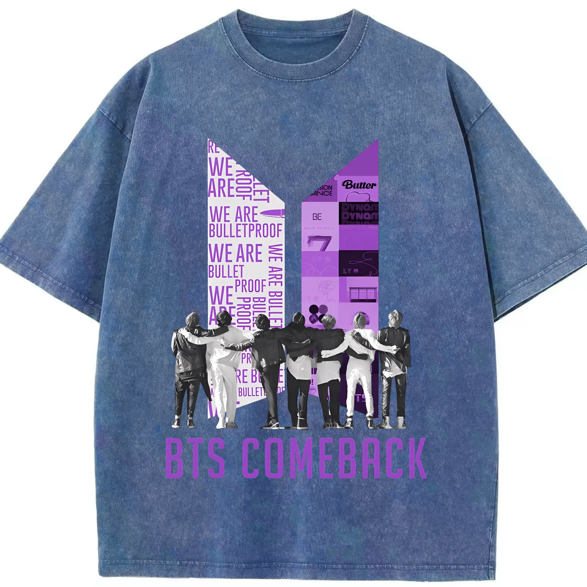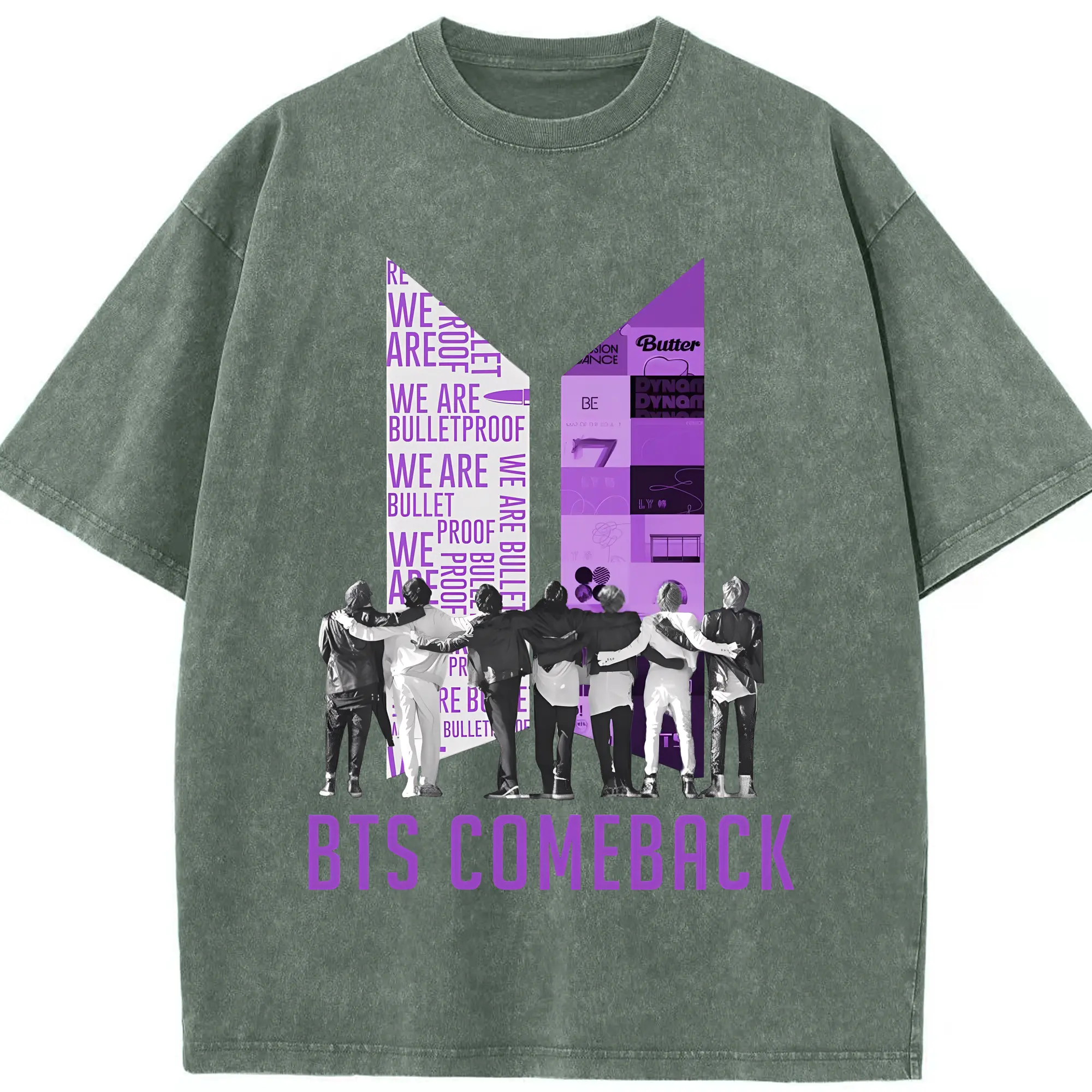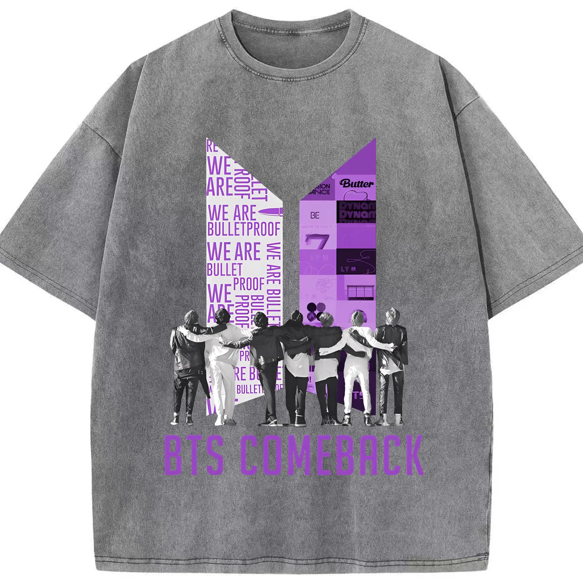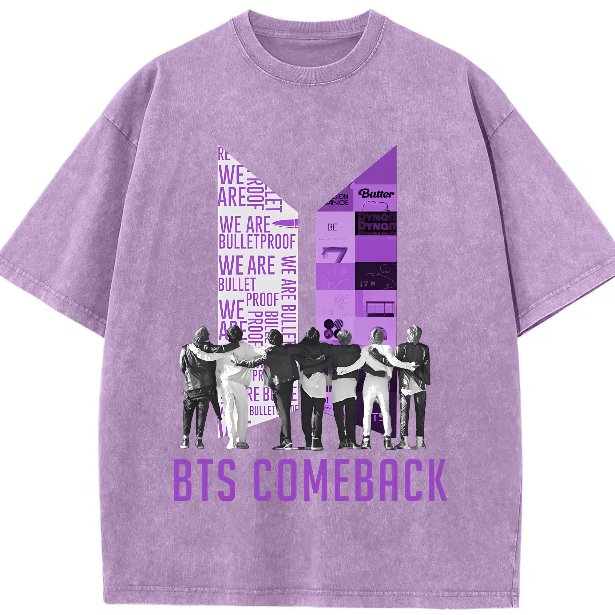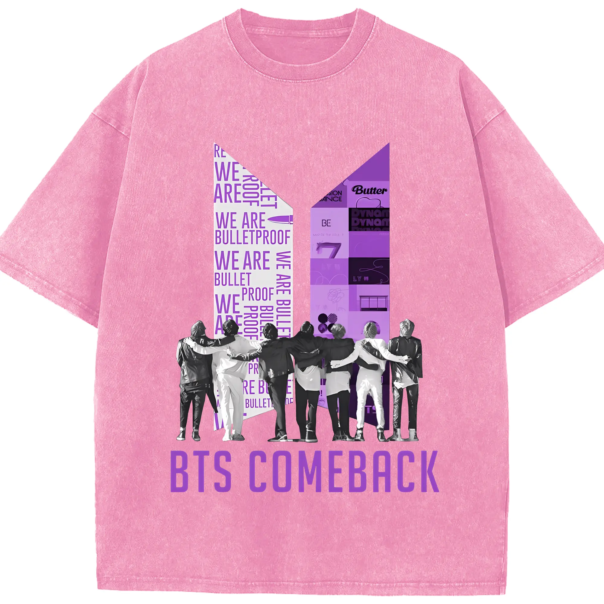 ARMY必須💜BTS 推し活グッズ - 綿100% 半袖Tシャツ ・ フロントプリント ・ 快適 通気性 ・ 日常使い 散歩 スポーツ用