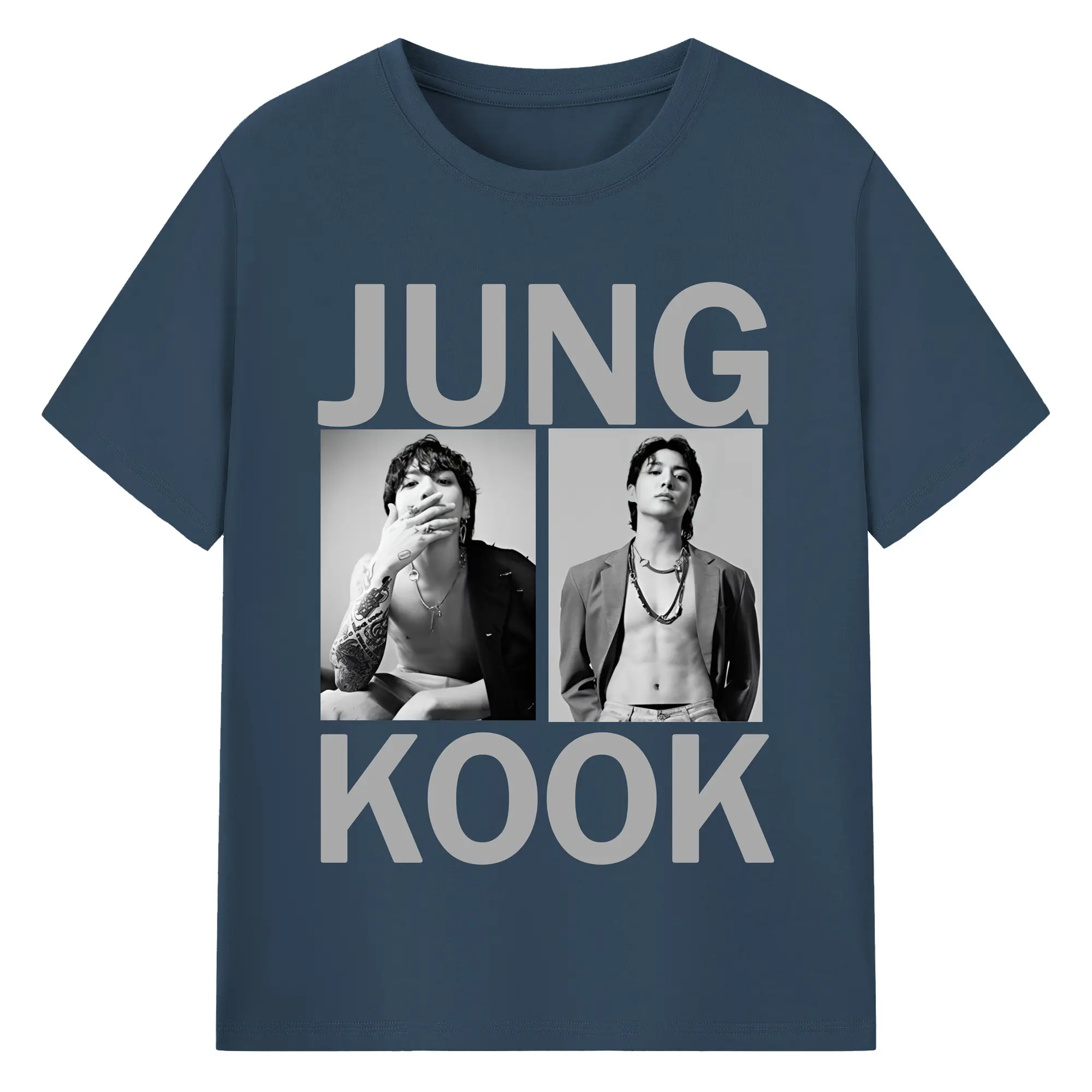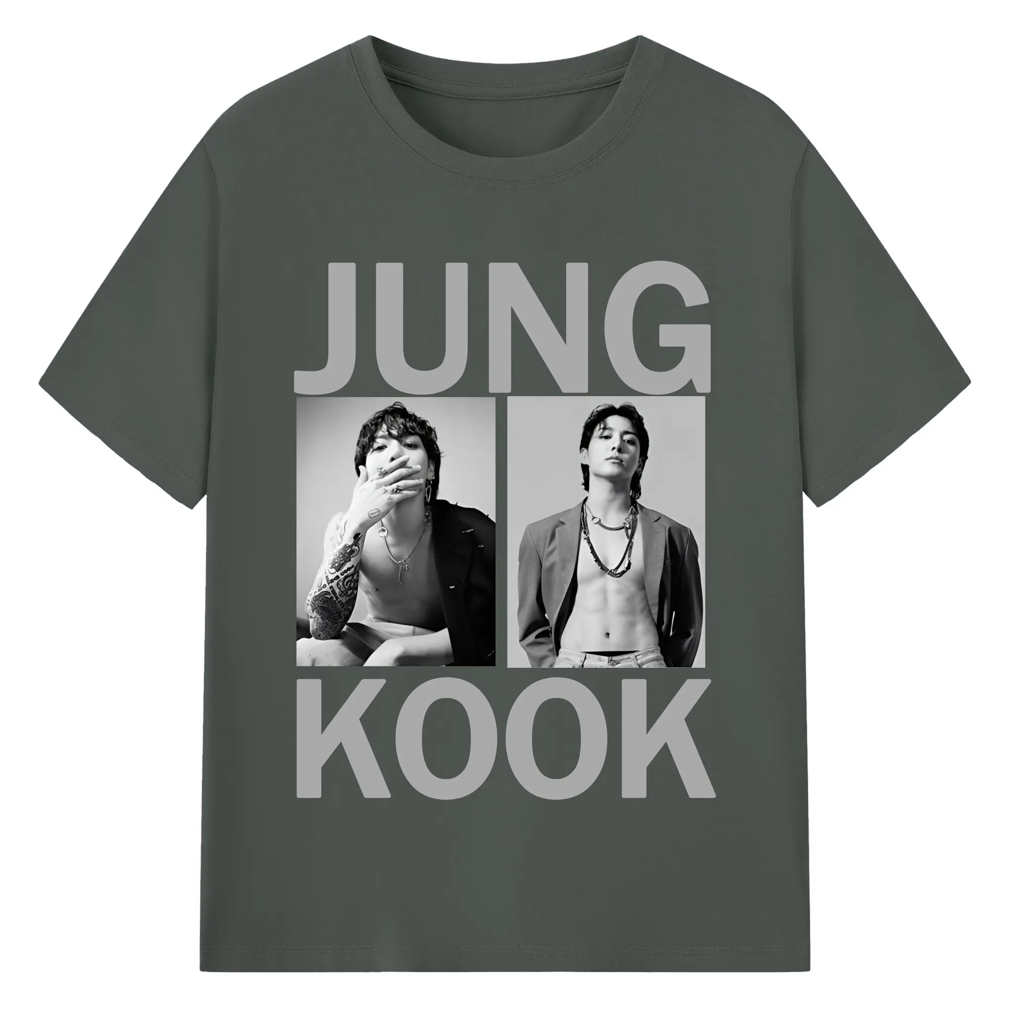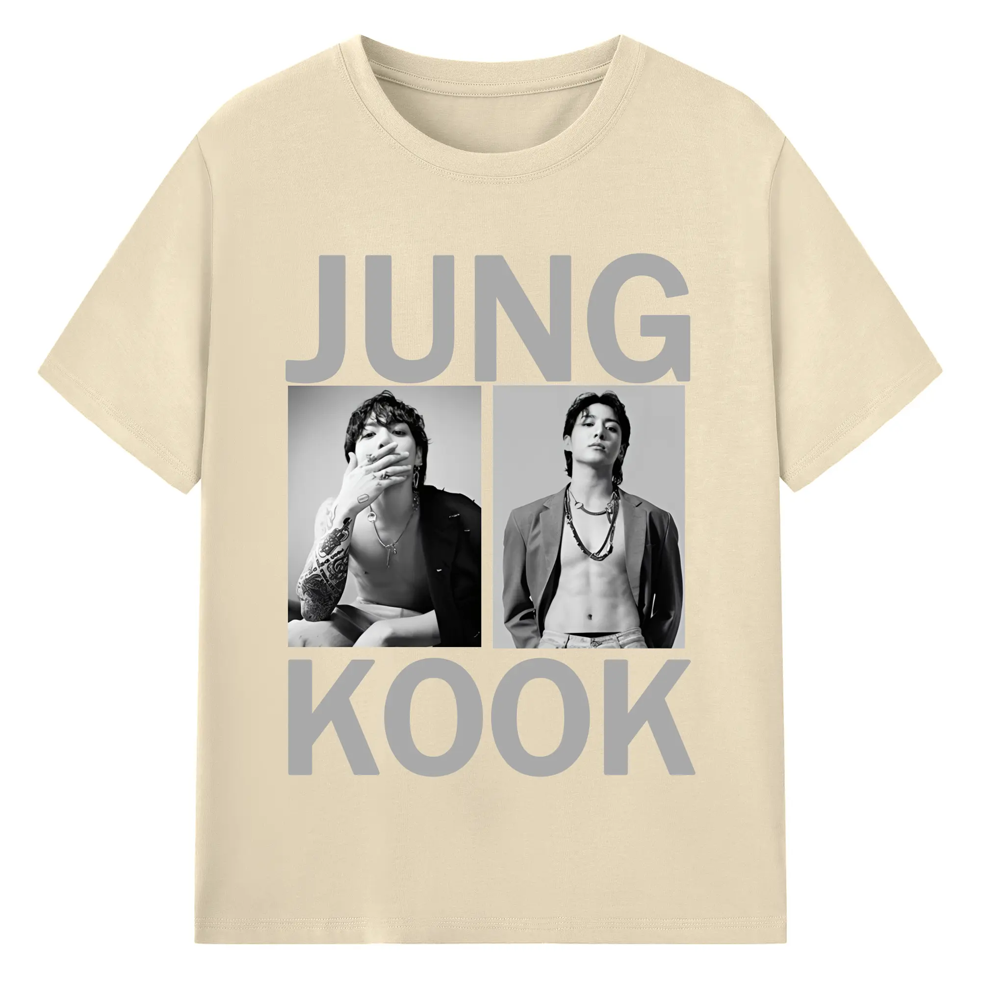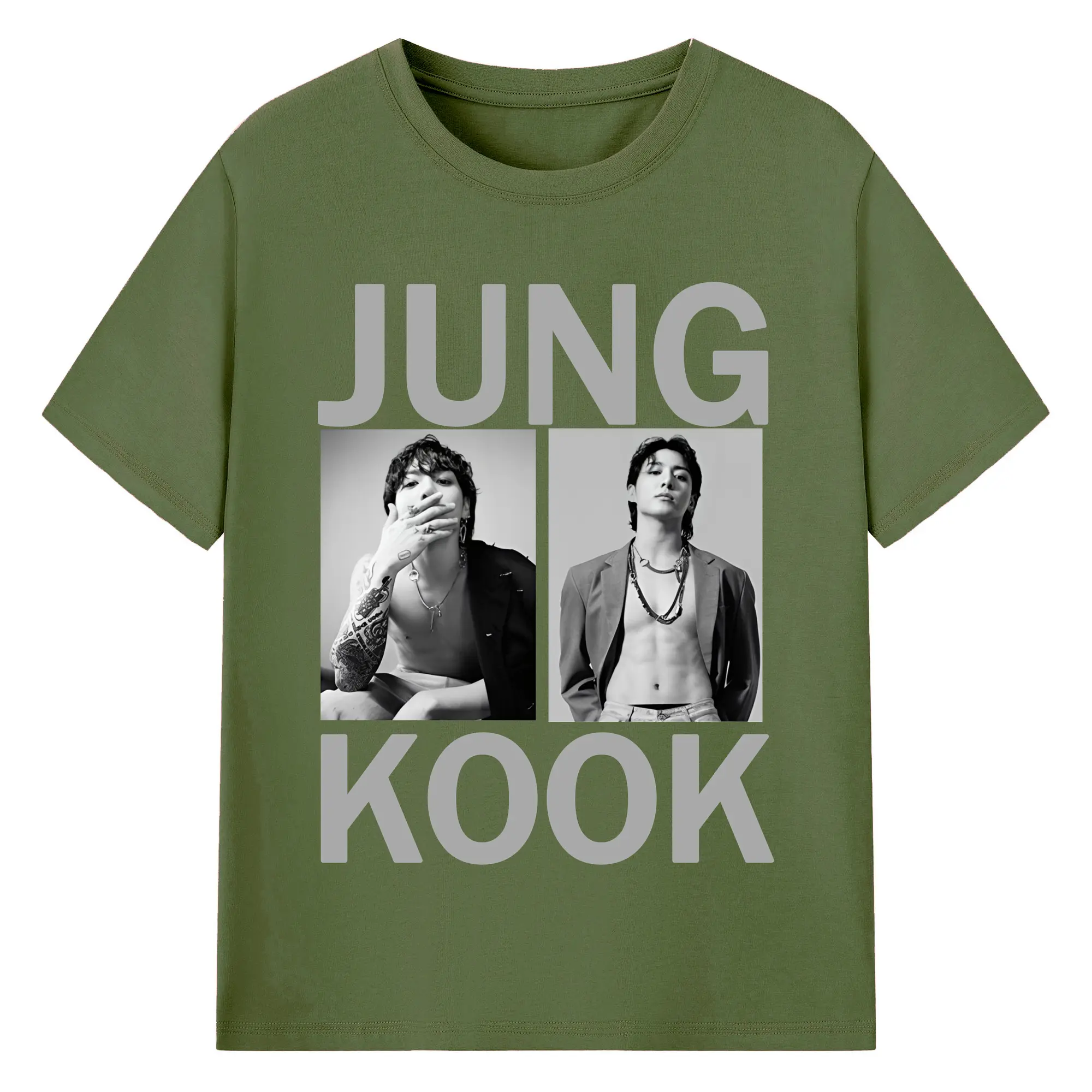 BTS ジョングク アルバム『Golden』シンプルデザイン限定 - 綿100% ヴィンテージ風 半袖Tシャツ ・ フロントプリント ・ 柔らか肌触り ・ 通気性 快適 ・ スポーツ カジュアル 外出用
