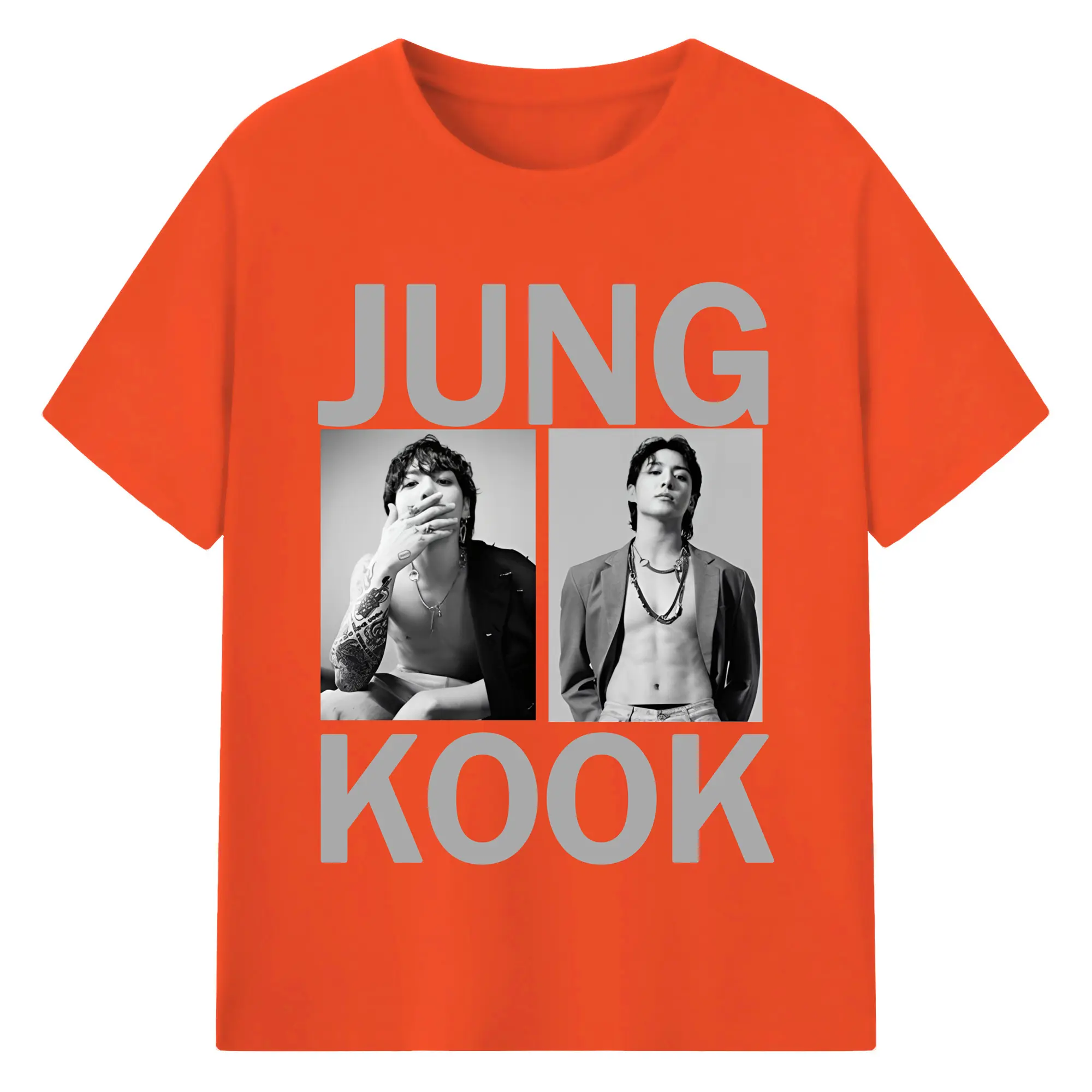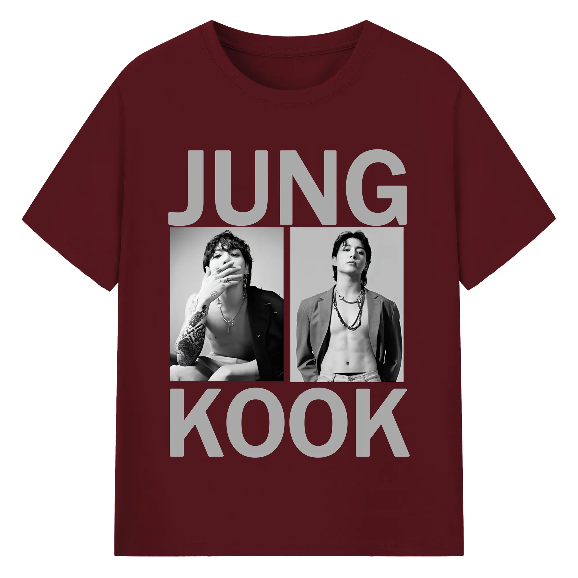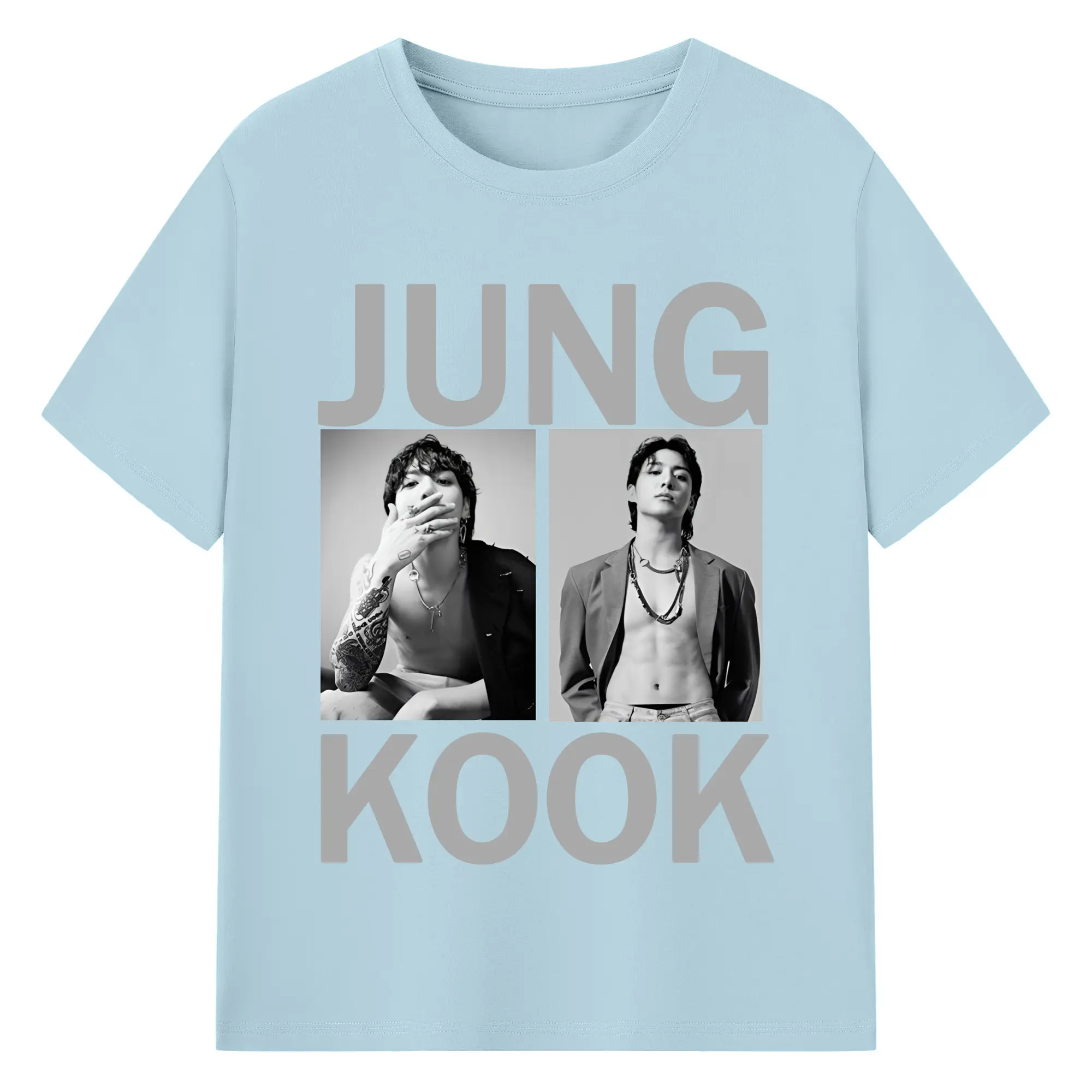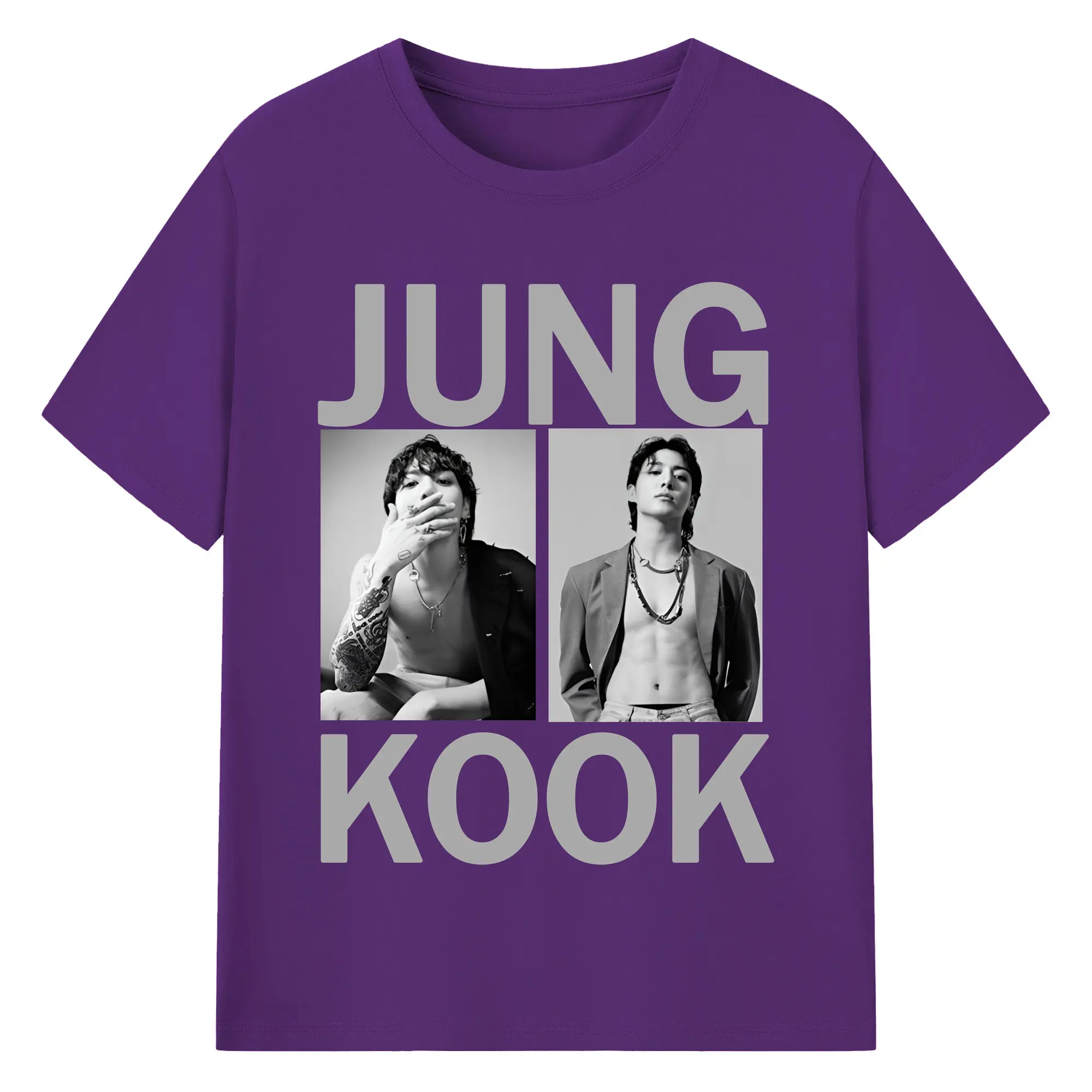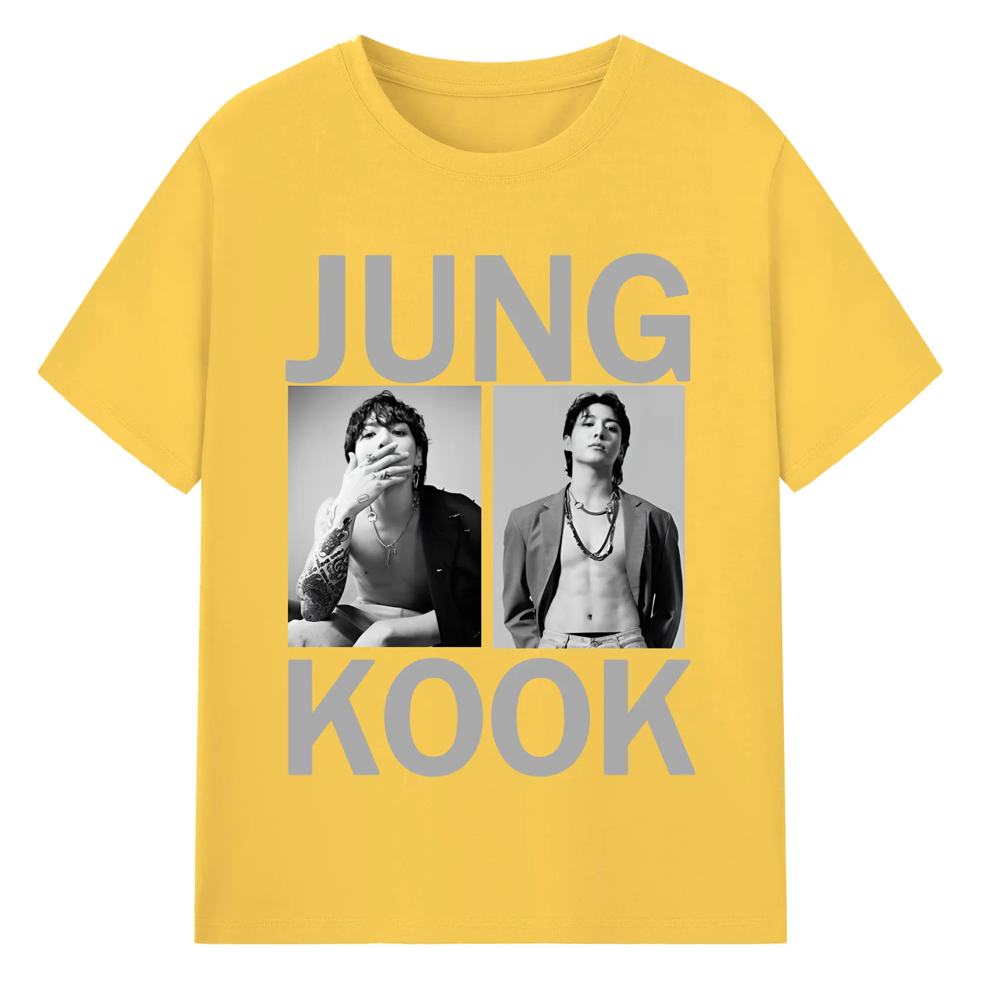 BTS ジョングク アルバム『Golden』シンプルデザイン限定 - 綿100% ヴィンテージ風 半袖Tシャツ ・ フロントプリント ・ 柔らか肌触り ・ 通気性 快適 ・ スポーツ カジュアル 外出用