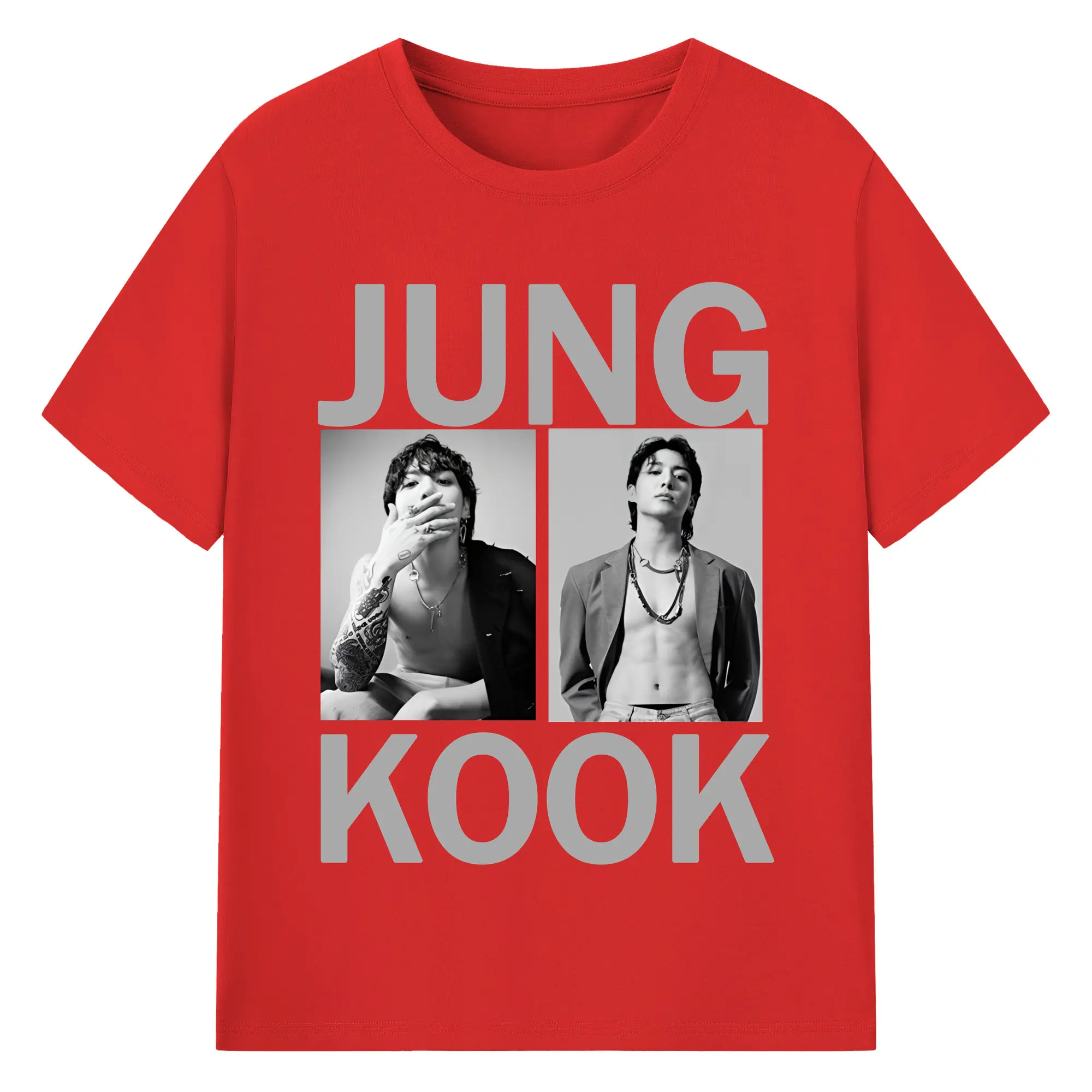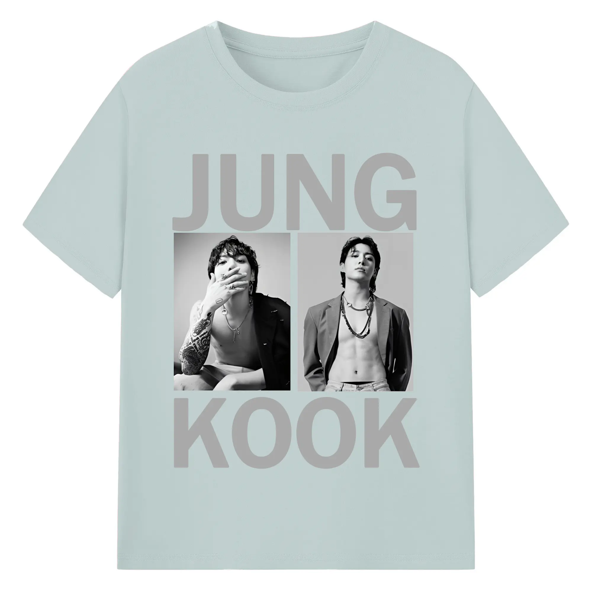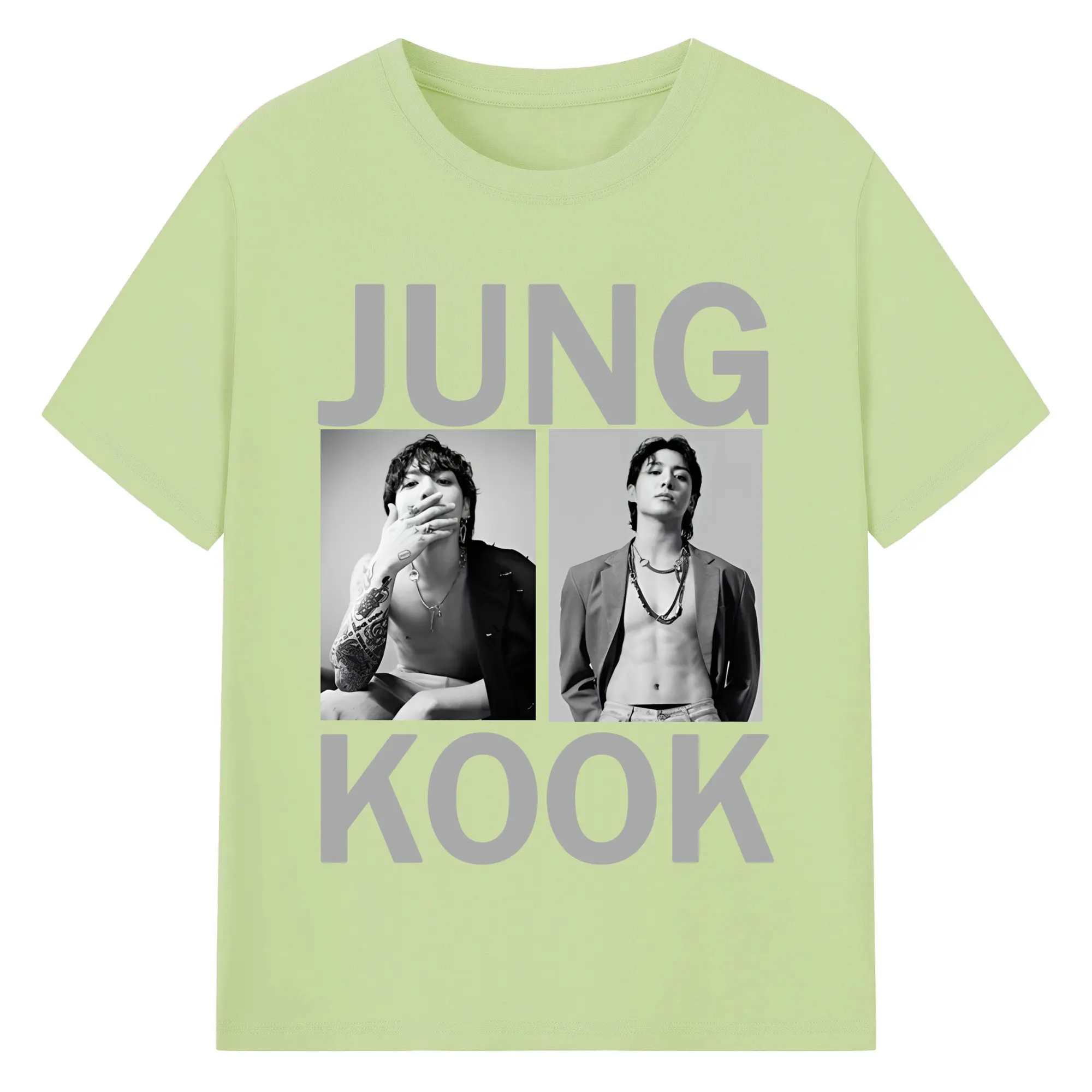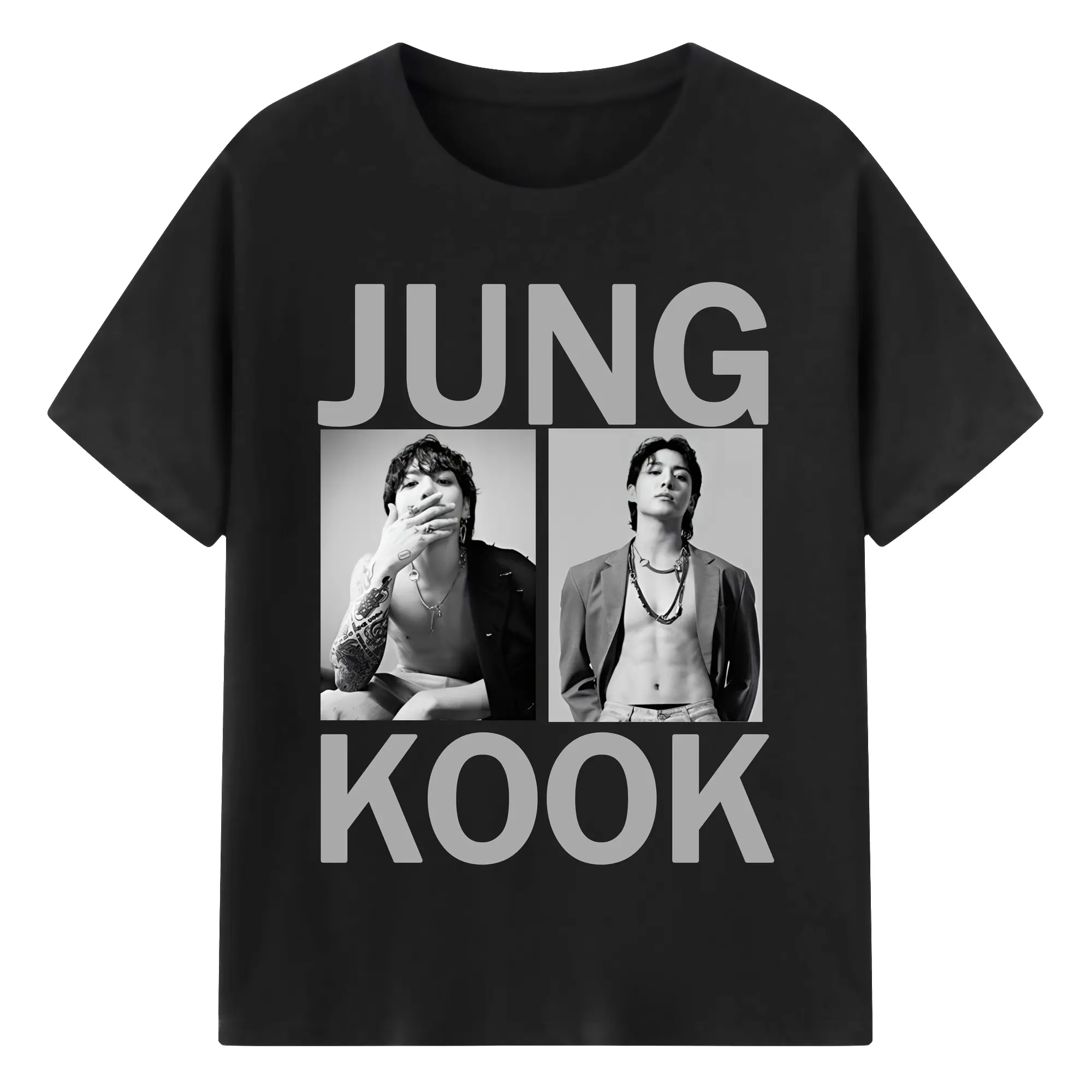 BTS ジョングク アルバム『Golden』シンプルデザイン限定 - 綿100% ヴィンテージ風 半袖Tシャツ ・ フロントプリント ・ 柔らか肌触り ・ 通気性 快適 ・ スポーツ カジュアル 外出用