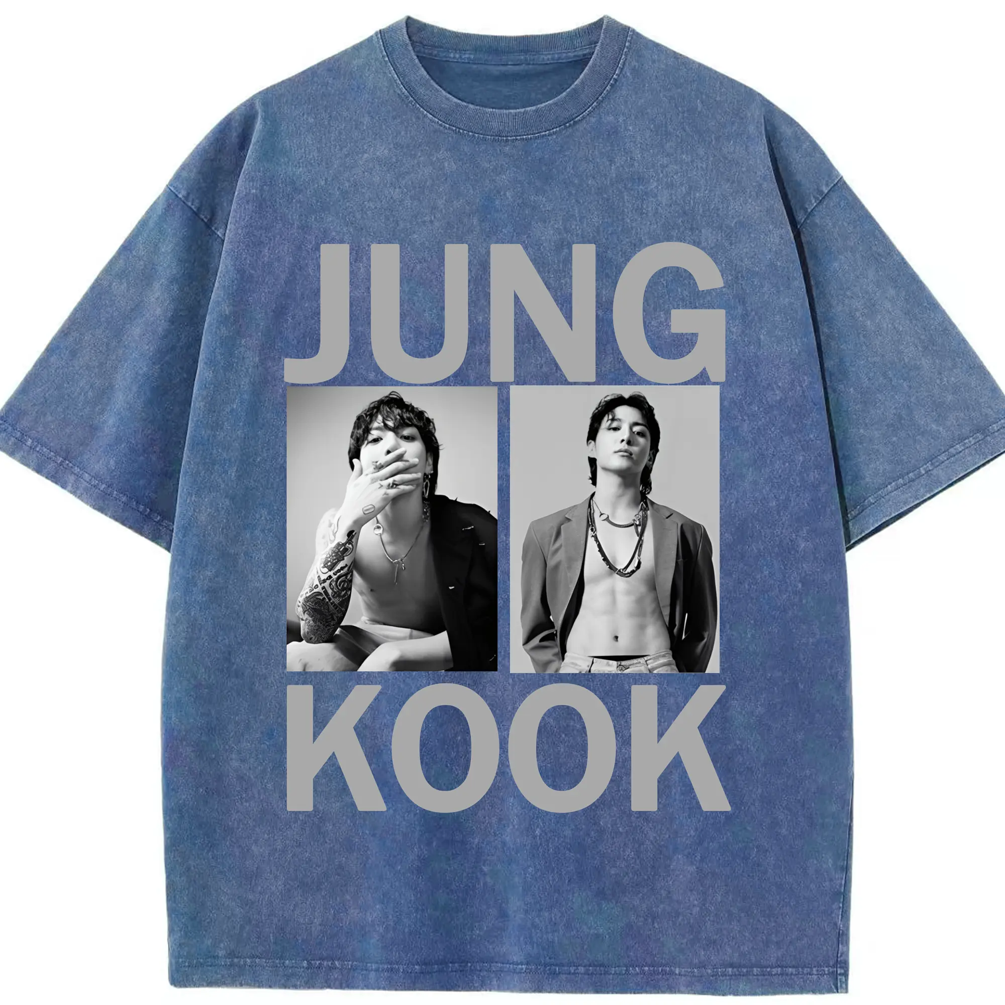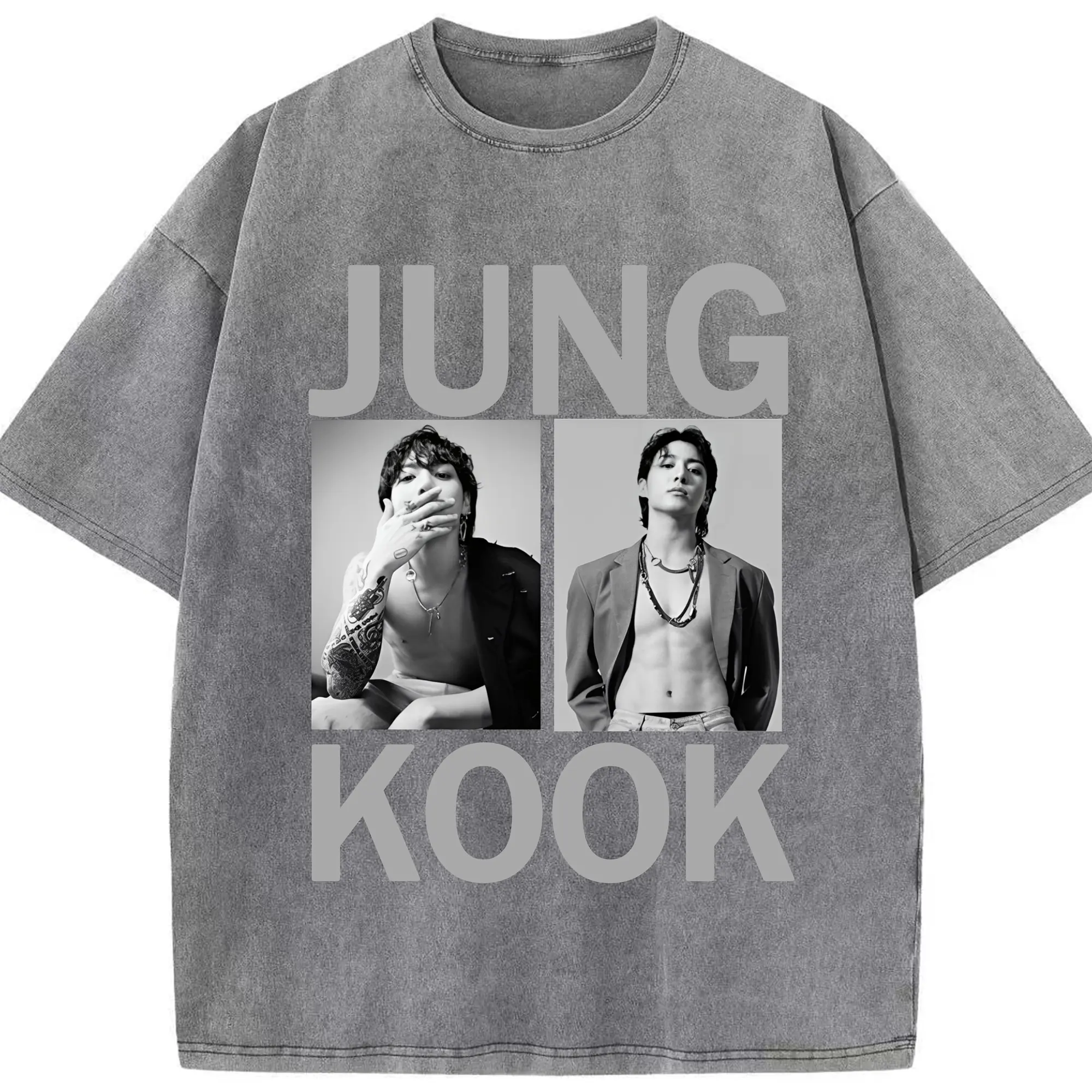 BTS ジョングク アルバム『Golden』シンプルデザイン限定 - 綿100% 半袖Tシャツ ・ フロントプリント ・ 快適 通気性 ・ 日常使い 散歩 スポーツ用