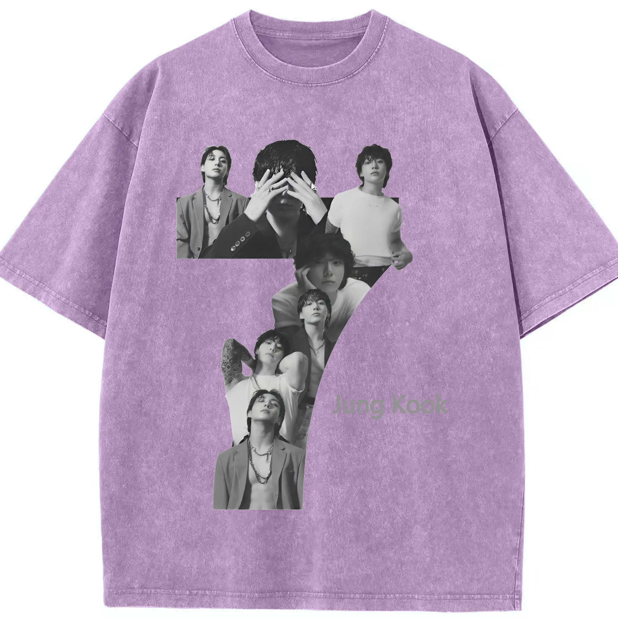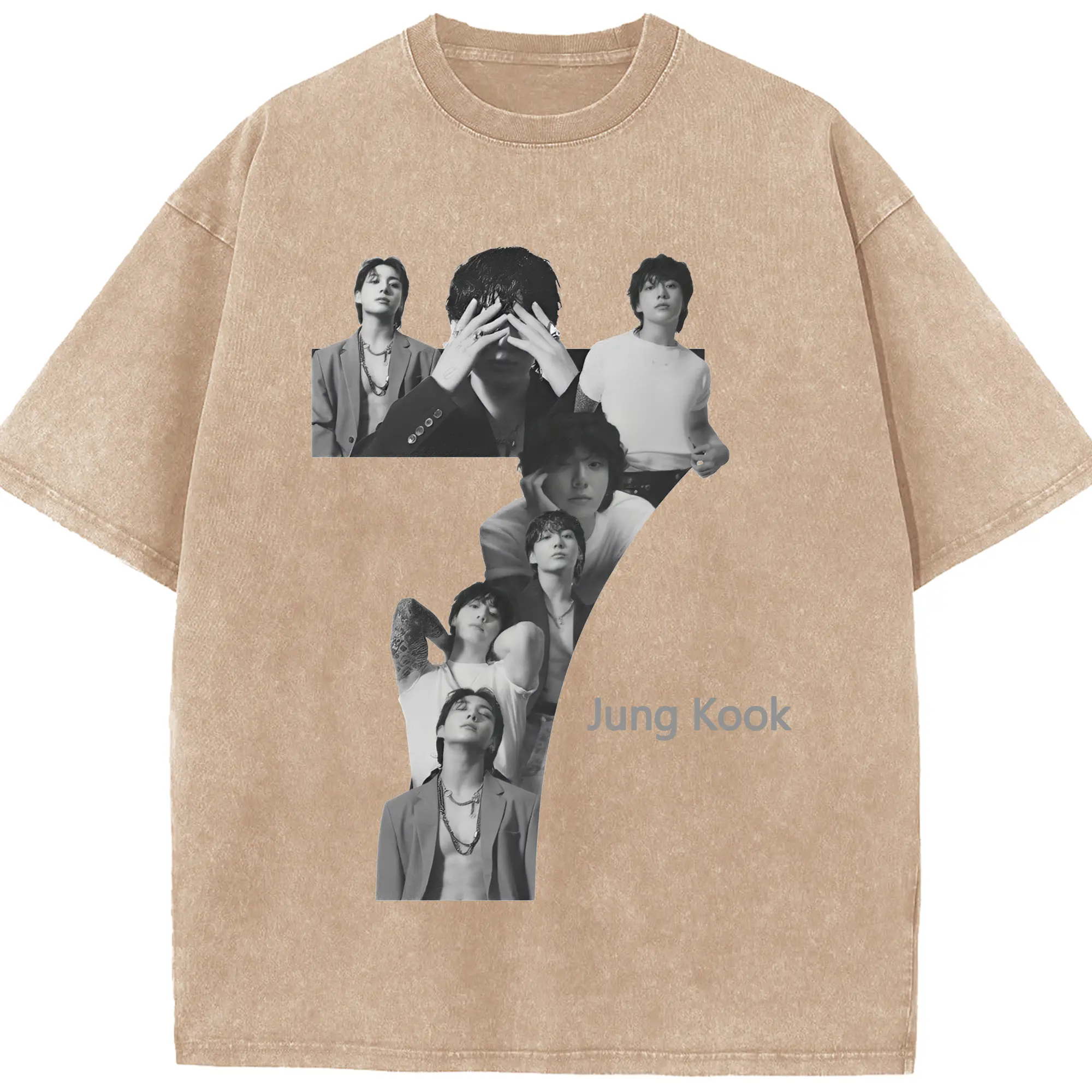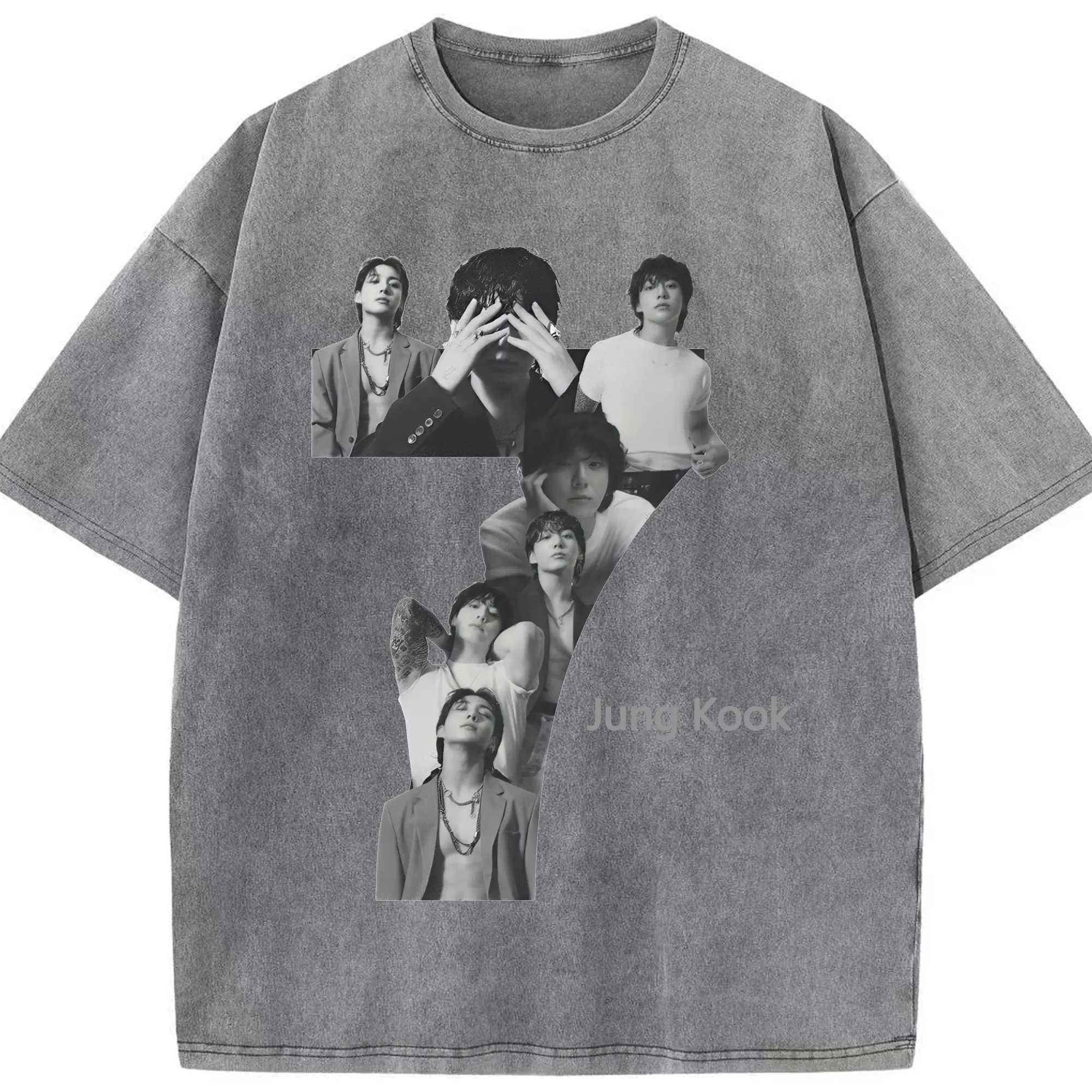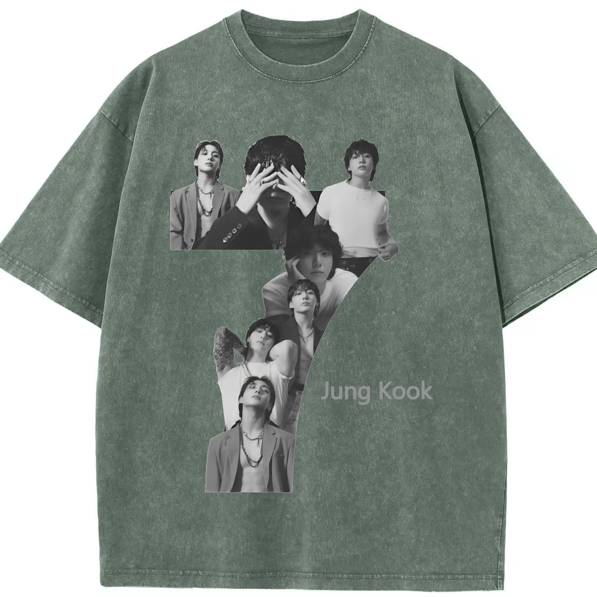 BTS ジョングク アルバム『Seven』シンプルデザイン限定 - 綿100% 半袖Tシャツ ・ フロントプリント ・ 快適 通気性 ・ 日常使い 散歩 スポーツ用