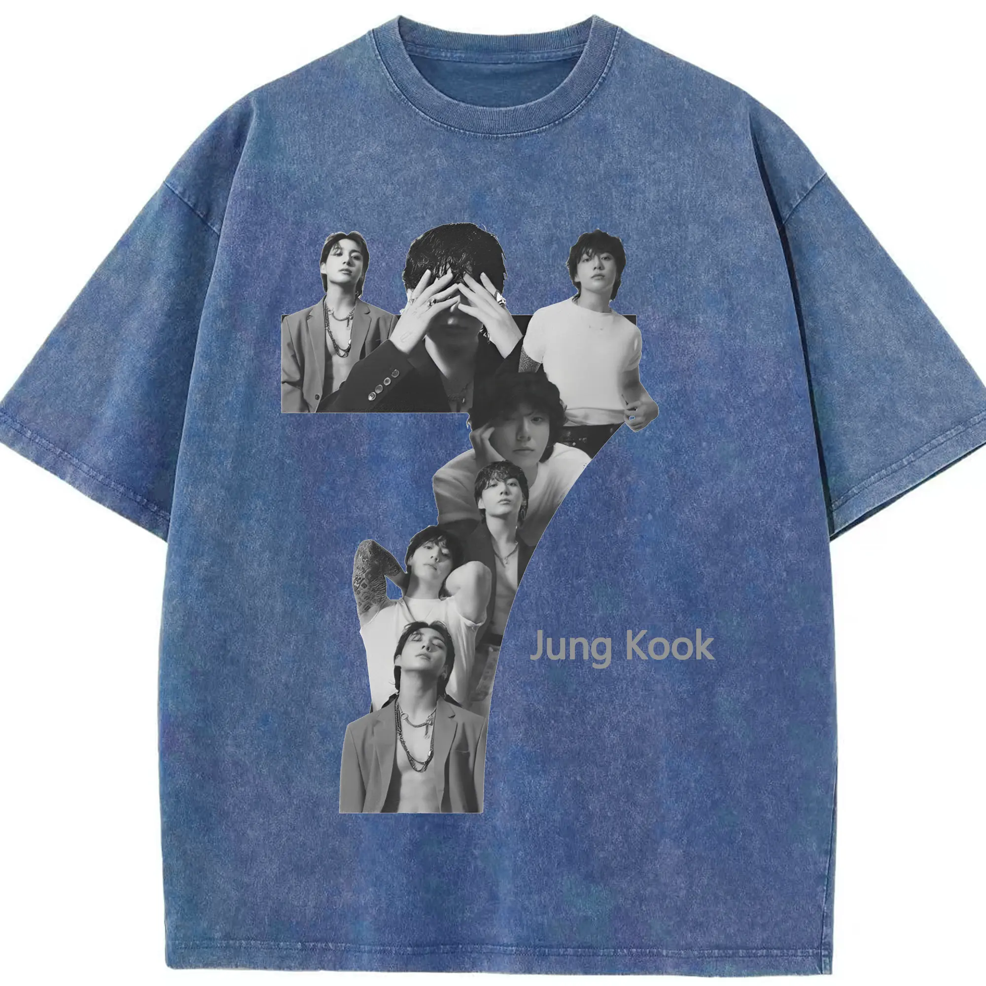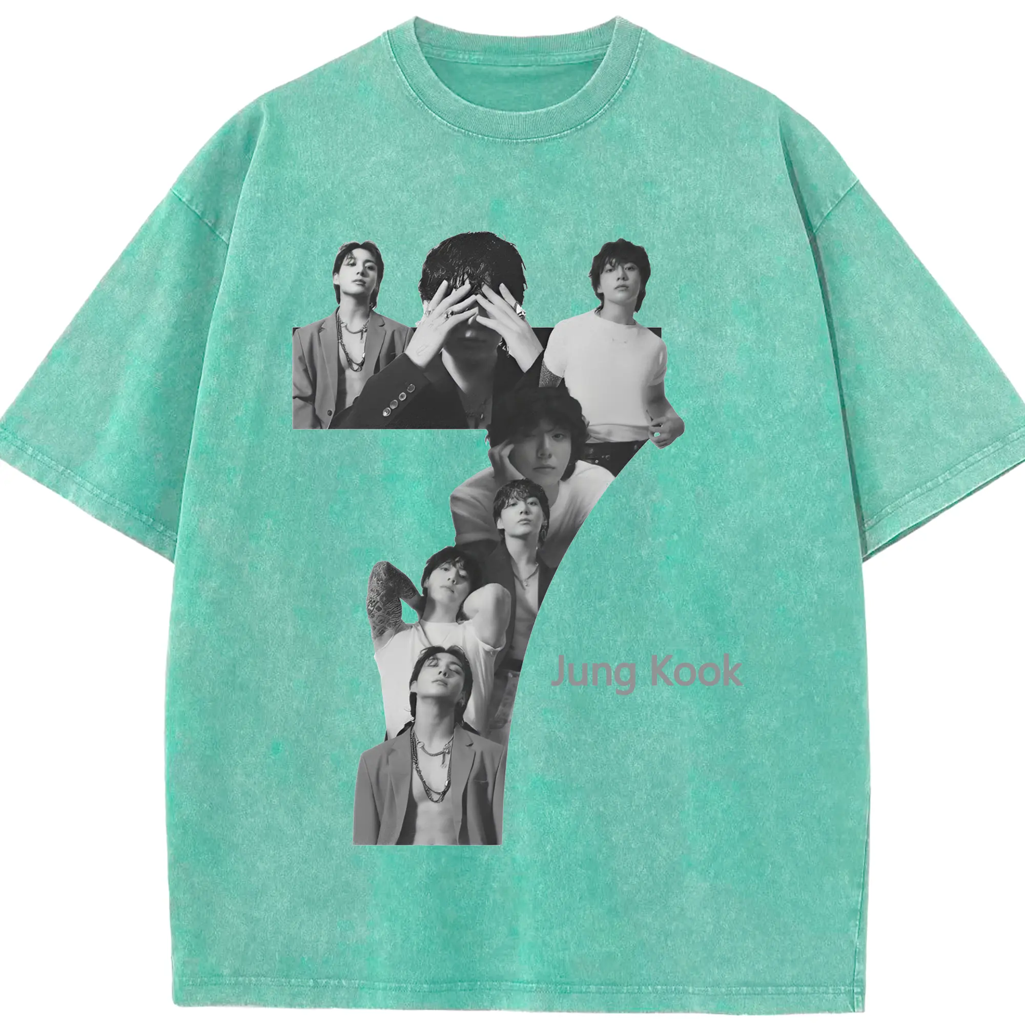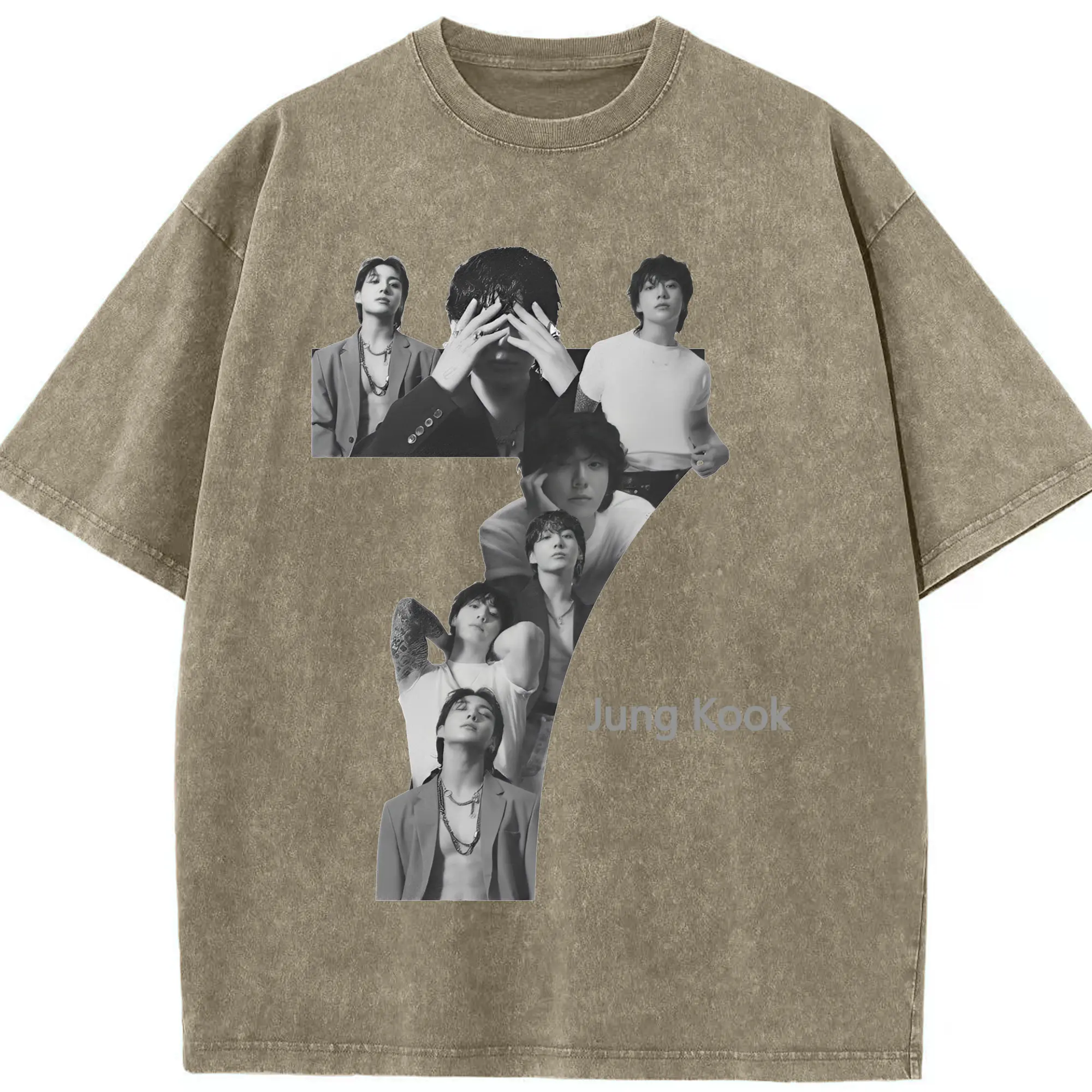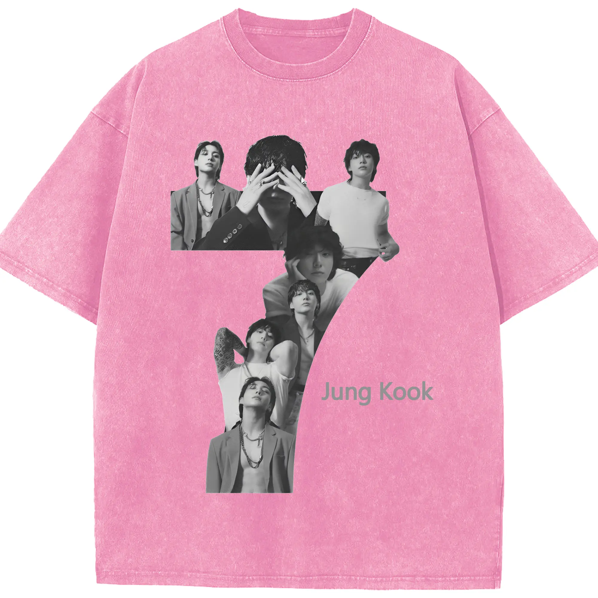 BTS ジョングク アルバム『Seven』シンプルデザイン限定 - 綿100% 半袖Tシャツ ・ フロントプリント ・ 快適 通気性 ・ 日常使い 散歩 スポーツ用