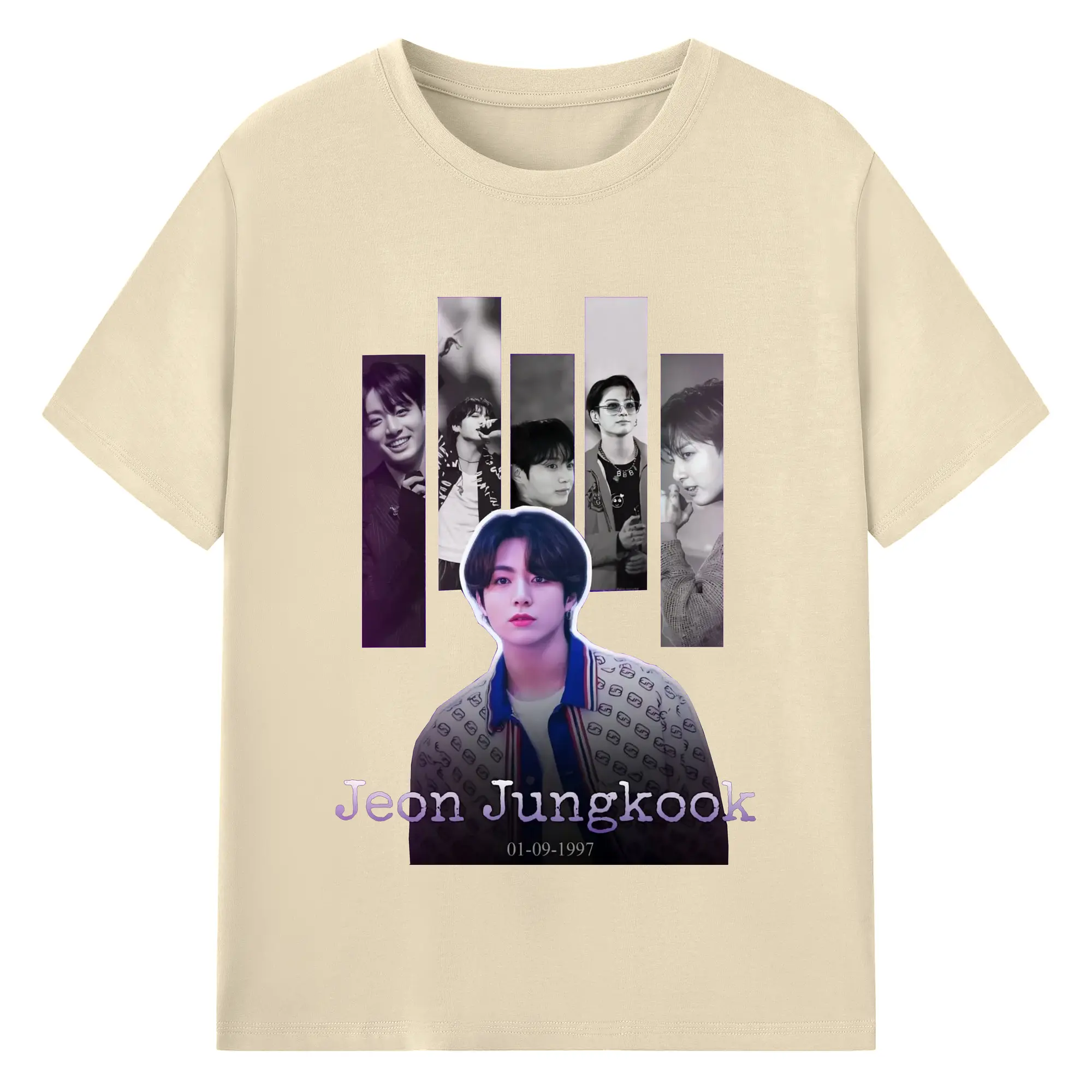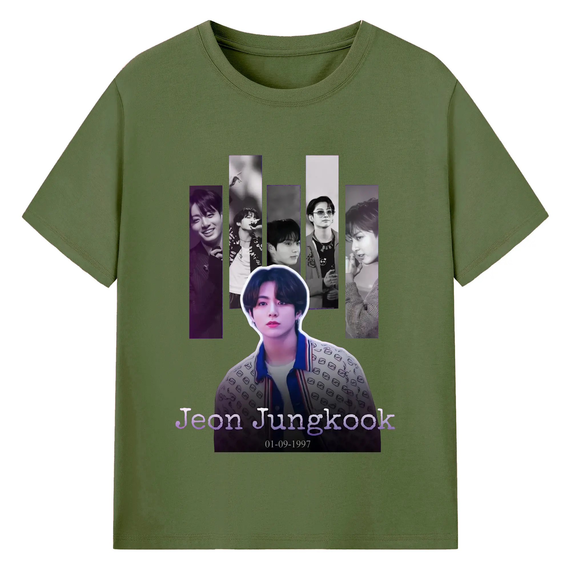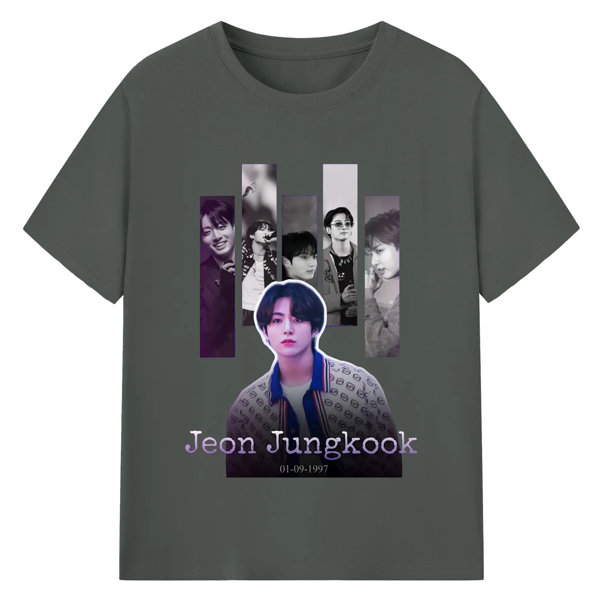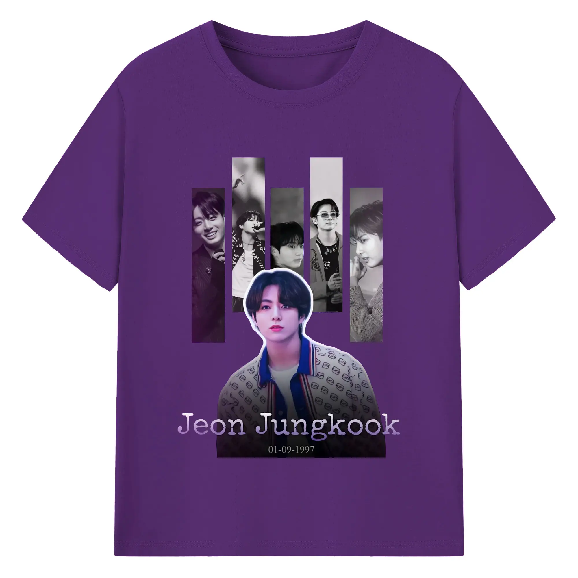 BTS ジョングク おしゃれ 韓流ストリートスタイル2025新作! - 綿100% 半袖Tシャツ ・ フロントプリント ・ 快適 通気性 ・ 日常使い 散歩 スポーツ用