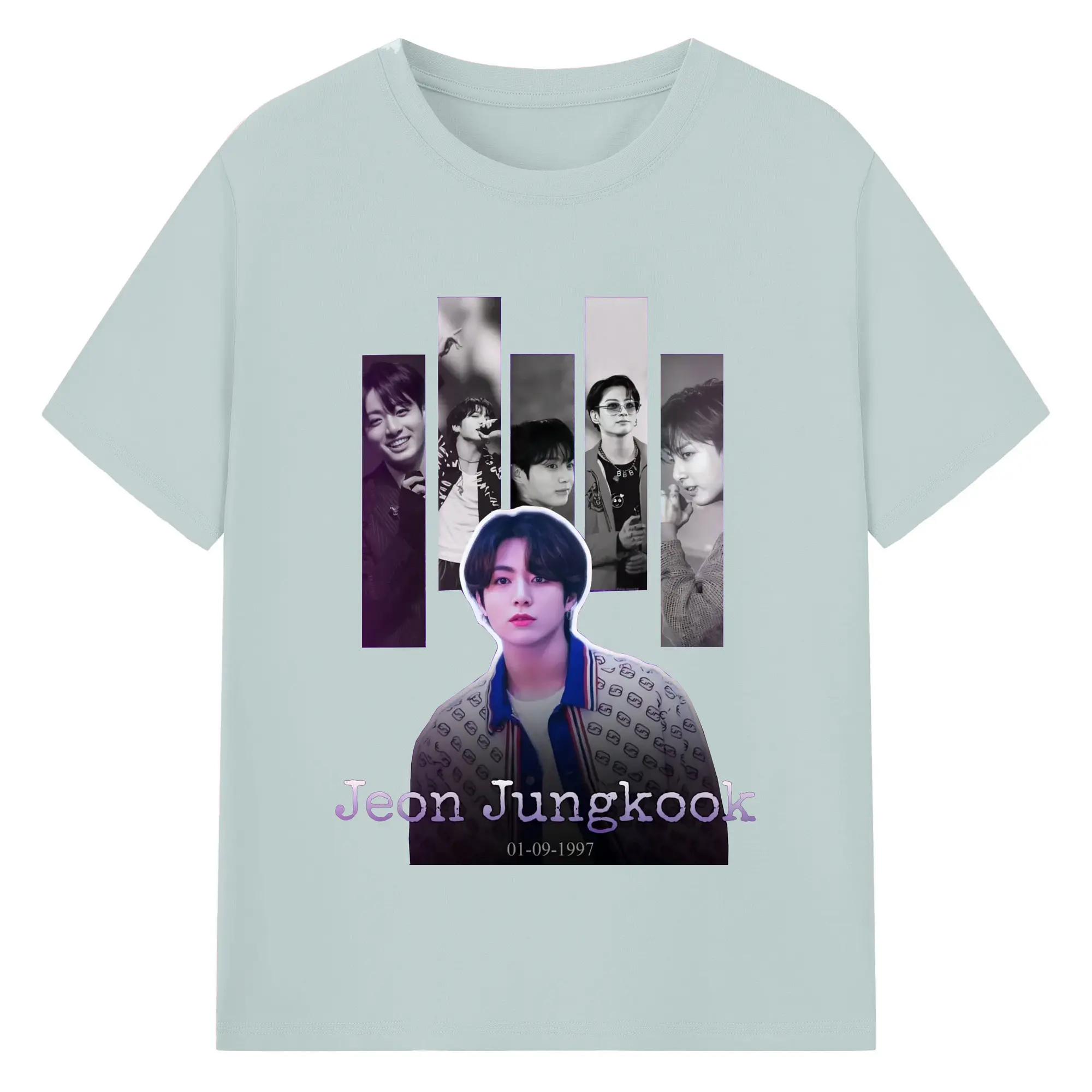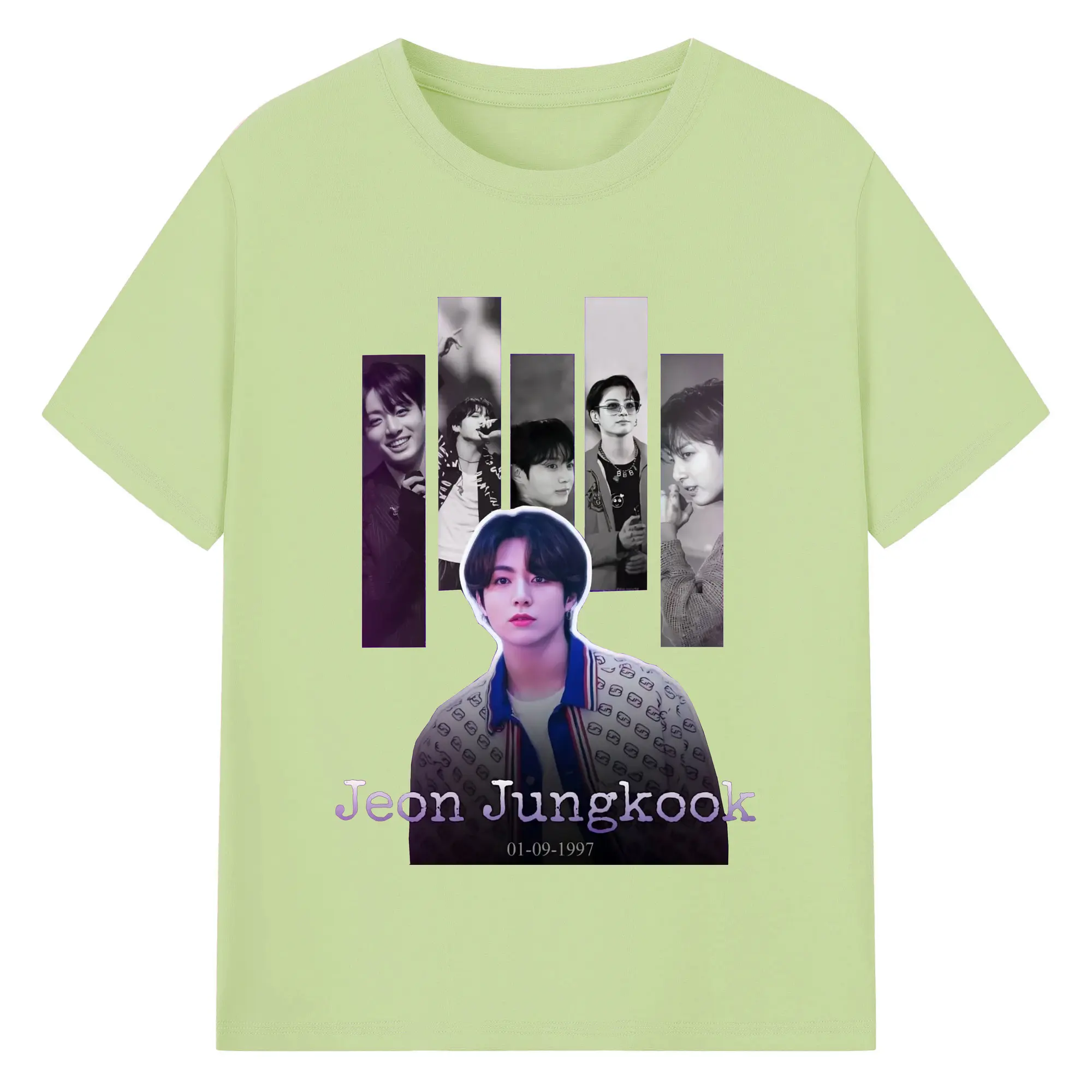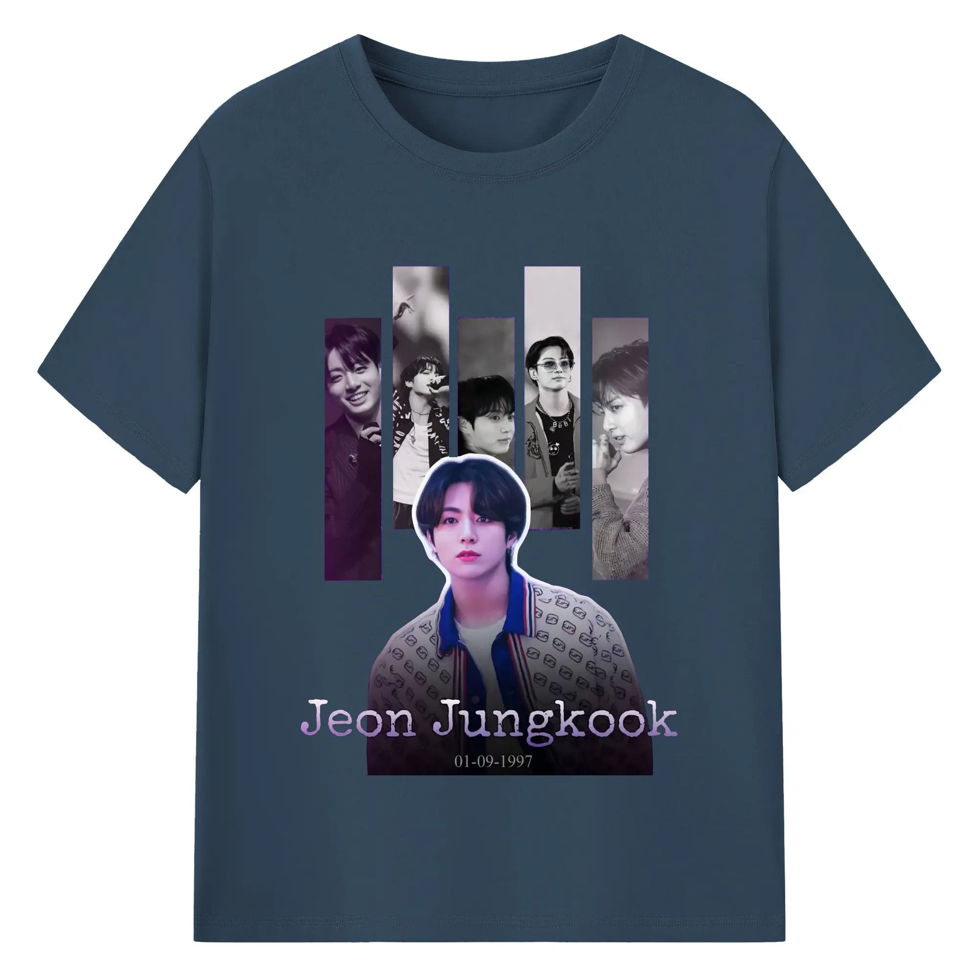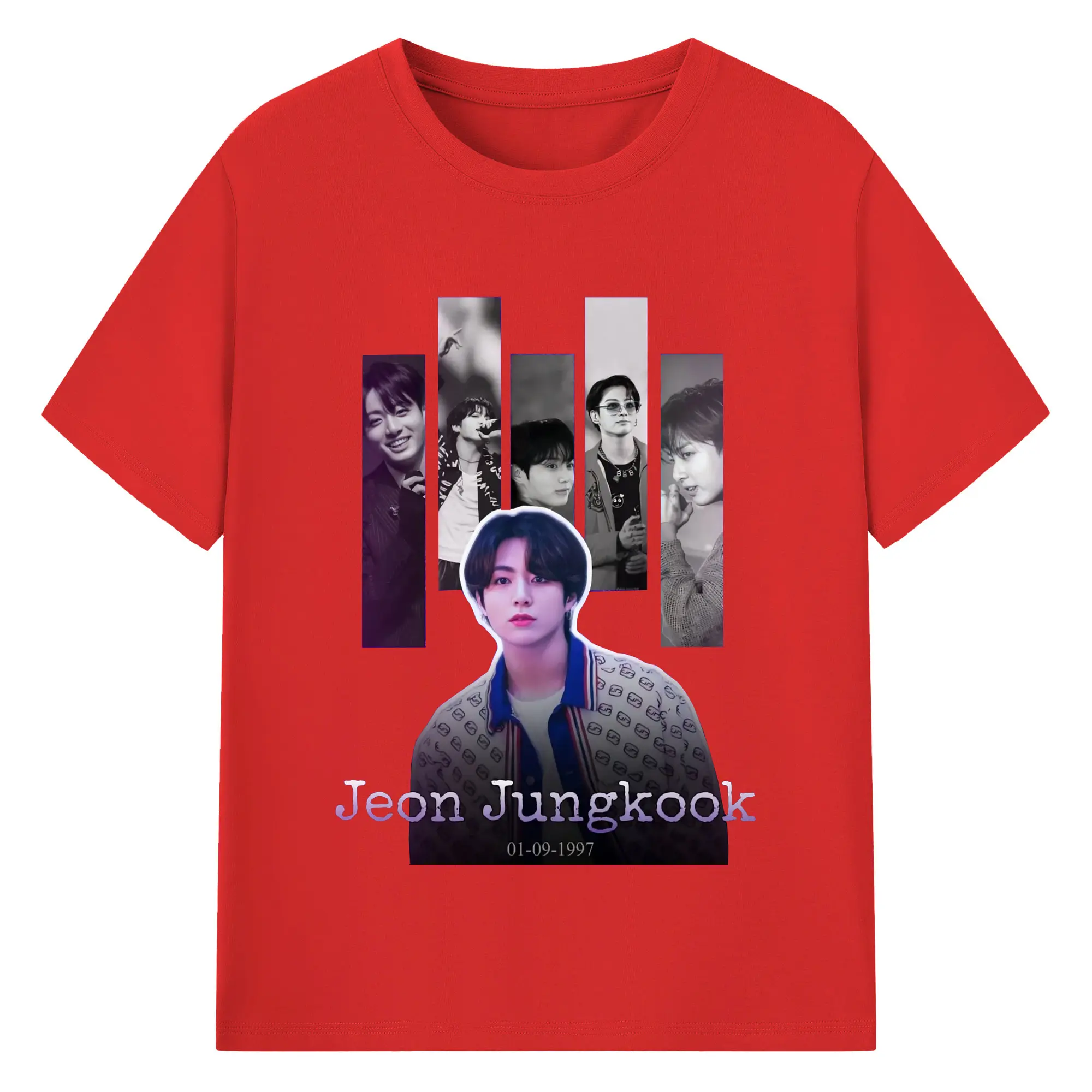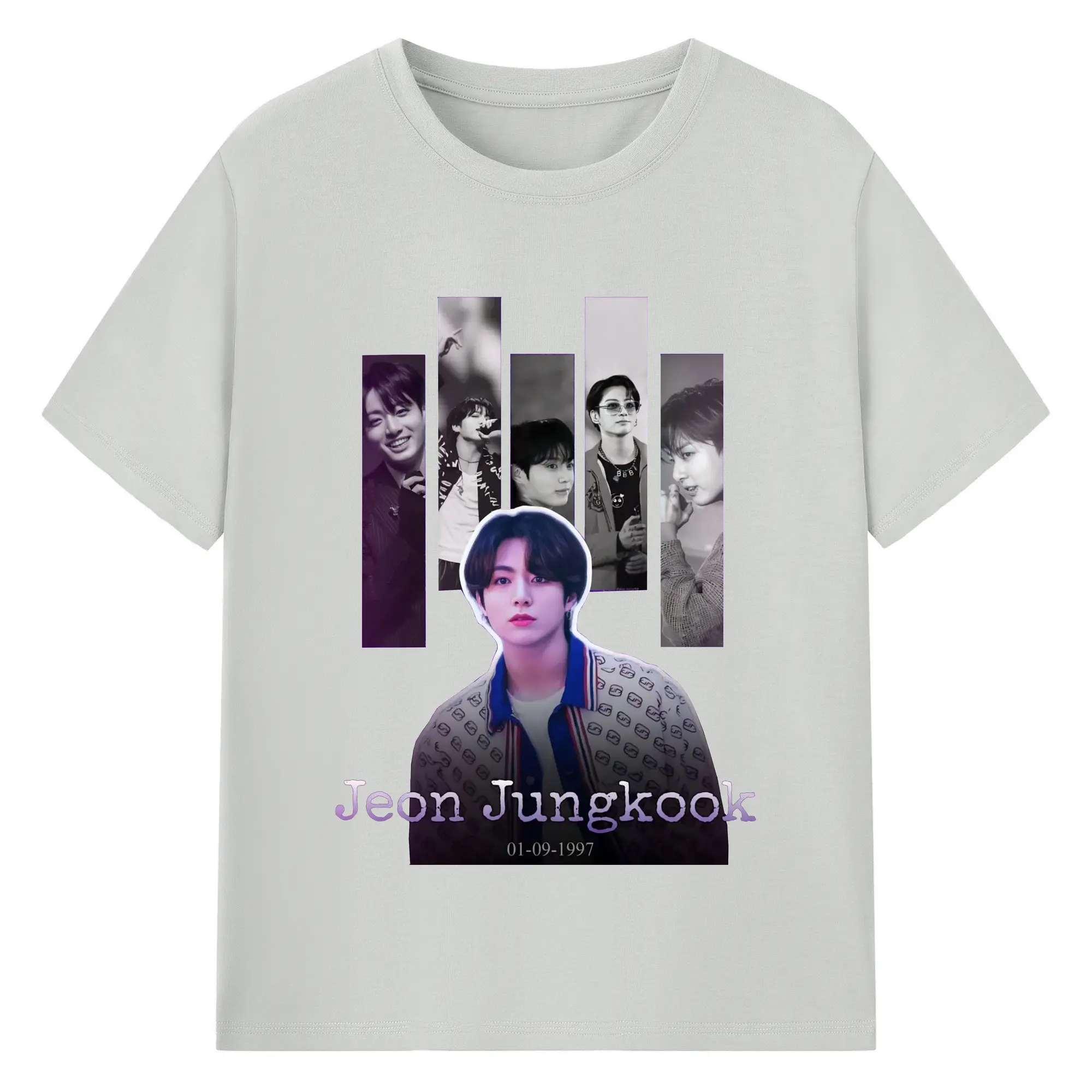 BTS ジョングク おしゃれ 韓流ストリートスタイル2025新作! - 綿100% 半袖Tシャツ ・ フロントプリント ・ 快適 通気性 ・ 日常使い 散歩 スポーツ用